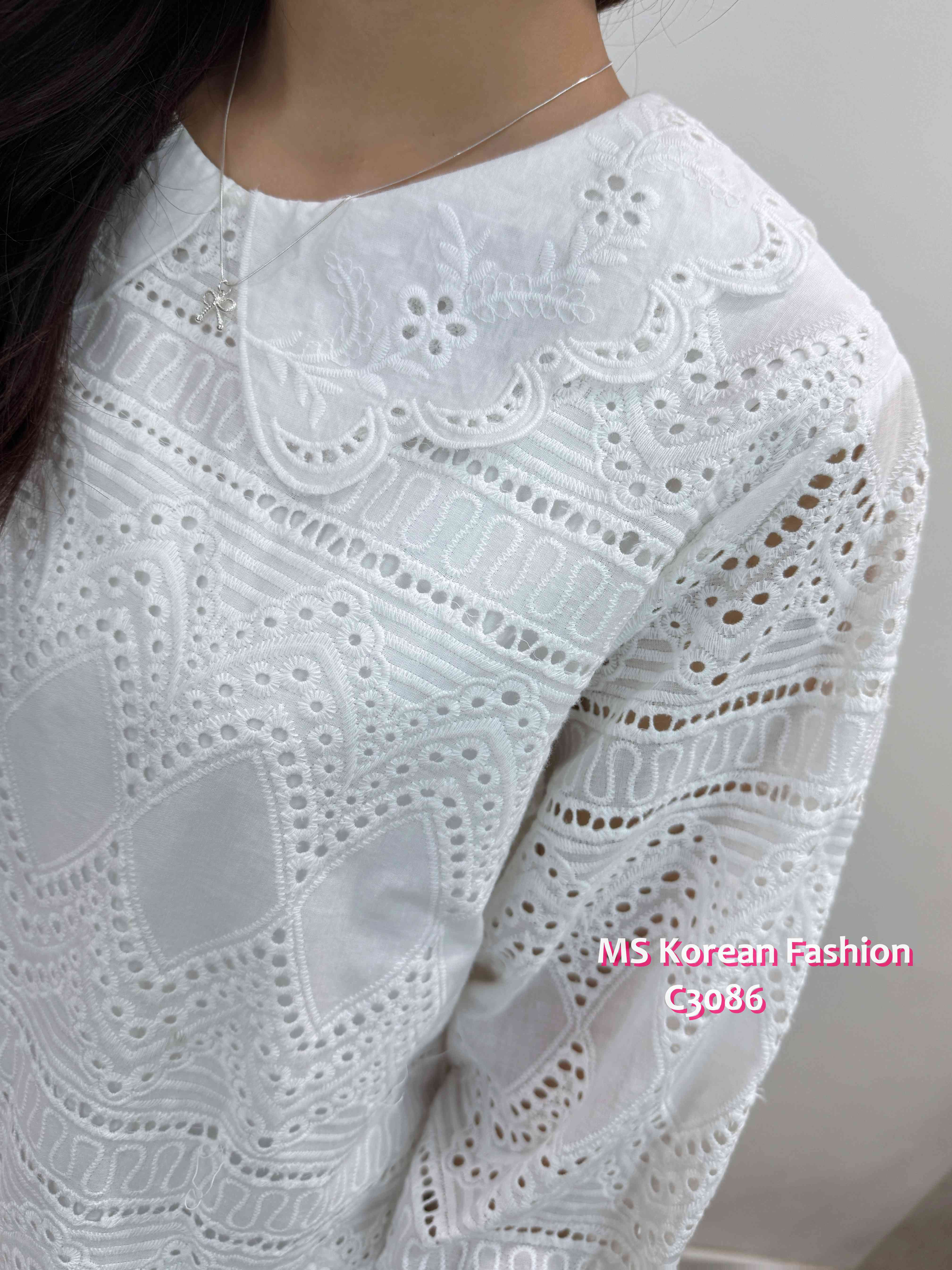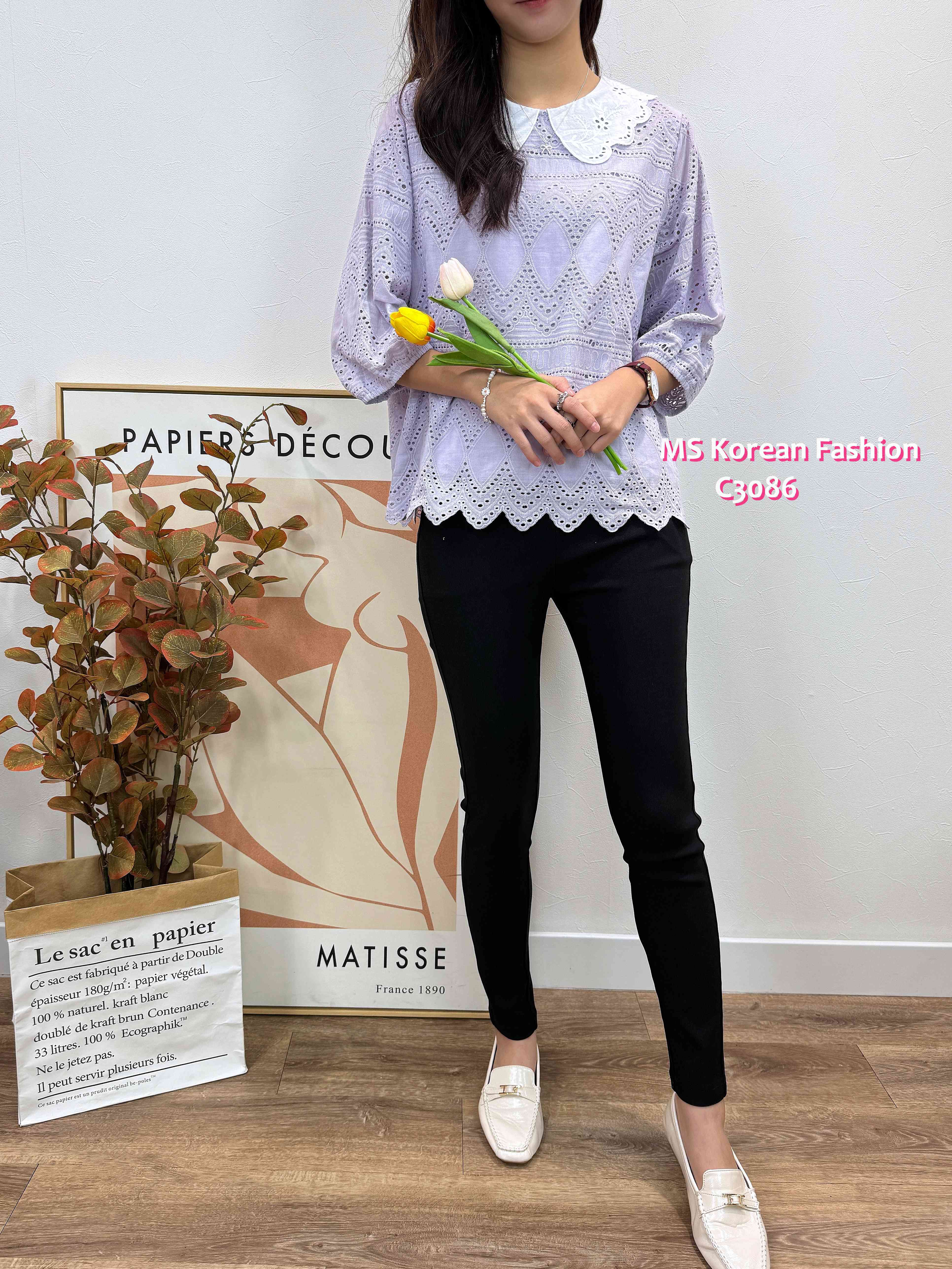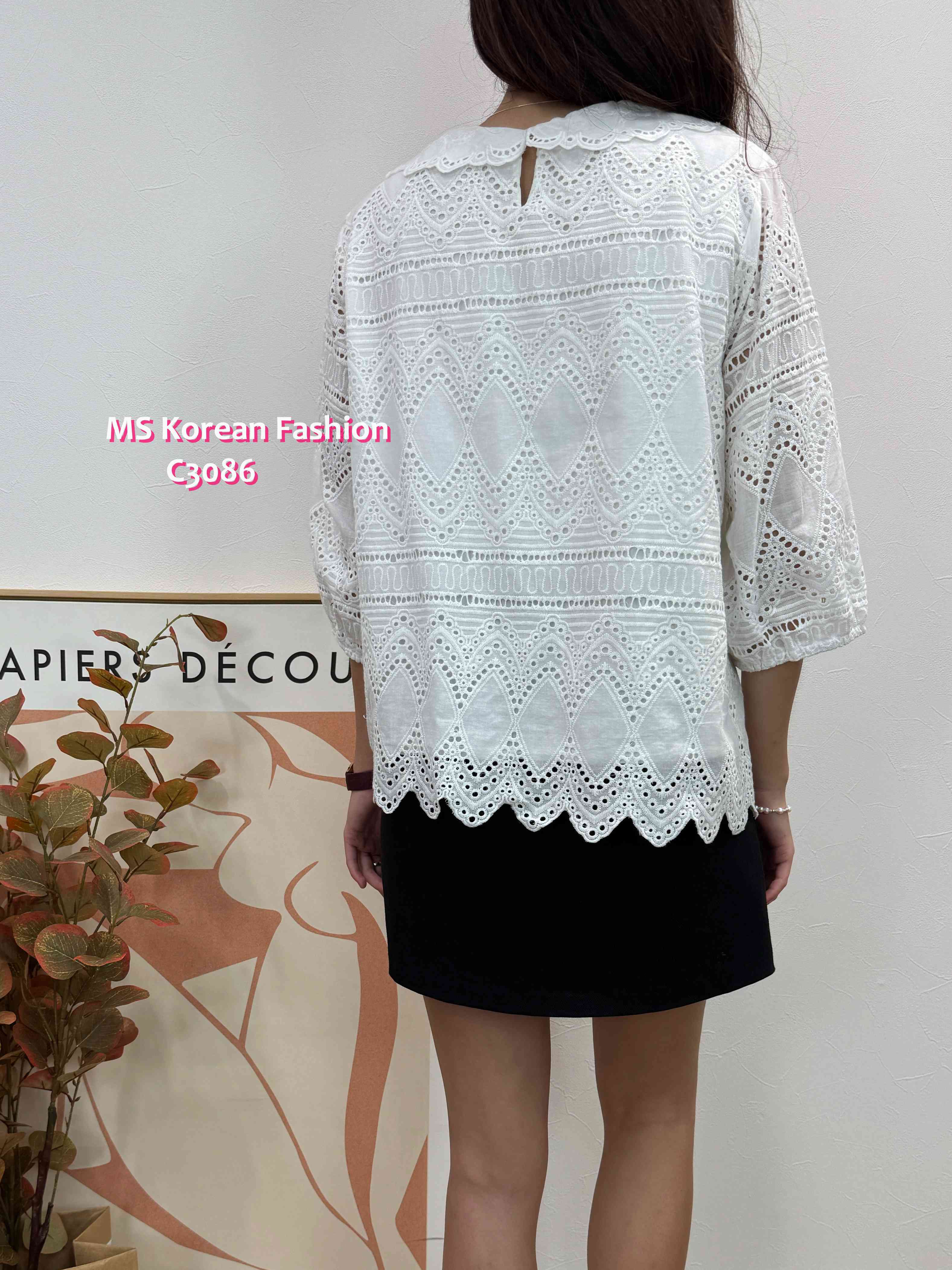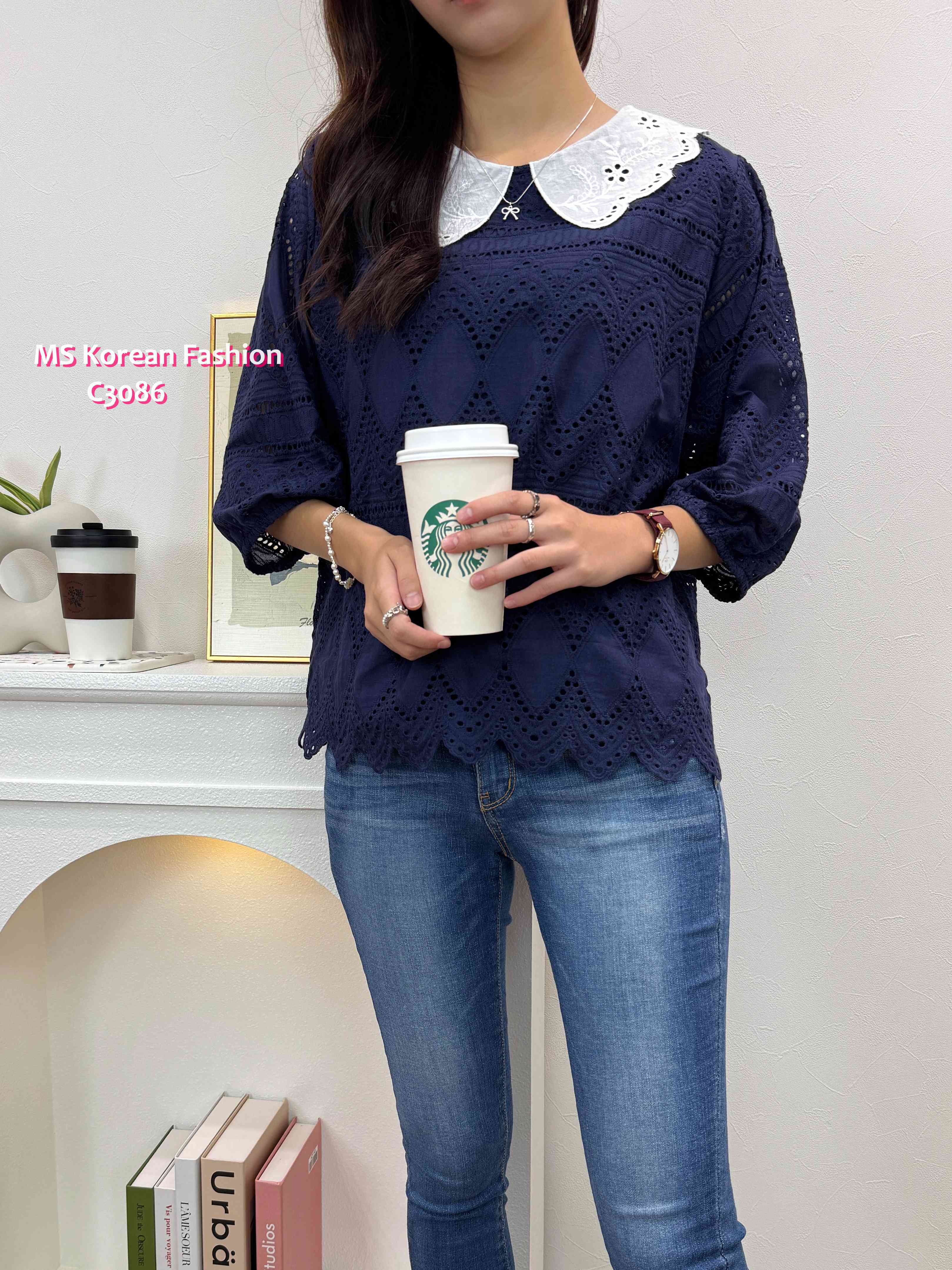 [訂貨約7-10個工作天] 💰💞Happy Price: $189 波浪腳通花top😻 通花pattern巧令令🌺 紫色同寶藍做左拼色領設計個款出D 想低調D可以揀全白色🤍 衫身有內里白色都唔怕透 寶藍、白、紫 3色 尺寸 肩15"/胸43"/長23.5" 📫1件加$15包順豐站/智能櫃,2件包順豐(順豐站/智能櫃/工商/住宅) 📱查詢及Order可Inbox或Whatsapp 6317 3061