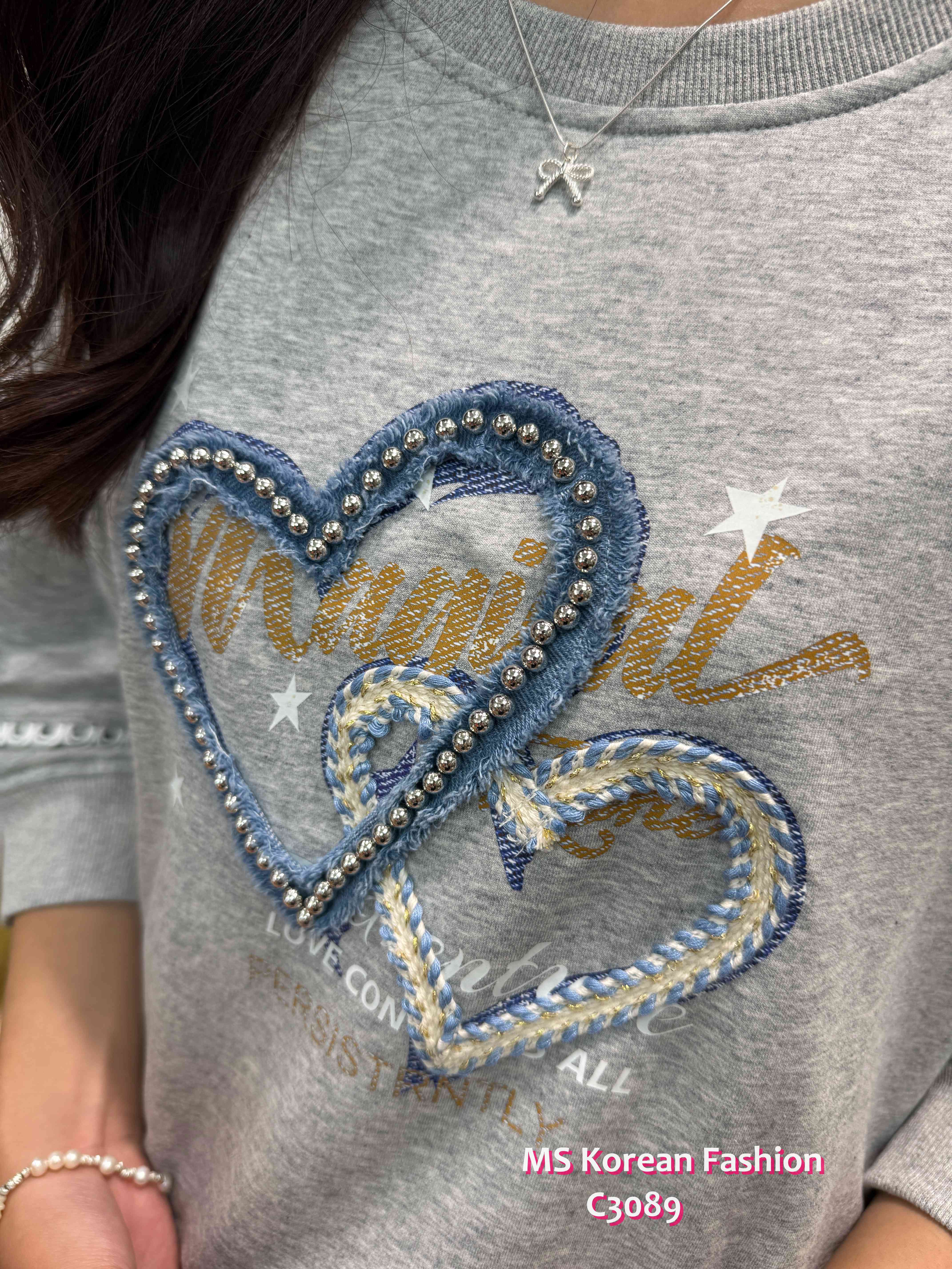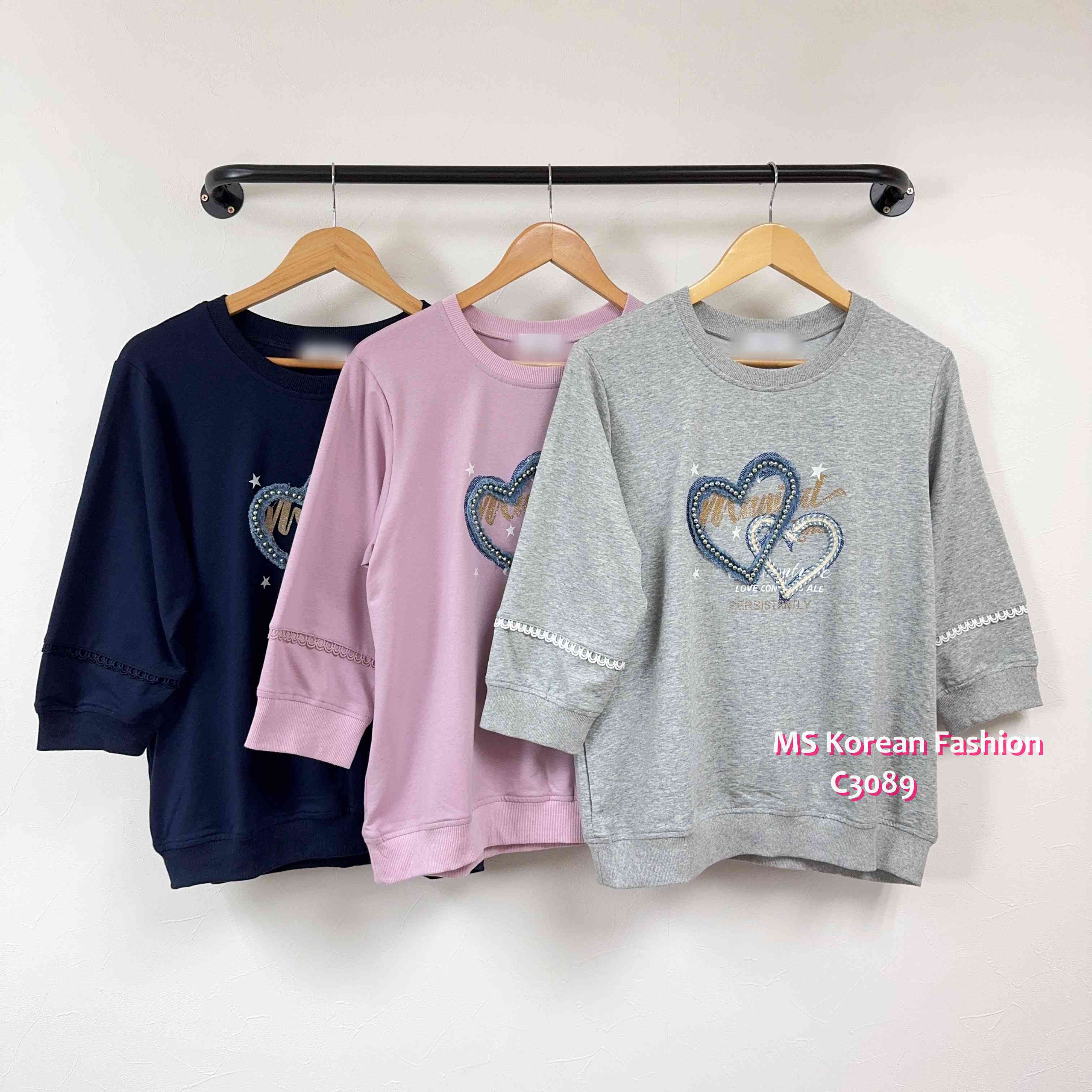 [訂貨約7-10個工作天] 💰💞Happy Price: $179 靚靚心心圖案top colour拼色巧令令🌈 立體心心圖案夠晒睇頭 中袖款轉季著一流🍂 寶藍、粉、灰 3色 尺寸 肩16.5"/胸42">拉開48"/長24.5" 📫1件加$15包順豐站/智能櫃,2件包順豐(順豐站/智能櫃/工商/住宅) 📱查詢及Order可Inbox或Whatsapp 6317 3061