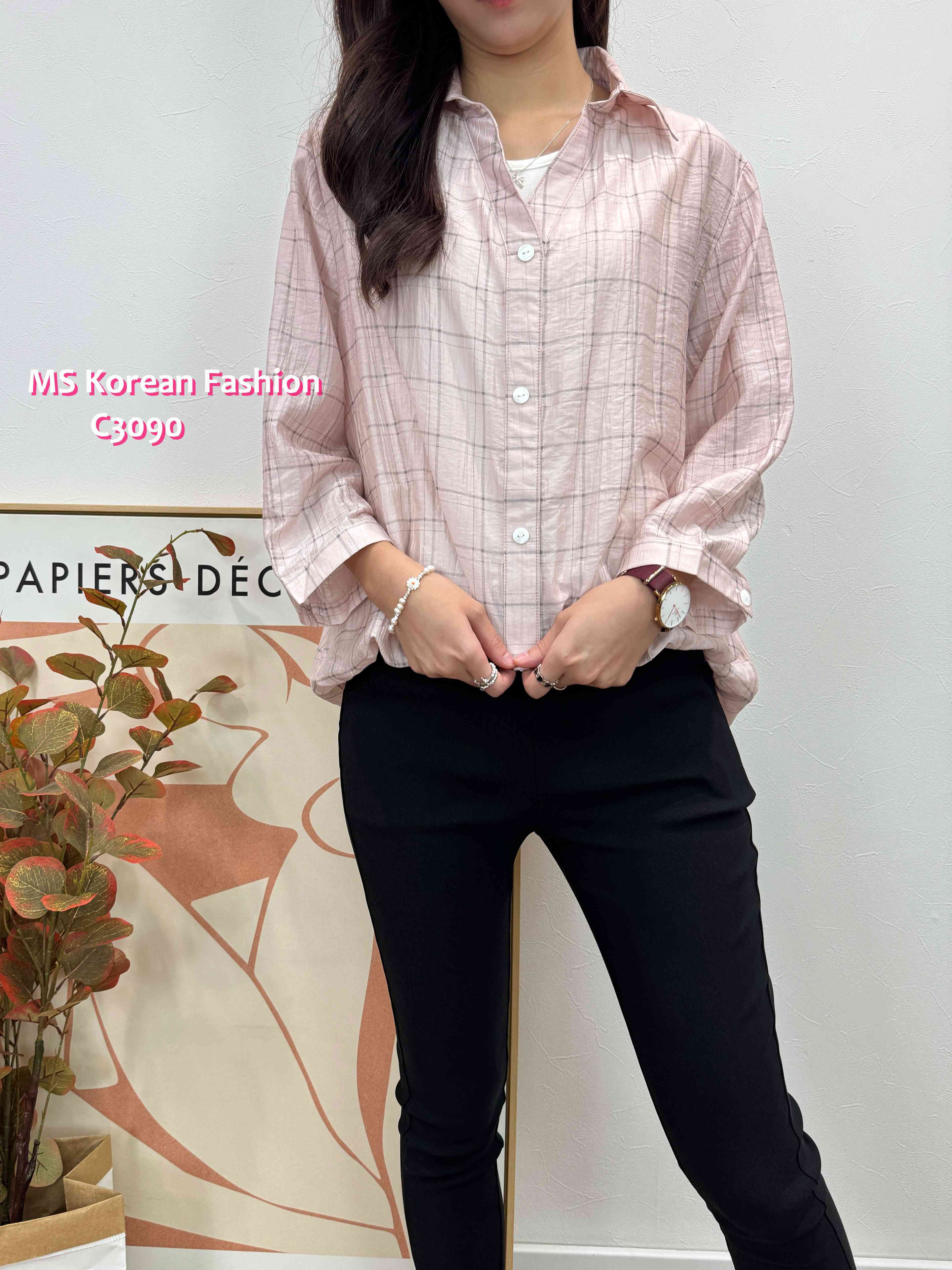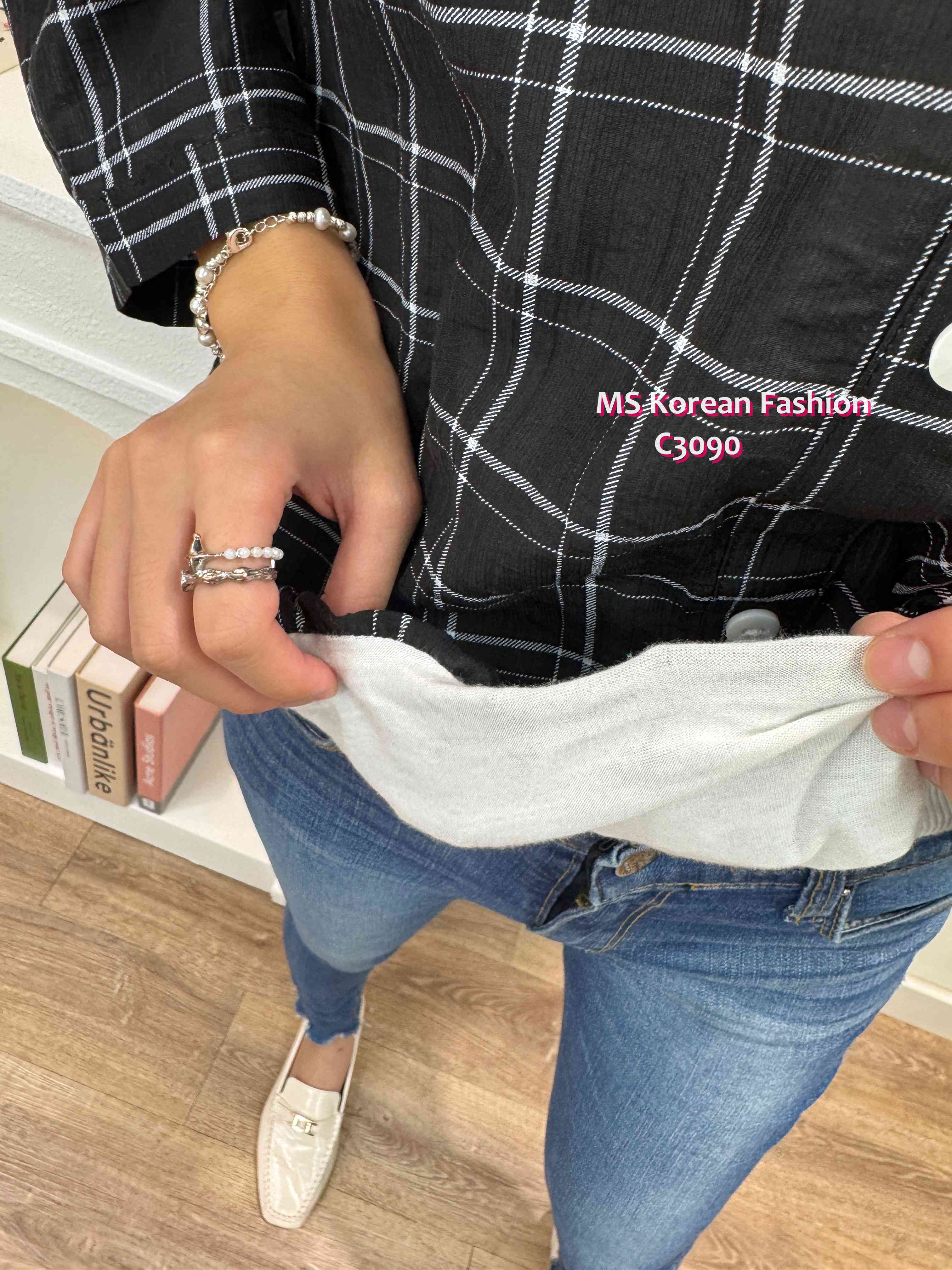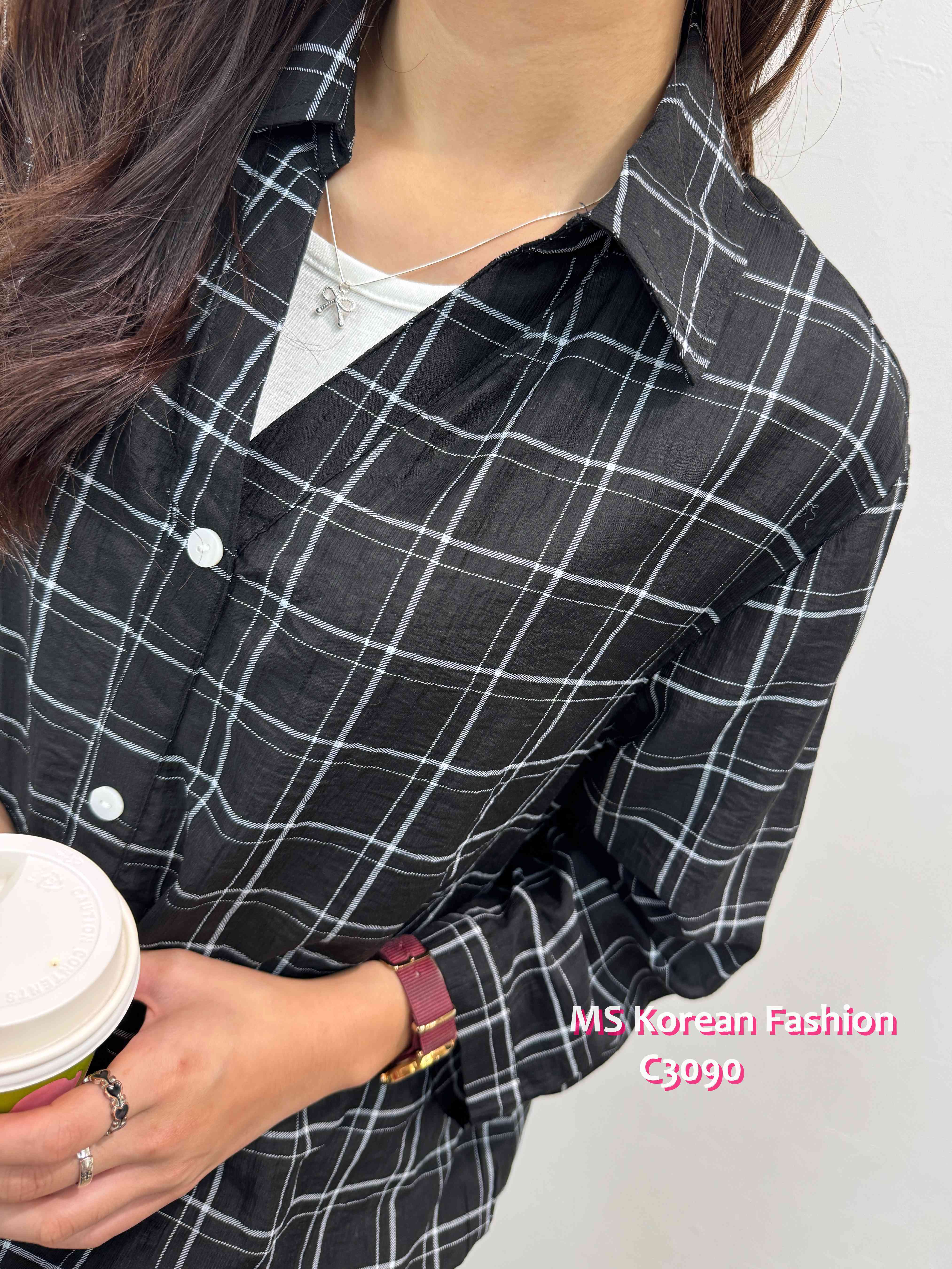 C3090 韓國🇰🇷格仔假兩件top