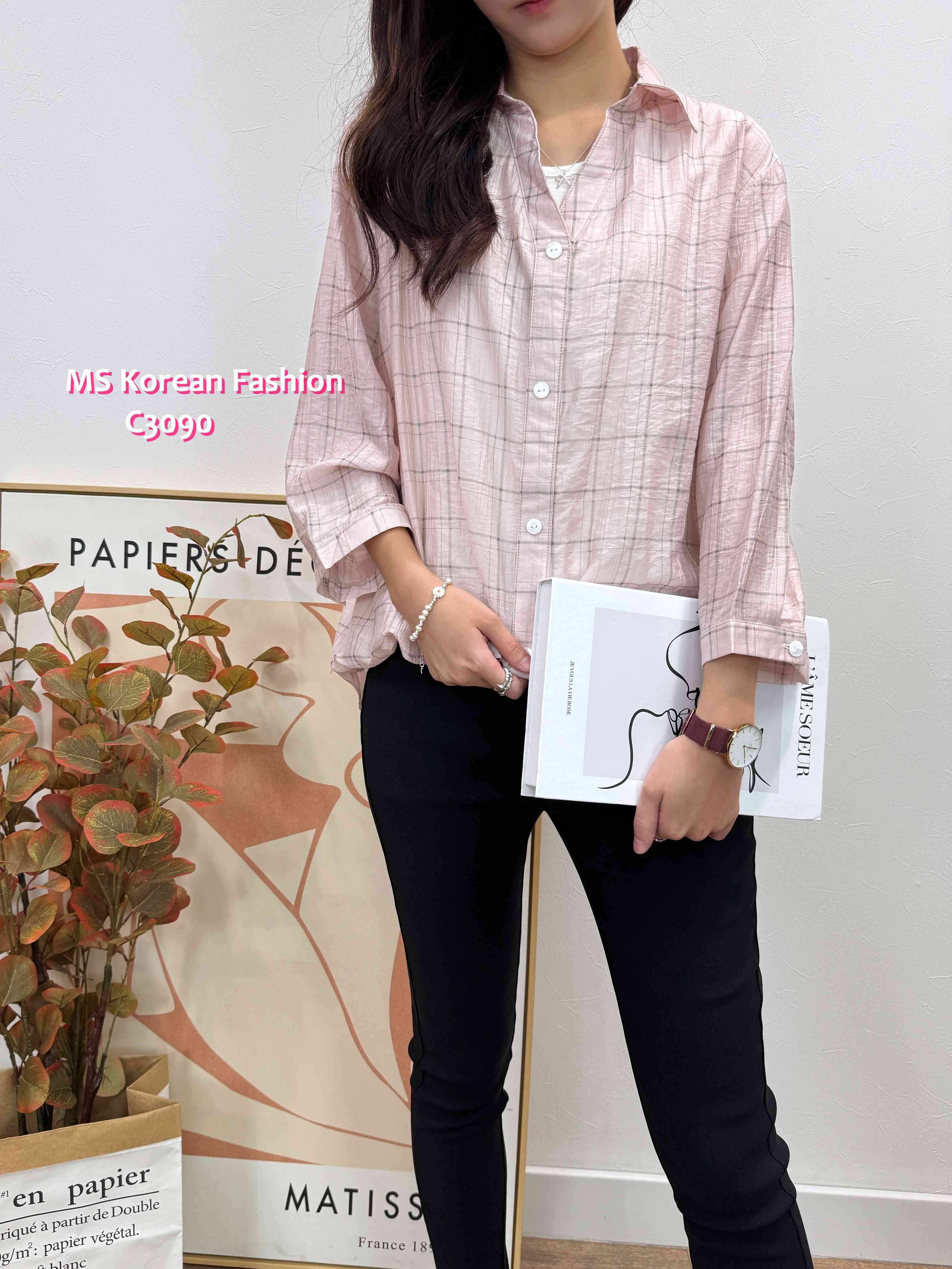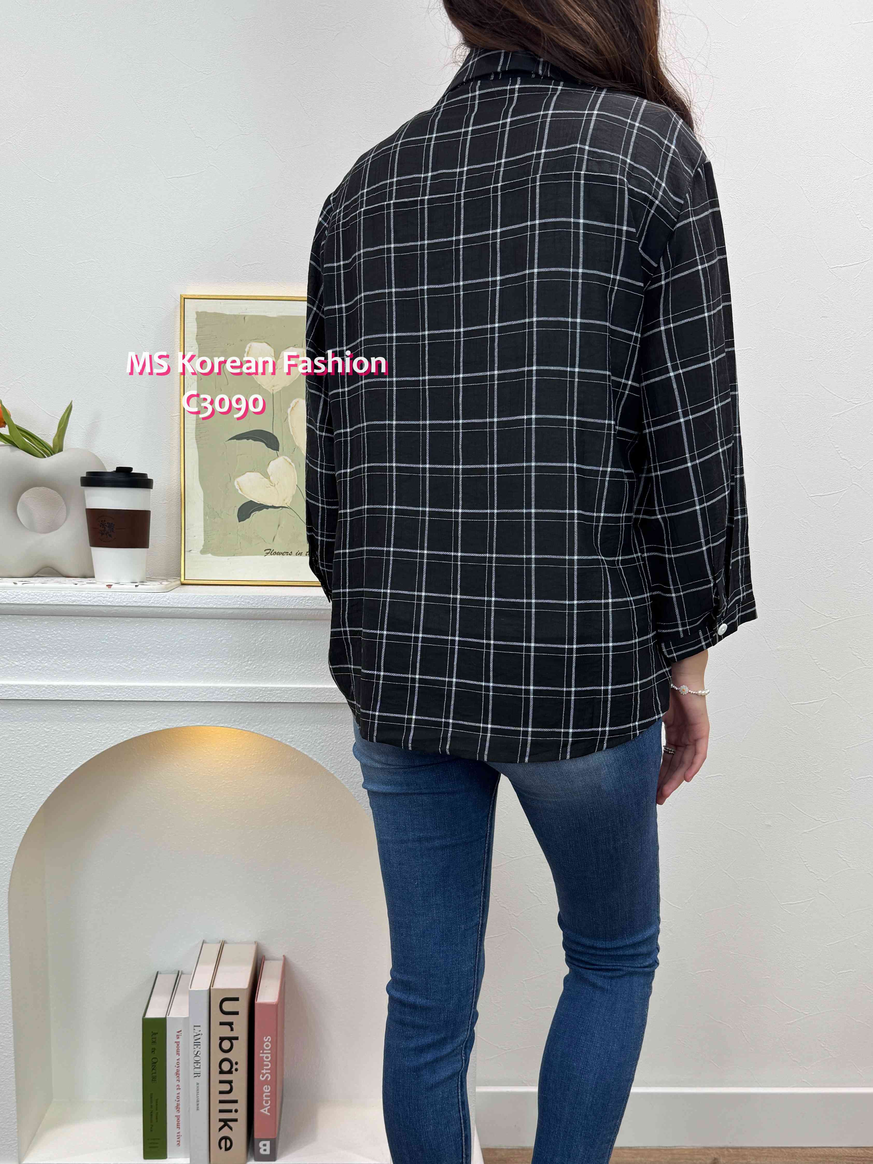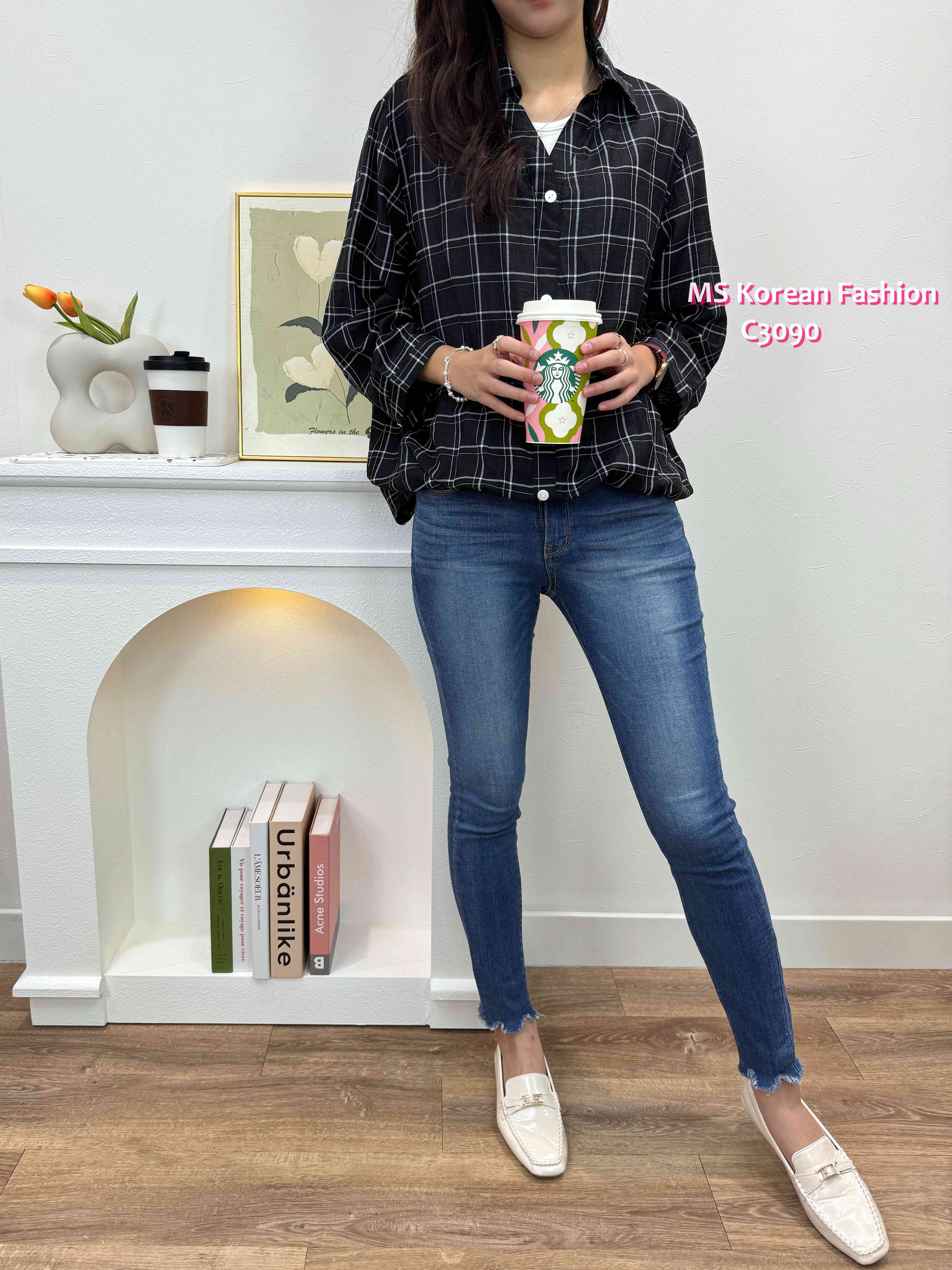C3090 韓國🇰🇷格仔假兩件top