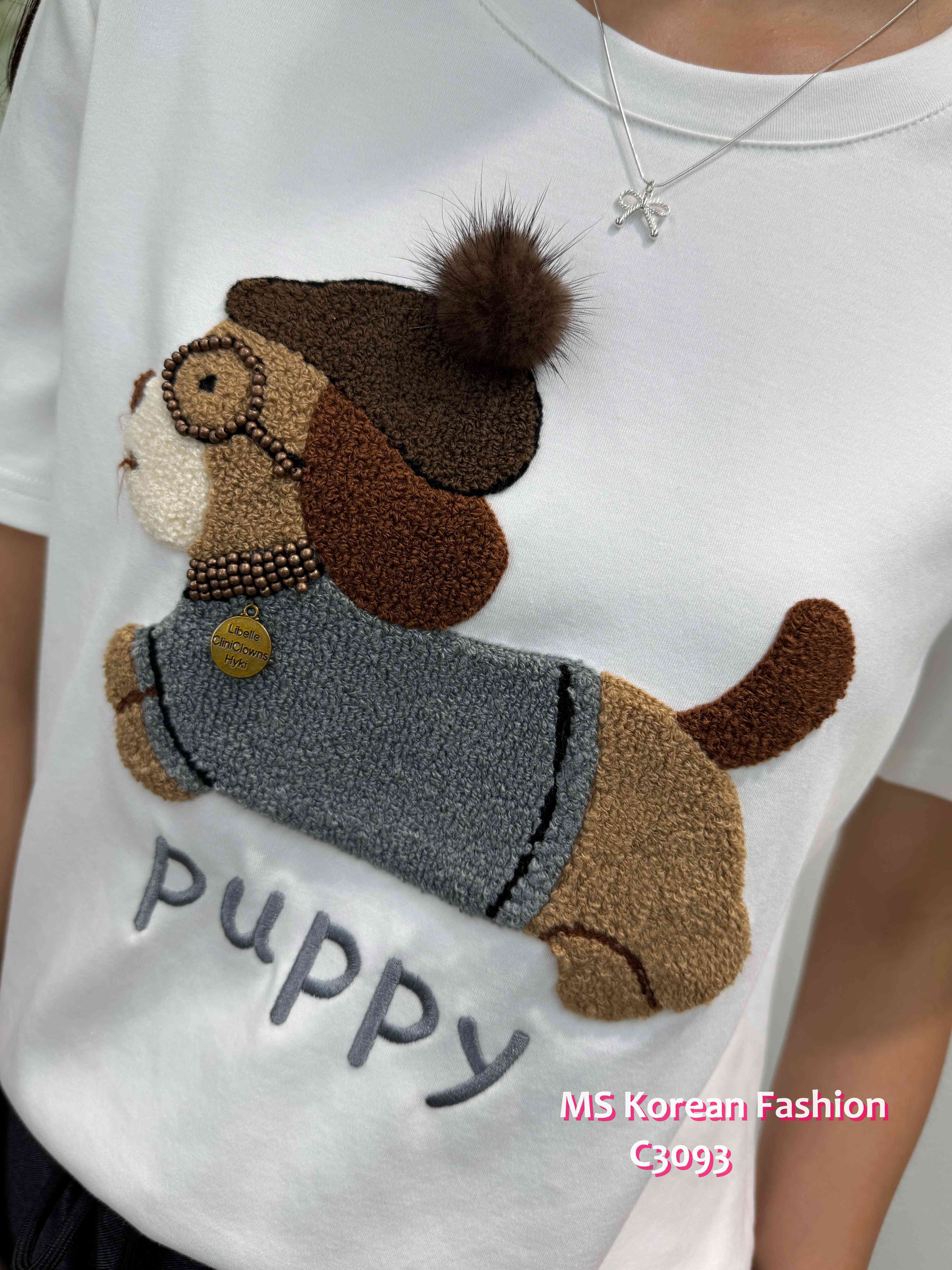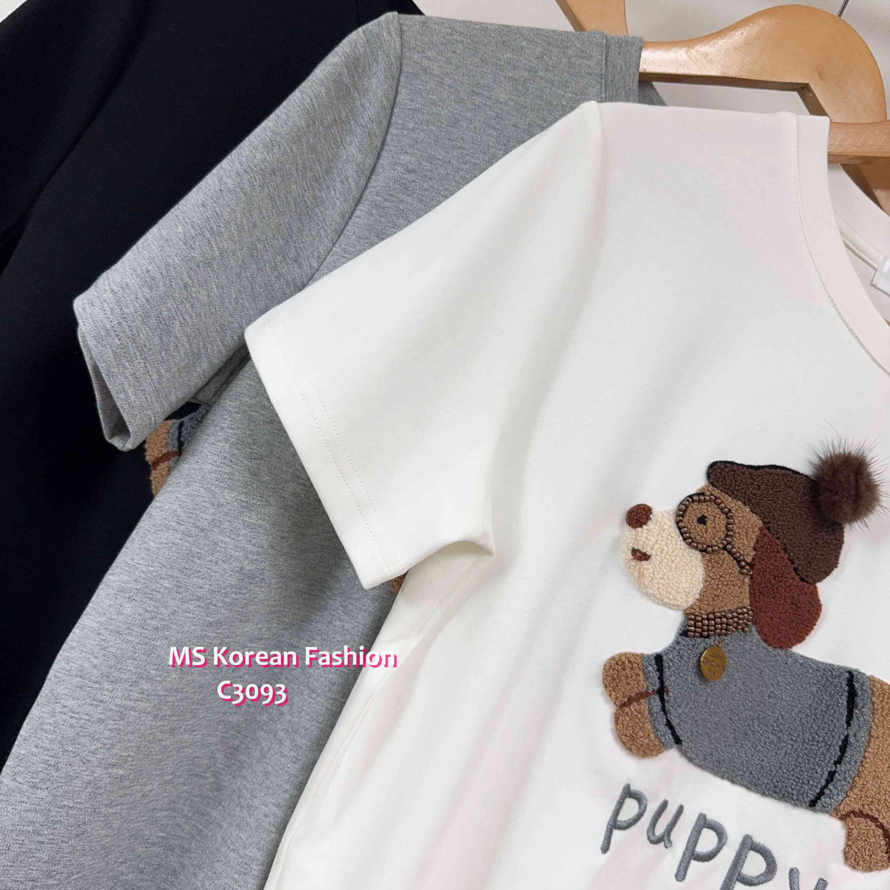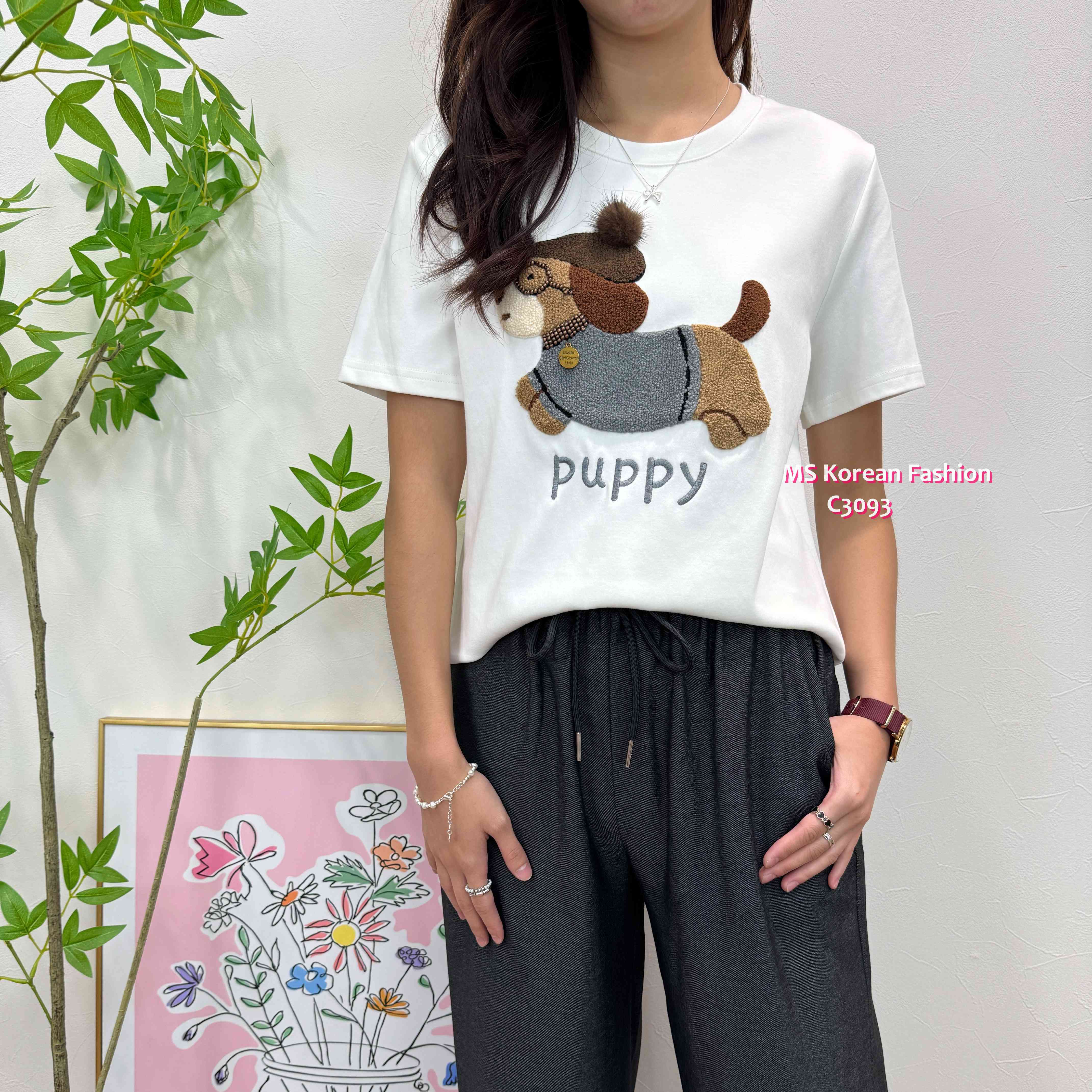 [訂貨約7-10個工作天] 💰💞Happy Price: $179 轉季仲搵到短袖款要好好珍惜 呢款毛毛狗仔print top好kawaii呀🐶 挺身靚棉料 單著或襯外套都一流✌ 黑、米、灰 3色 尺寸 肩15"/胸38">拉開42"/長23.5" 📫1件加$15包順豐站/智能櫃,2件包順豐(順豐站/智能櫃/工商/住宅) 📱查詢及Order可Inbox或Whatsapp 6317 3061