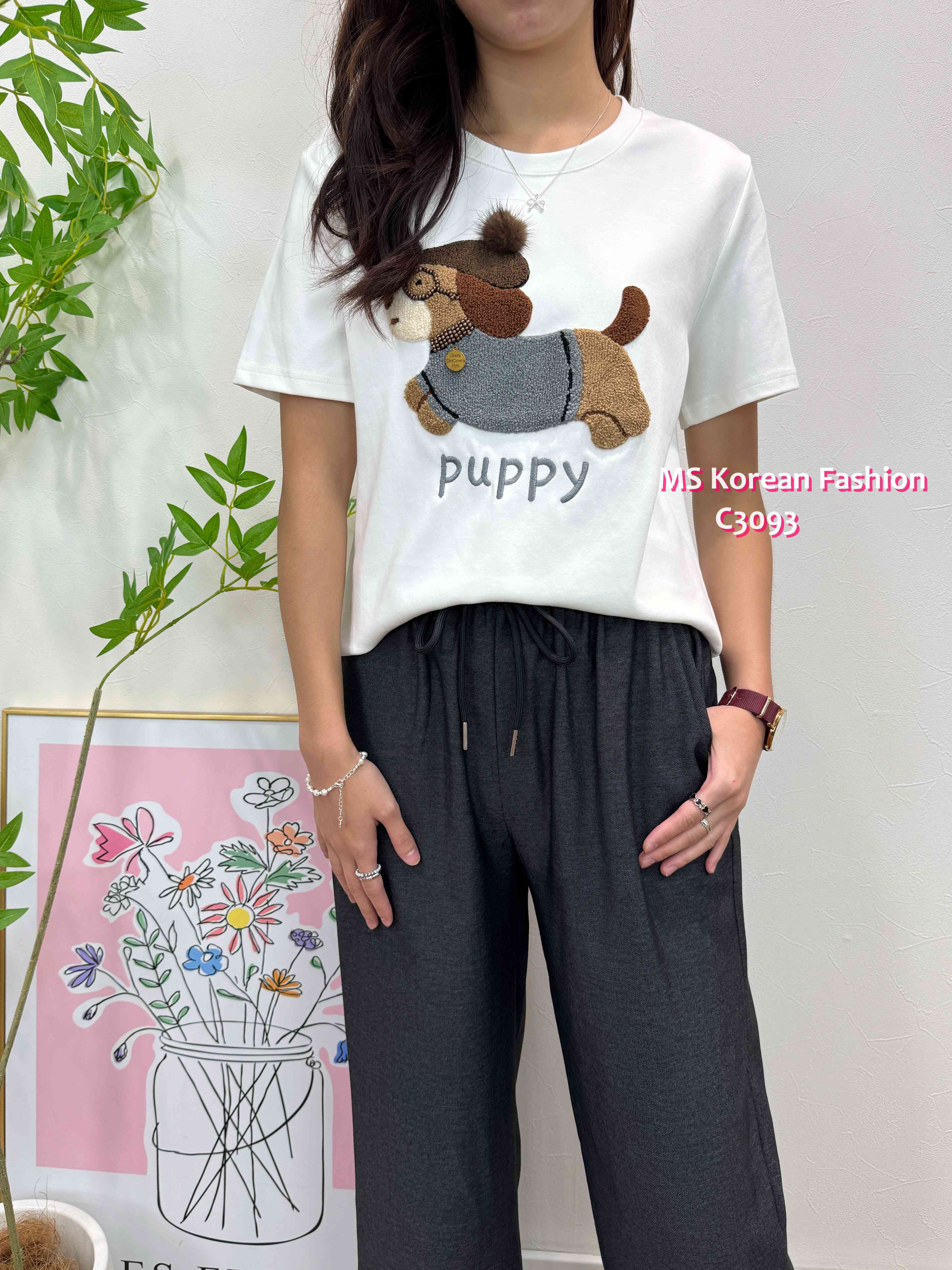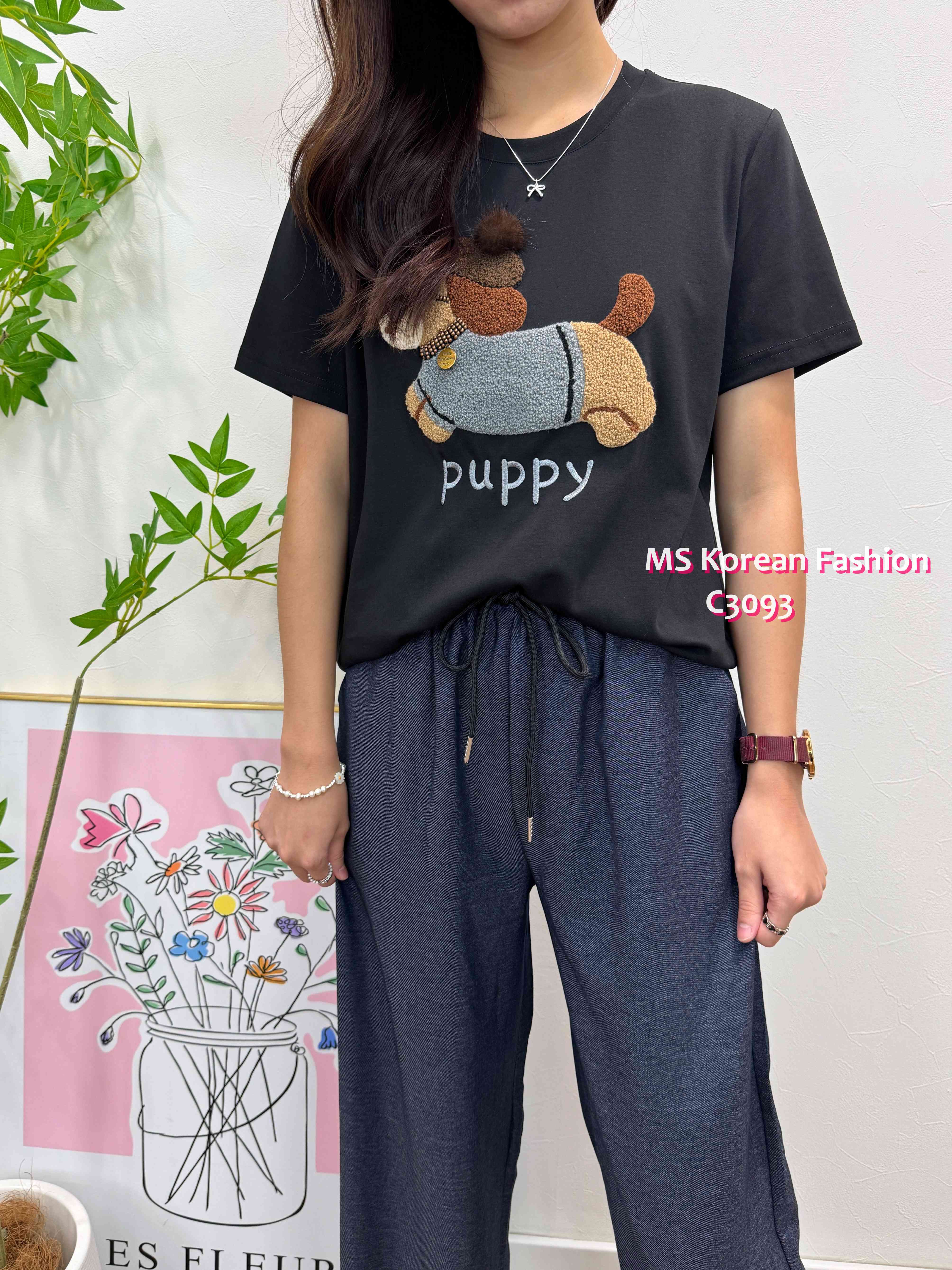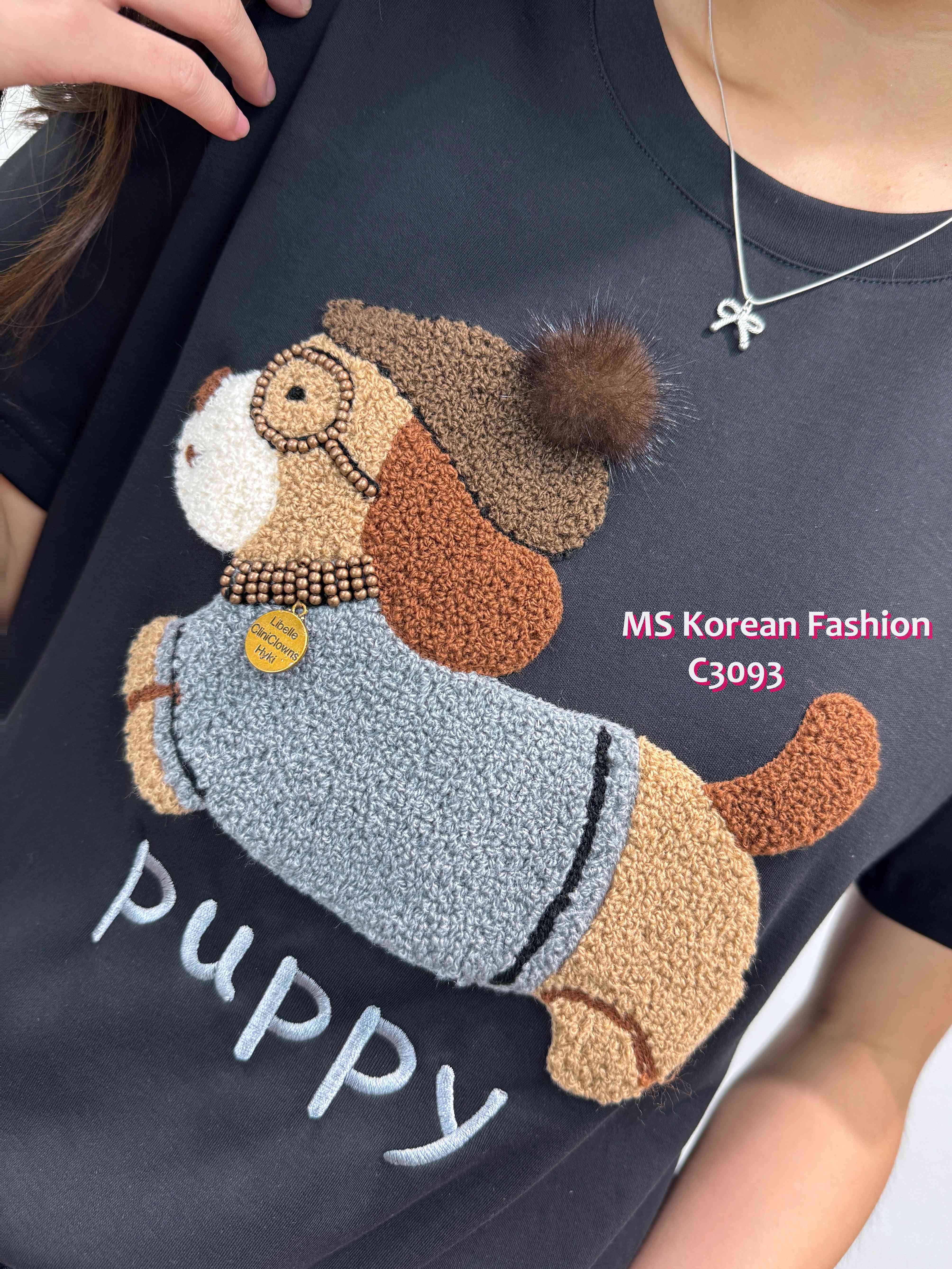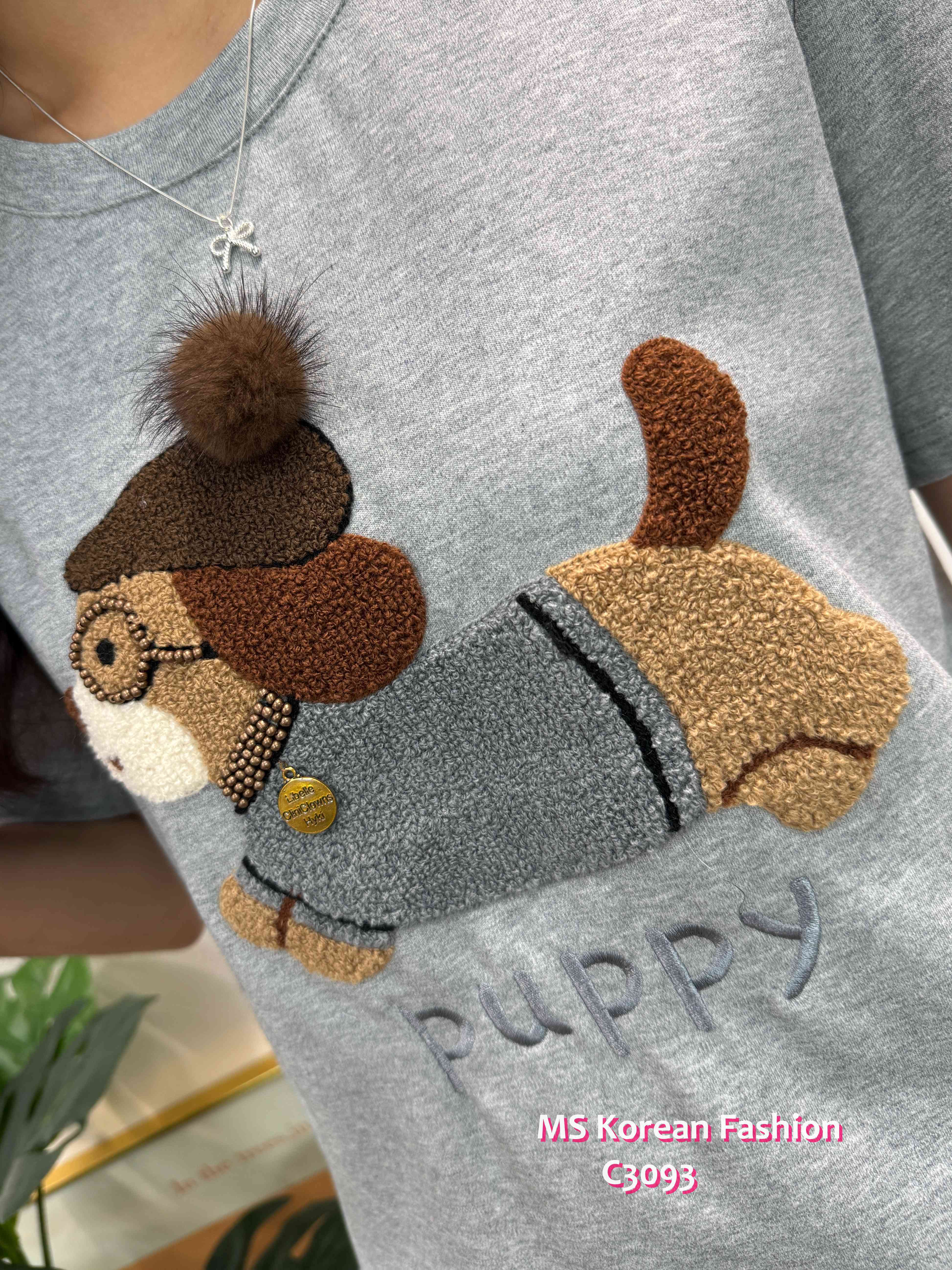 [訂貨約7-10個工作天] 💰💞Happy Price: $179 轉季仲搵到短袖款要好好珍惜 呢款毛毛狗仔print top好kawaii呀🐶 挺身靚棉料 單著或襯外套都一流✌ 黑、米、灰 3色 尺寸 肩15"/胸38">拉開42"/長23.5" 📫1件加$15包順豐站/智能櫃,2件包順豐(順豐站/智能櫃/工商/住宅) 📱查詢及Order可Inbox或Whatsapp 6317 3061