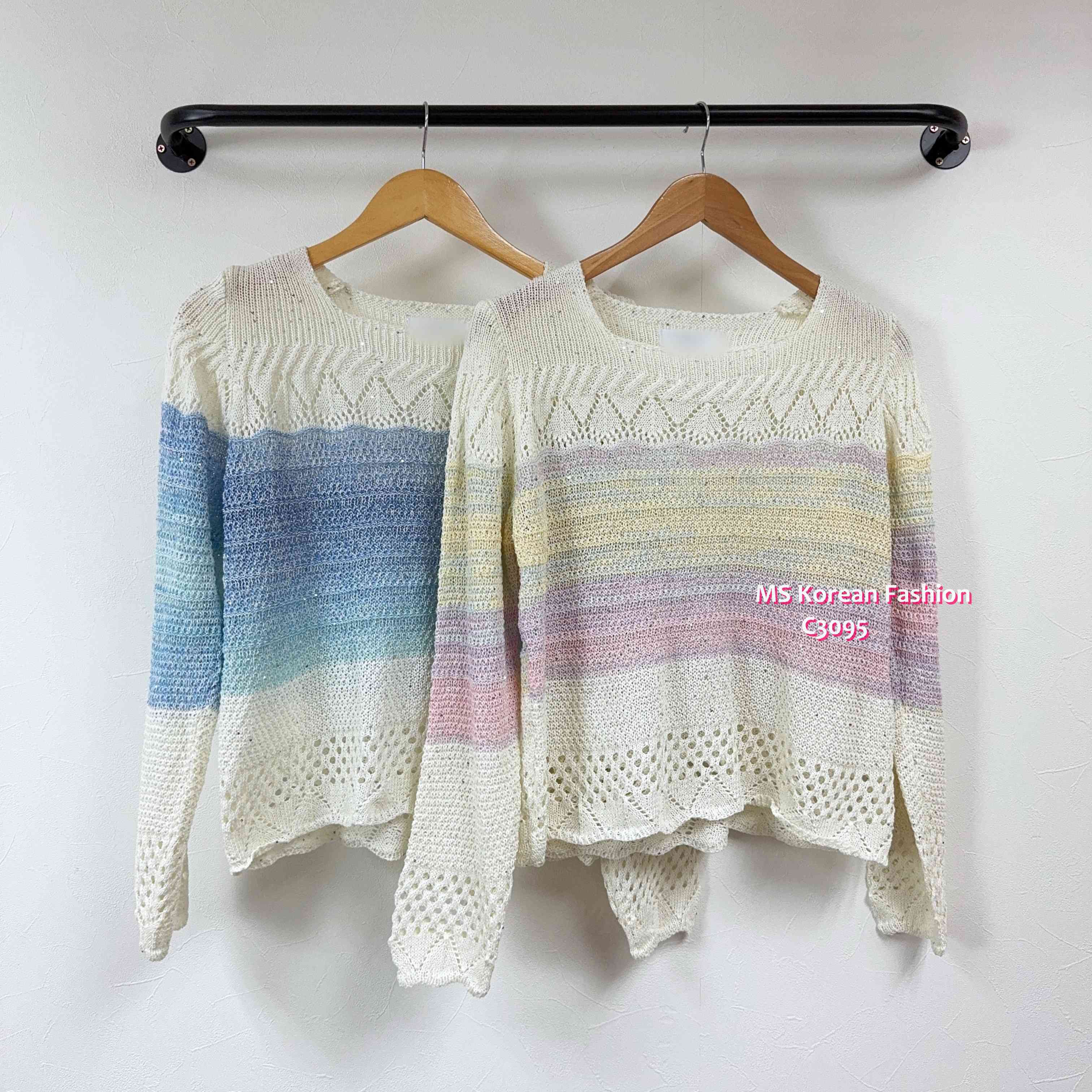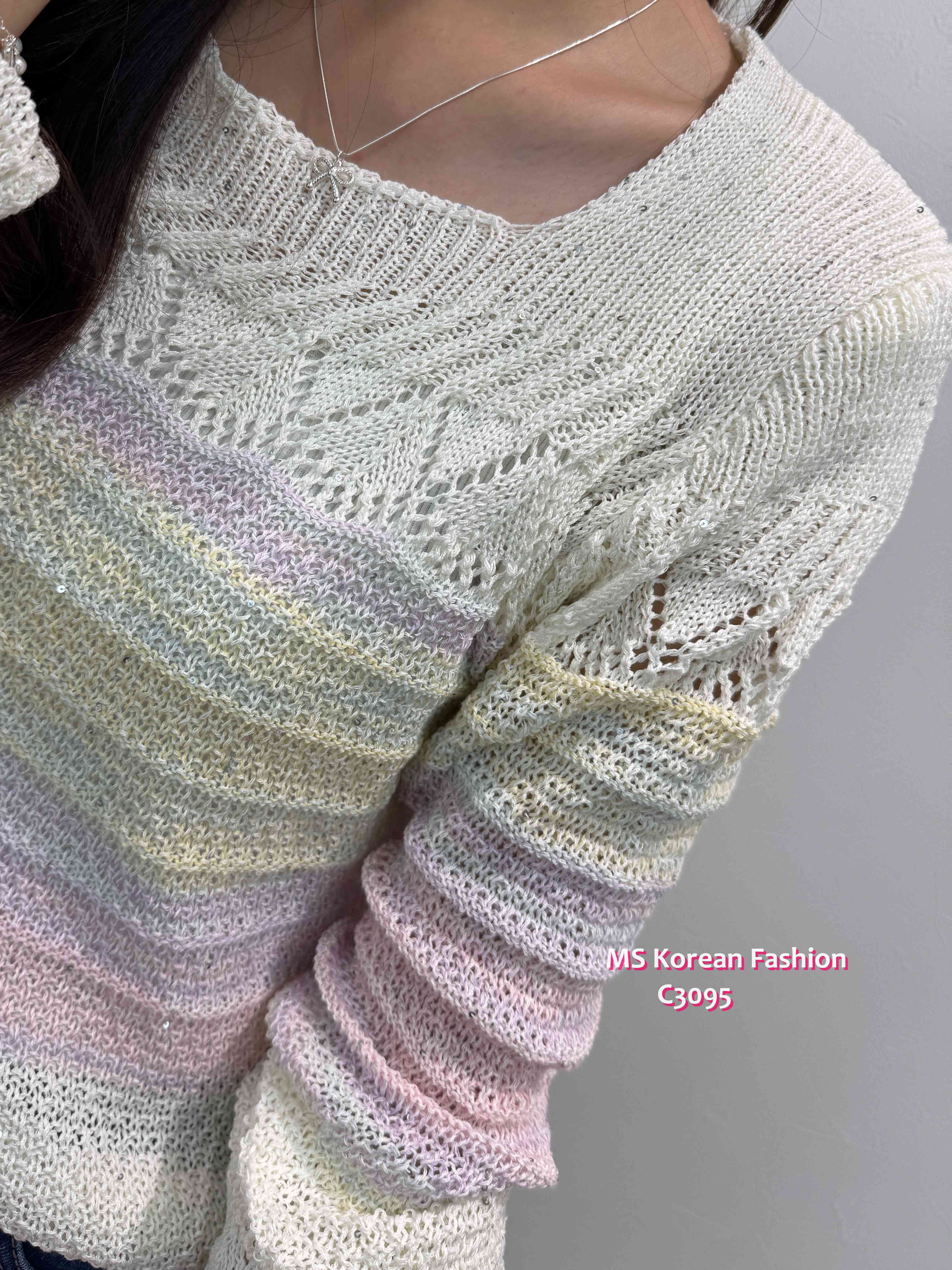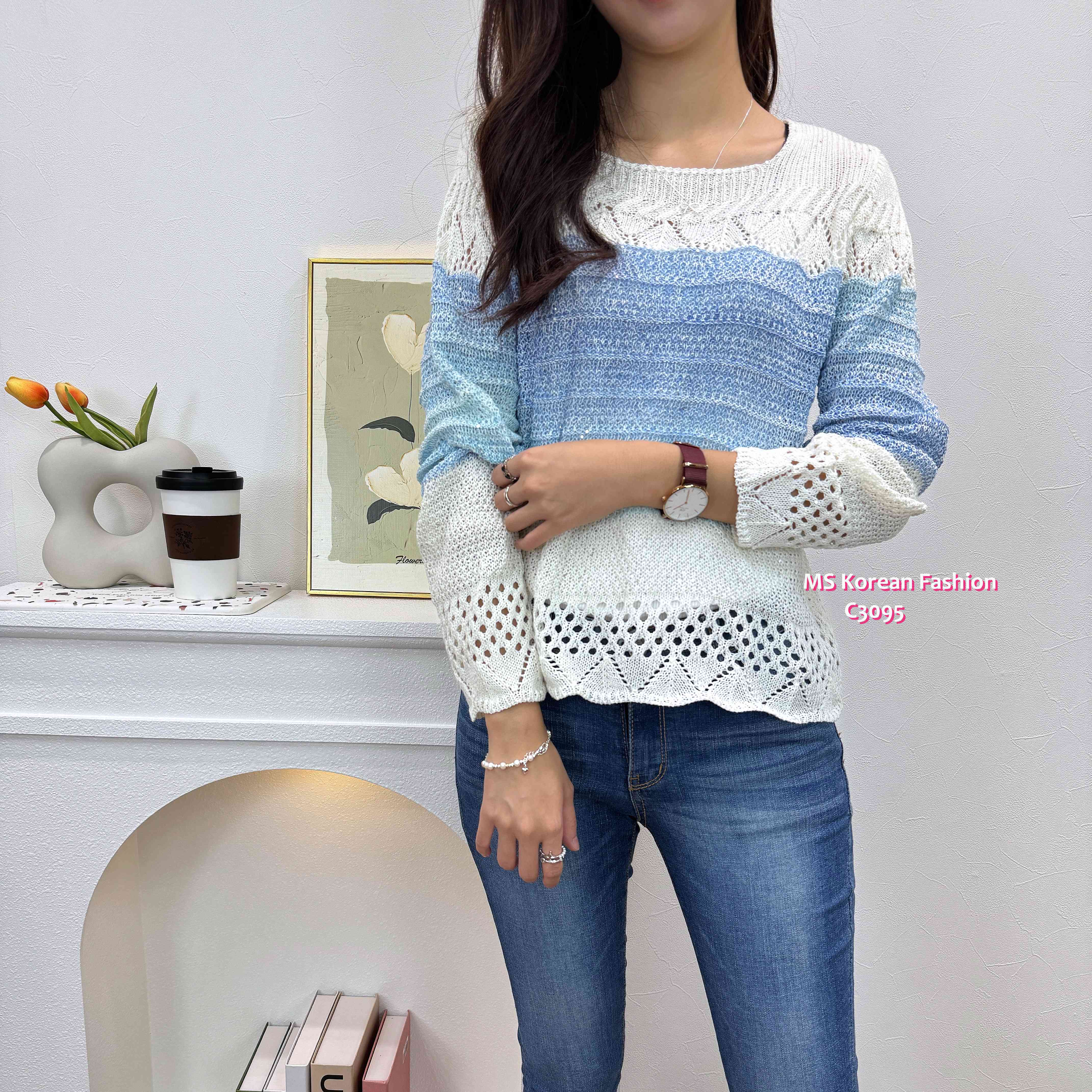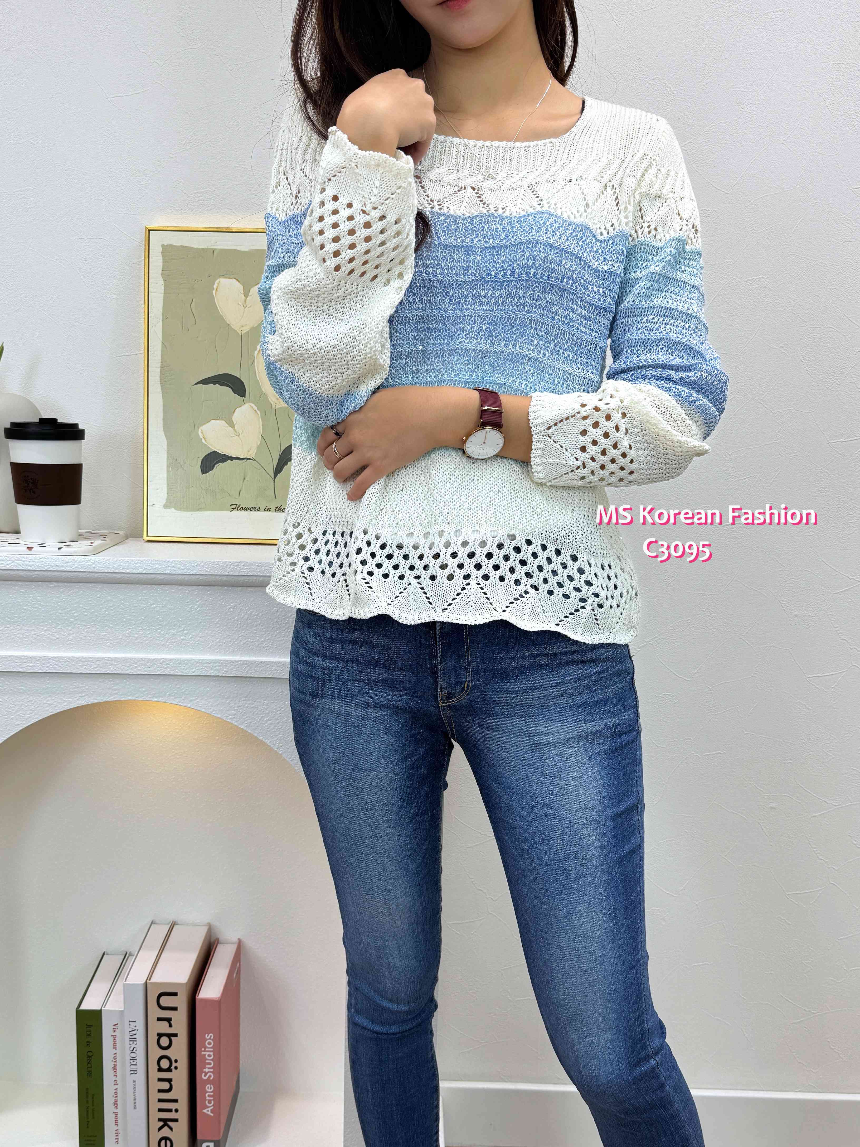 C3095 韓國🇰🇷靚色通花腳針織top