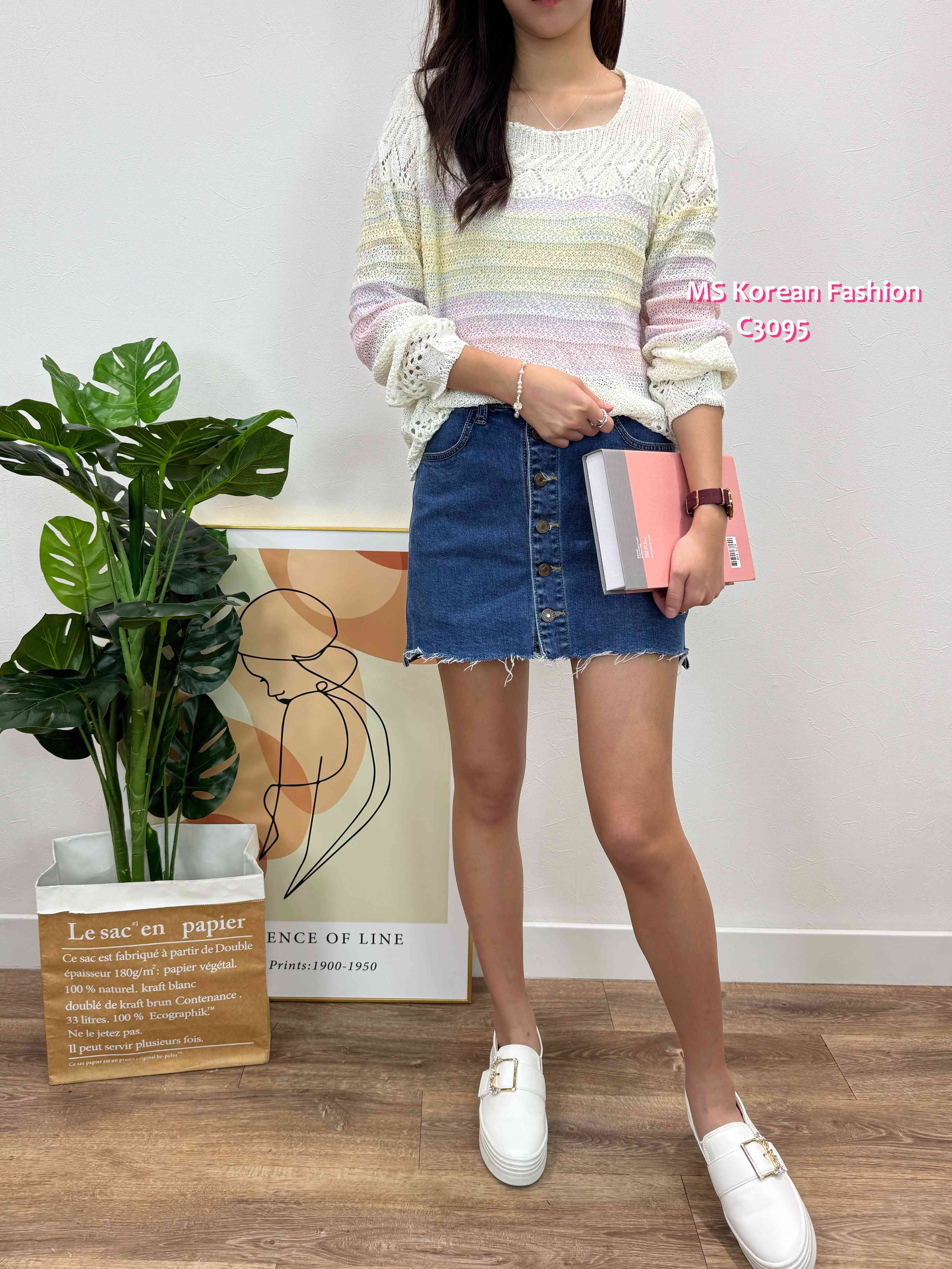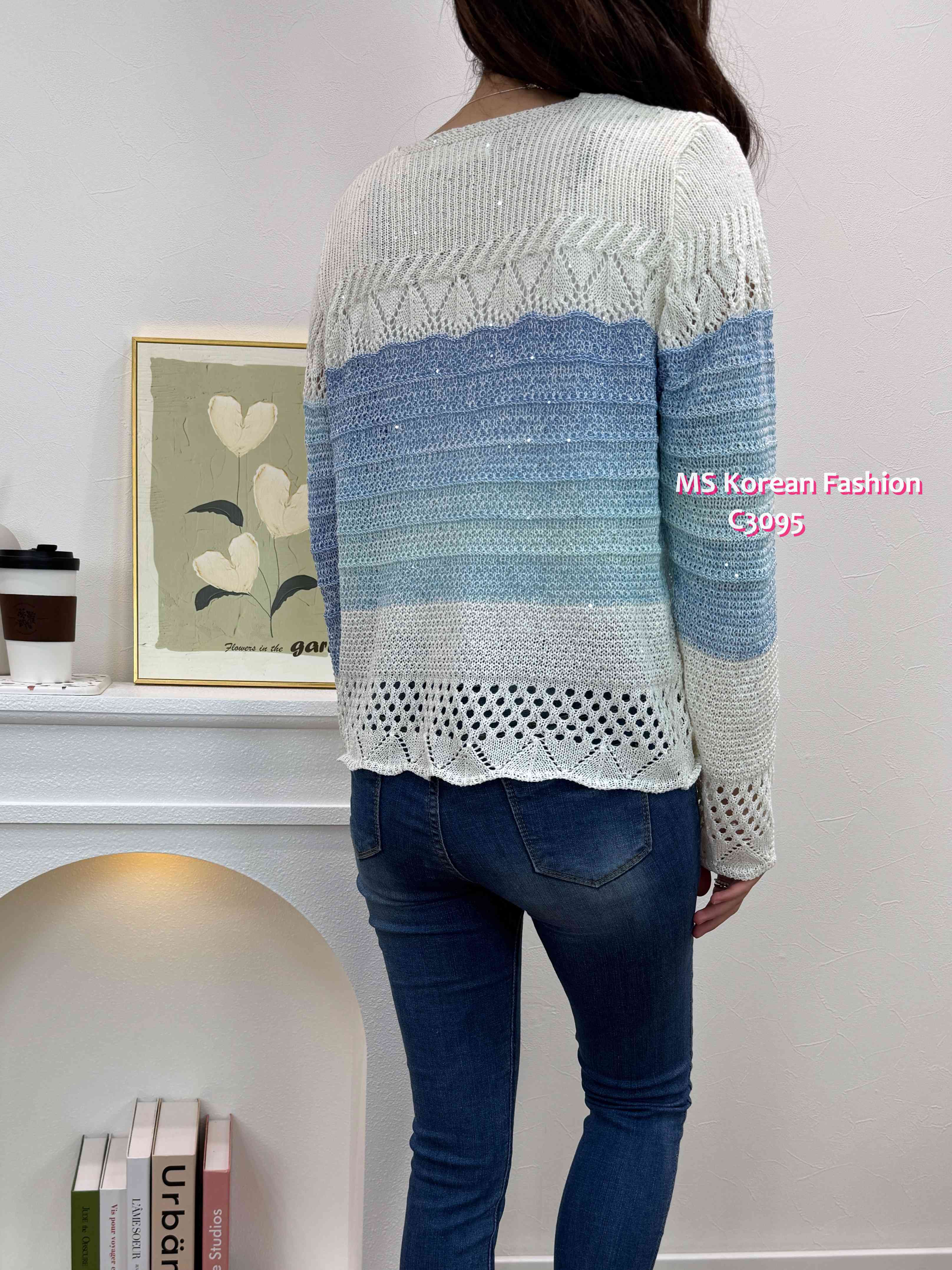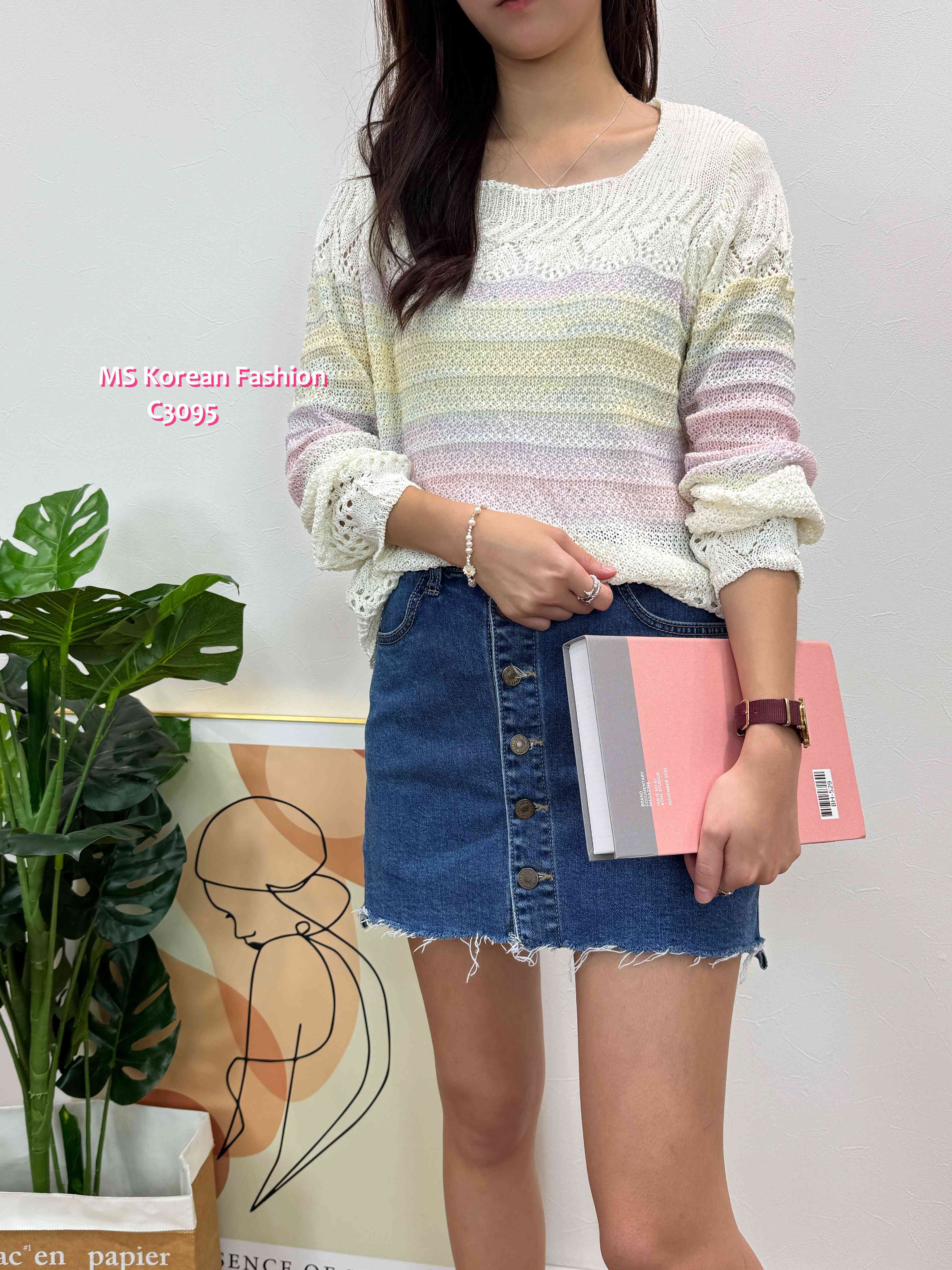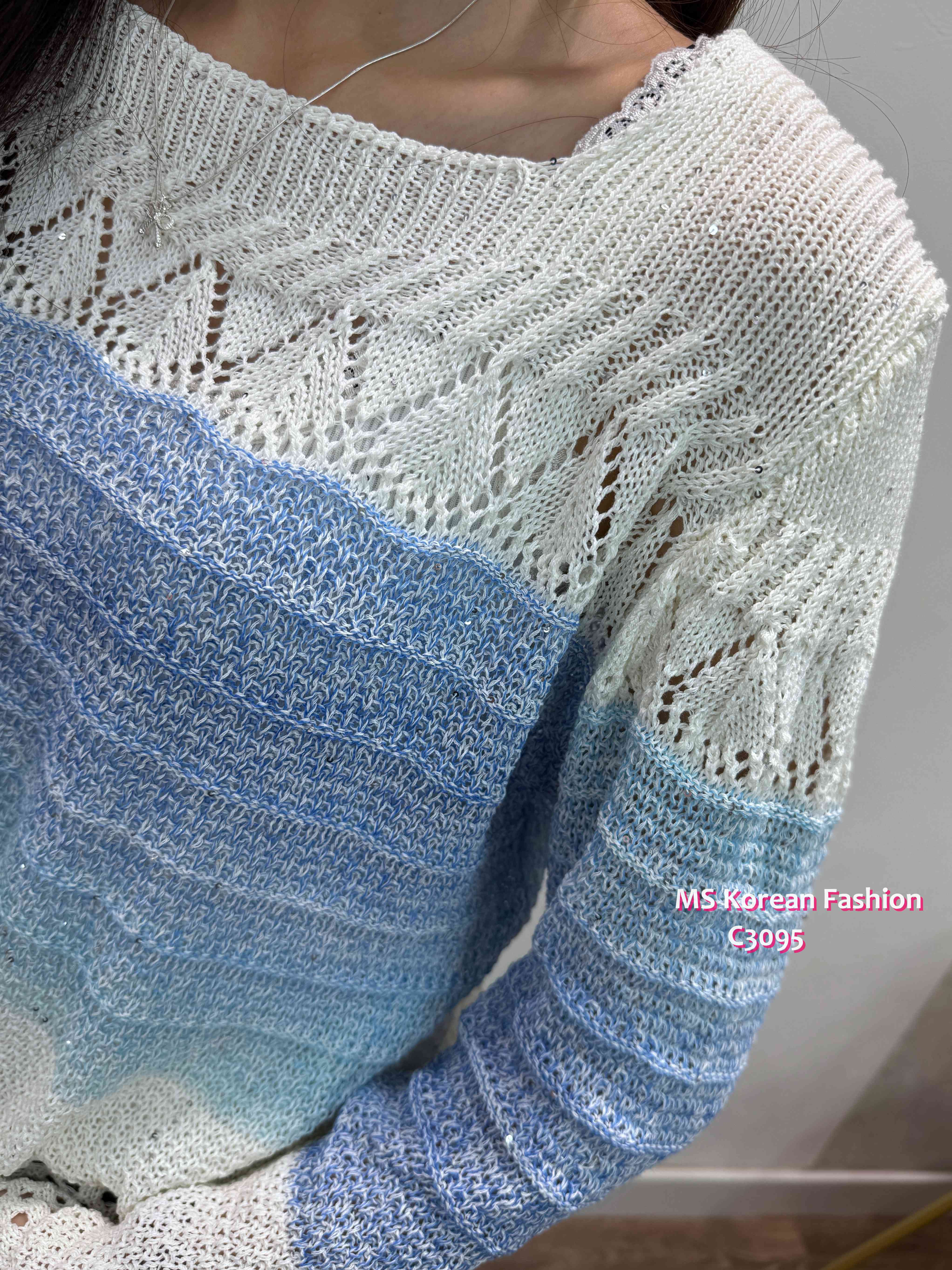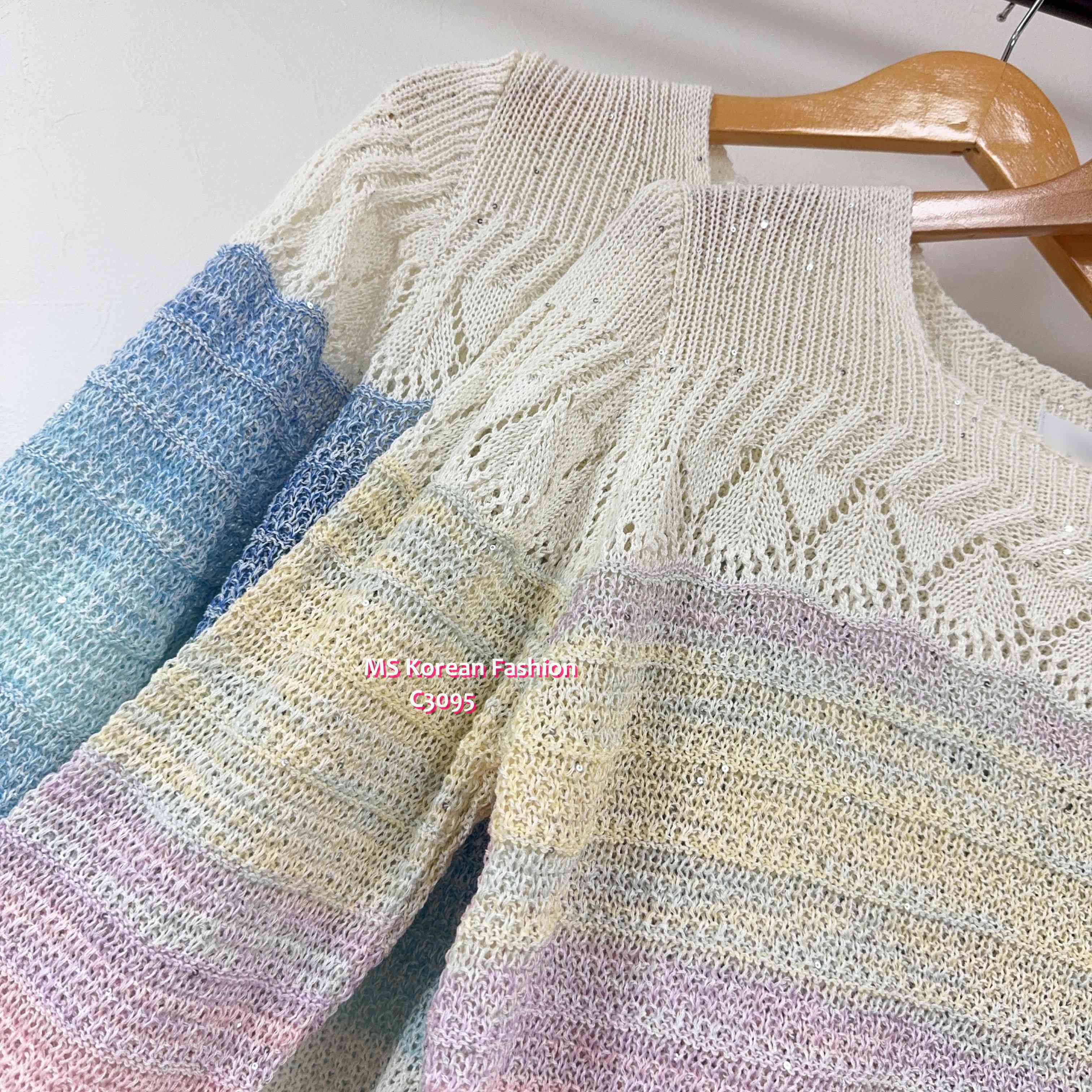C3095 韓國🇰🇷靚色通花腳針織top