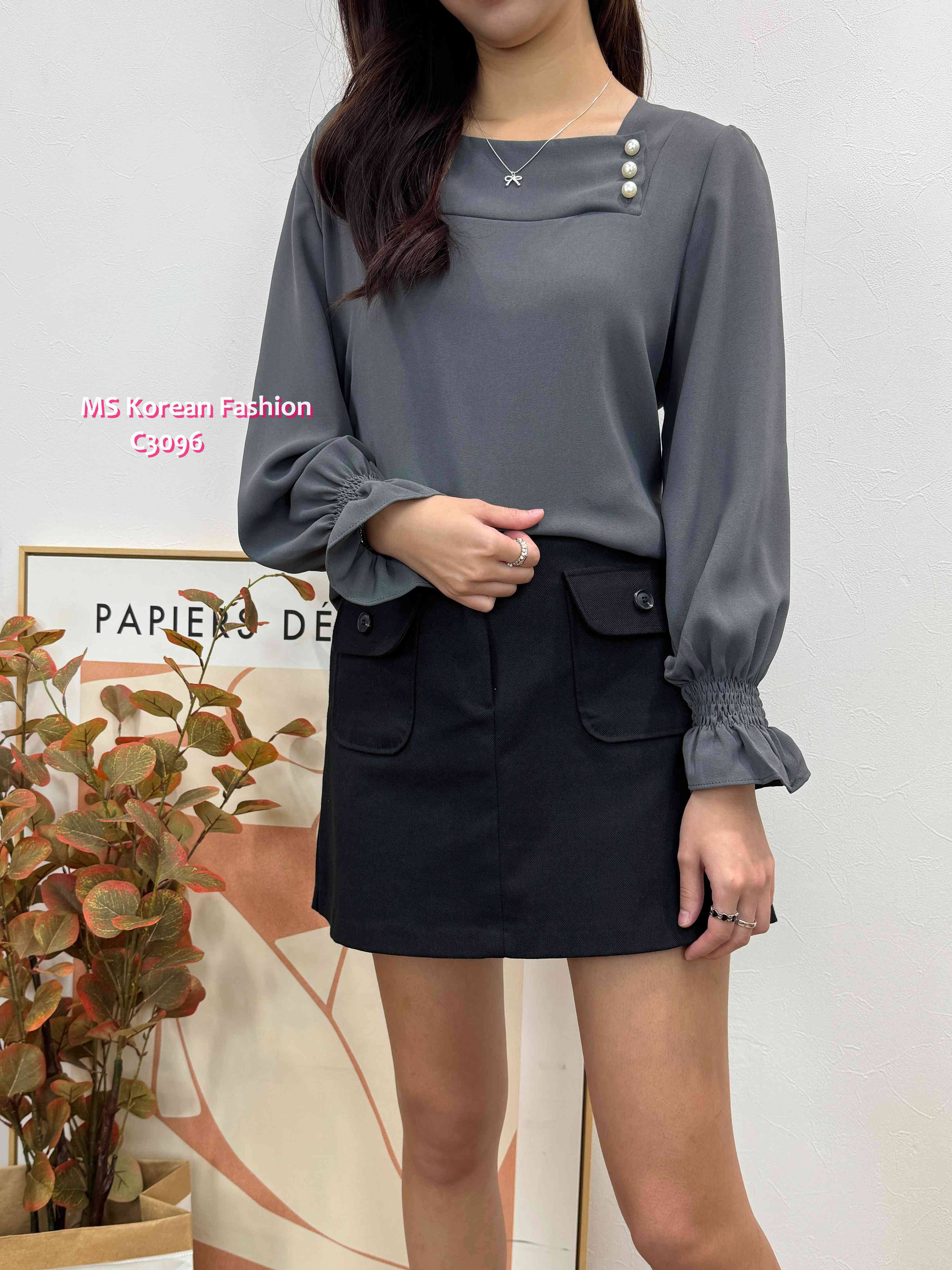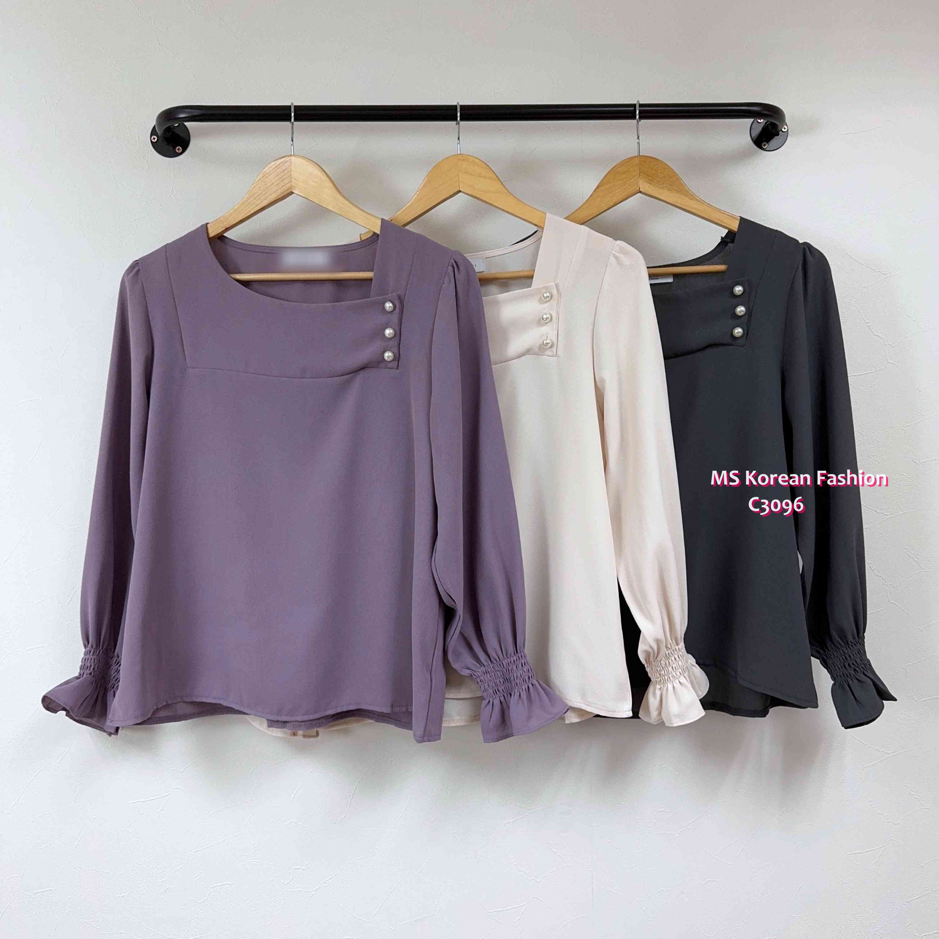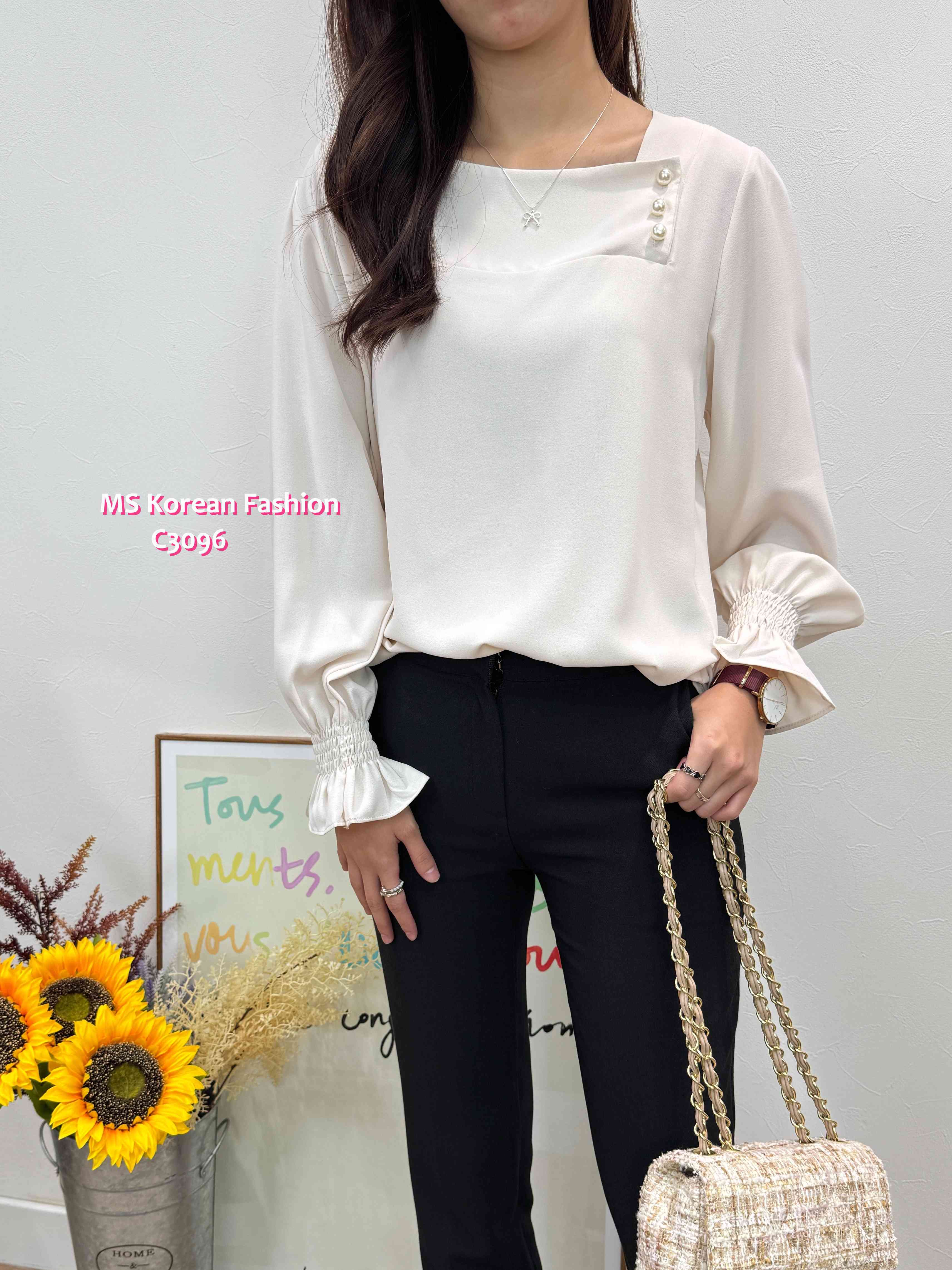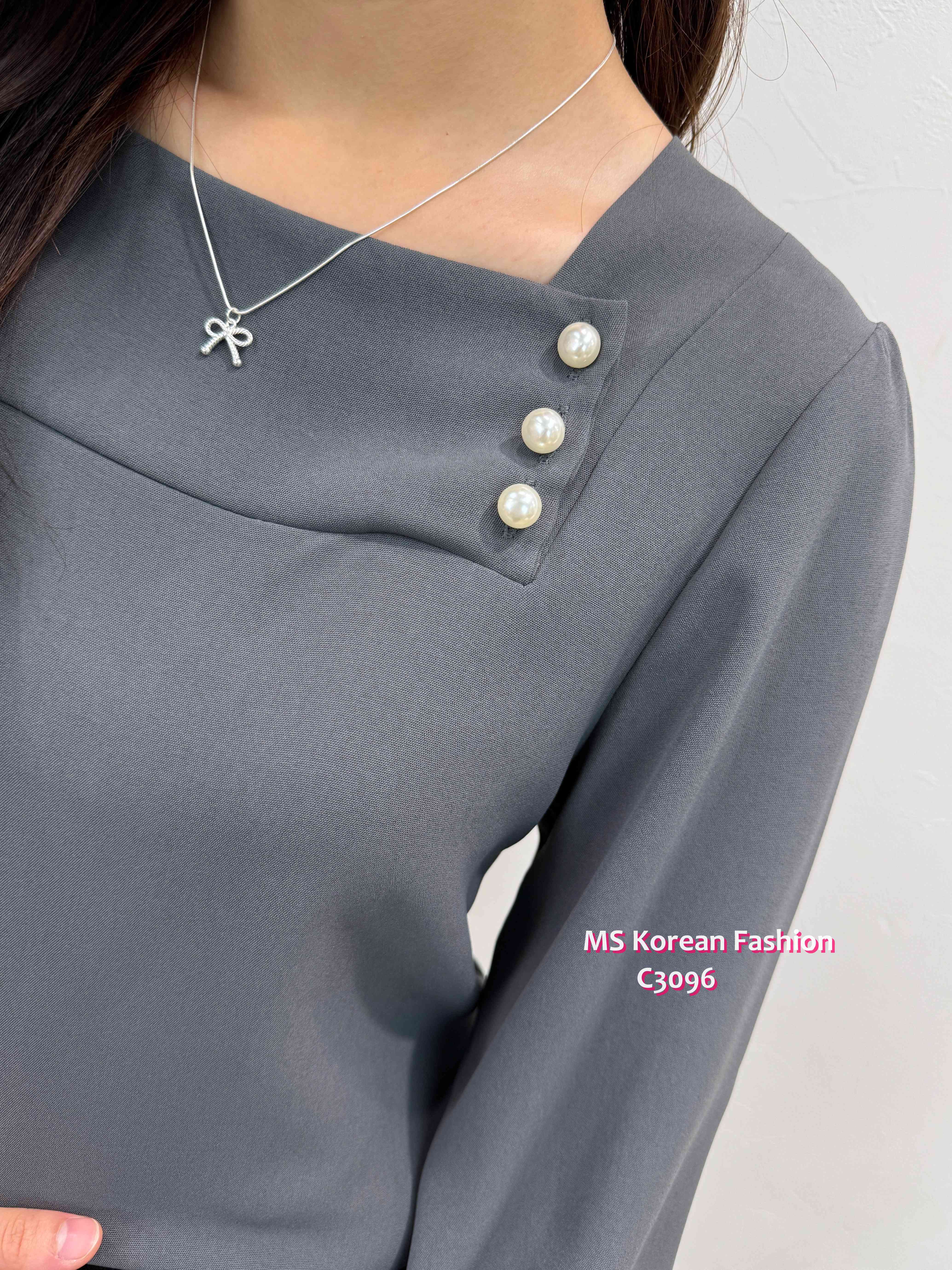 C3096 韓國🇰🇷靚色方領珠鈕top