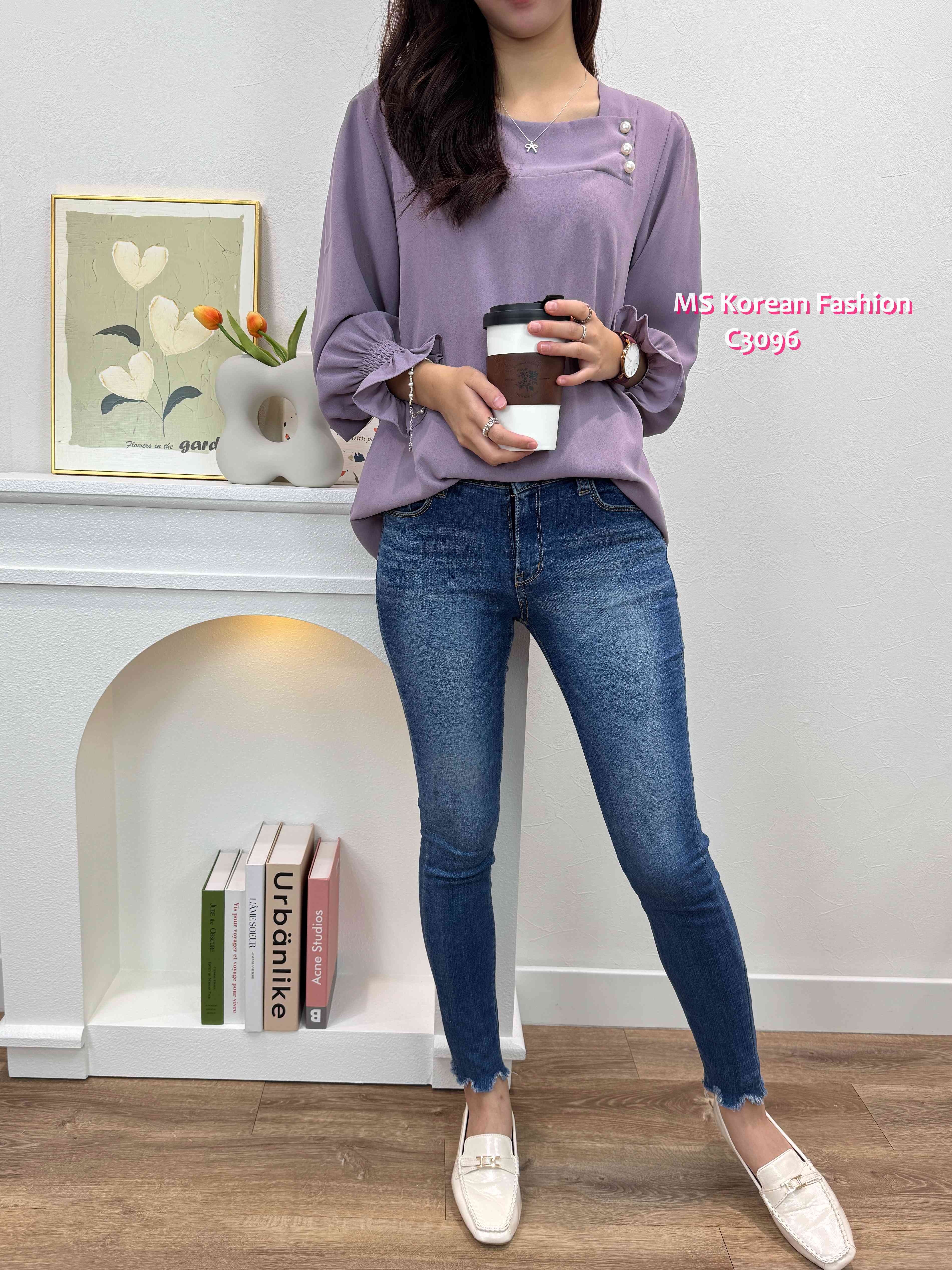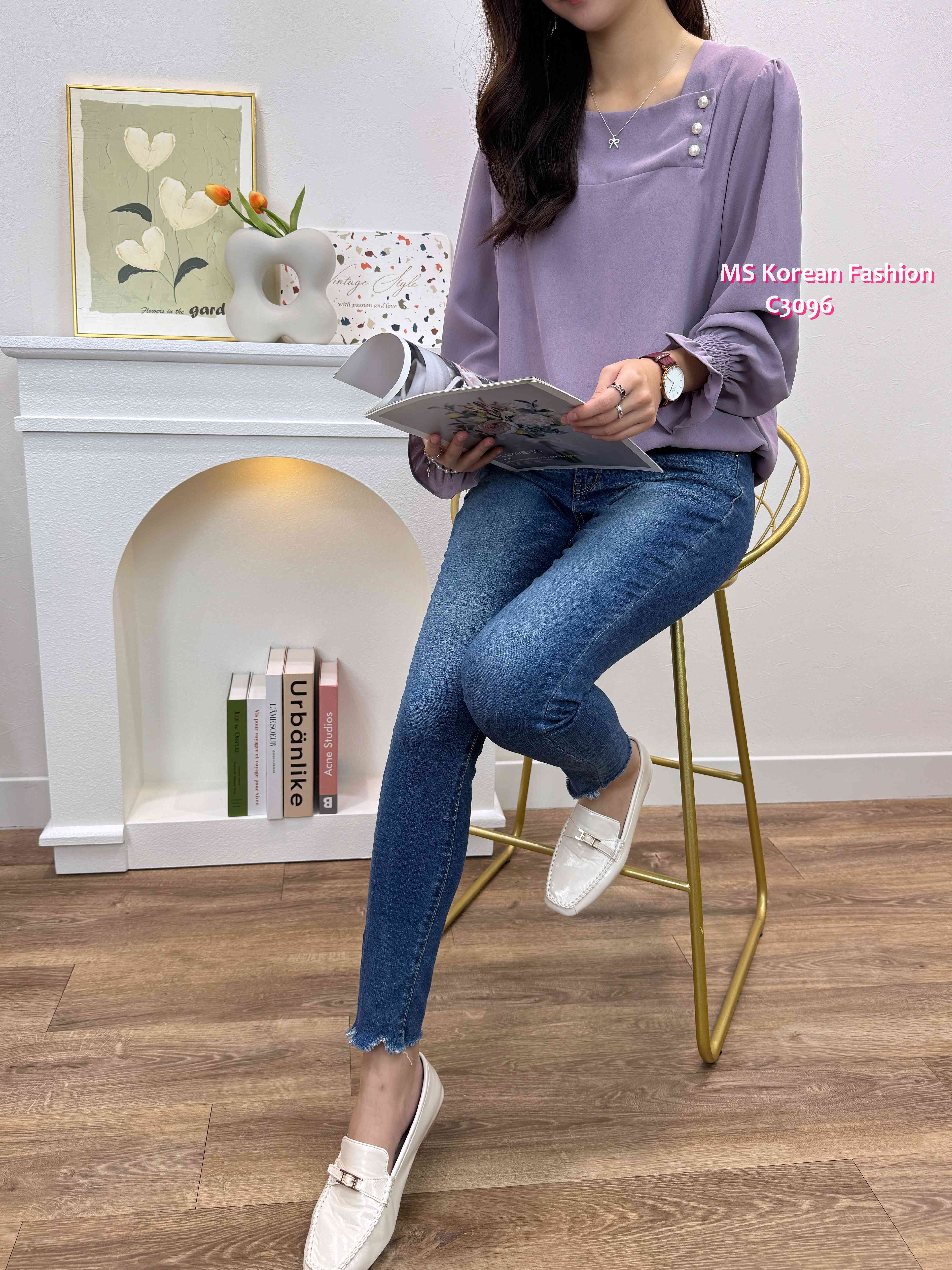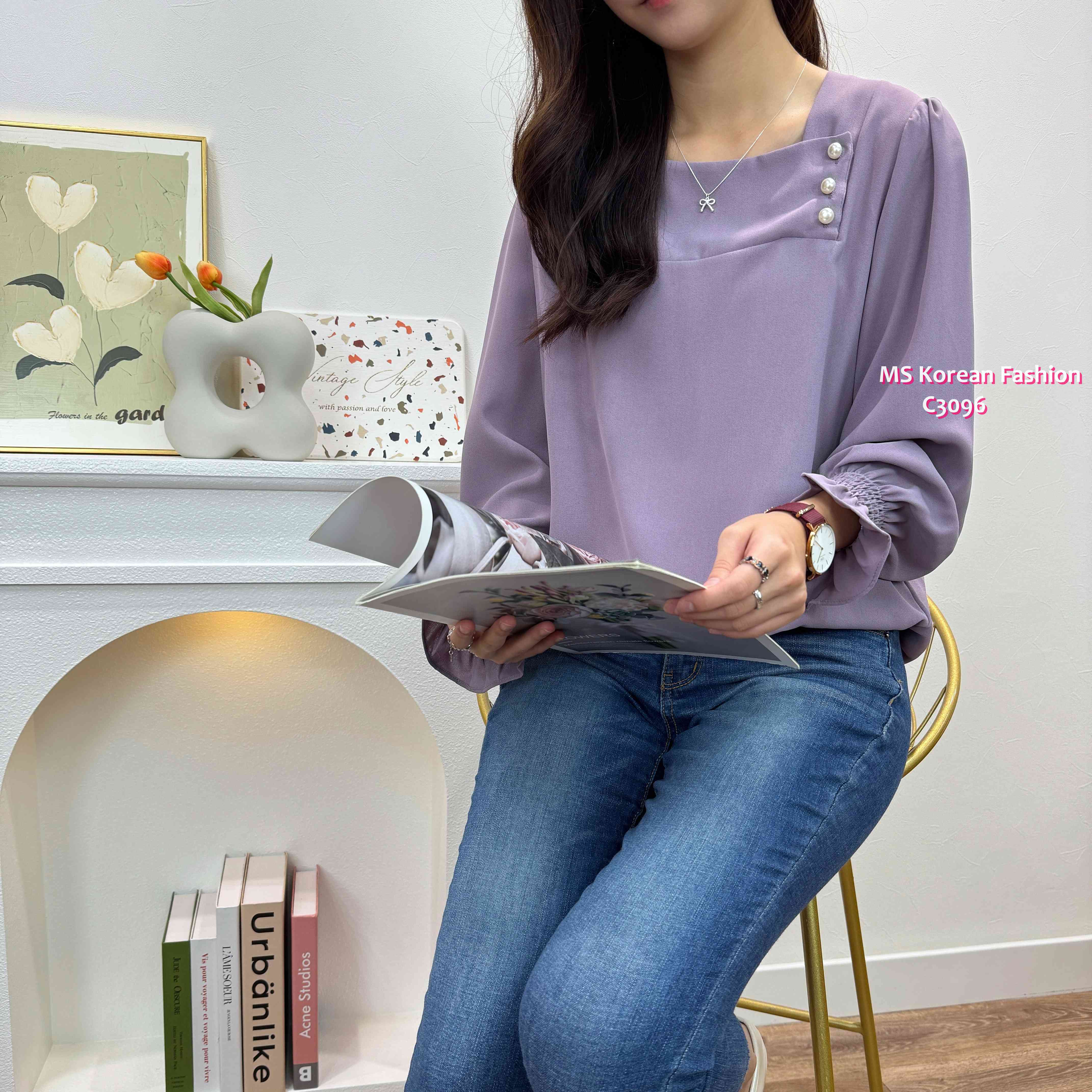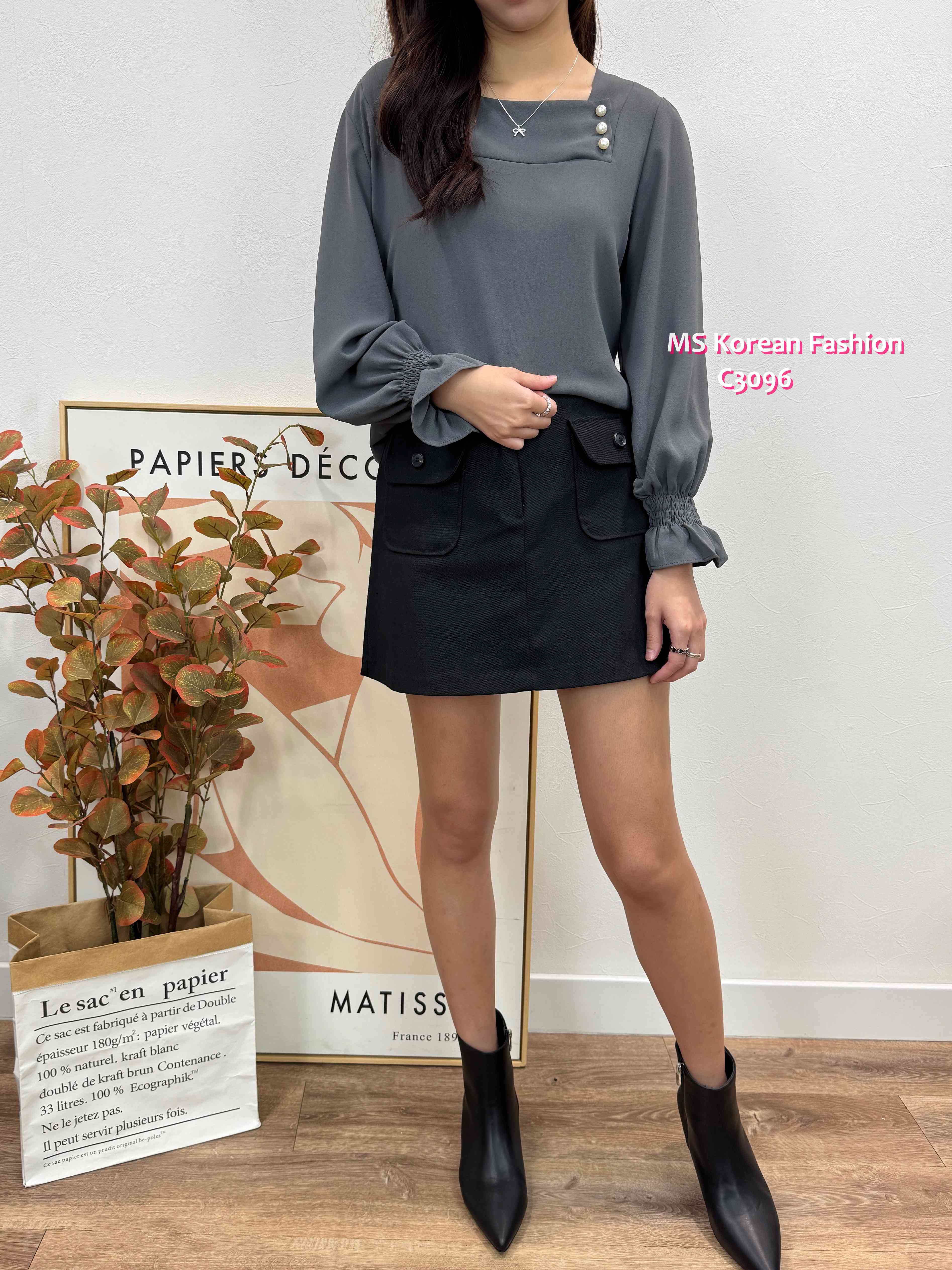 C3096 韓國🇰🇷靚色方領珠鈕top