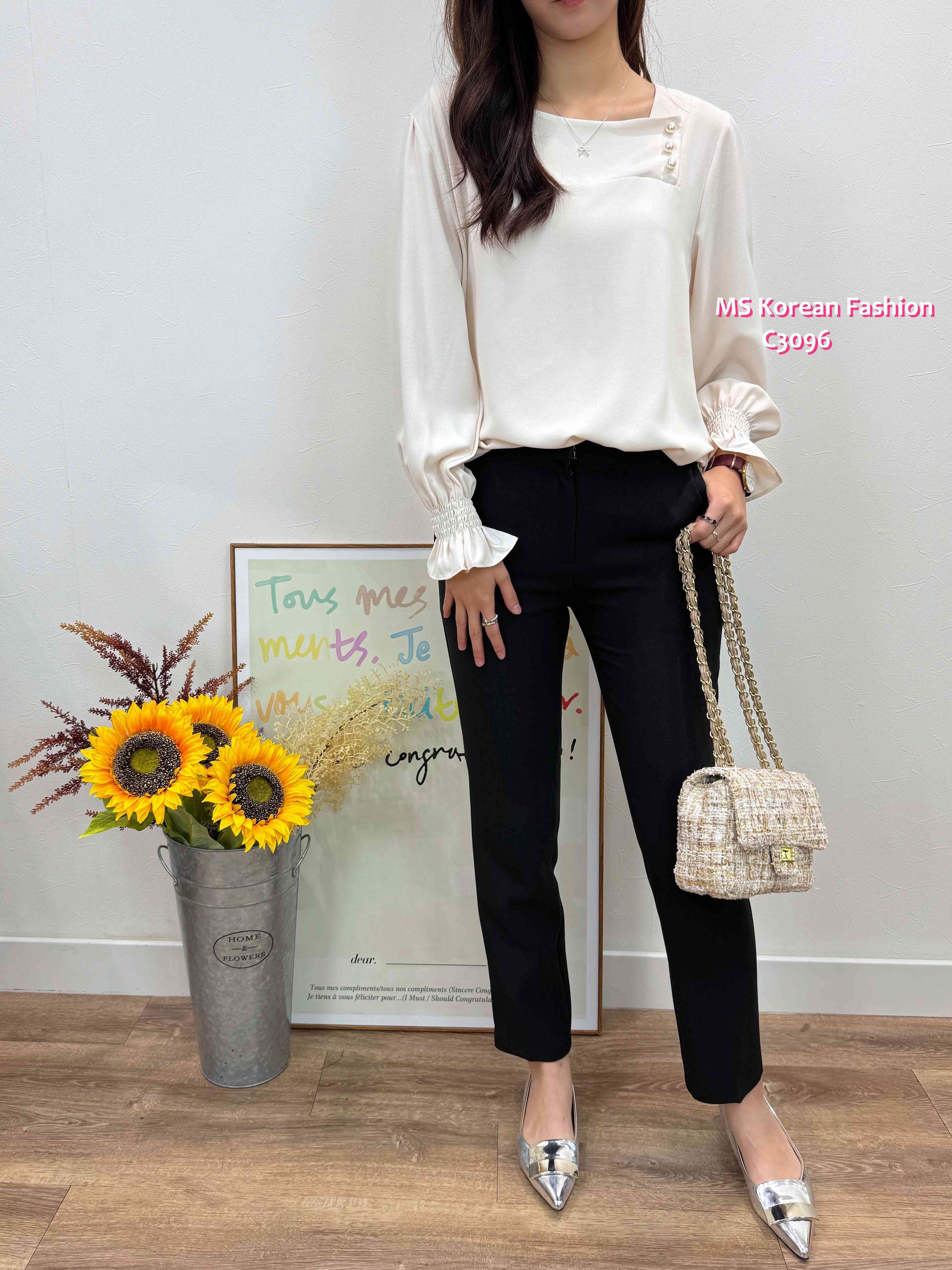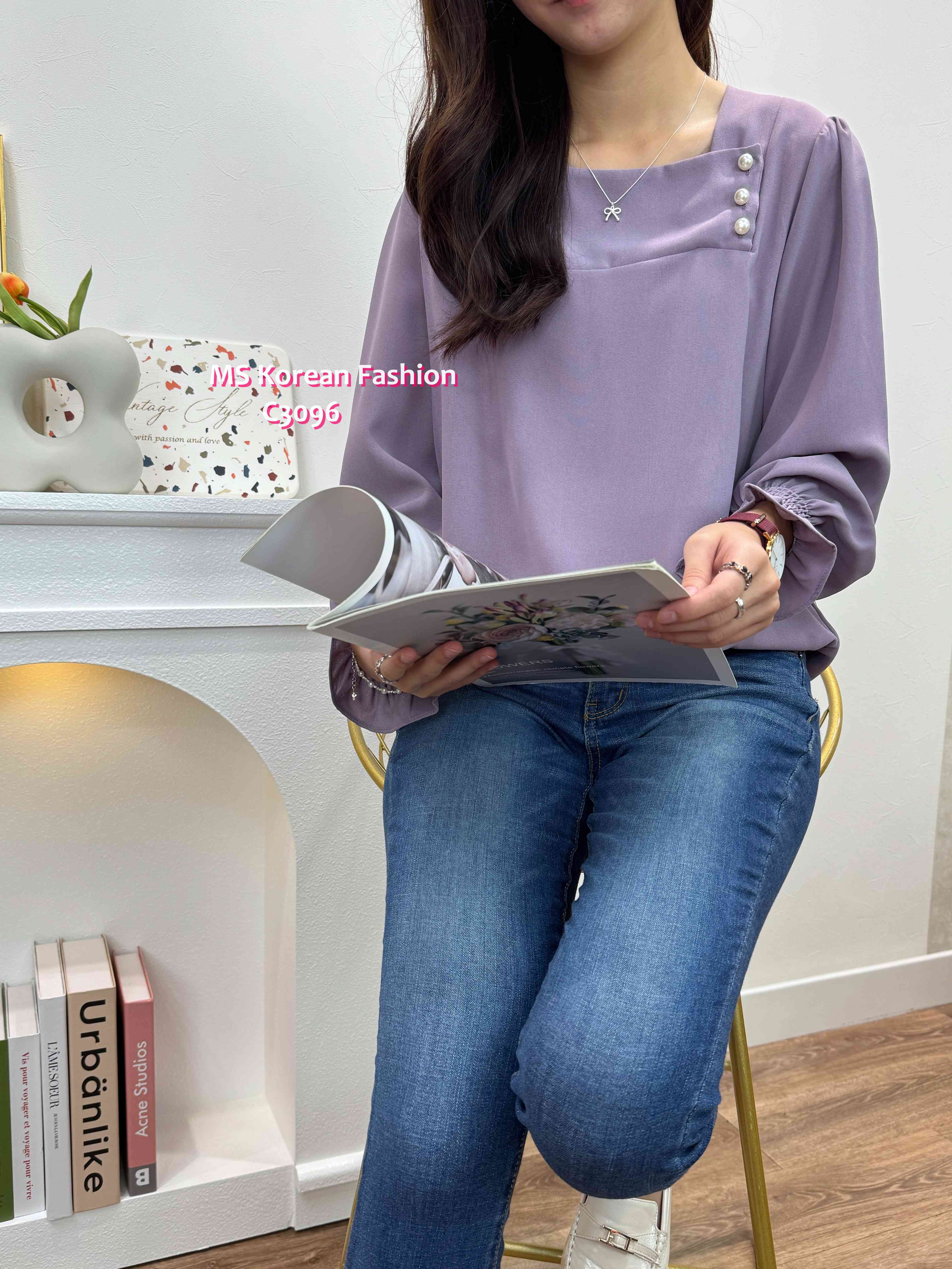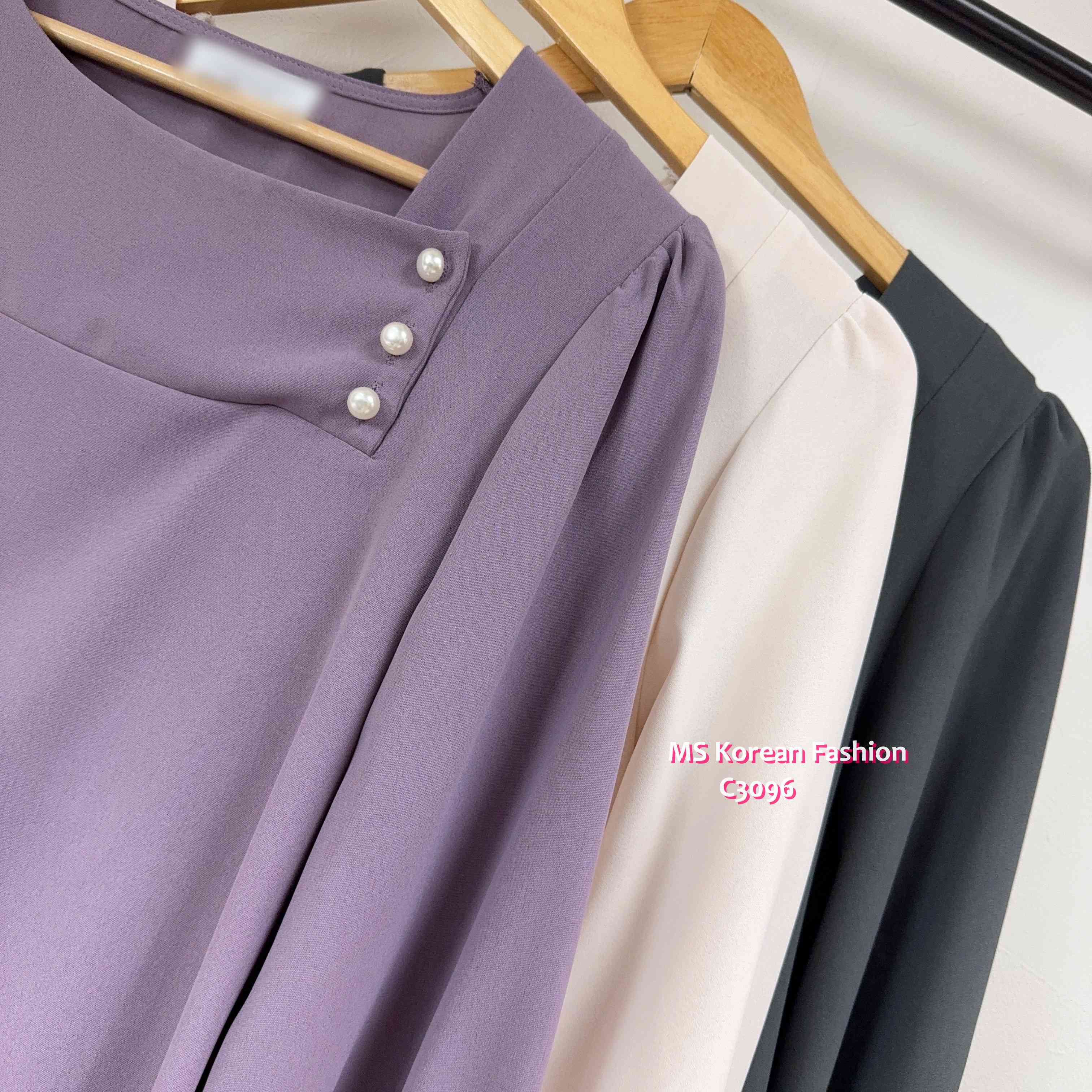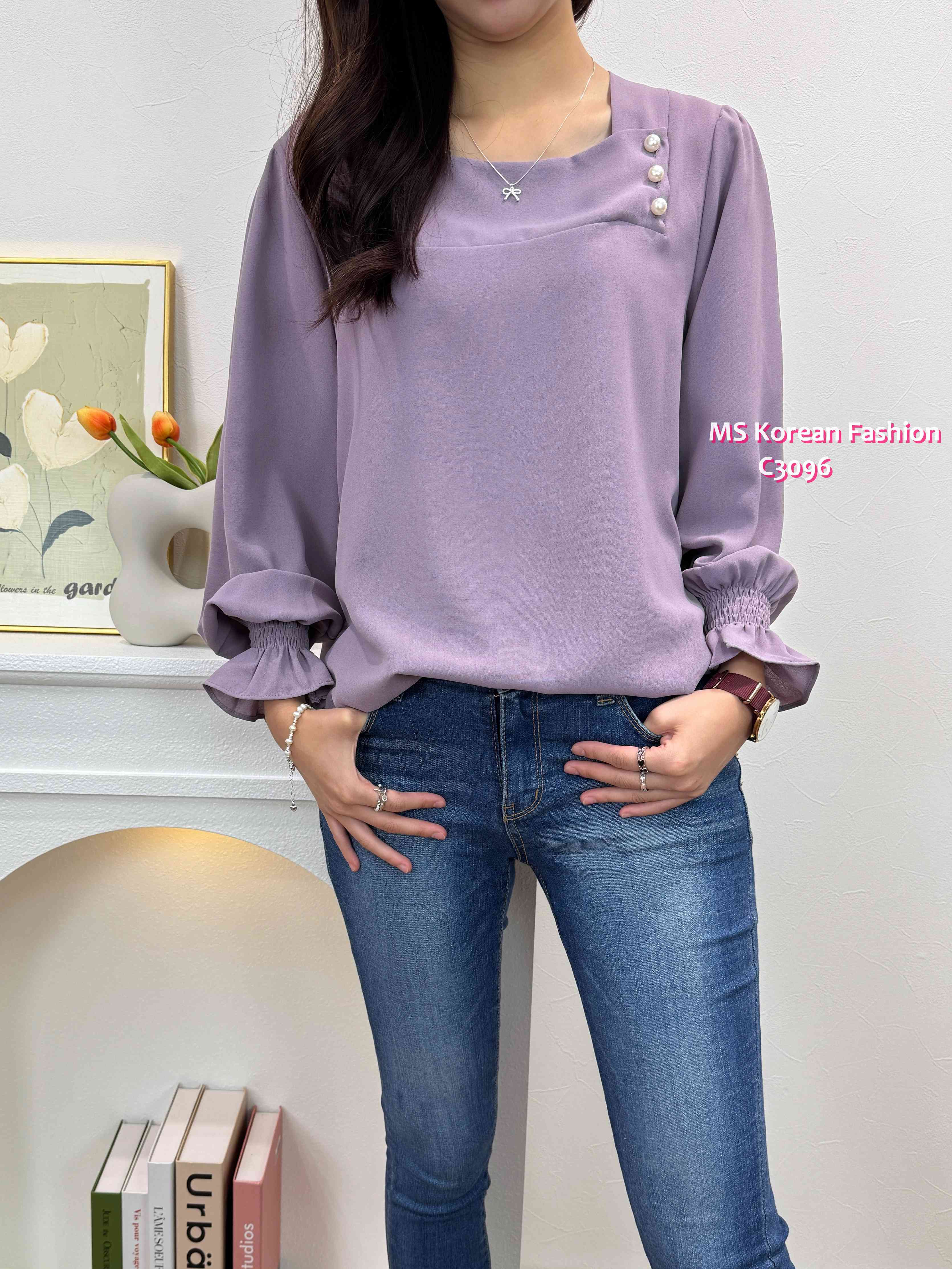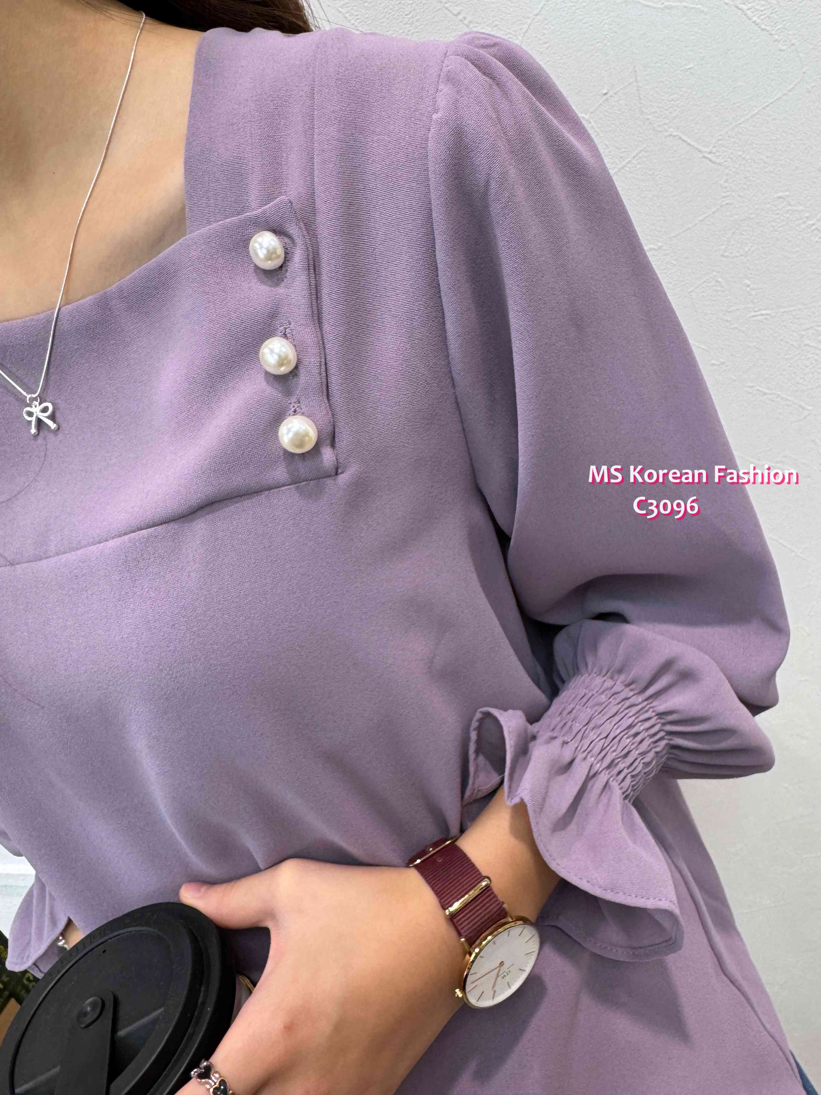 [訂貨約7-10個工作天] 💰💞Happy Price: $179 靚色方領珠鈕top🥳 方領cutting露下鎖骨顯瘦D 雪紡料OL返工著一流 假日出街casual look一樣好睇架👍 紫、米、灰 3色 尺寸 肩15.5"/胸40"/長23" 📫1件加$15包順豐站/智能櫃,2件包順豐(順豐站/智能櫃/工商/住宅) 📱查詢及Order可Inbox或Whatsapp 6317 3061