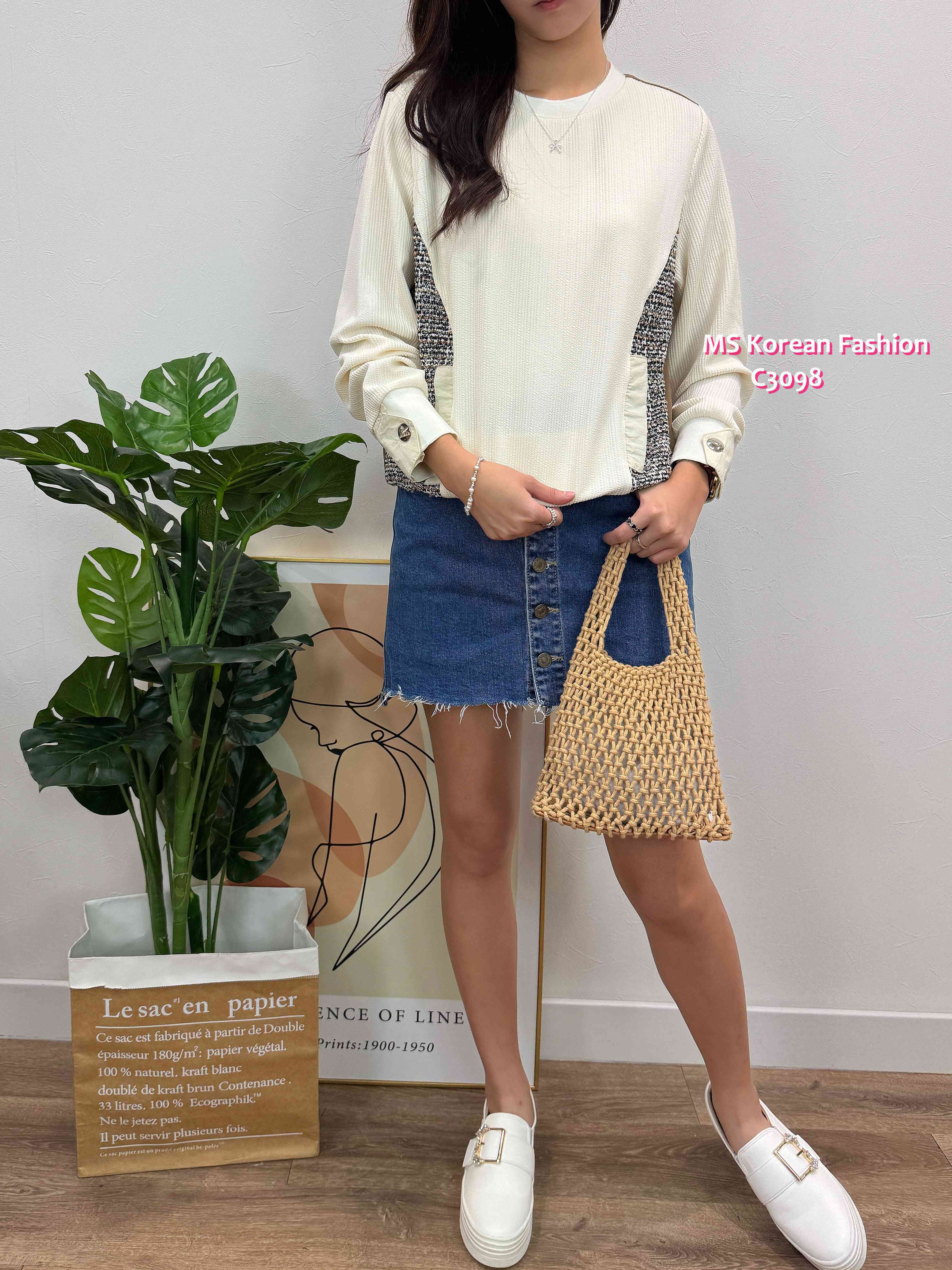 [訂貨約7-10個工作天] 💰💞Happy Price: $169 簡約有款拼布top 暗直紋布料有質感💯 前後都有睇頭 襯裙襯褲都好睇👍 黑、米 2色 尺寸 肩15.5"/胸40">拉開46"/長23" 📫1件加$15包順豐站/智能櫃,2件包順豐(順豐站/智能櫃/工商/住宅) 📱查詢及Order可Inbox或Whatsapp 6317 3061