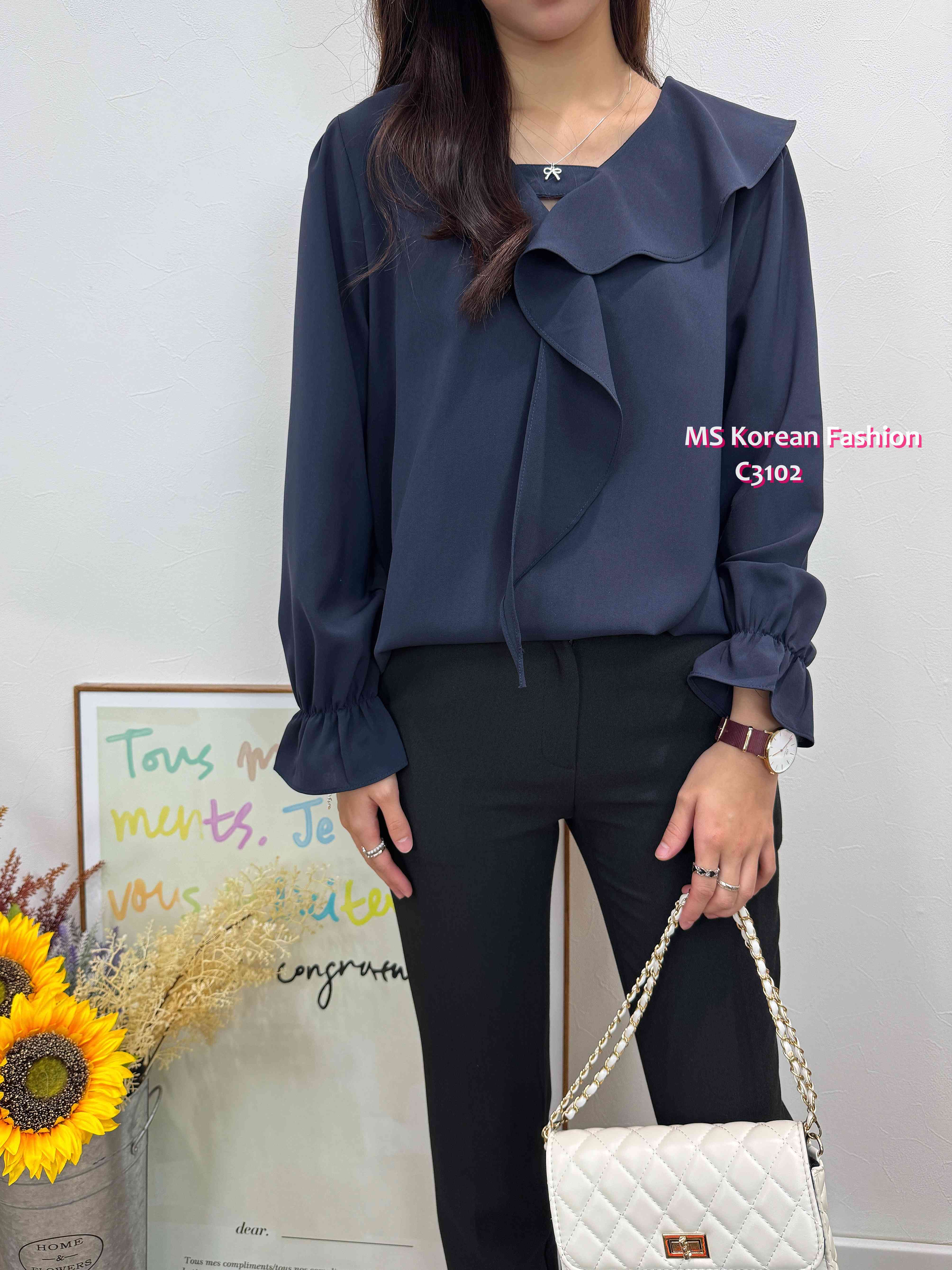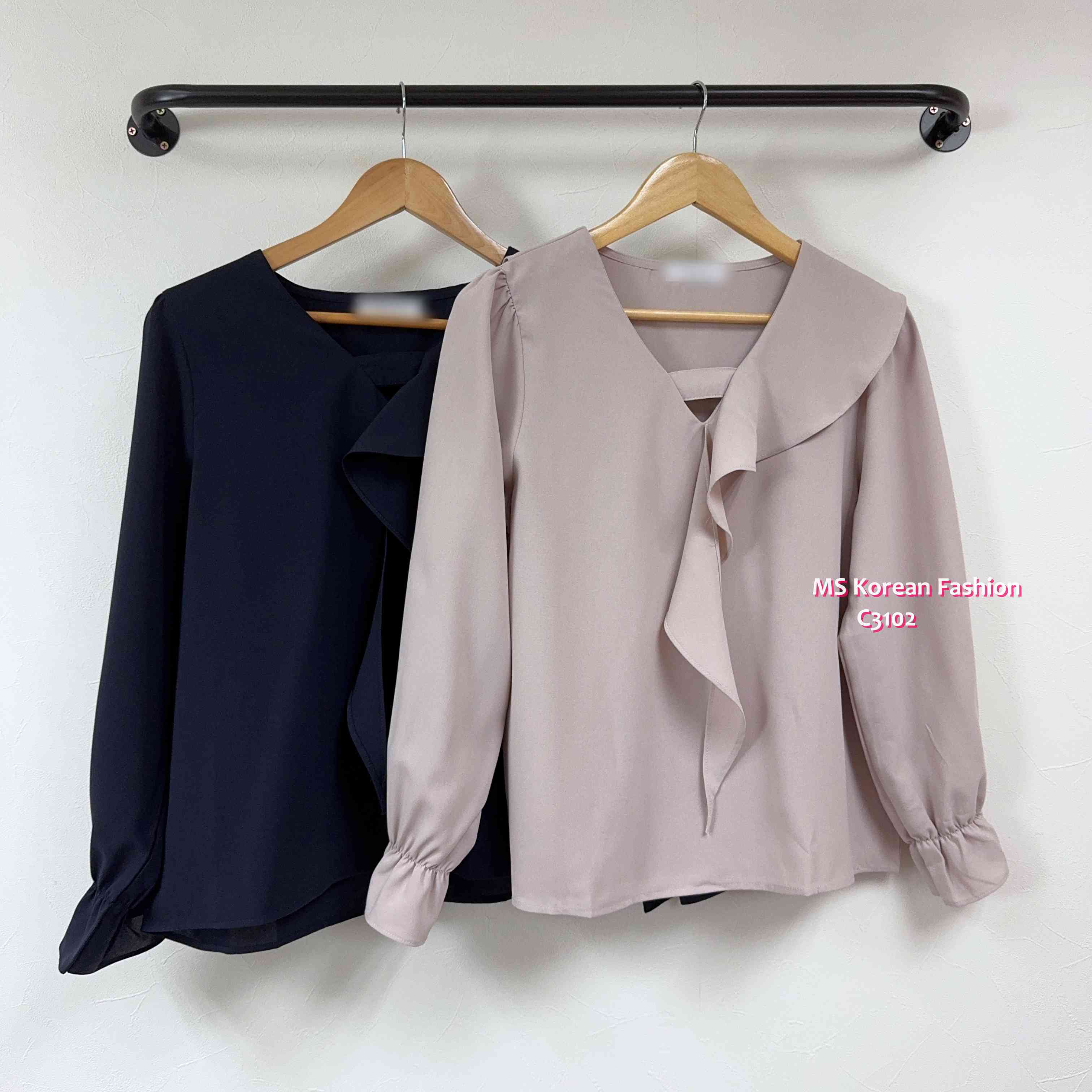 [訂貨約7-10個工作天] 💰💜$189, $179 for vip 雪紡靚料top✨ 領位cutting特別 加埋ruffle點綴💞 斯文或返工look都carry到🥳 寶藍、粉杏 2色 尺寸 肩15.5"/胸40"/長23.5" 📫1件加$15包順豐站/智能櫃,2件包順豐(順豐站/智能櫃/工商/住宅) 📱查詢及Order可Inbox或Whatsapp 6317 3061