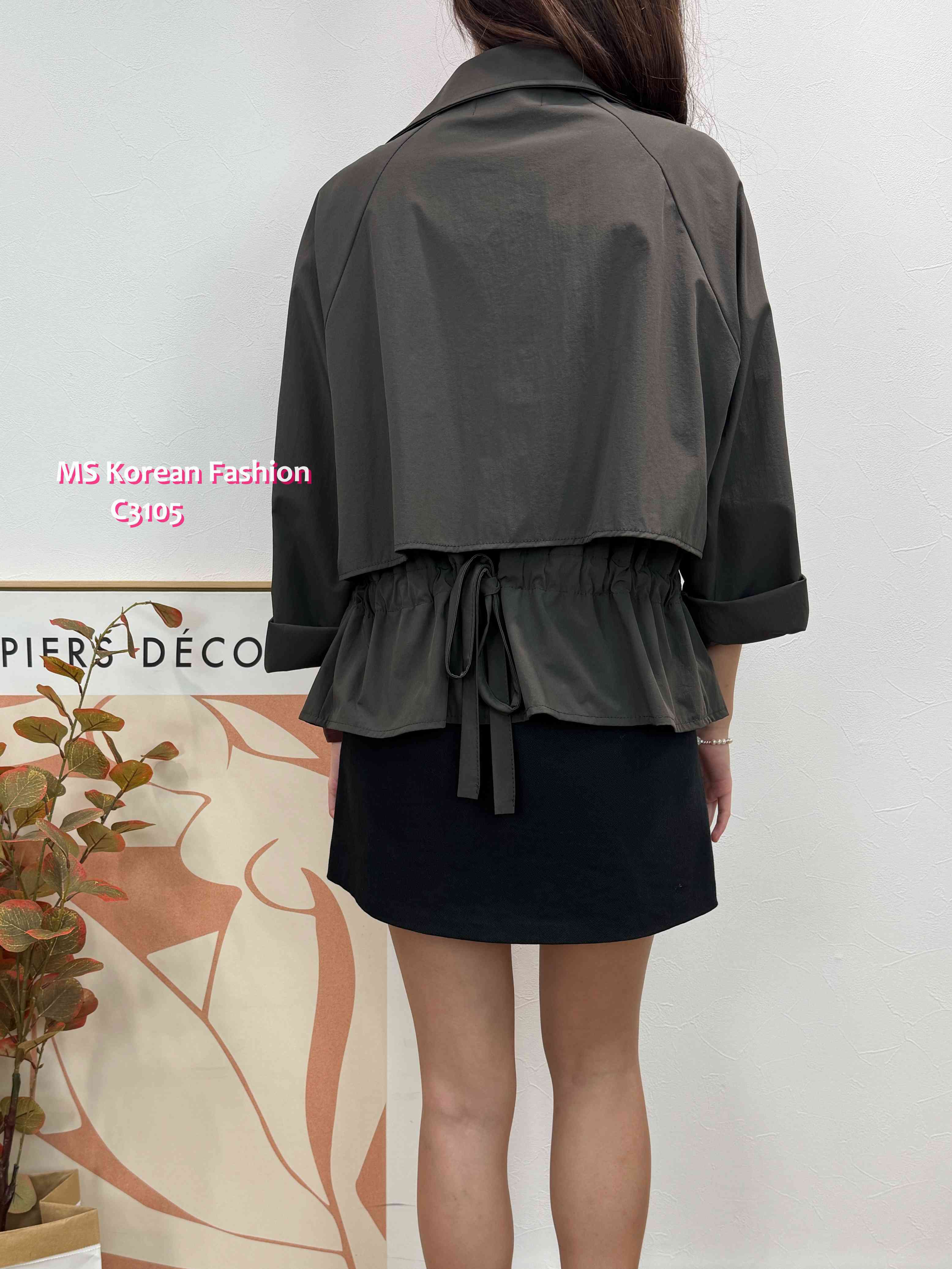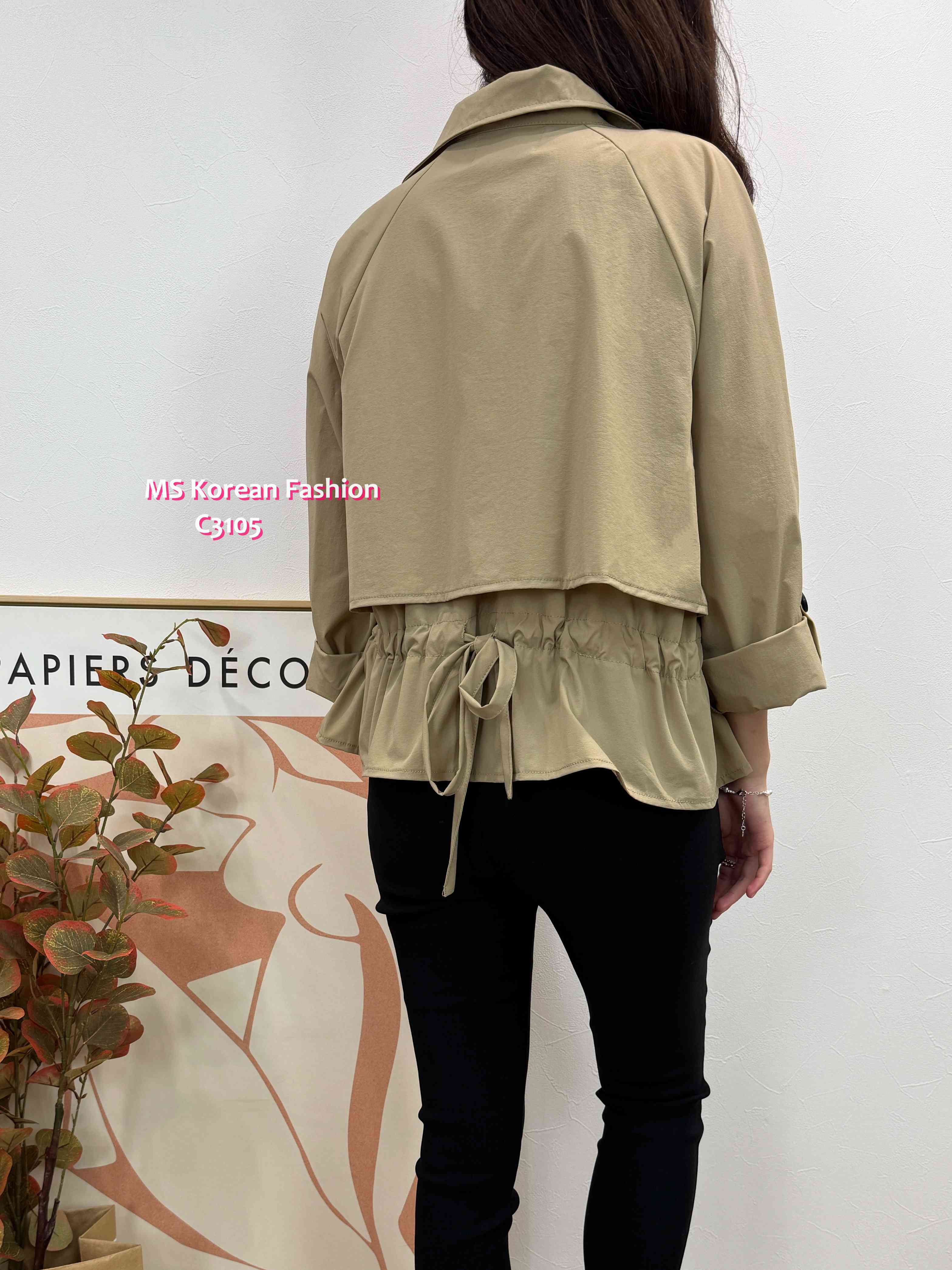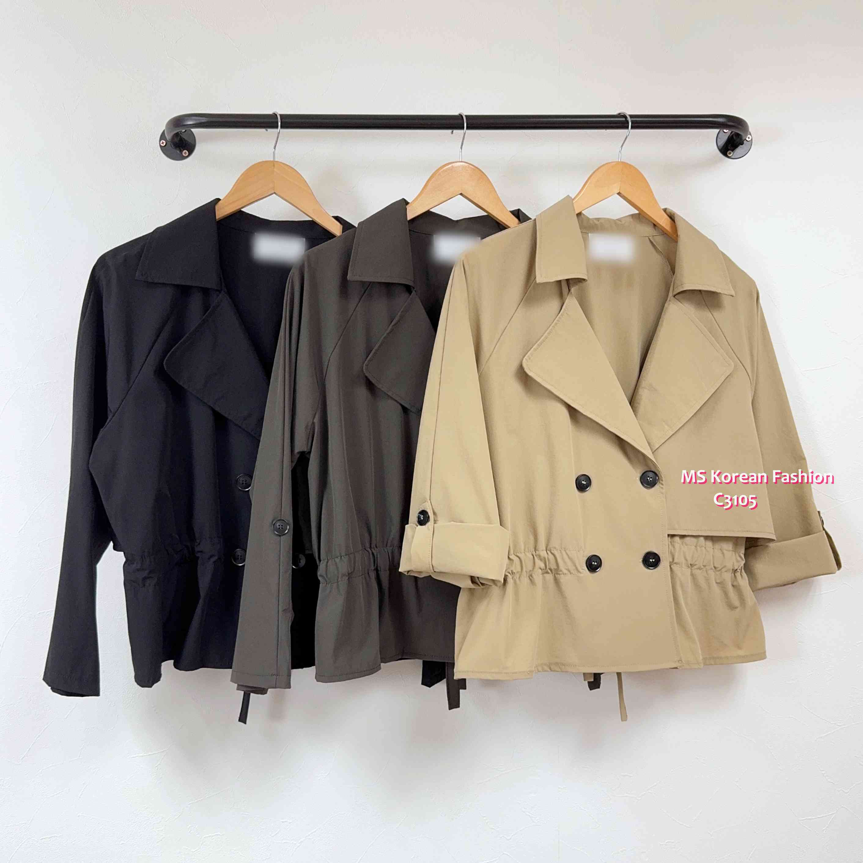 [訂貨約7-10個工作天] 💰💞Happy Price: $199 初秋好需要一件薄外套 呢款短身外套仔就啱晒💯 薄薄地風褸料 孖襟設計 腰間背面可索繩著上身有返腰型😻 袖位加左粒鈕方便roll袖著✌✌ 黑、墨綠、杏 3色 尺寸 胸46"/長22.5" 📫1件加$15包順豐站/智能櫃,2件包順豐(順豐站/智能櫃/工商/住宅) 📱查詢及Order可Inbox或Whatsapp 6317 3061