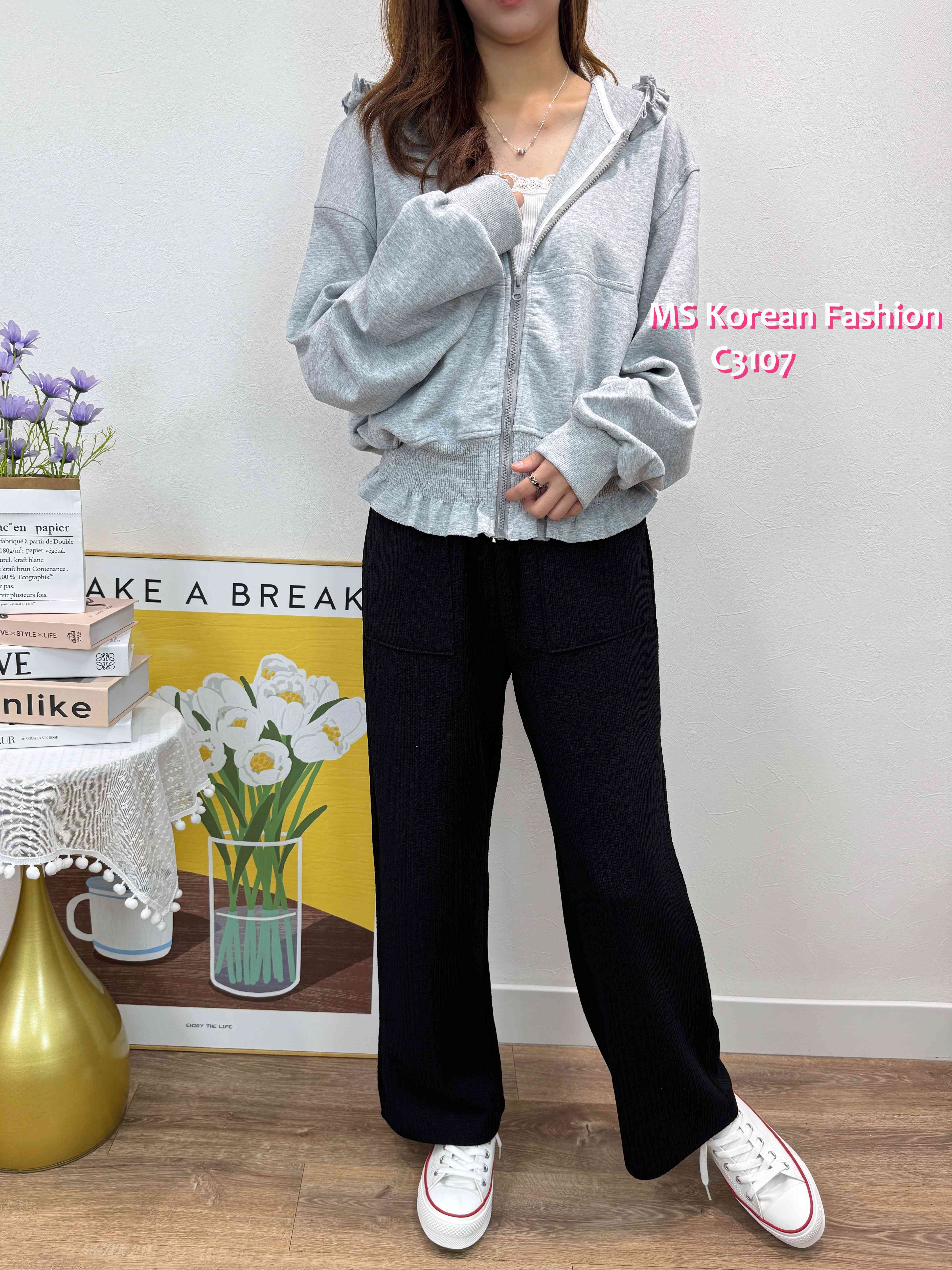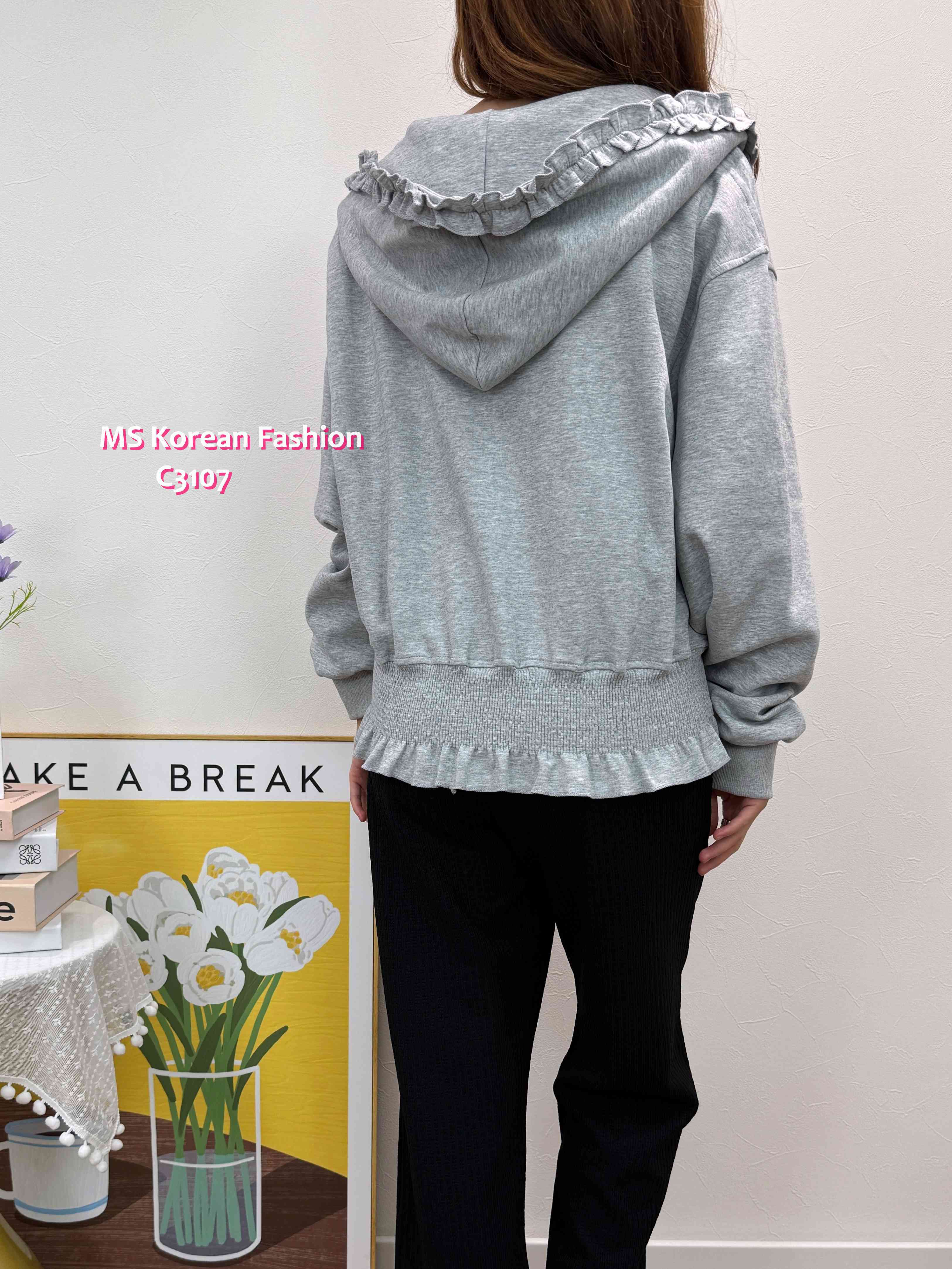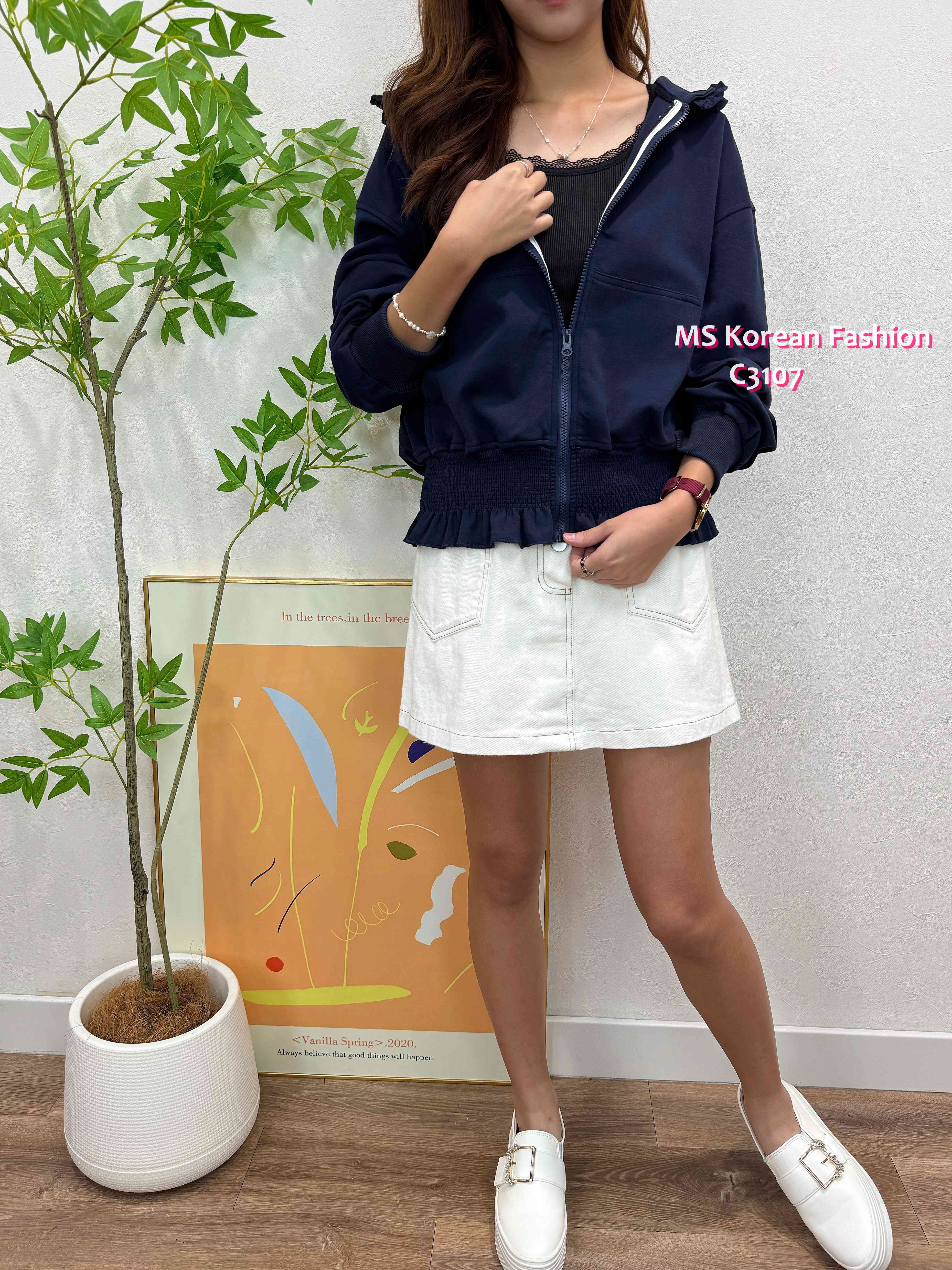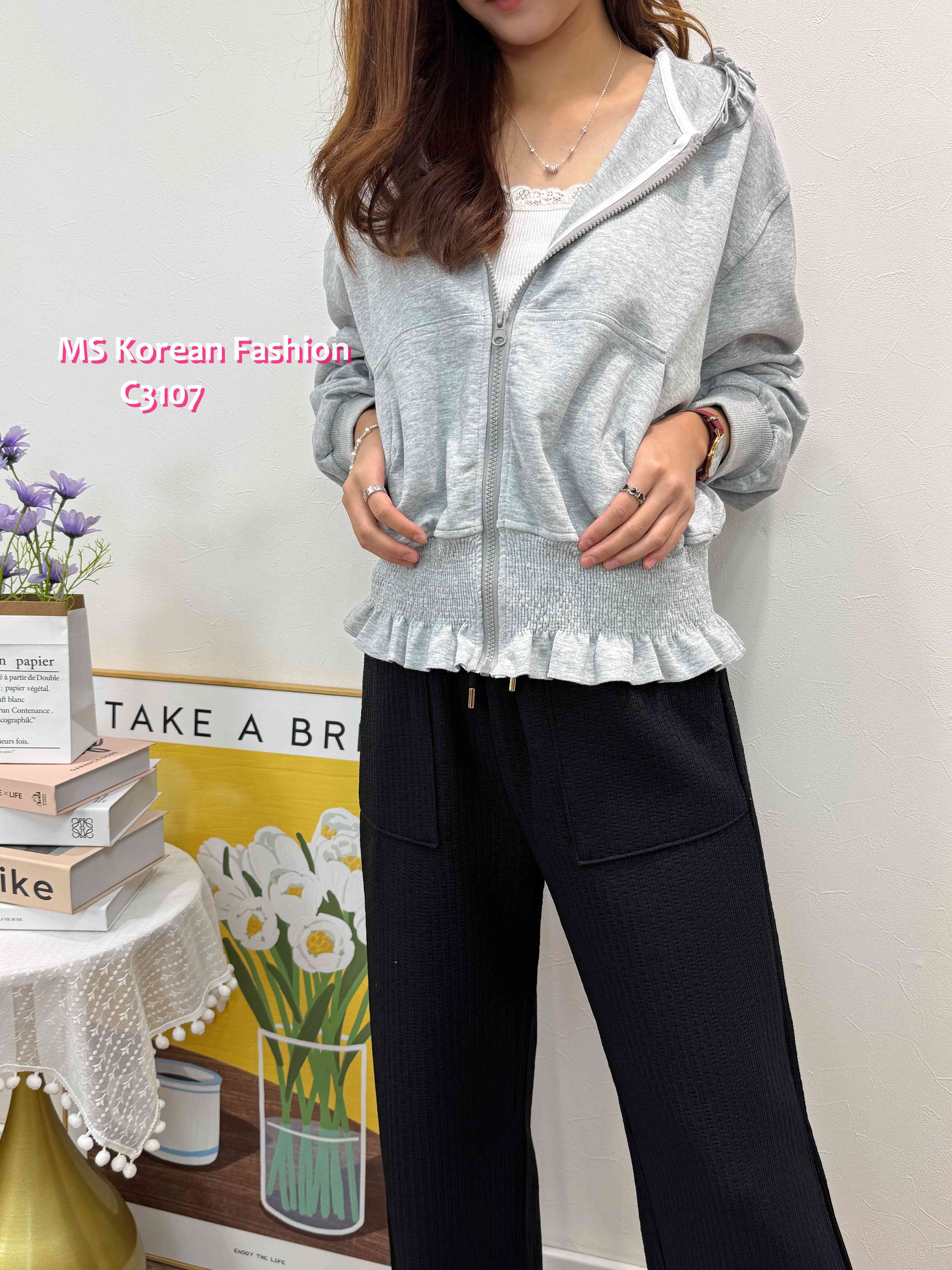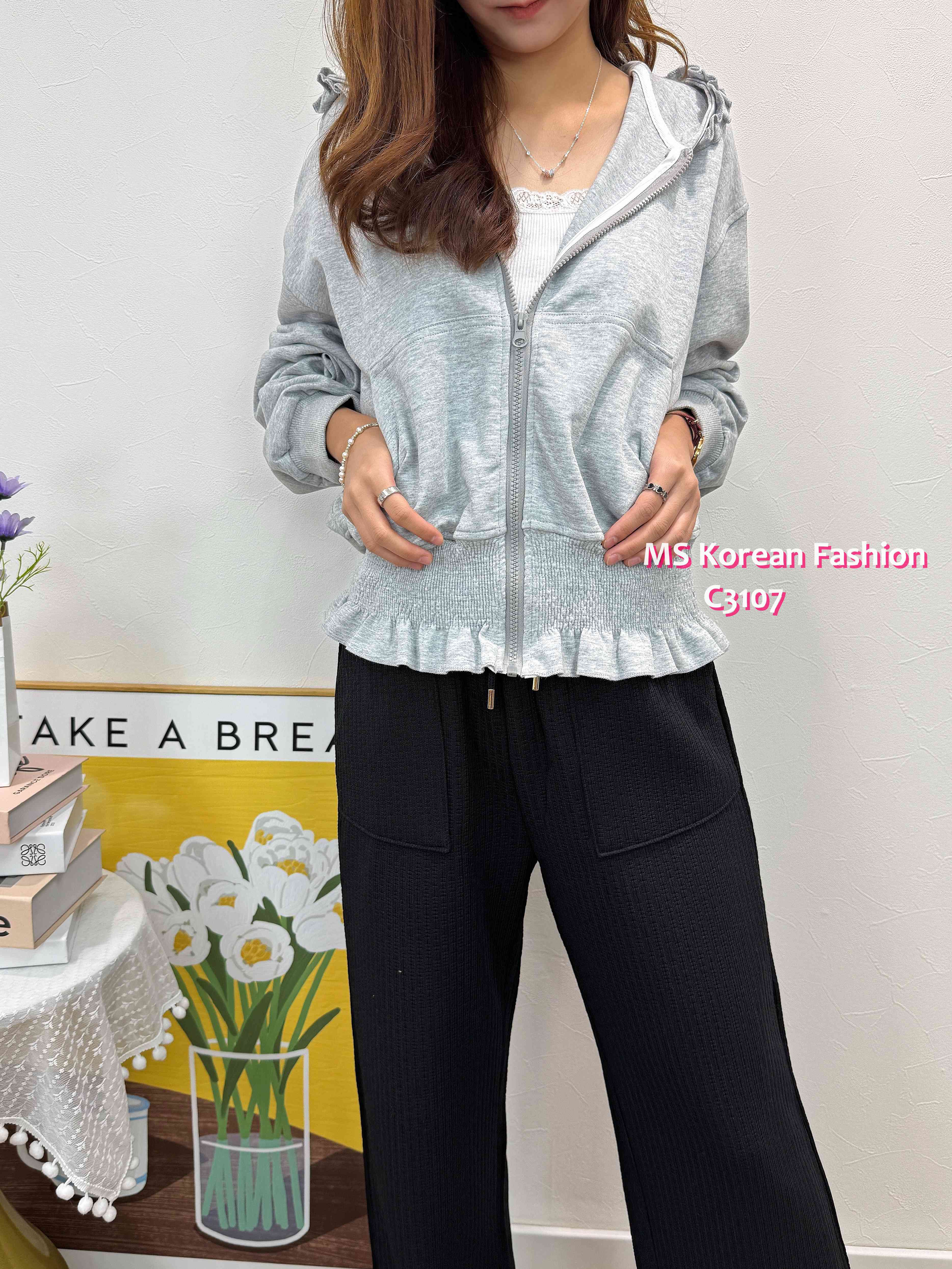 C3107 韓國🇰🇷ruffle邊有帽拉鏈外套
