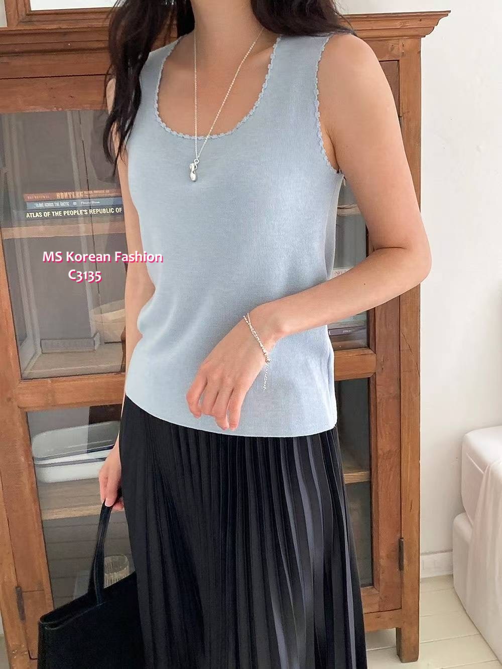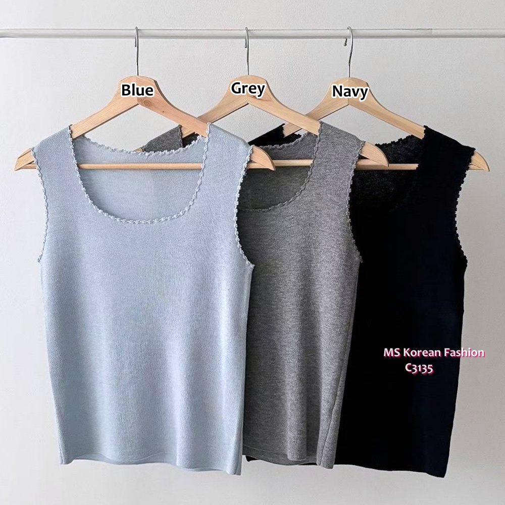 [訂貨約7-10個工作天] 💰💨快閃𝟰𝟴小時優惠: $𝟭𝟮𝟵💨[原價$159] ⏰優惠𝟱/𝟭𝟬 𝟮𝗽𝗺結束 ⏰ 秋天咁多薄外套 好需要一件似樣打底襯下😻 呢款花邊領背心🌺 colour巧令令 單著或襯外套仔都一流👏👏 藍、灰、寶藍 3色 尺寸 胸37"(有彈性)/長21.5" 📫1件加$15包順豐站/自助櫃,2件包順豐 📱查詢及Order可Inbox或Whatsapp 6317 3061