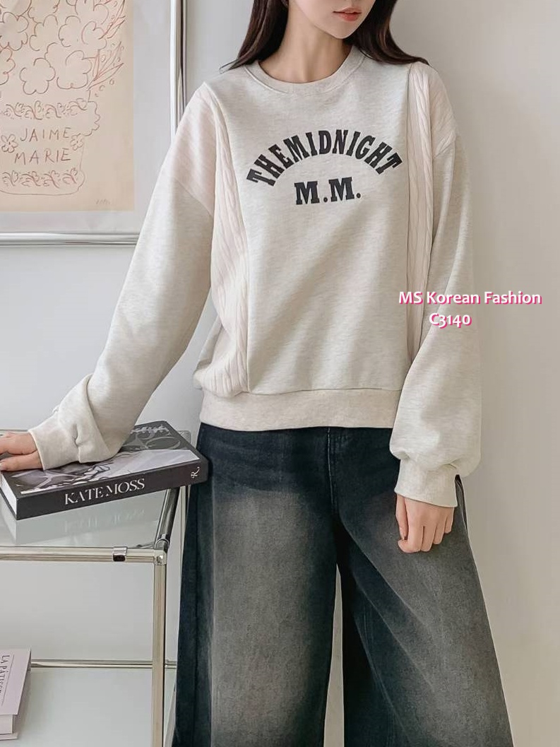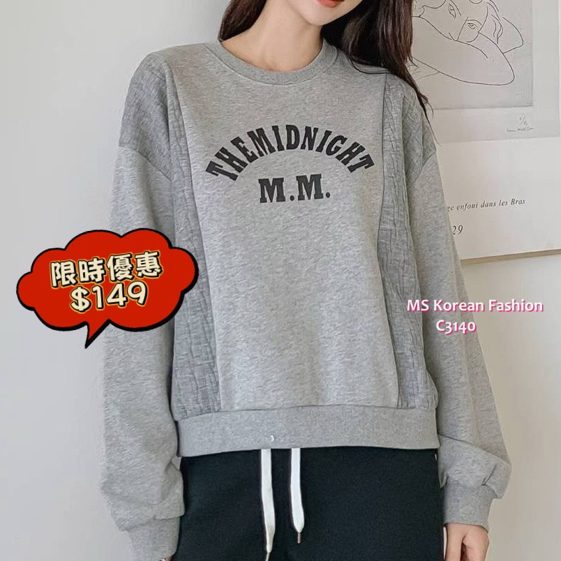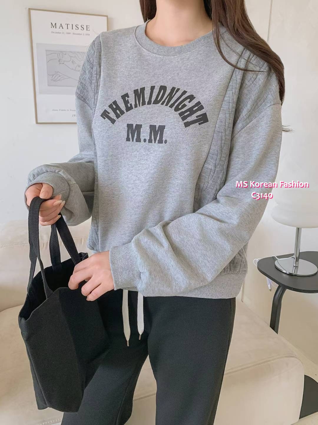 C3140 韓國🇰🇷扭紋拼布字母衛衣