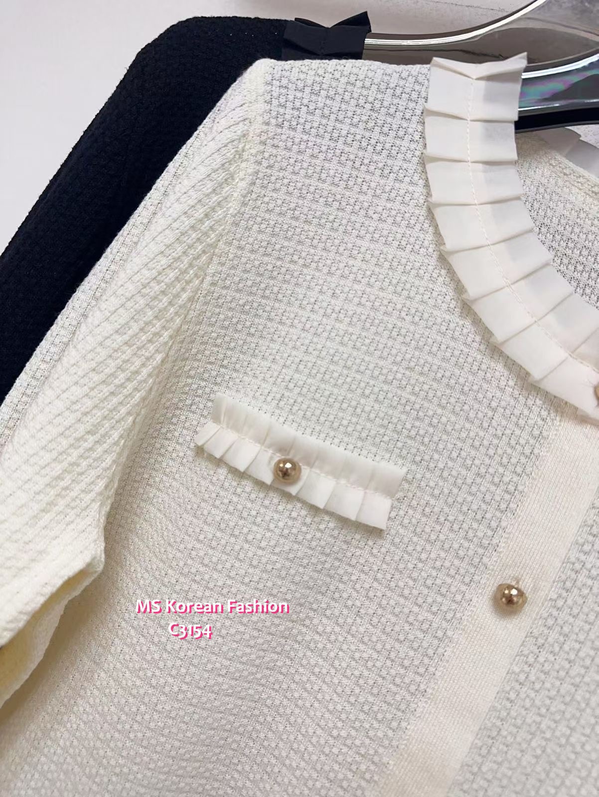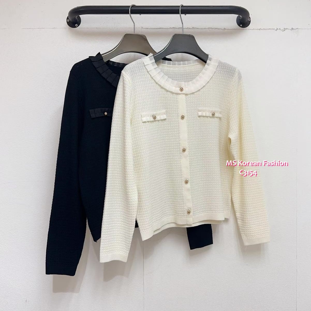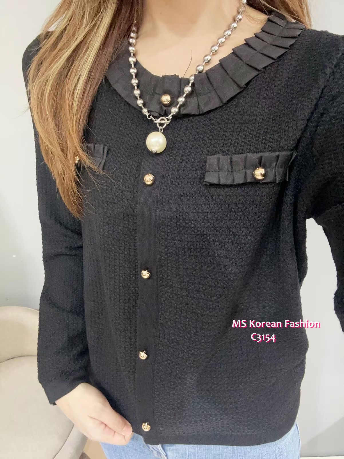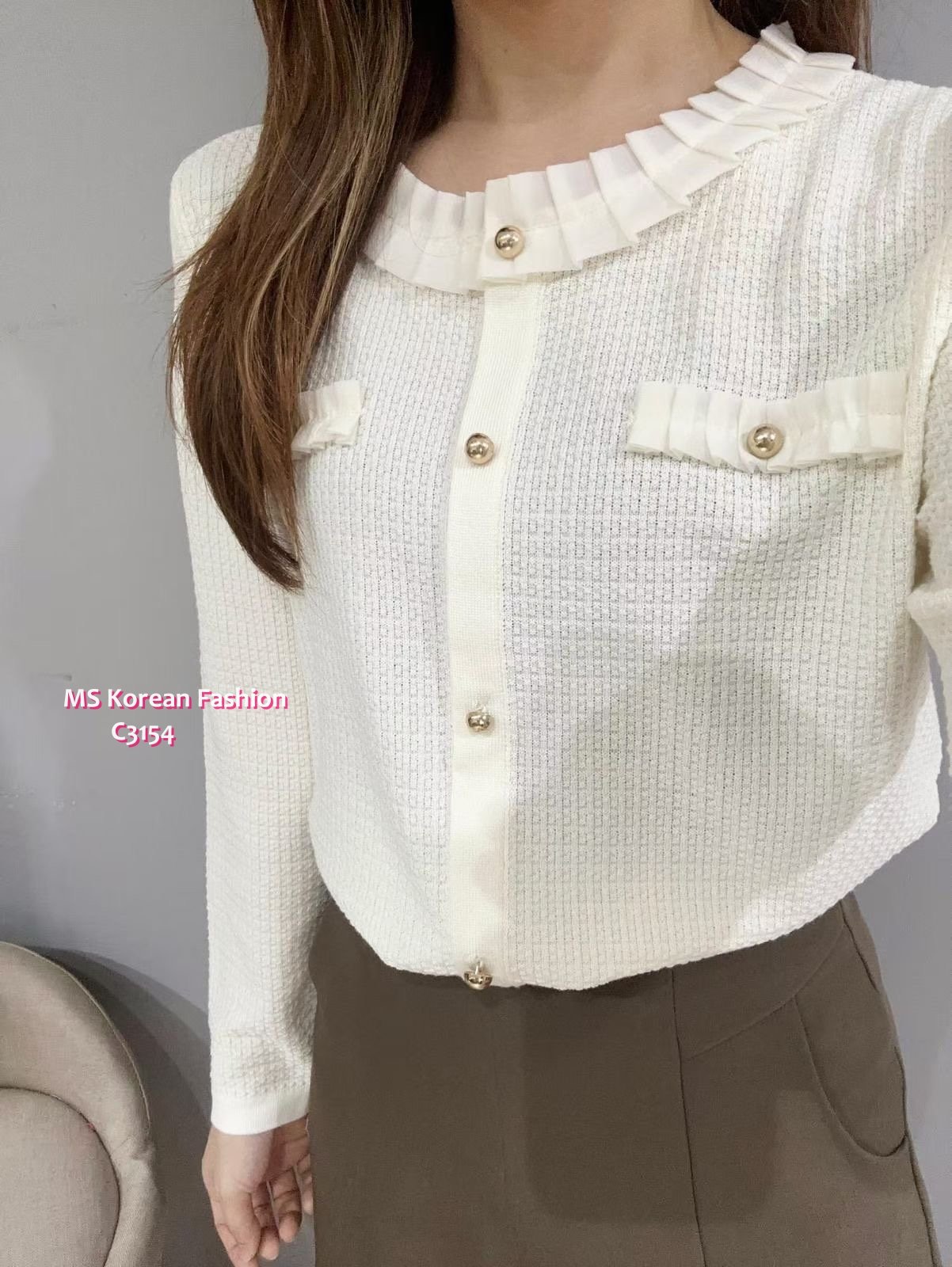 [訂貨約7-10個工作天] 💰💞Happy Price: $179 暗紋特色鈕top🥳 領口加左ruffle設計巧令令又lady💄 質地唔厚著既機會好多 斯文或casual look都carry到👍👍 黑、米白 2色 尺寸 胸38">拉開52"/長20.5" 📫1件加$15包順豐站/自助櫃,2件包順豐(順豐站/自助櫃/工商/住宅) 📱查詢及Order可Inbox或Whatsapp 6317 3061