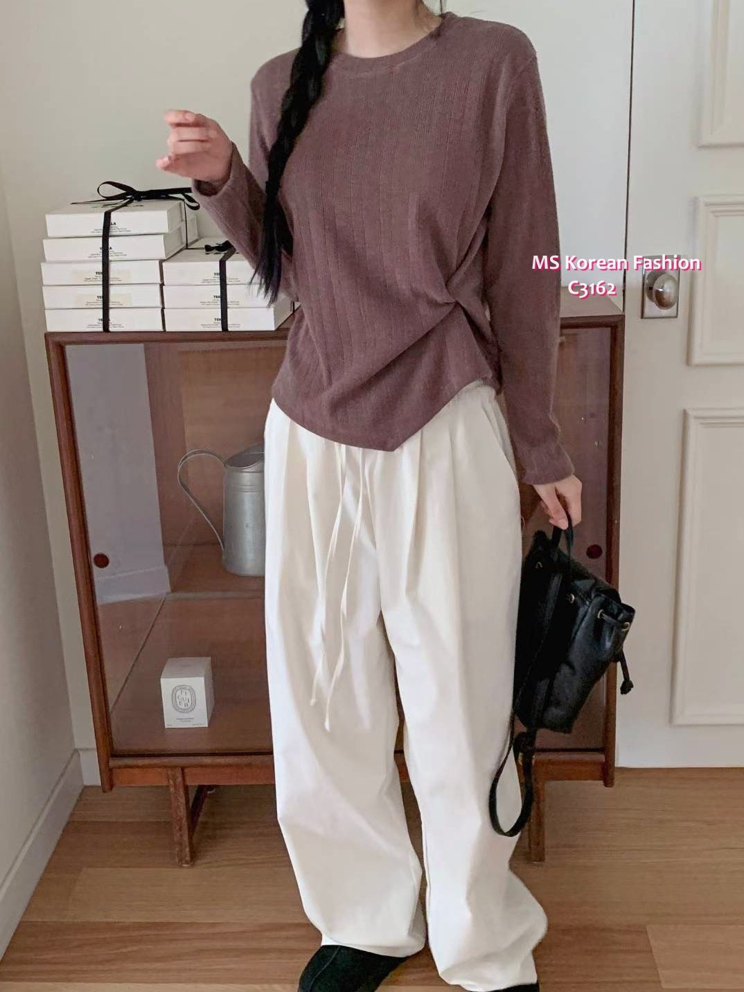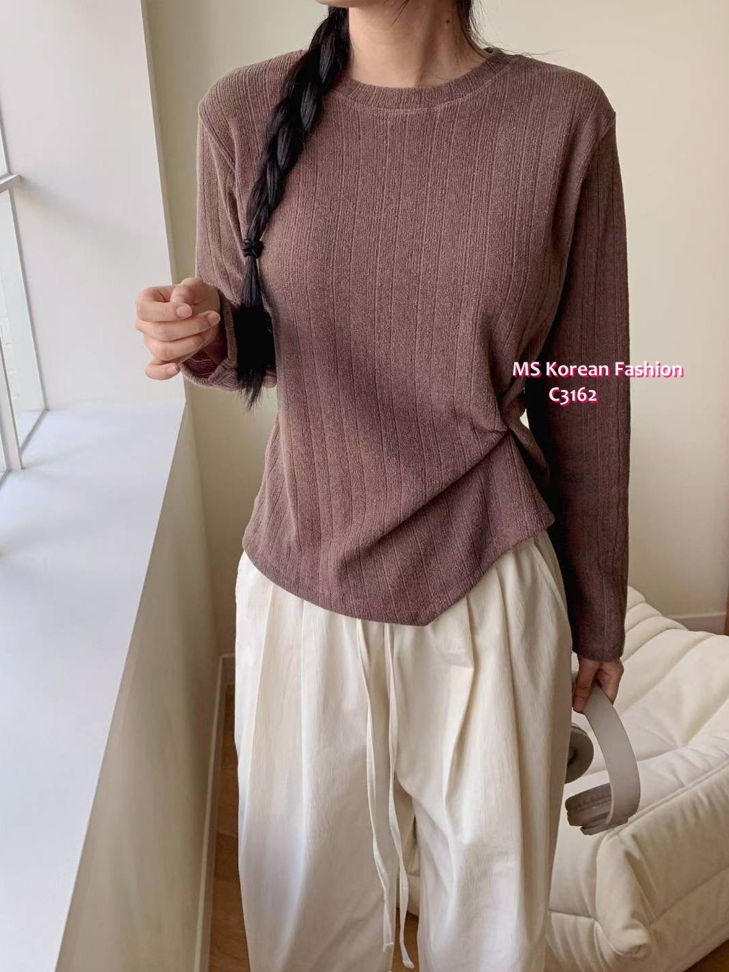 C3162 韓國🇰🇷暗直紋扭結top
