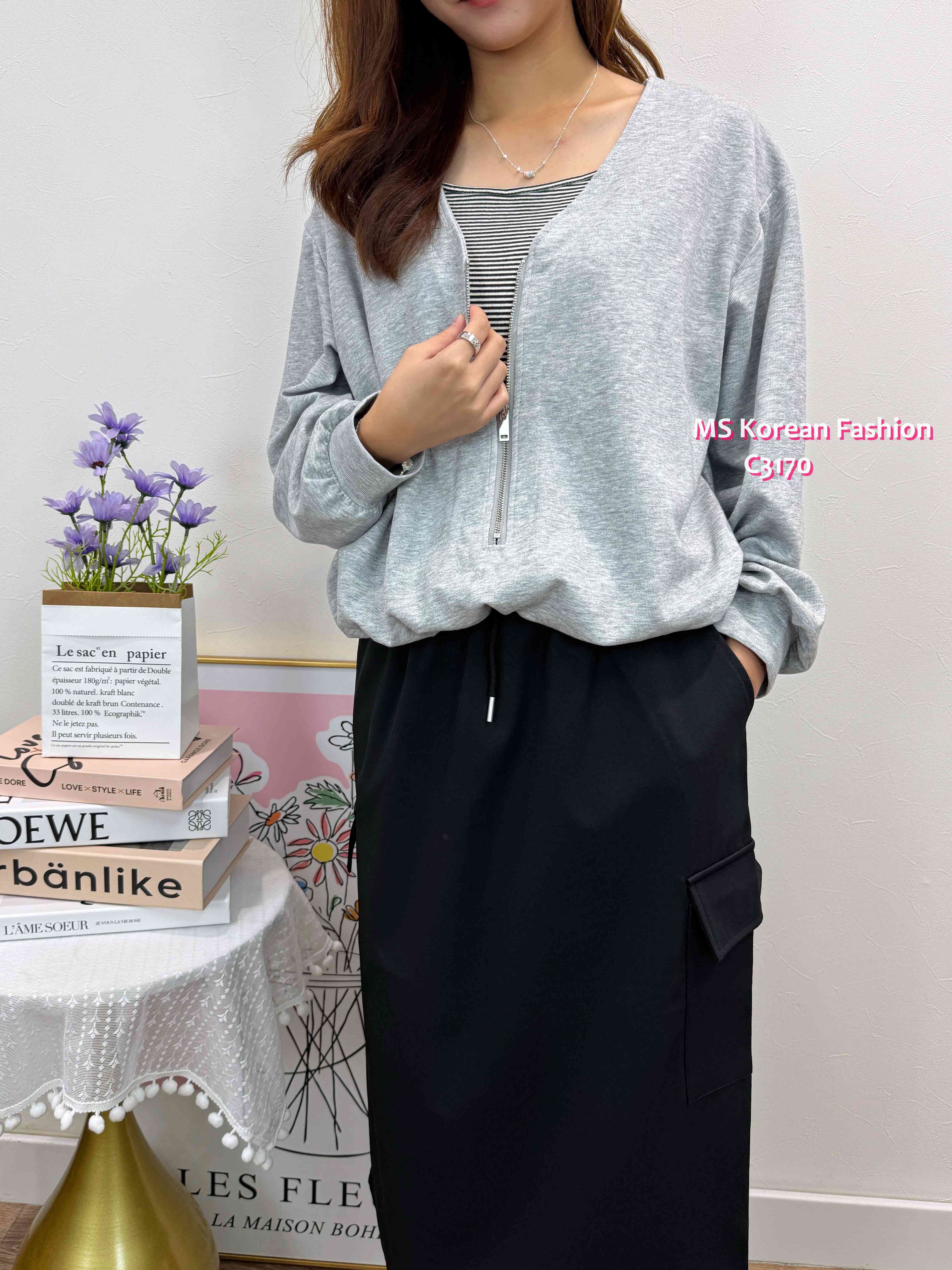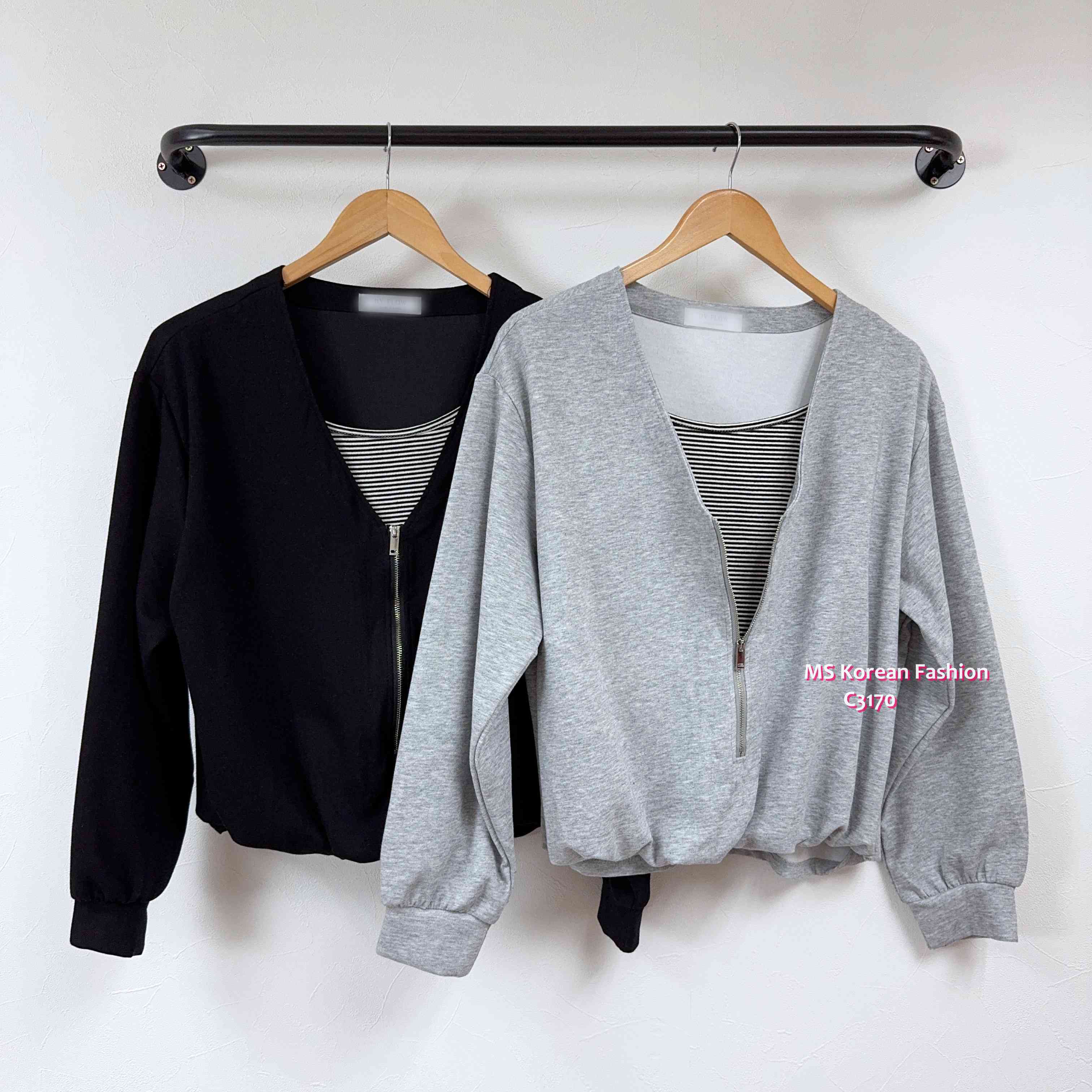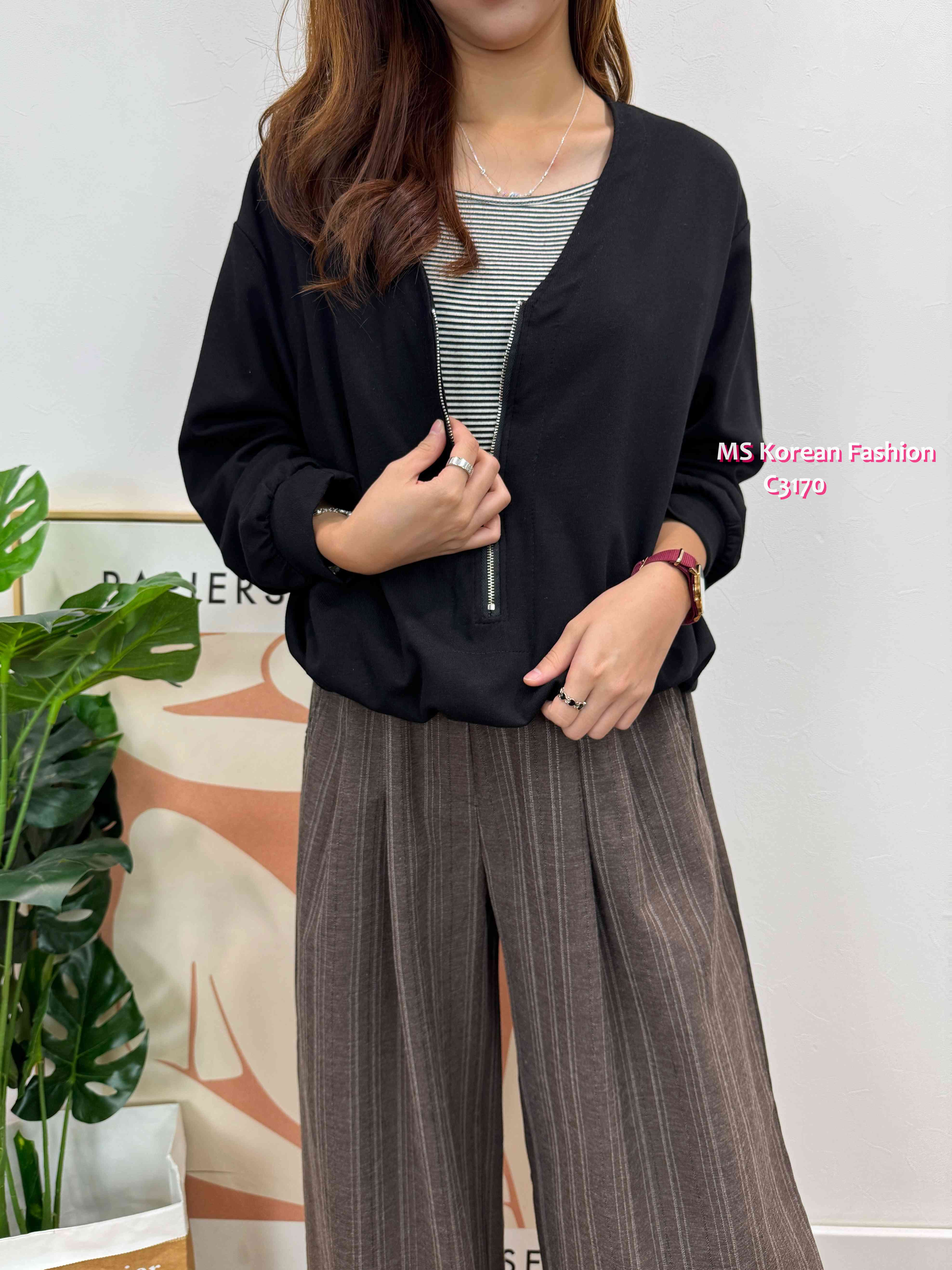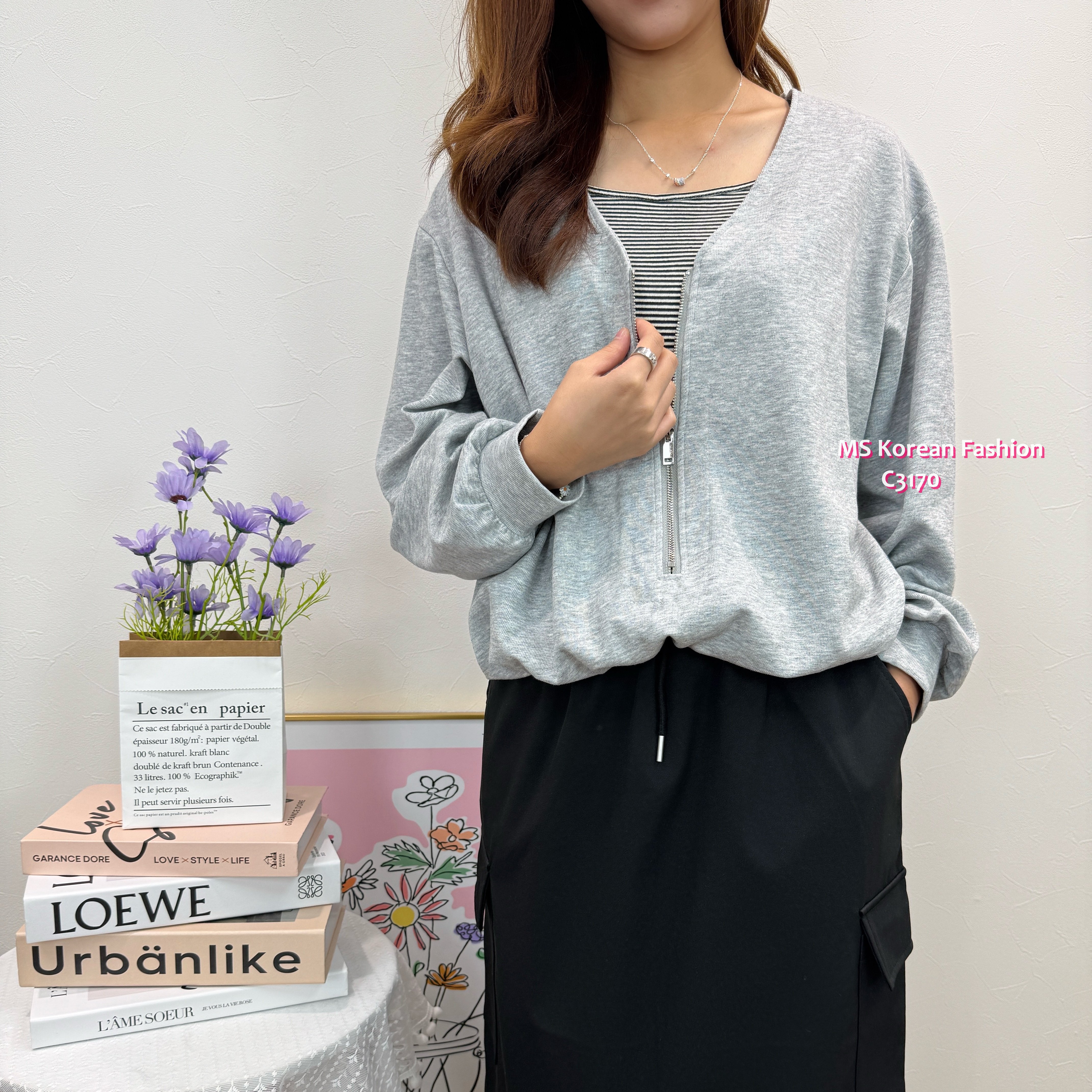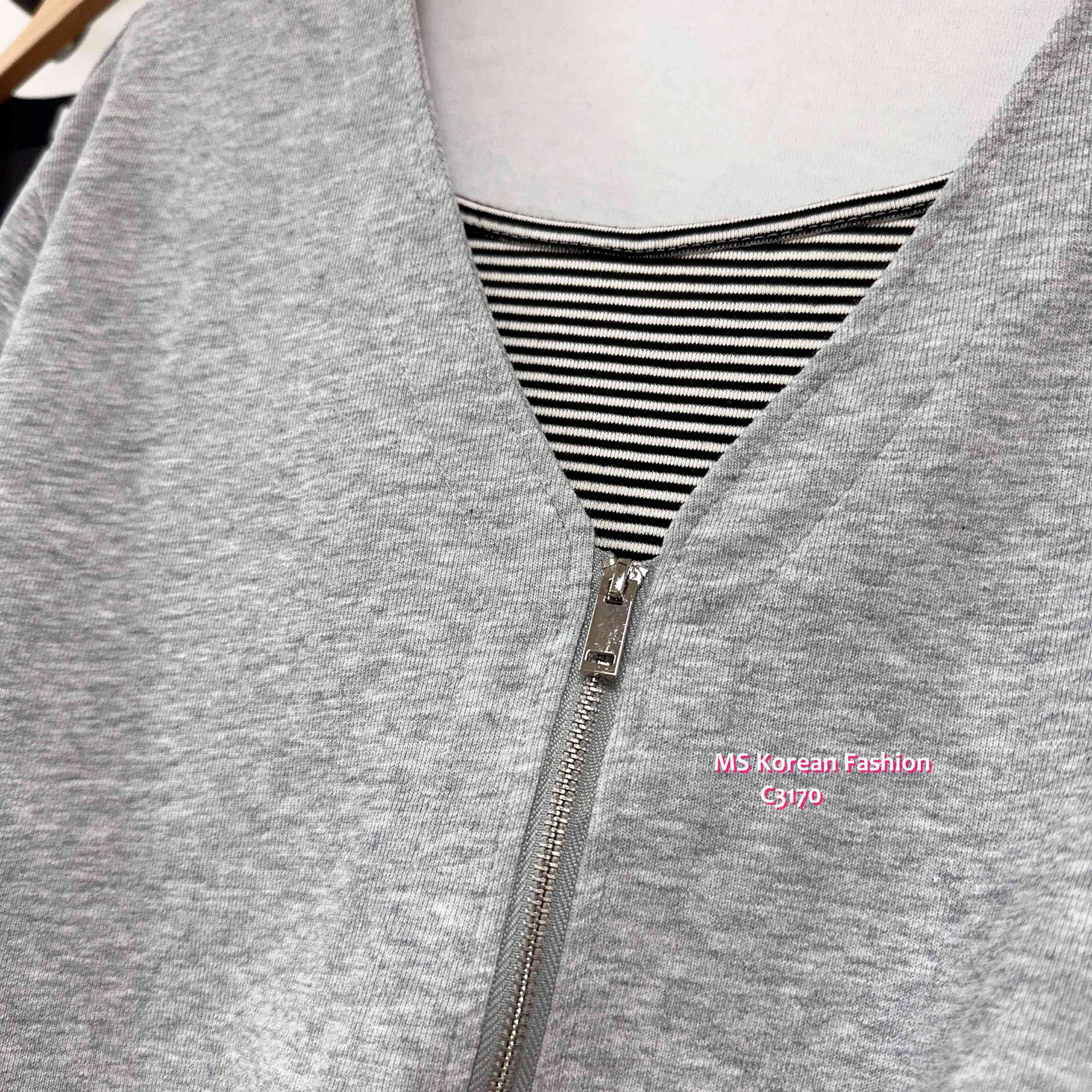 C3170 韓國🇰🇷型格假兩件拉鏈top