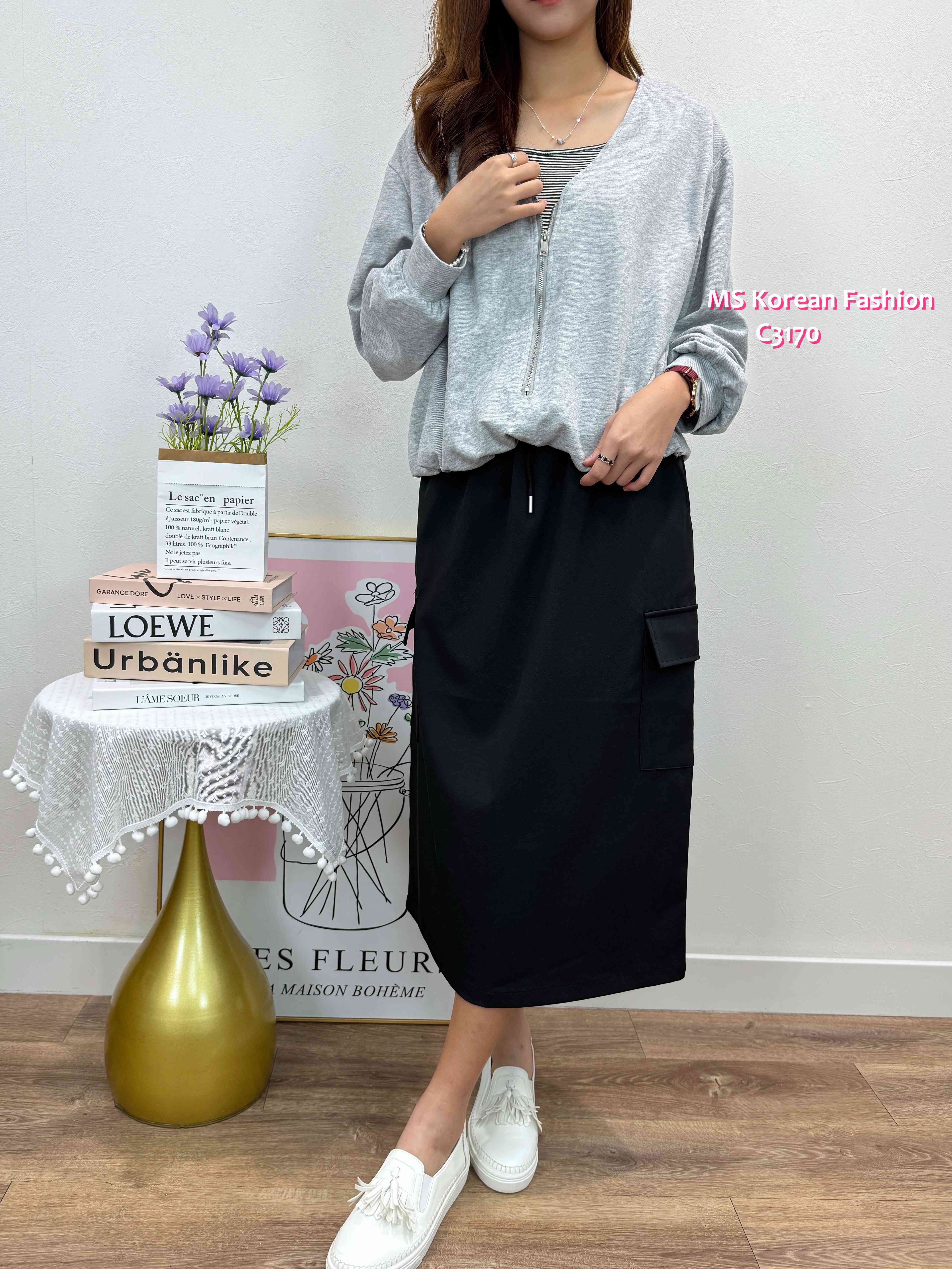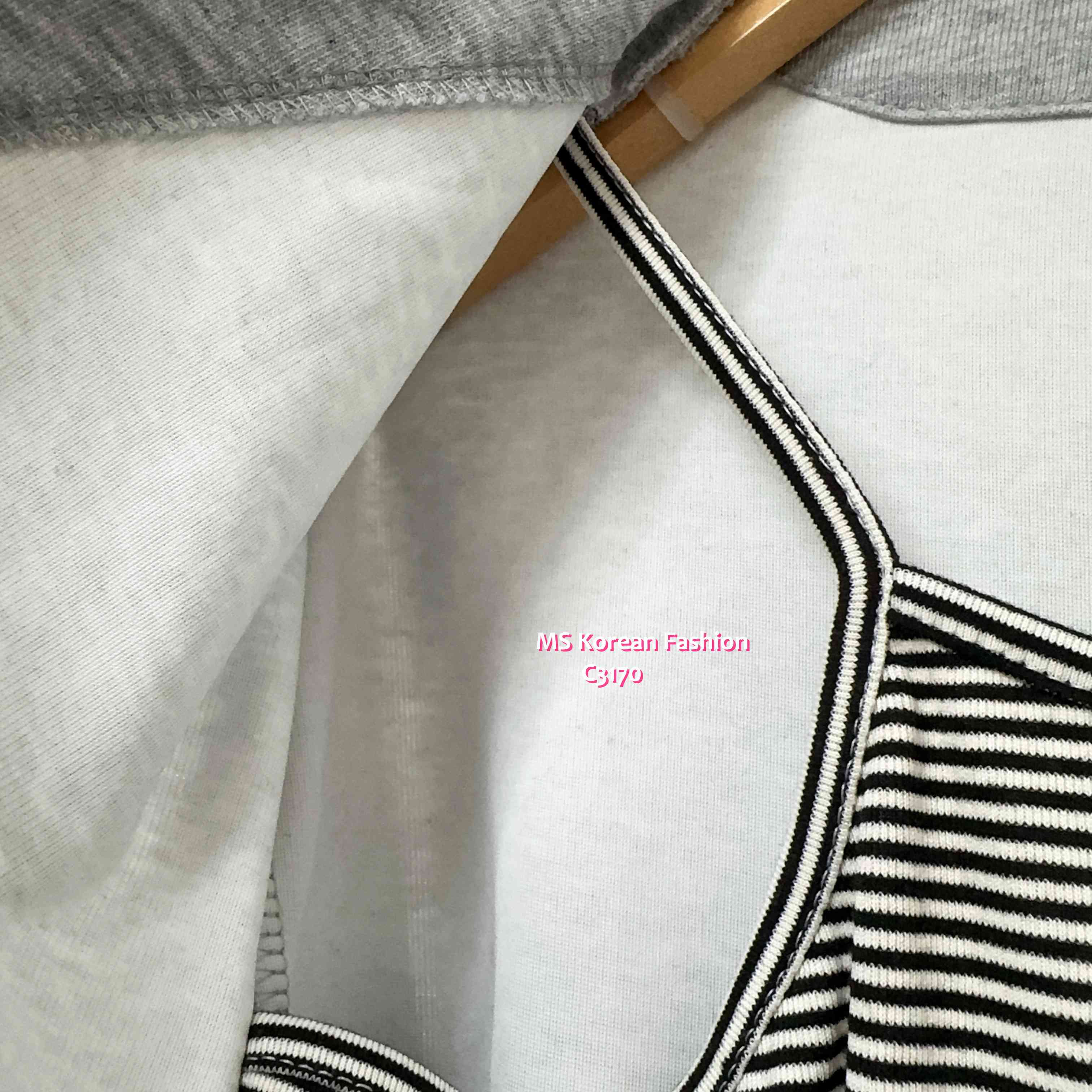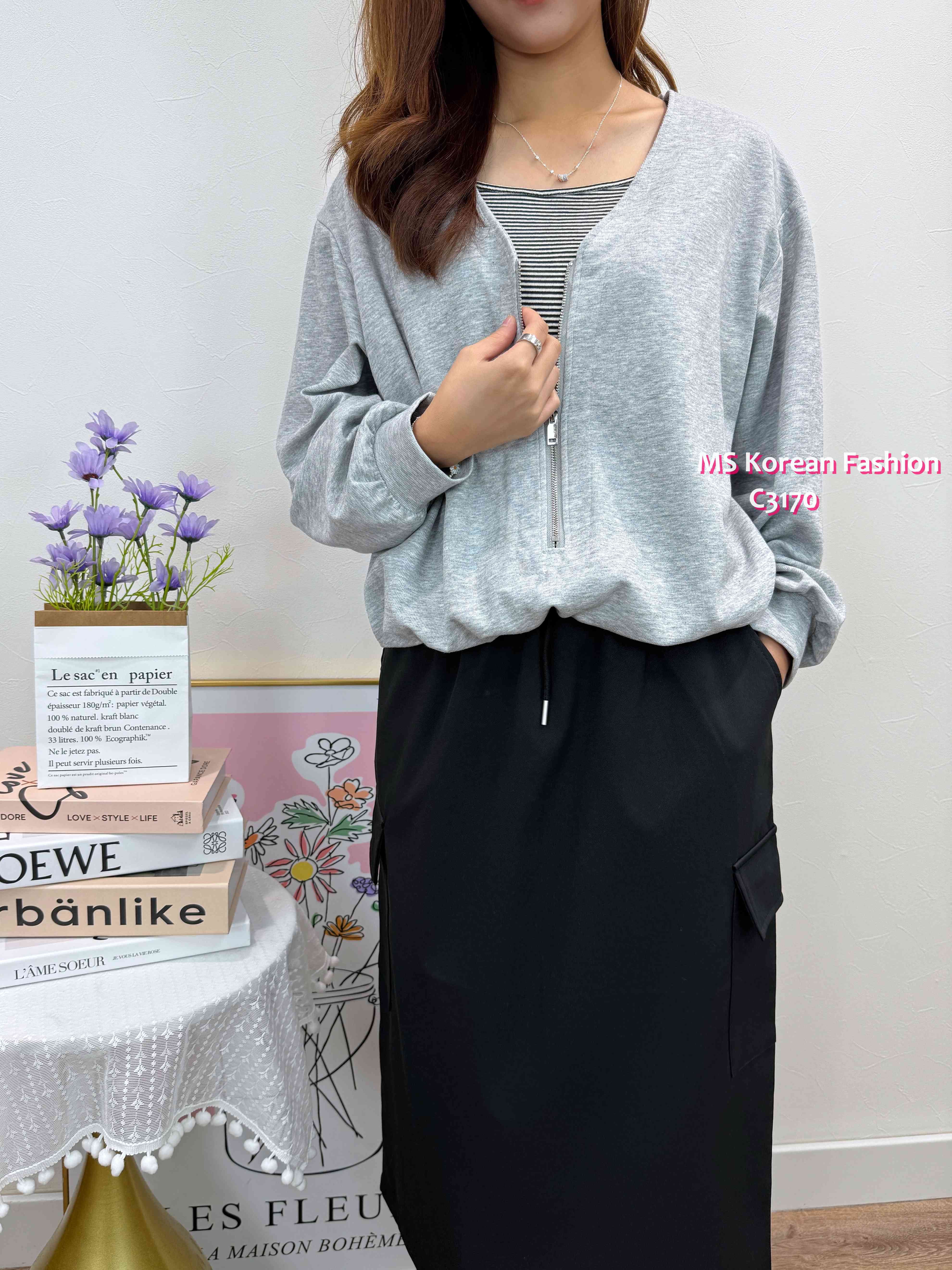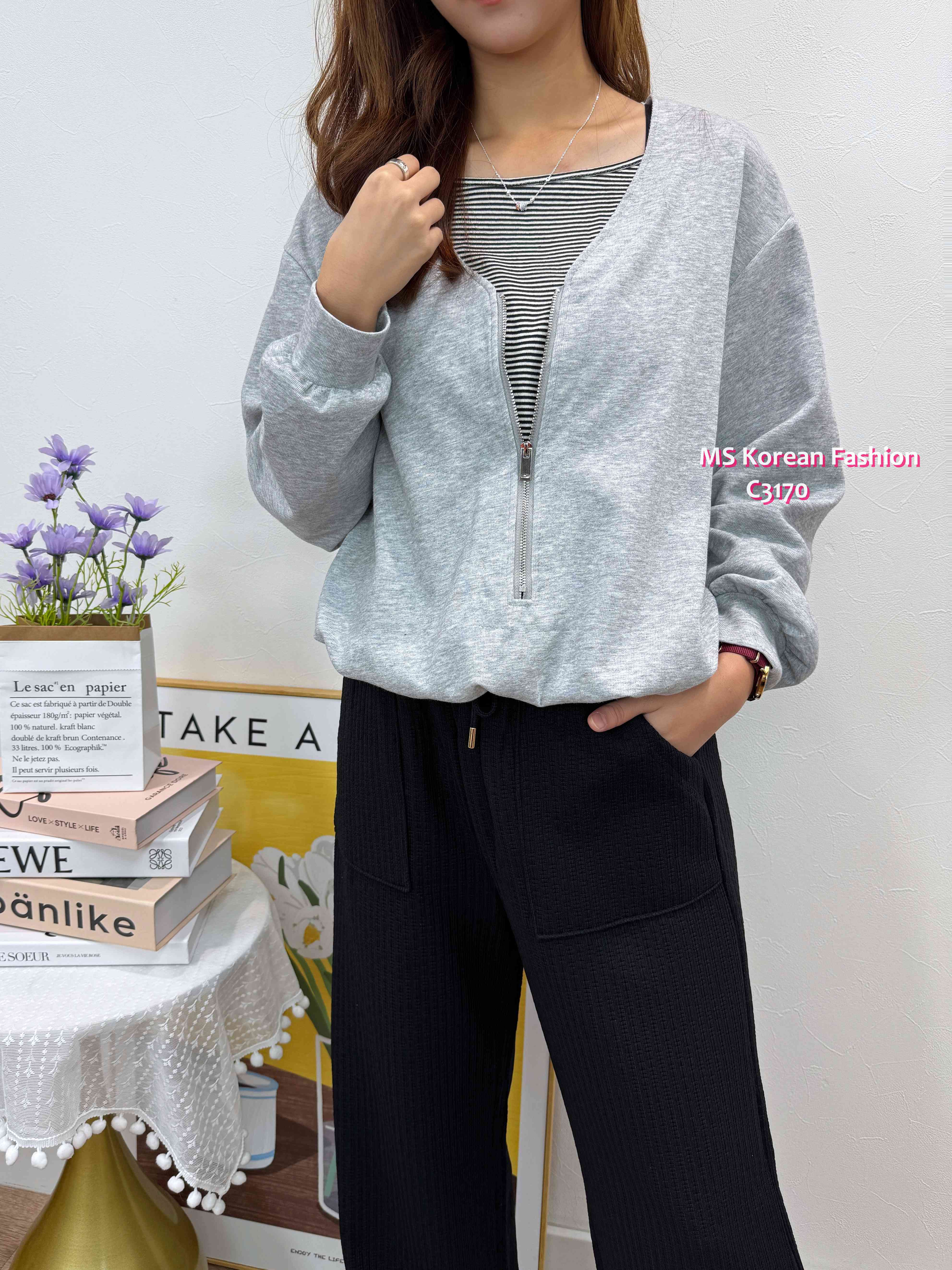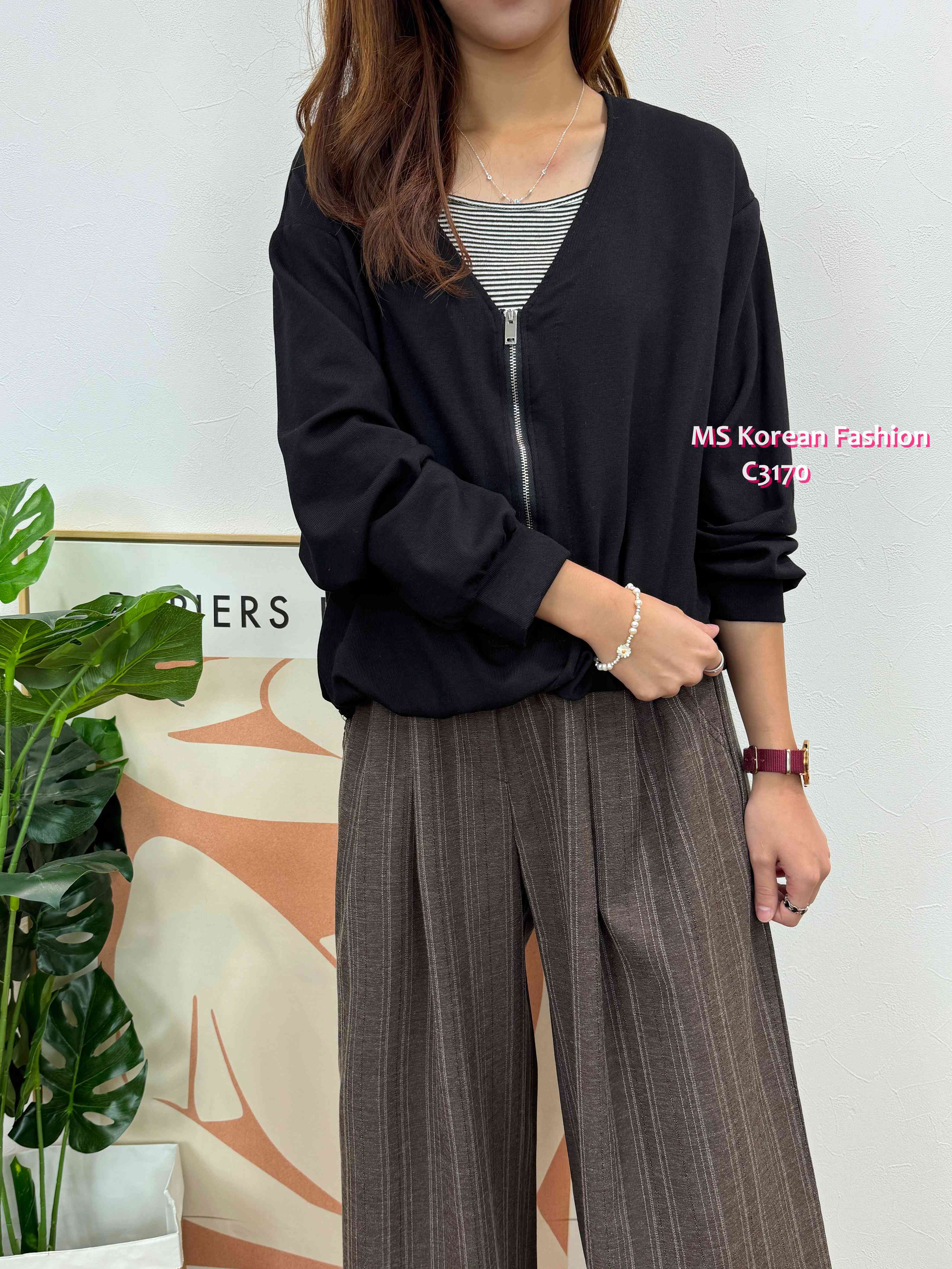 C3170 韓國🇰🇷型格假兩件拉鏈top