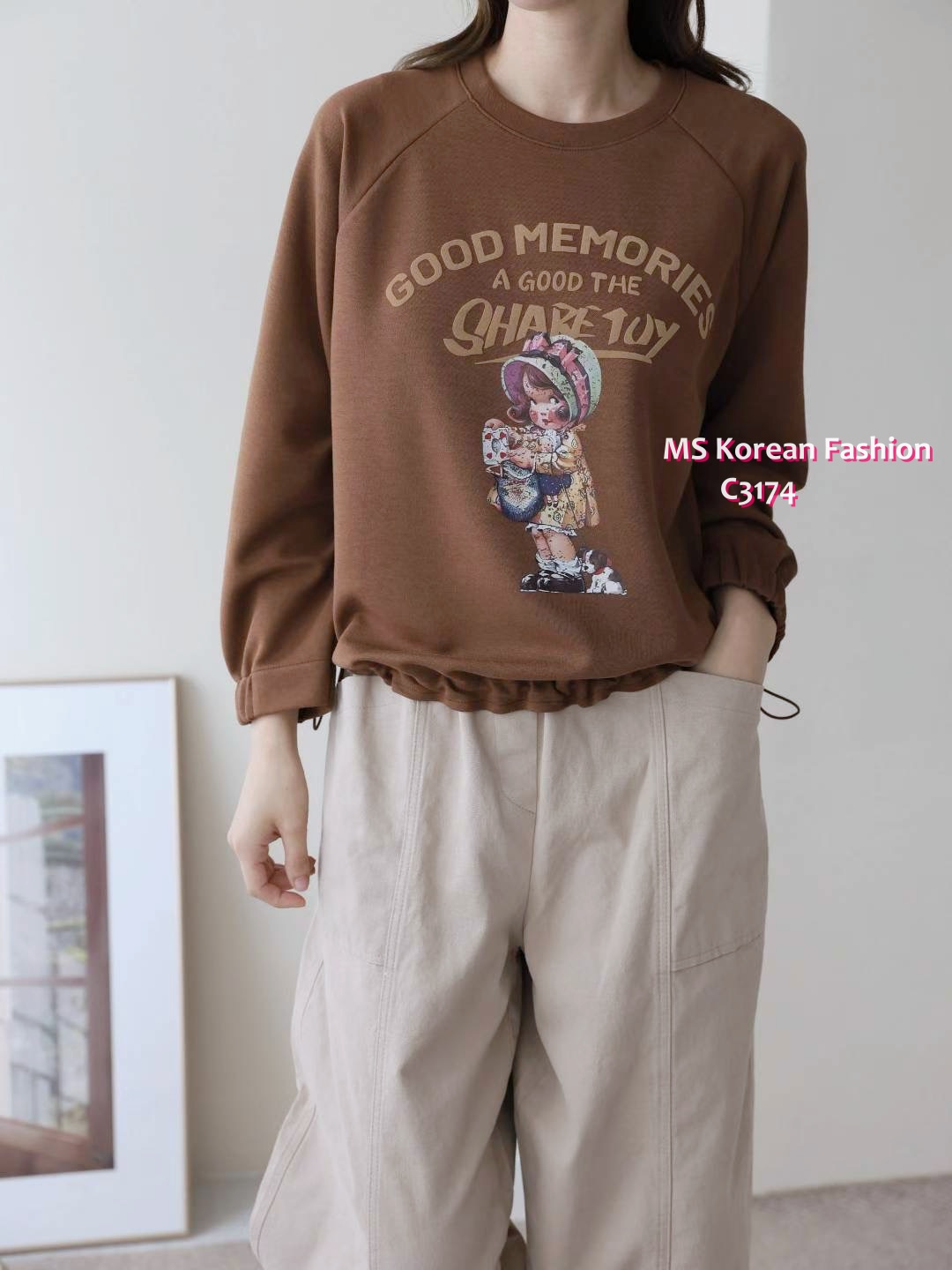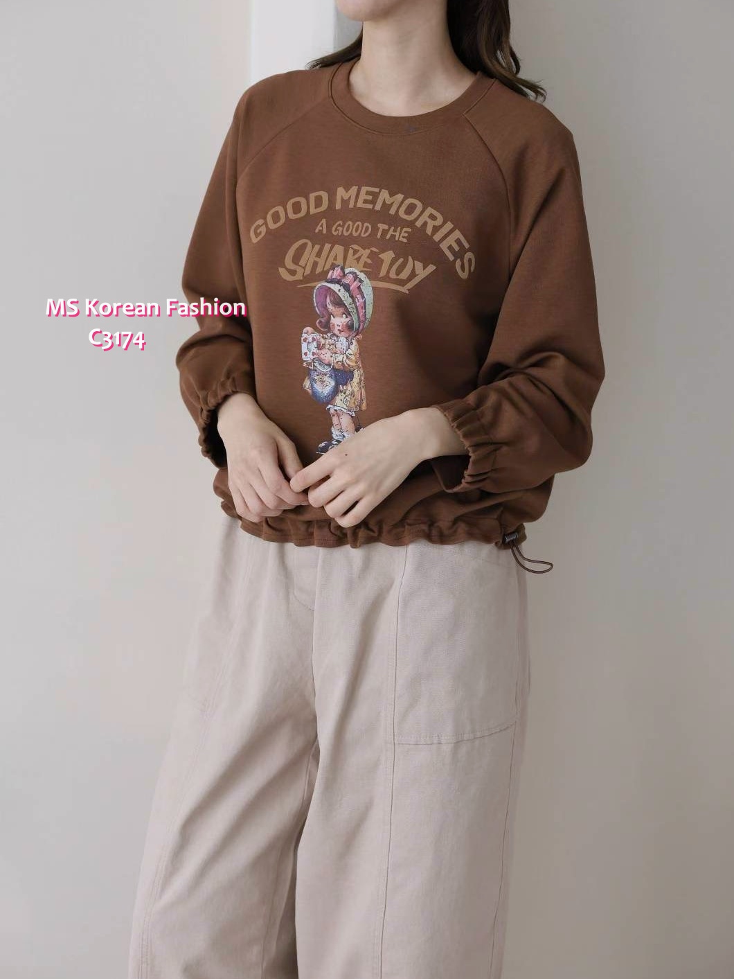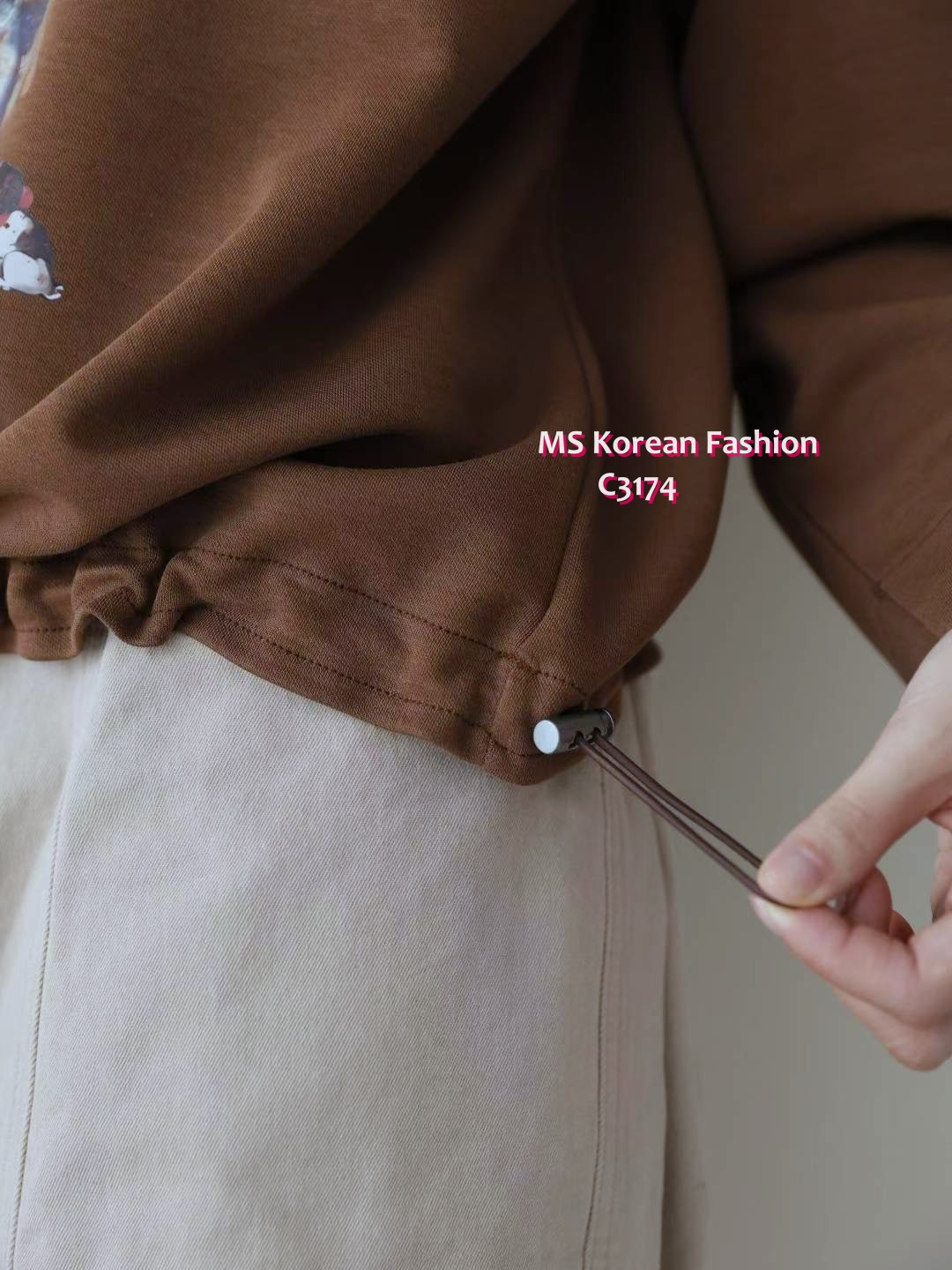 [訂貨約7-10個工作天] 💰💞Happy Price: $239 靚print索繩腳top🌈 高質混棉料 字母公仔print巧令令呀😍 衫腳仲可以索繩添 米、杏、啡、黑 4色 尺寸 胸43"/長23.5" 📫1件加$15包順豐站/自助櫃,2件包順豐(順豐站/自助櫃/工商/住宅) 📱查詢及Order可Inbox或Whatsapp 6317 3061