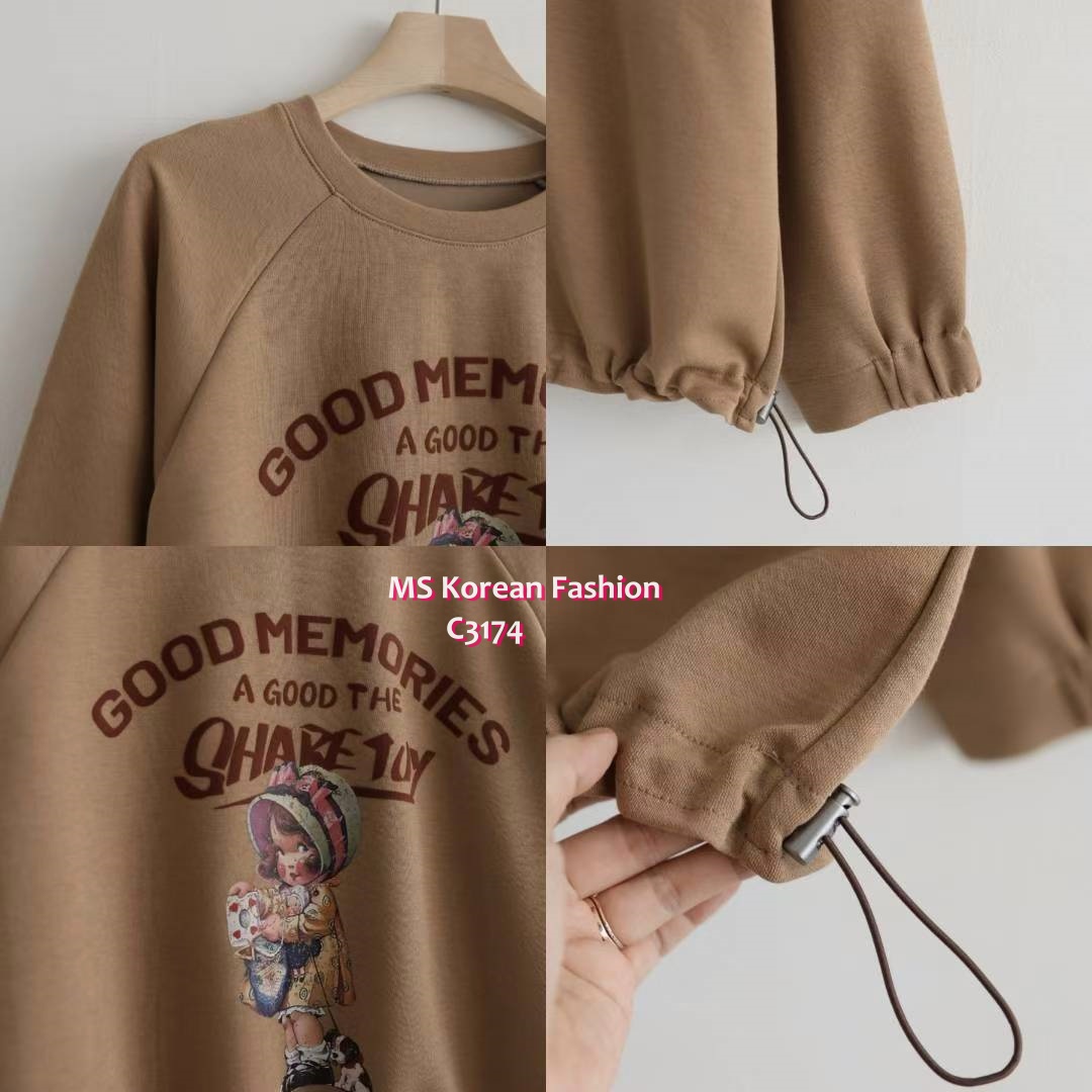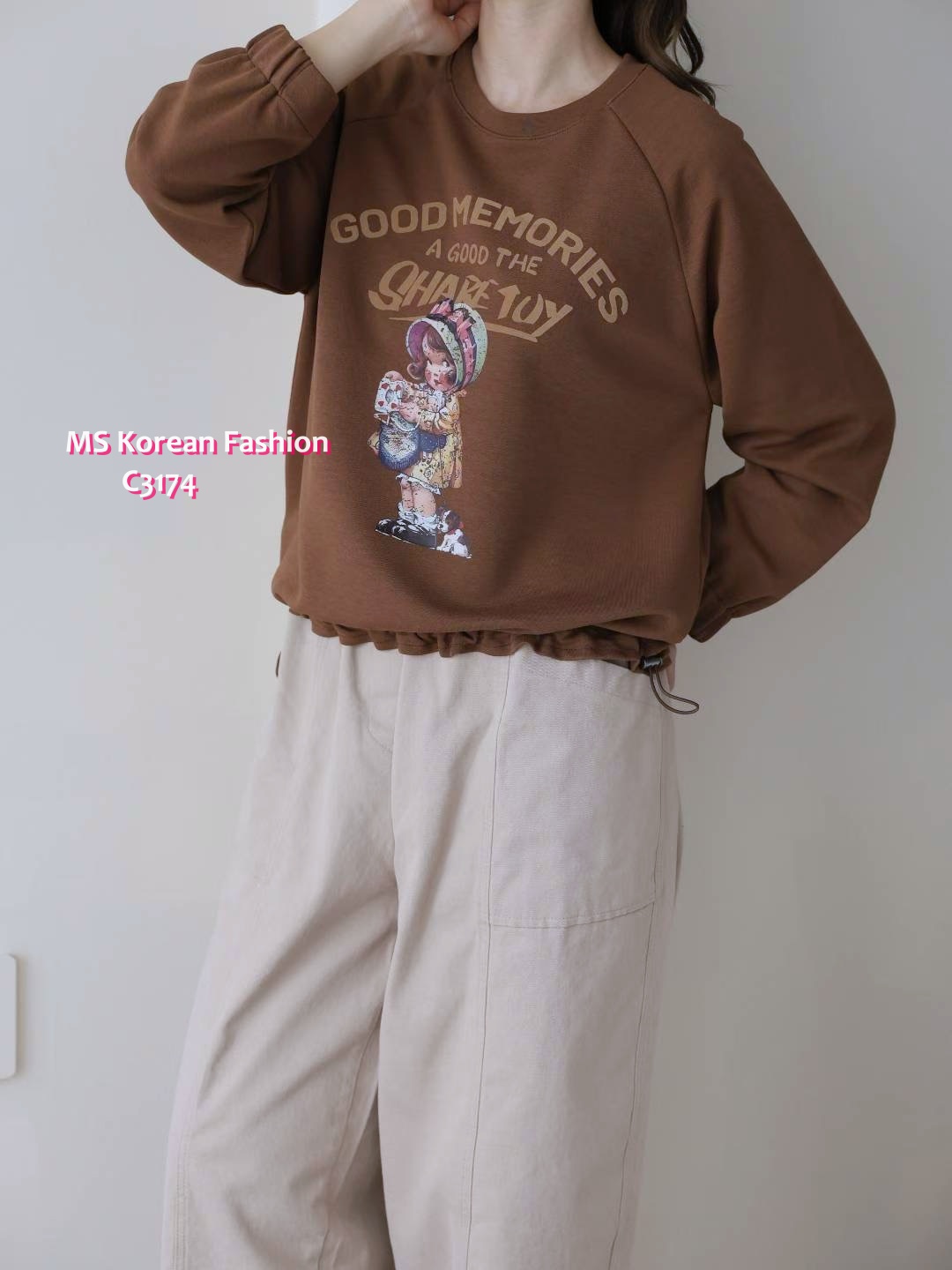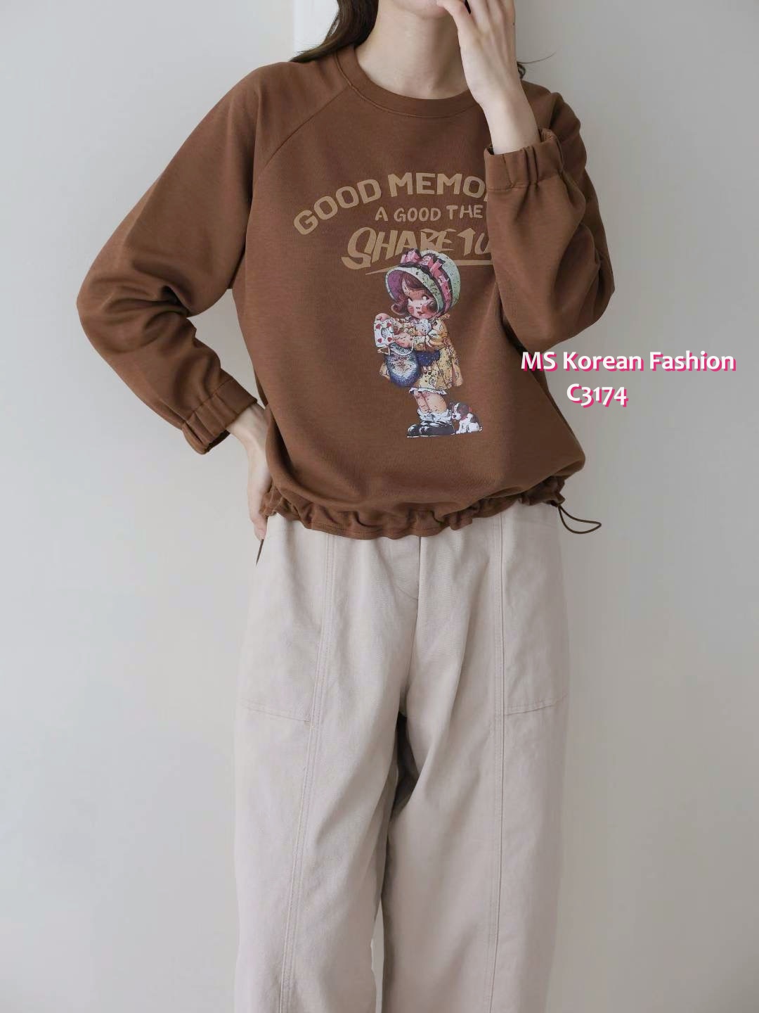 [訂貨約7-10個工作天] 💰💞Happy Price: $239 靚print索繩腳top🌈 高質混棉料 字母公仔print巧令令呀😍 衫腳仲可以索繩添 米、杏、啡、黑 4色 尺寸 胸43"/長23.5" 📫1件加$15包順豐站/自助櫃,2件包順豐(順豐站/自助櫃/工商/住宅) 📱查詢及Order可Inbox或Whatsapp 6317 3061