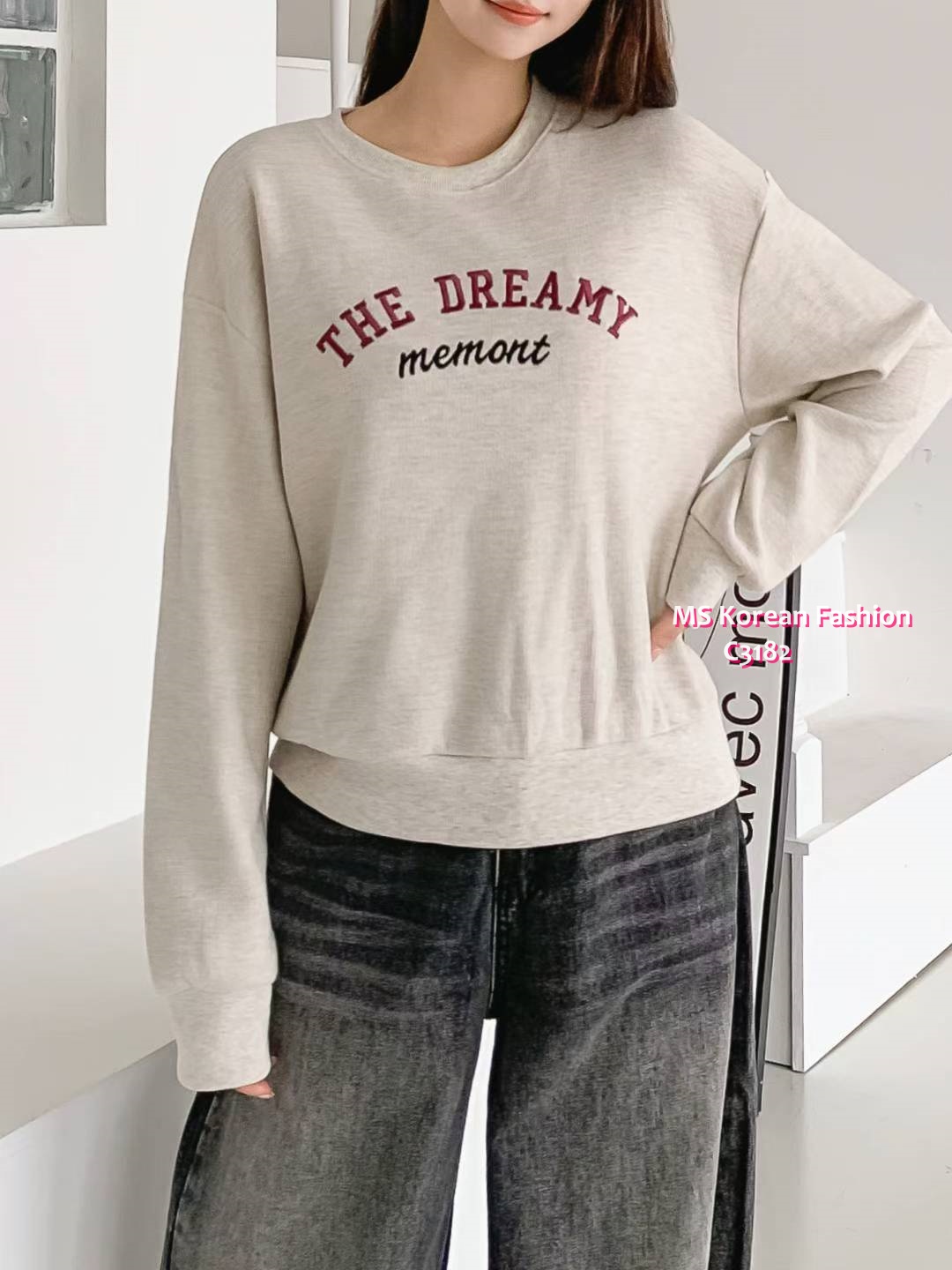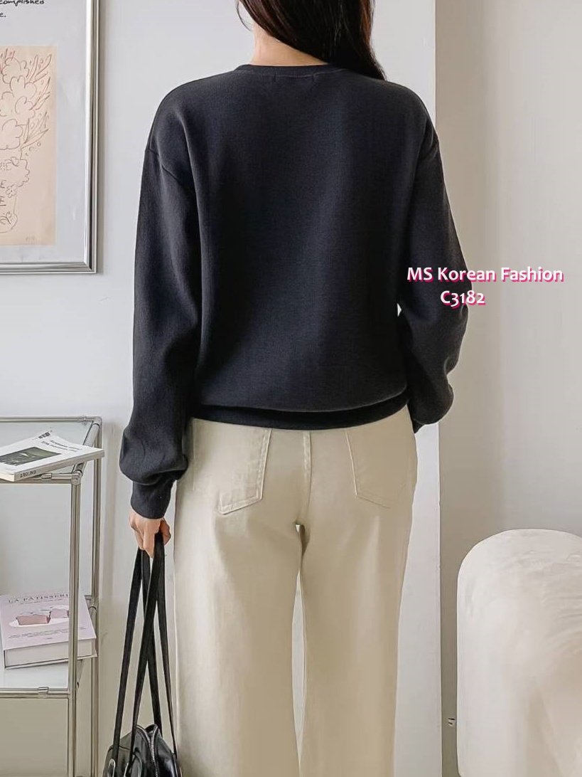 C3182 韓國🇰🇷拼色刺繡字母衛衣