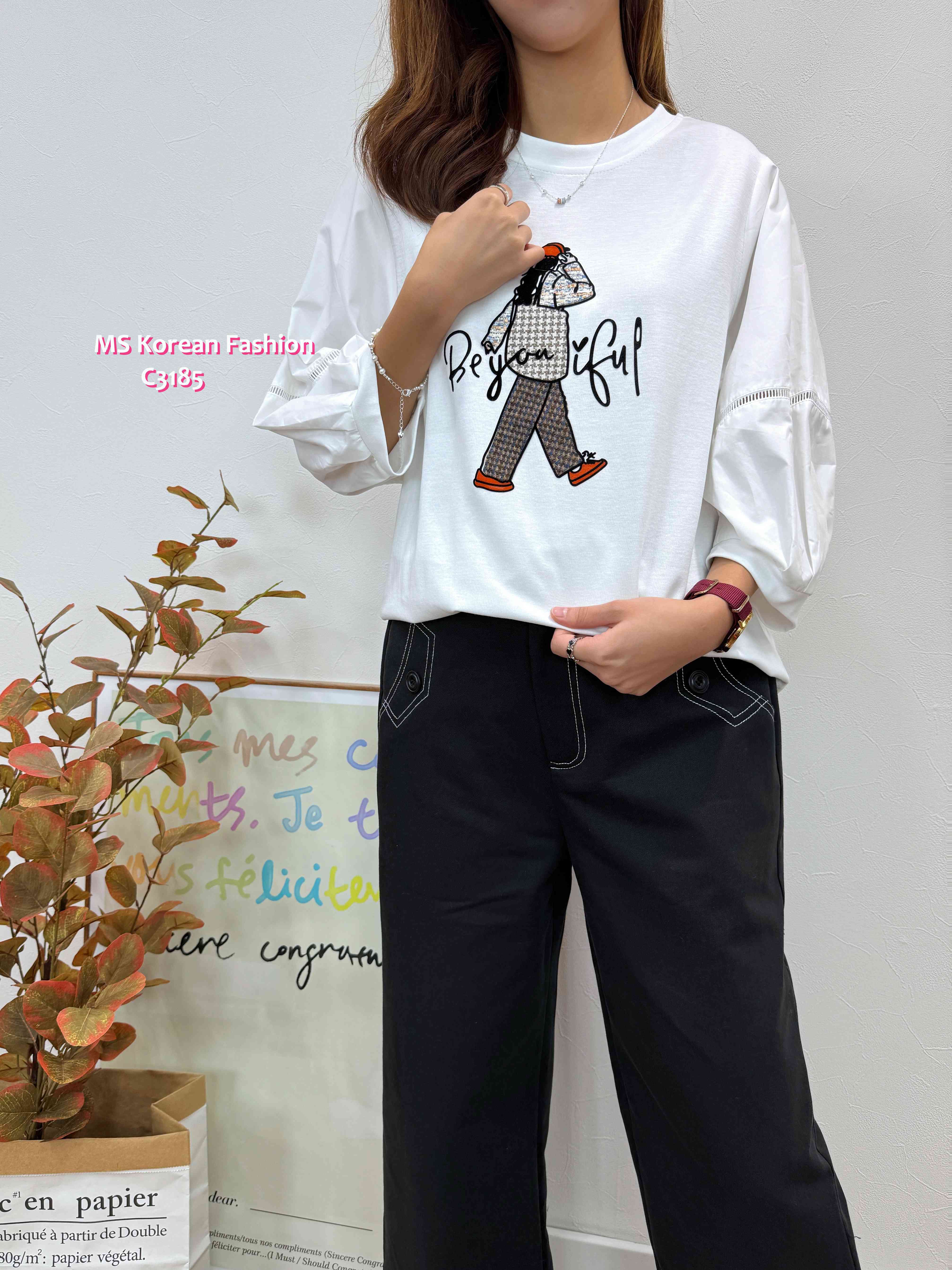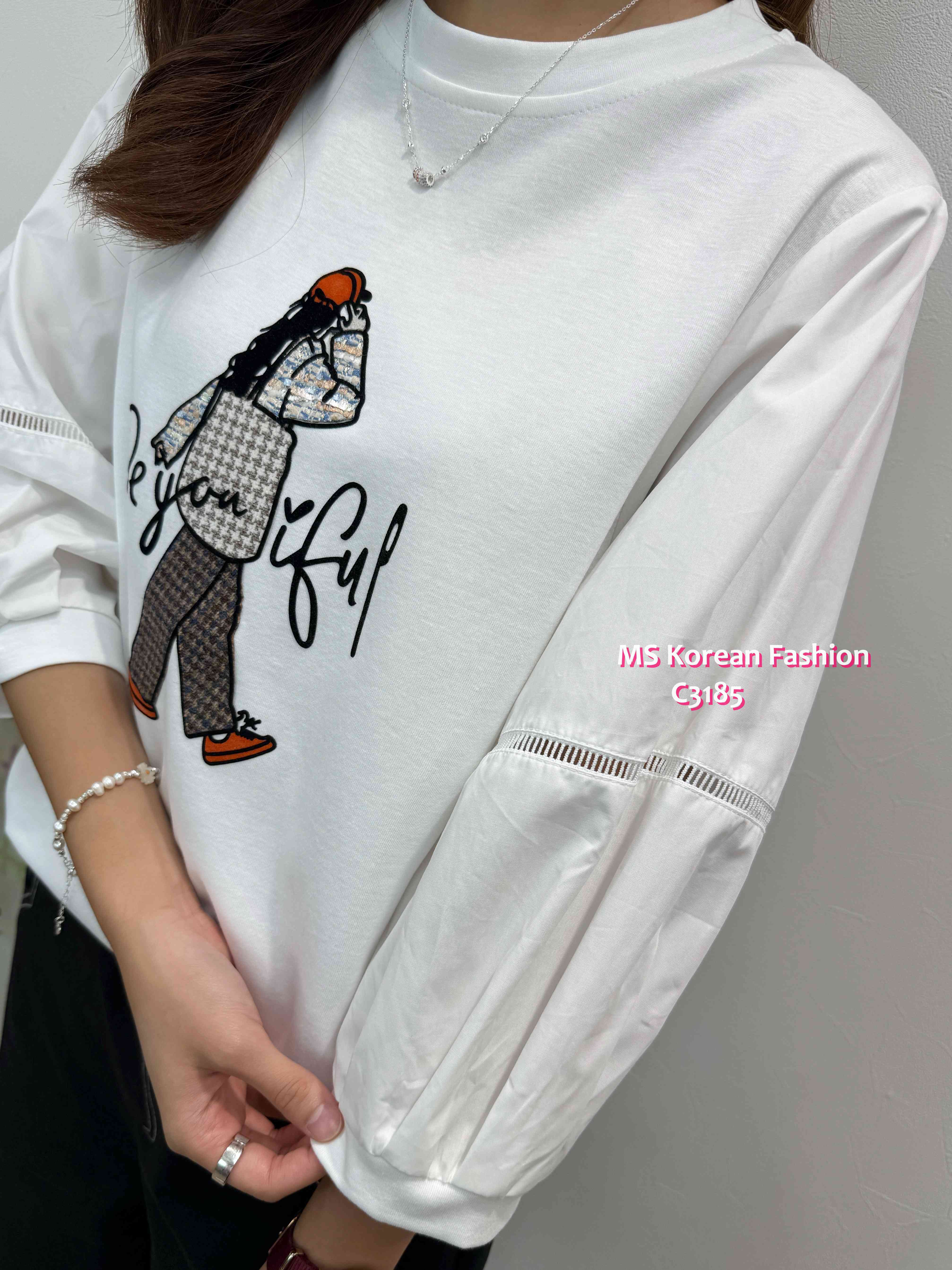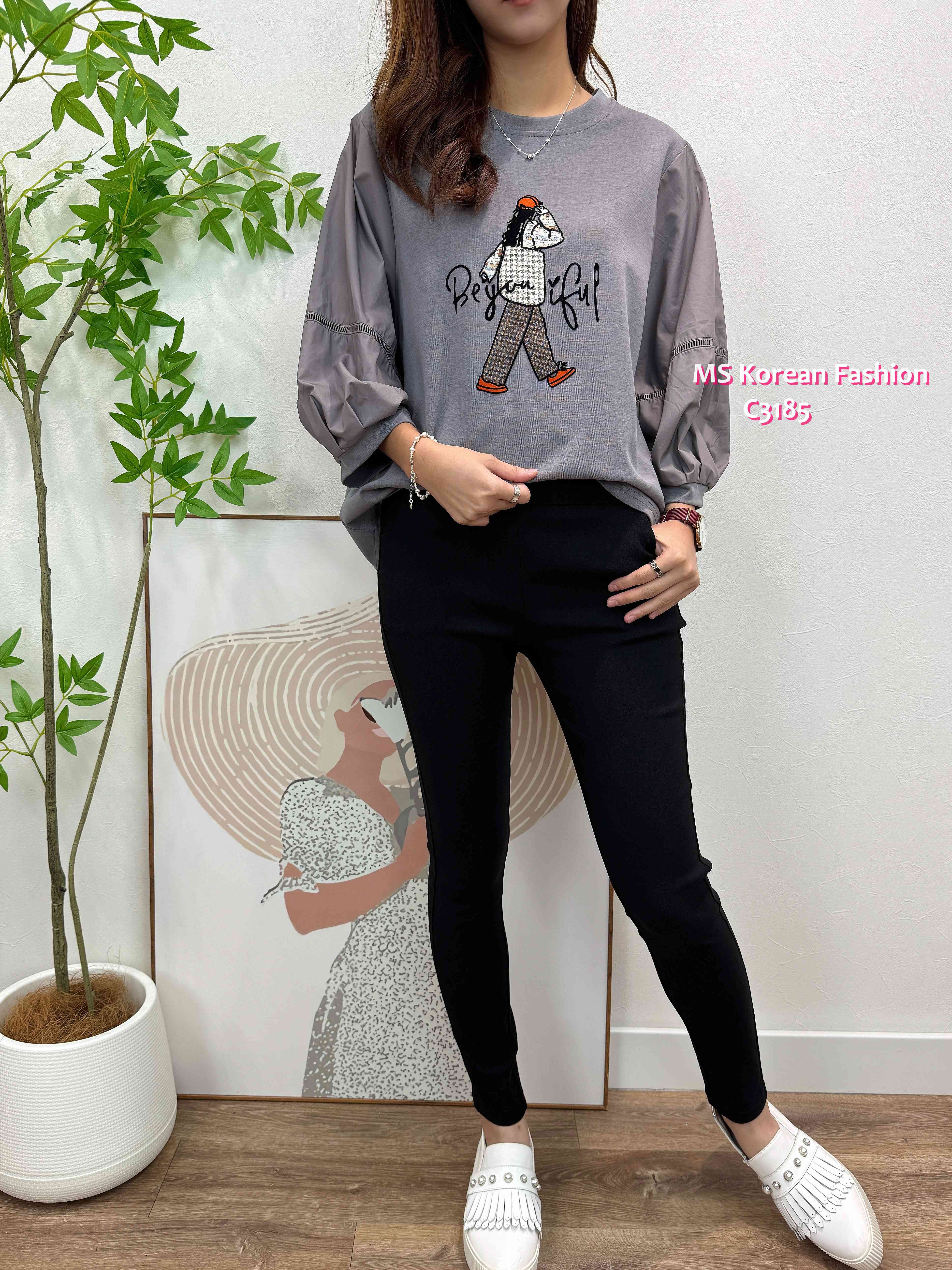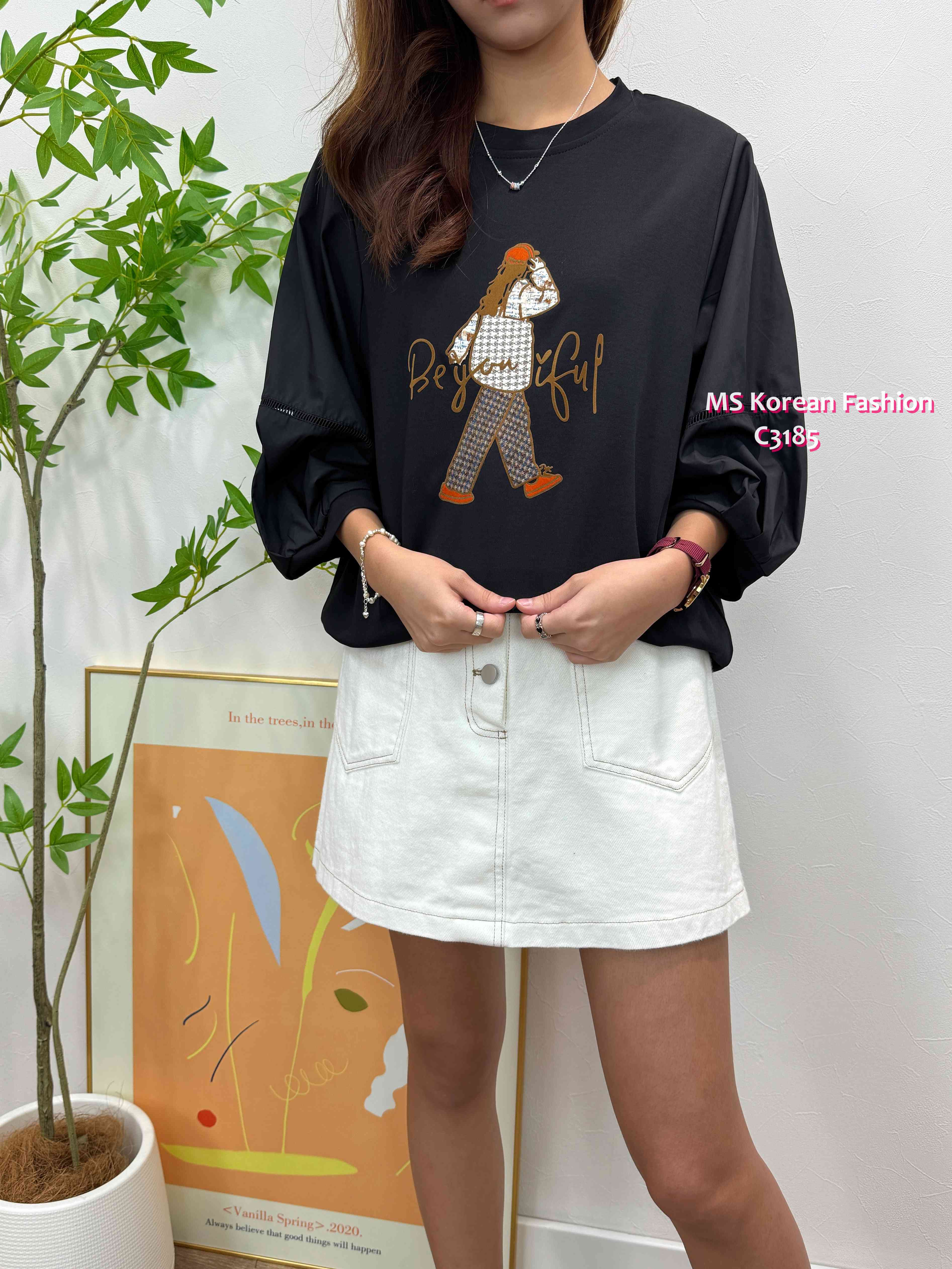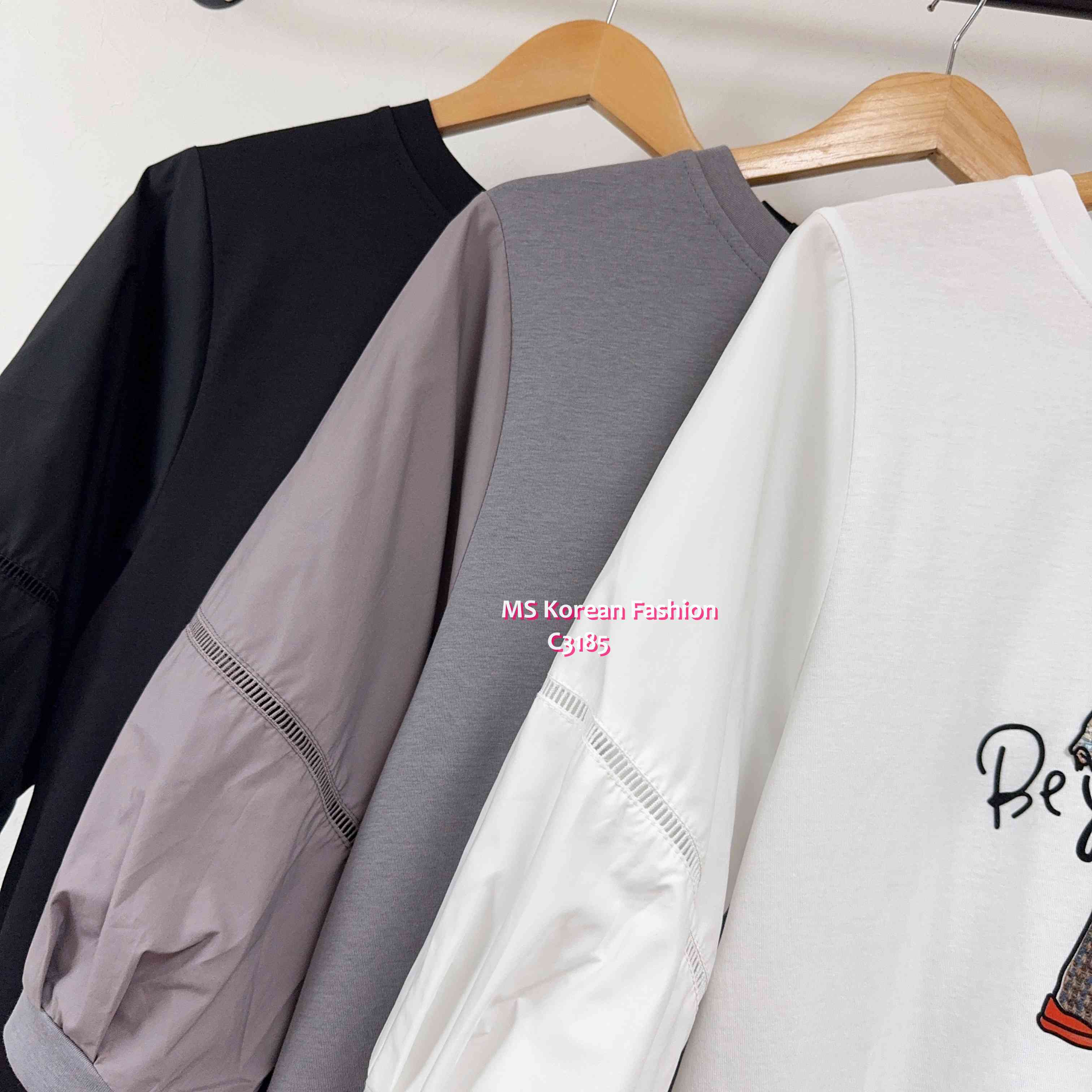 [訂貨約7-10個工作天] 💰💜$189, $179 for vip 靚print泡泡袖top🥰 挺身棉料拼恤料袖 鬆鬆地肥瘦都carry到👍 3️⃣色各有捧埸客💖 黑、灰、白 3色 尺寸 肩16"/胸42"/長24.5" 📫1件加$15包順豐站/自助櫃,2件包順豐(順豐站/自助櫃/工商/住宅) 📱查詢及Order可Inbox或Whatsapp 6317 3061