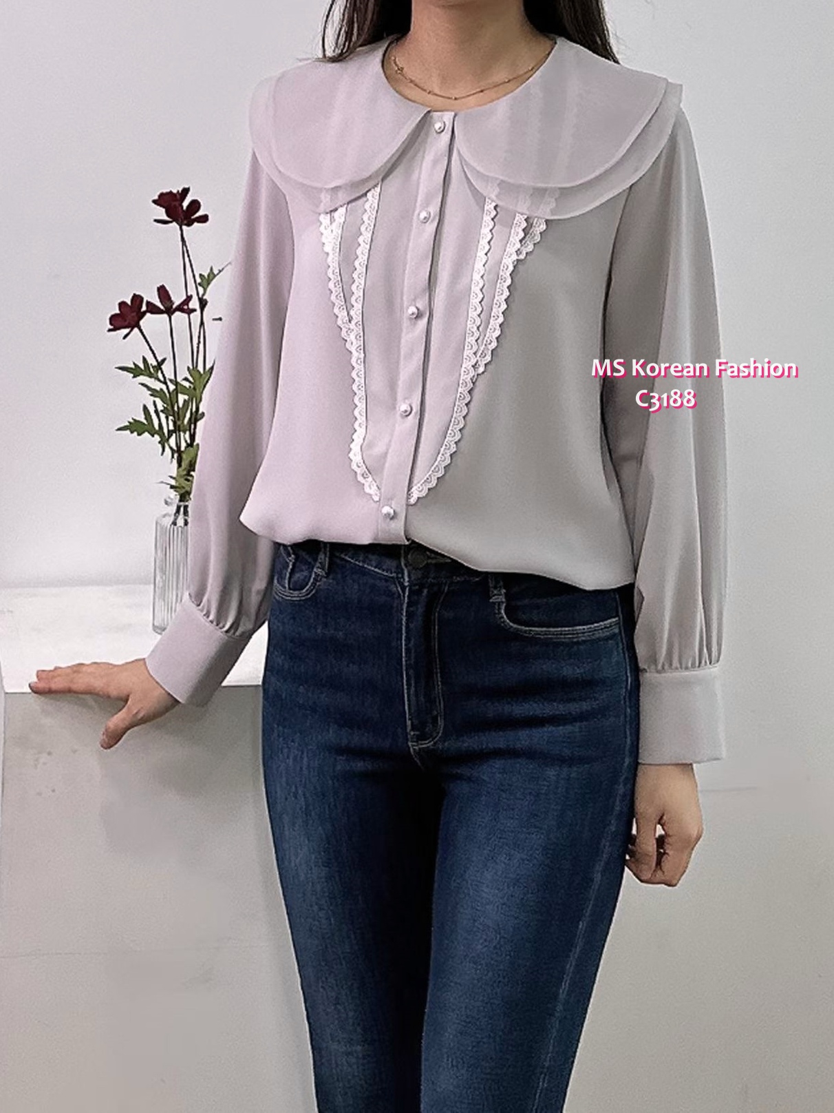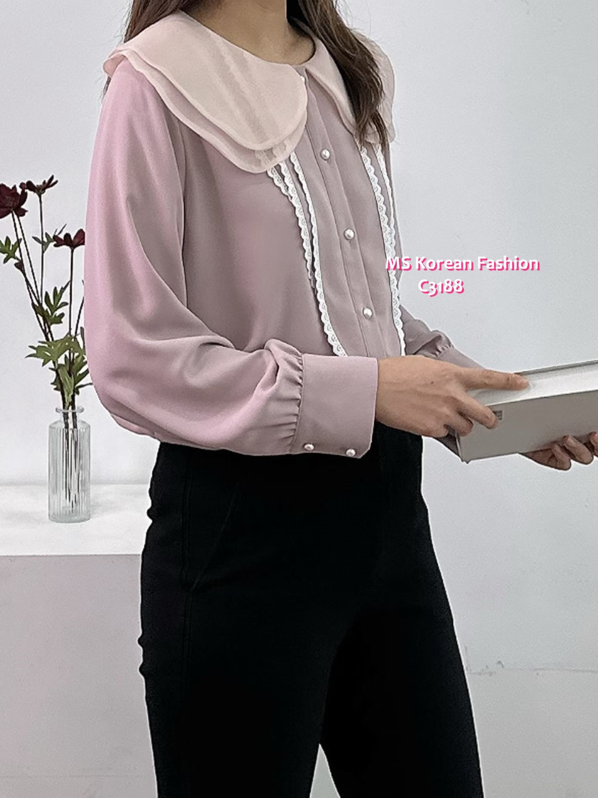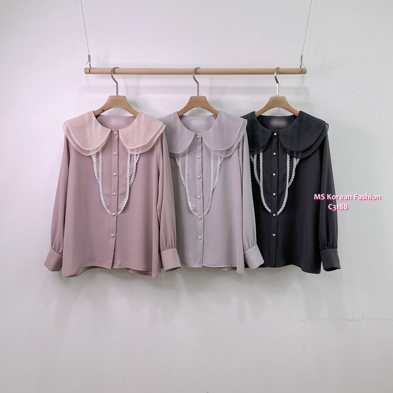 C3188 韓國🇰🇷靚料花邊雙層領top