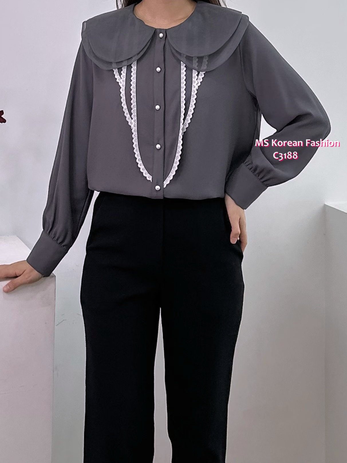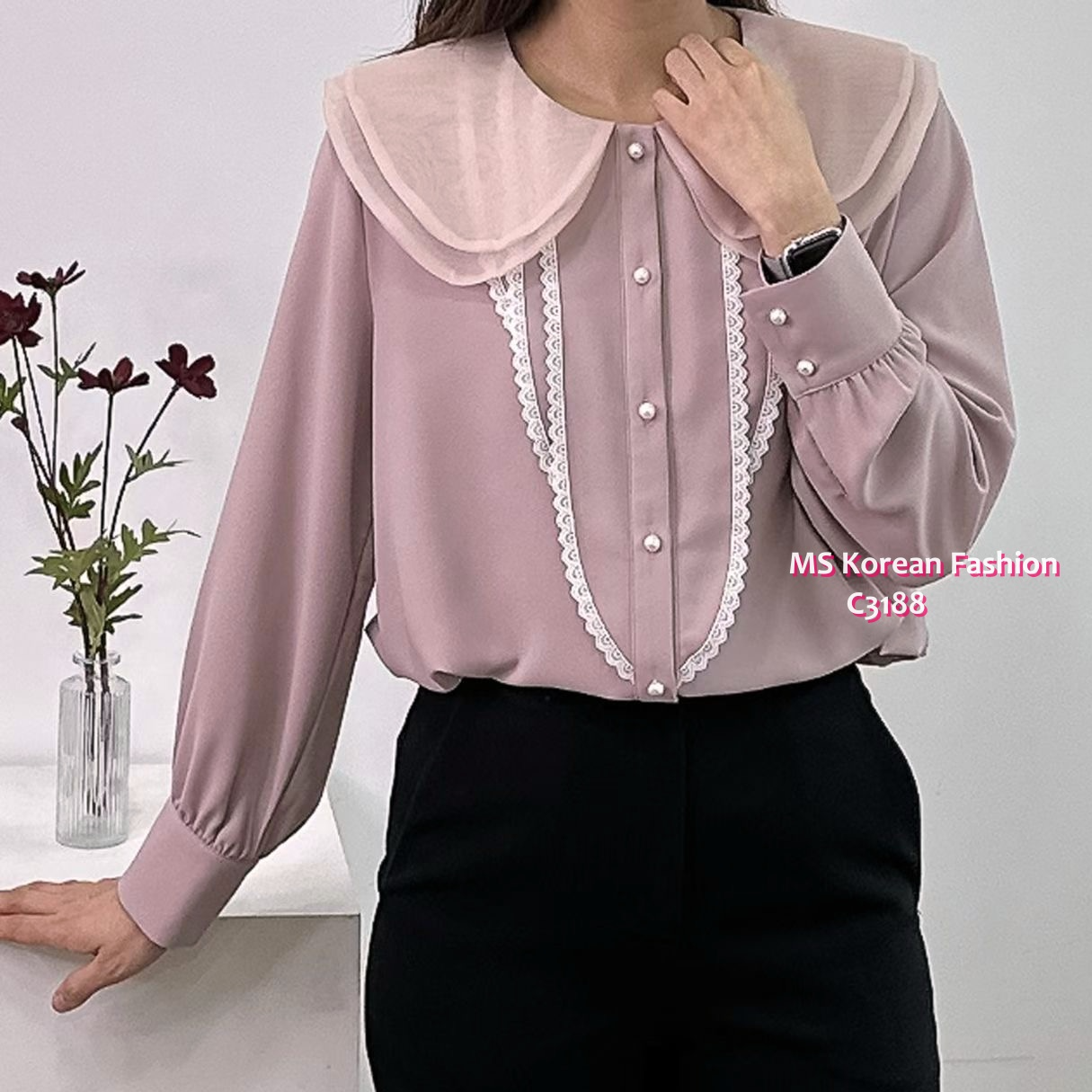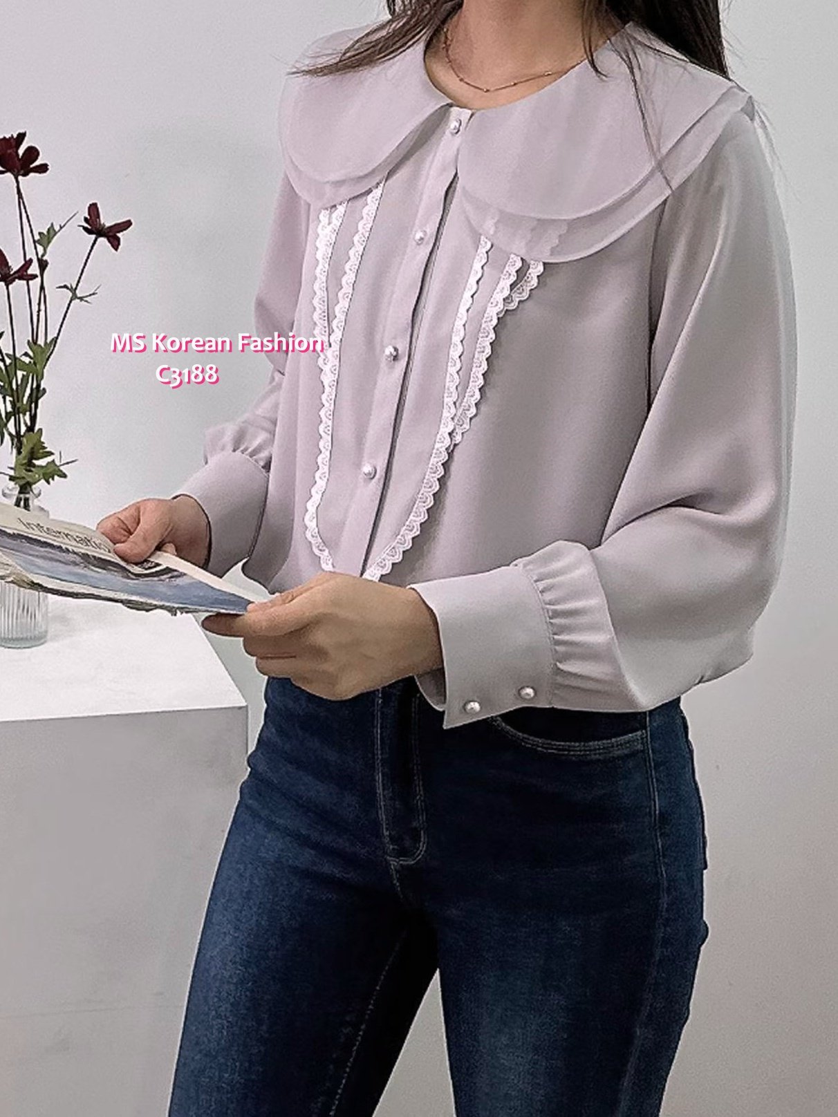 C3188 韓國🇰🇷靚料花邊雙層領top