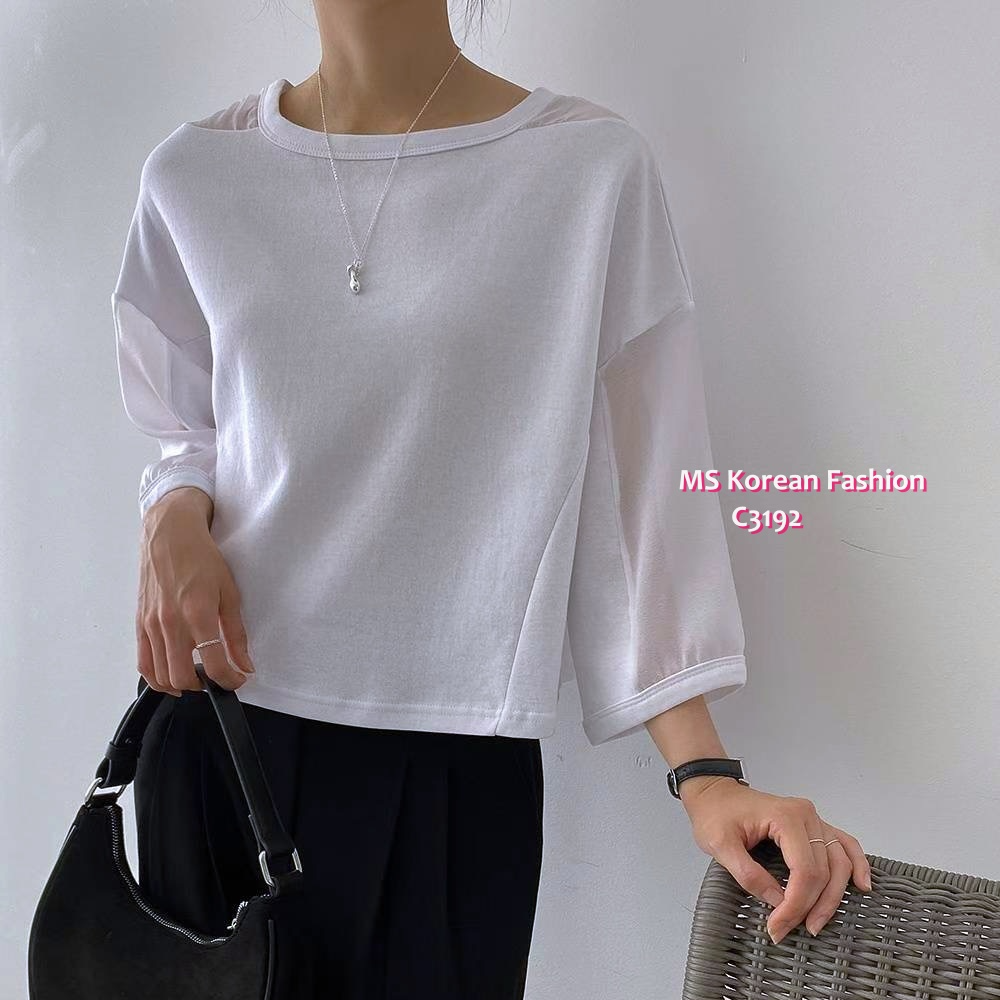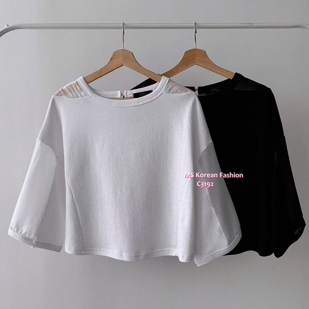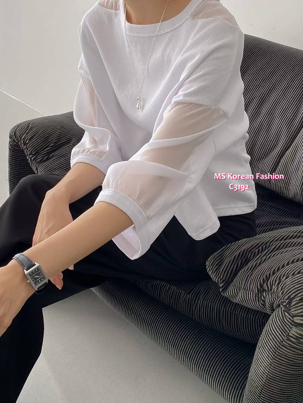 [訂貨約7-10個工作天] 💰💞Happy Price: $199 淨色透視袖top✨ 袖口同背面做左透視位 若隱若現有睇頭😻 清清地 斯文或casual look都carry到✌ 白、黑 2色 尺寸 胸44"/長20" 📫1件加$15包順豐站/自助櫃,2件包順豐(順豐站/自助櫃/工商/住宅) 📱查詢及Order可Inbox或Whatsapp 6317 3061