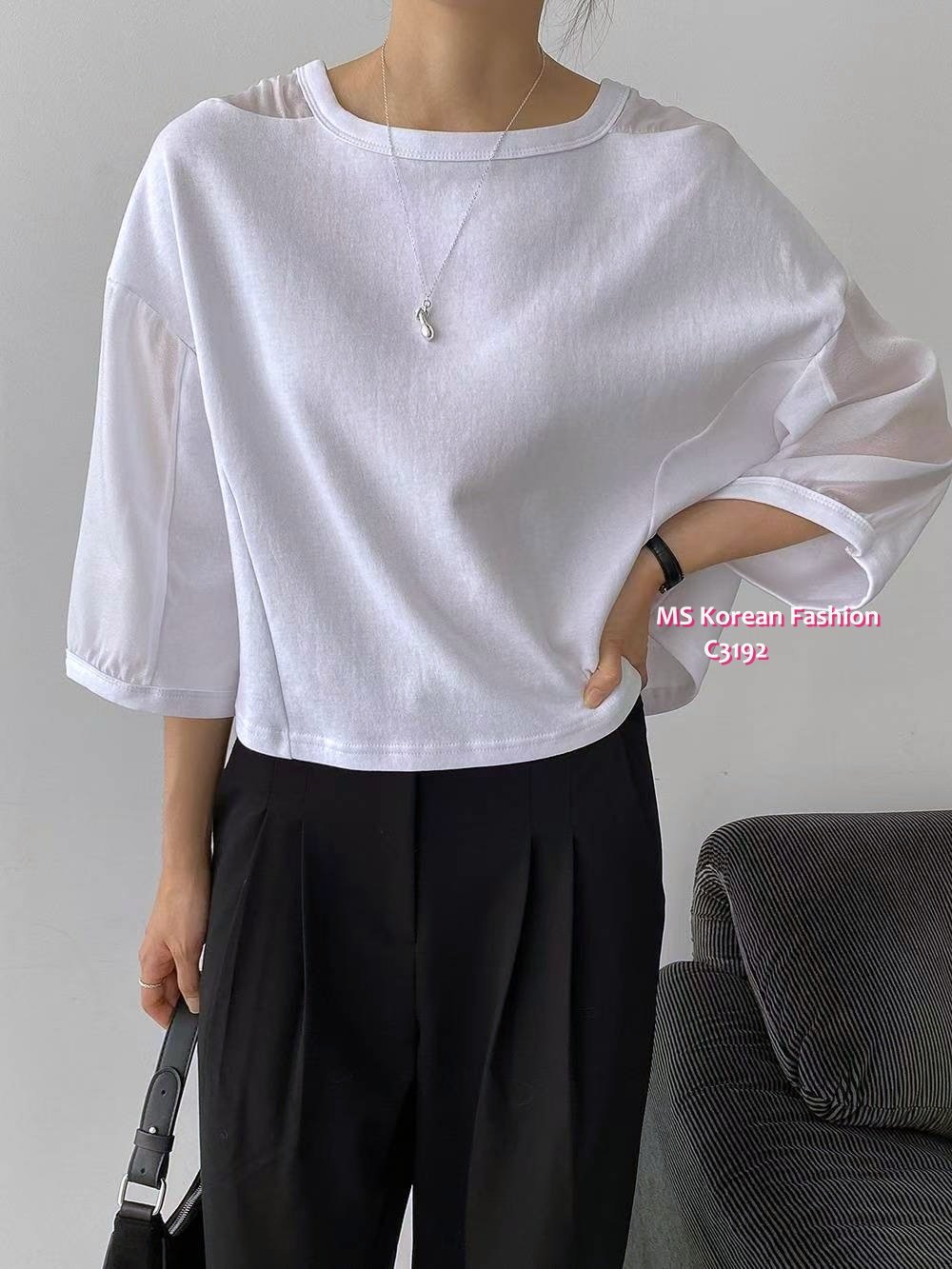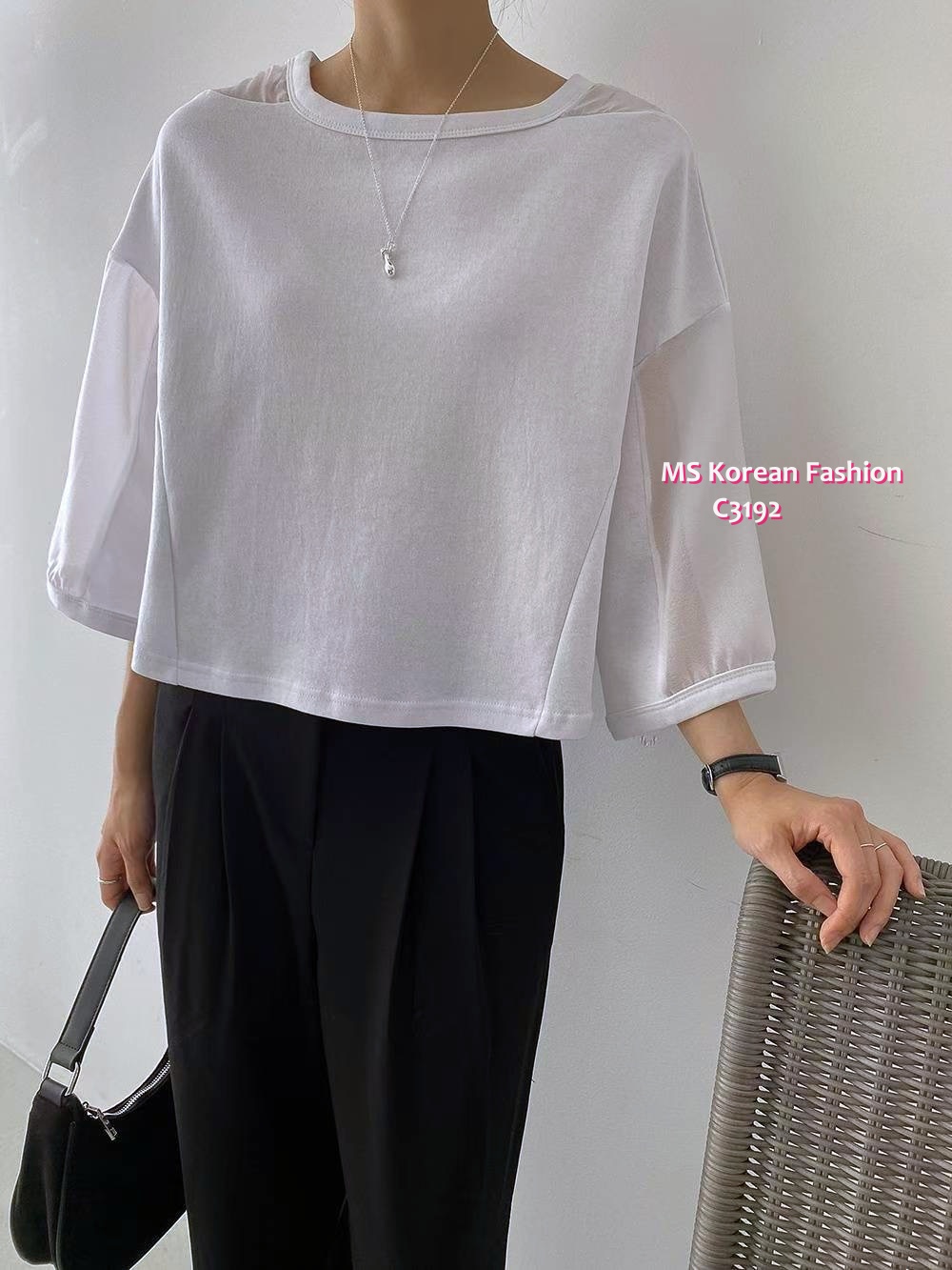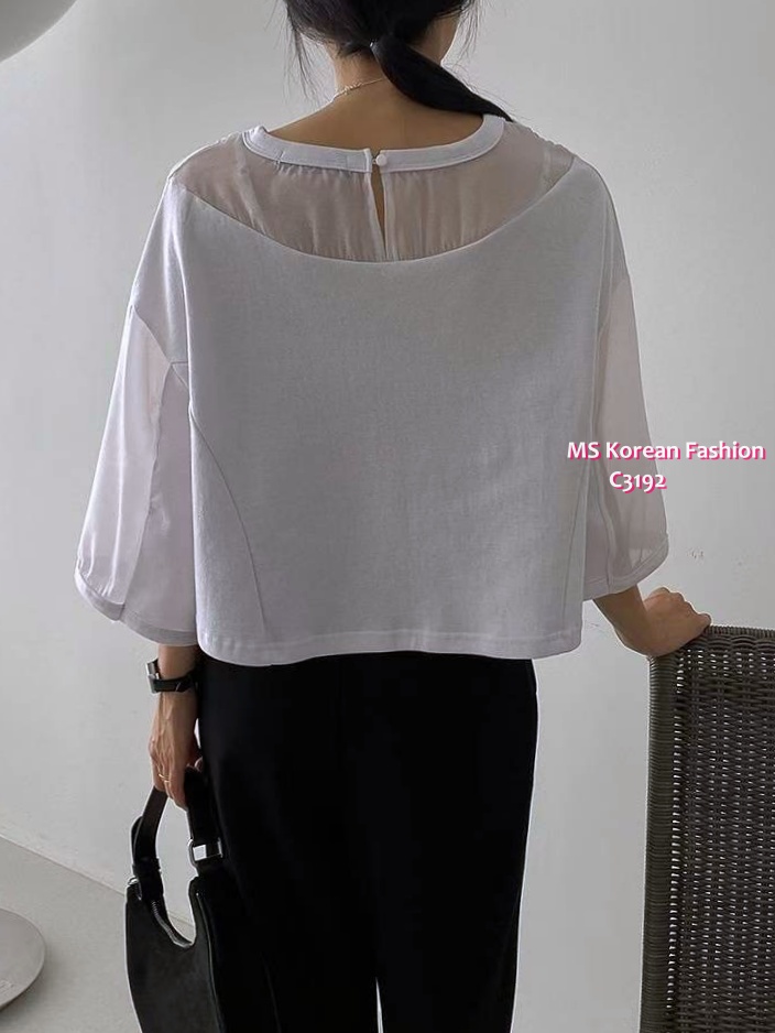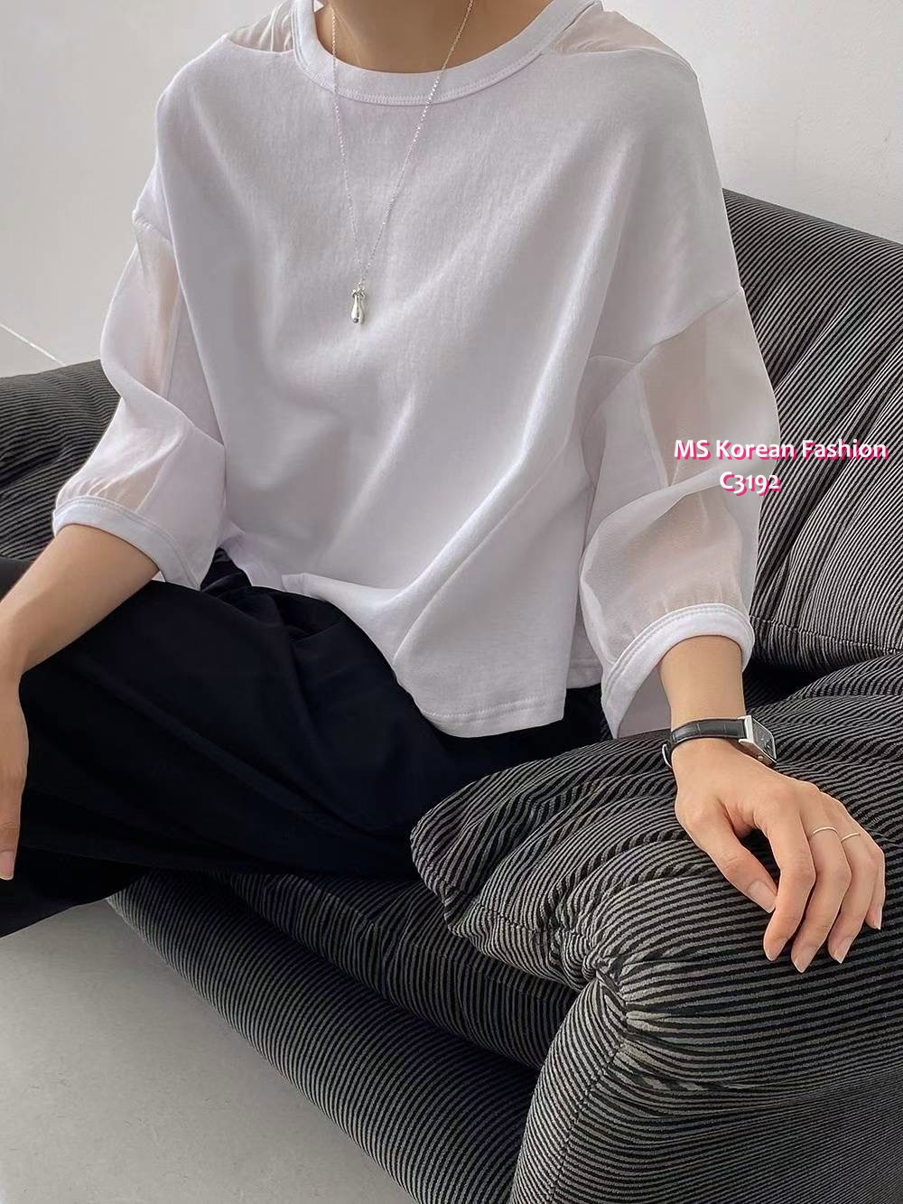 [訂貨約7-10個工作天] 💰💞Happy Price: $199 淨色透視袖top✨ 袖口同背面做左透視位 若隱若現有睇頭😻 清清地 斯文或casual look都carry到✌ 白、黑 2色 尺寸 胸44"/長20" 📫1件加$15包順豐站/自助櫃,2件包順豐(順豐站/自助櫃/工商/住宅) 📱查詢及Order可Inbox或Whatsapp 6317 3061