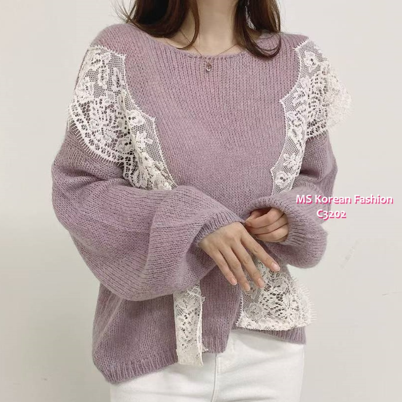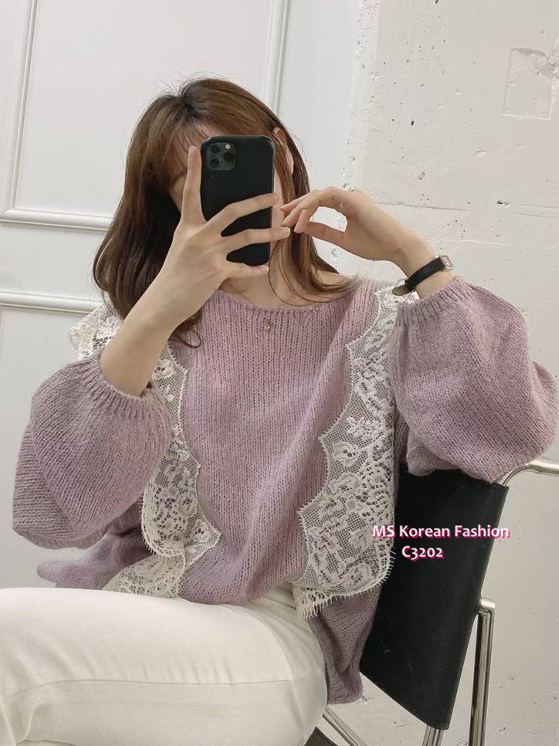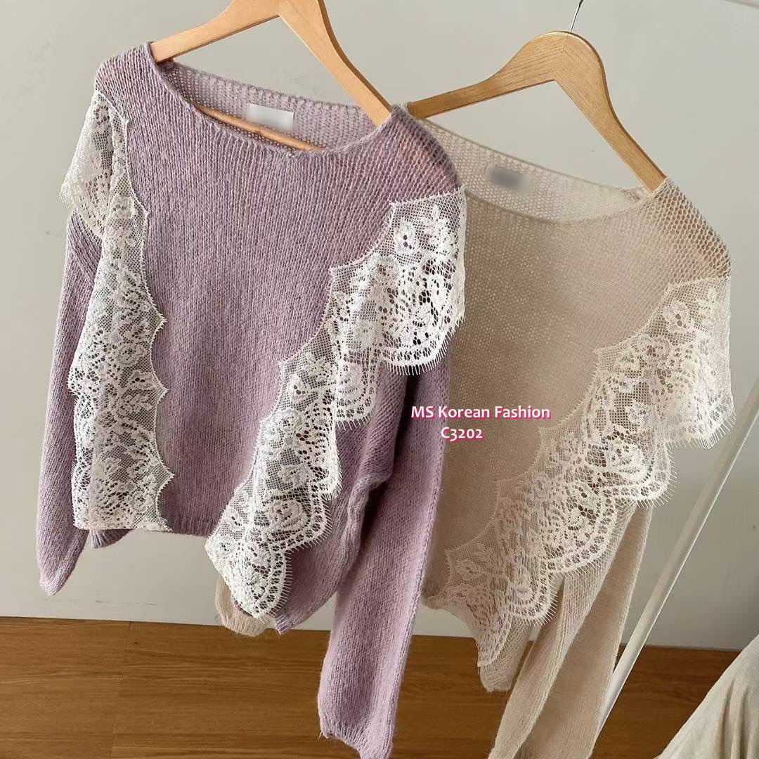 [訂貨約7-10個工作天] 💰💞Happy Price: $279 靚色針織拼lace top colour靚到叮一聲 加埋兩行波浪lace點綴好elegant呀🥰 襯裙襯褲都好睇👍 紫、杏 2色 尺寸 胸43"/長25" 📫1件加$15包順豐站/自助櫃,2件包順豐(順豐站/自助櫃/工商/住宅) 📱查詢及Order可Inbox或Whatsapp 6317 3061