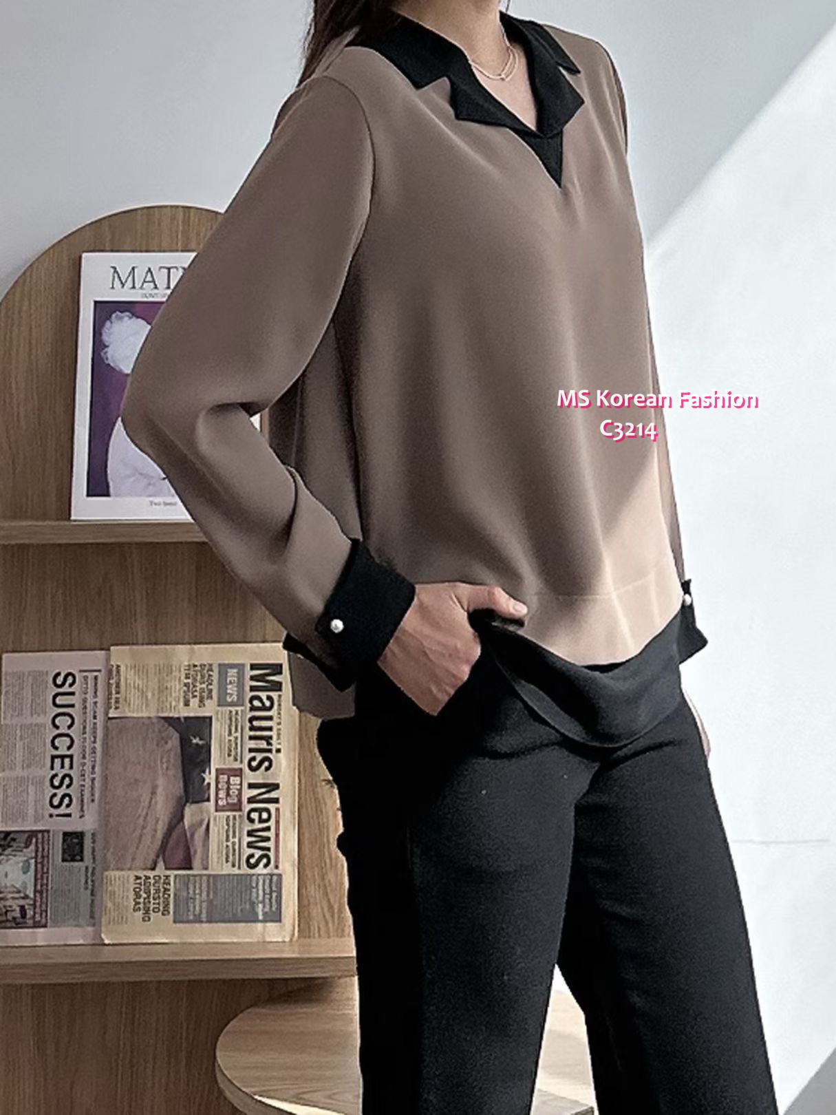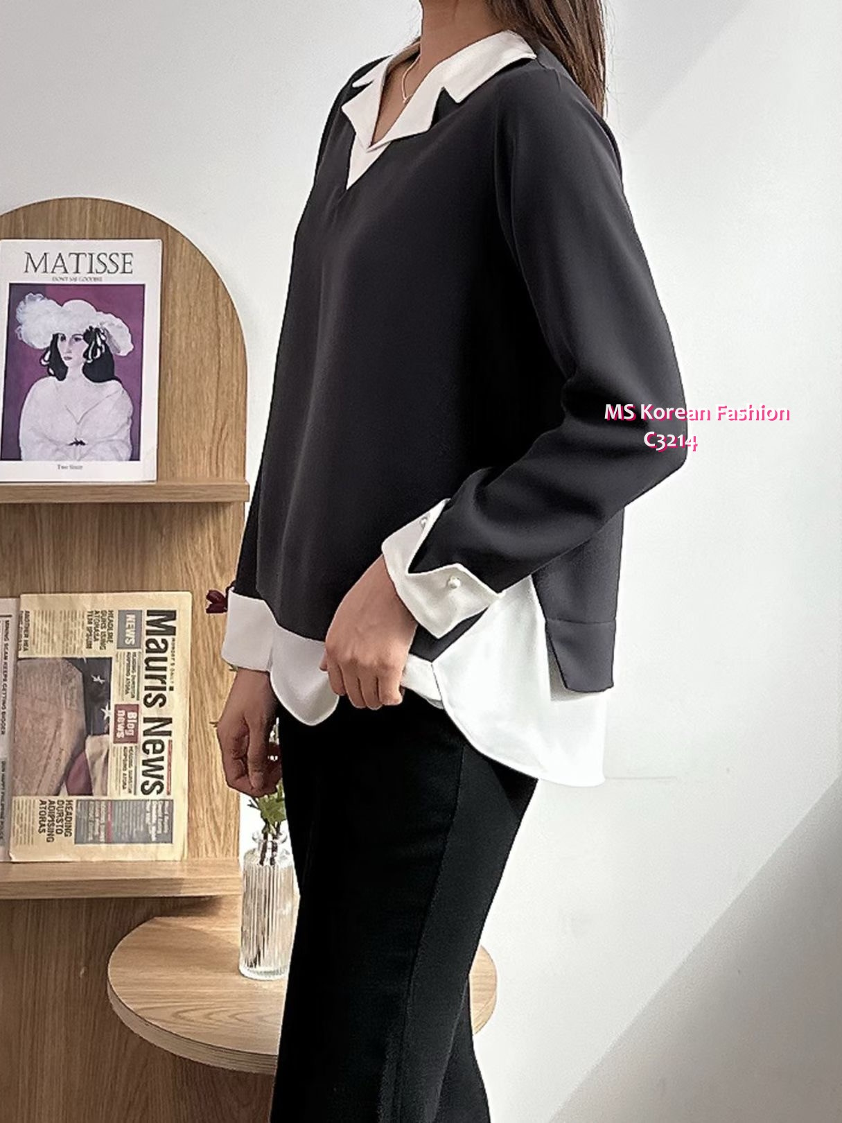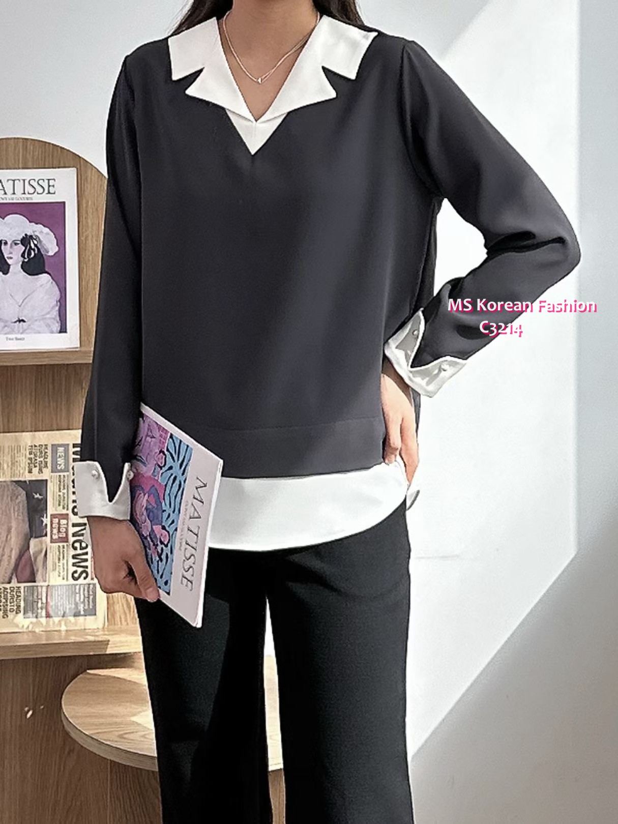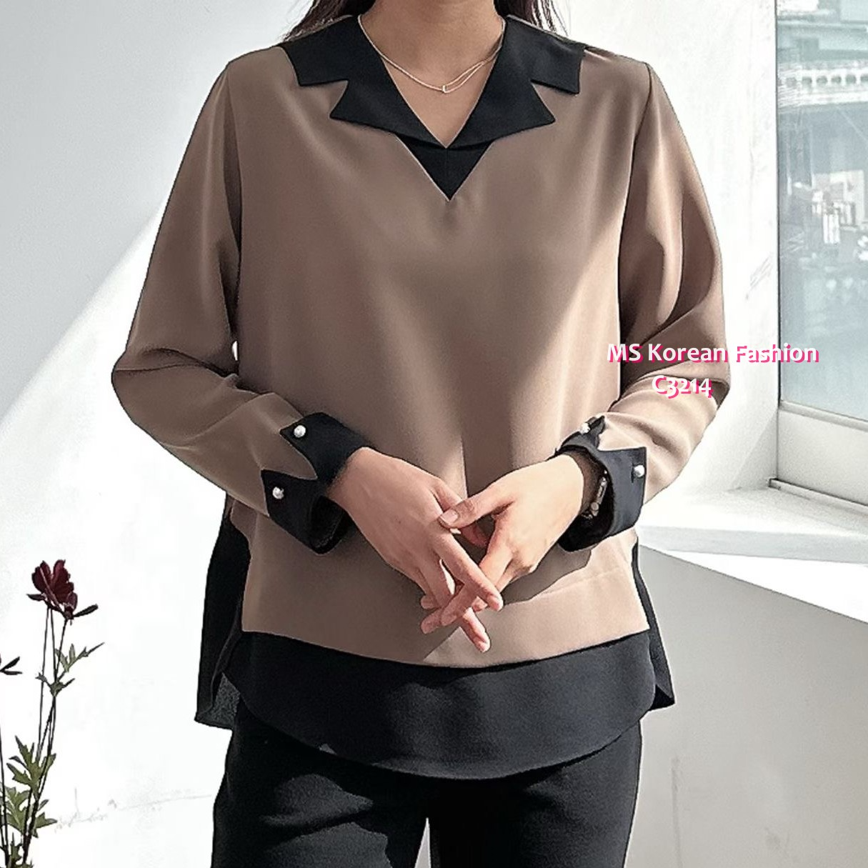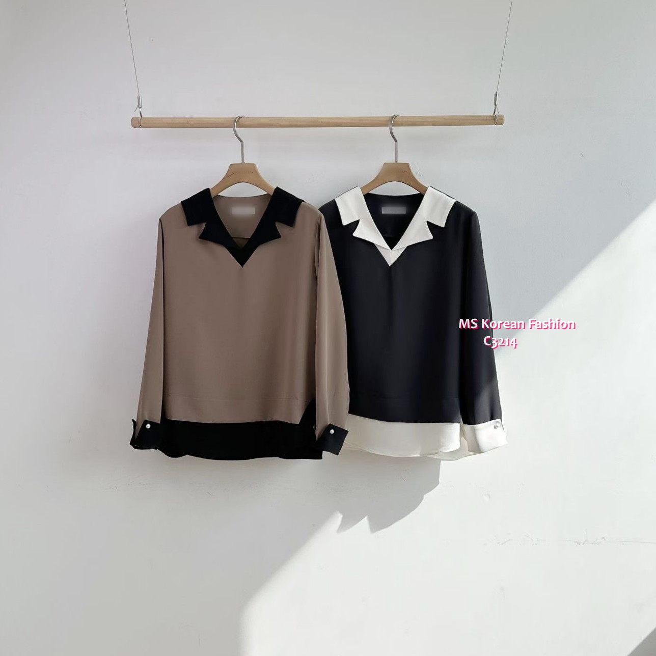 [訂貨約7-10個工作天] 💰💞Happy Price: $259 拼色雪紡靚料V領top 領口, 袖口同衫腳都做左拼色設計 簡約有款💟 OL返工或平時出街著都一流✌ 杏、黑灰 2色 尺寸 胸42"/長25" 📫1件加$15包順豐站/自助櫃,2件包順豐(順豐站/自助櫃/工商/住宅) 📱查詢及Order可Inbox或Whatsapp 6317 3061