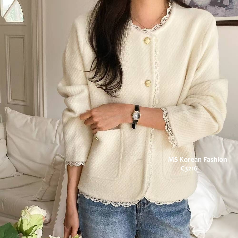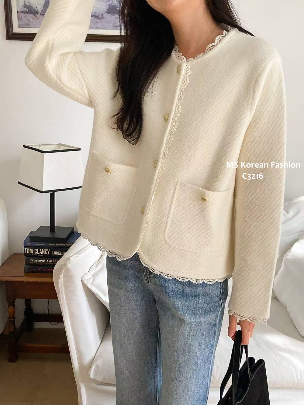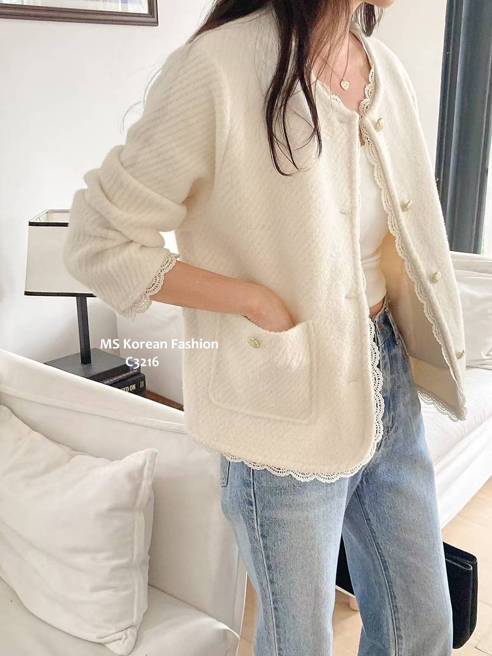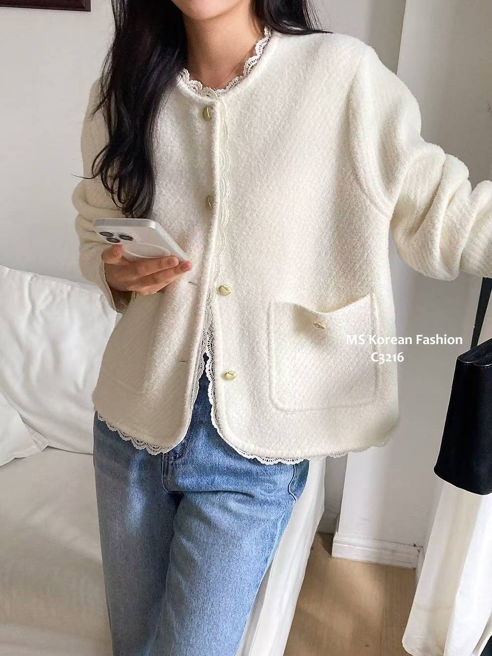 C3216 韓國🇰🇷拼lace邊特色鈕外套