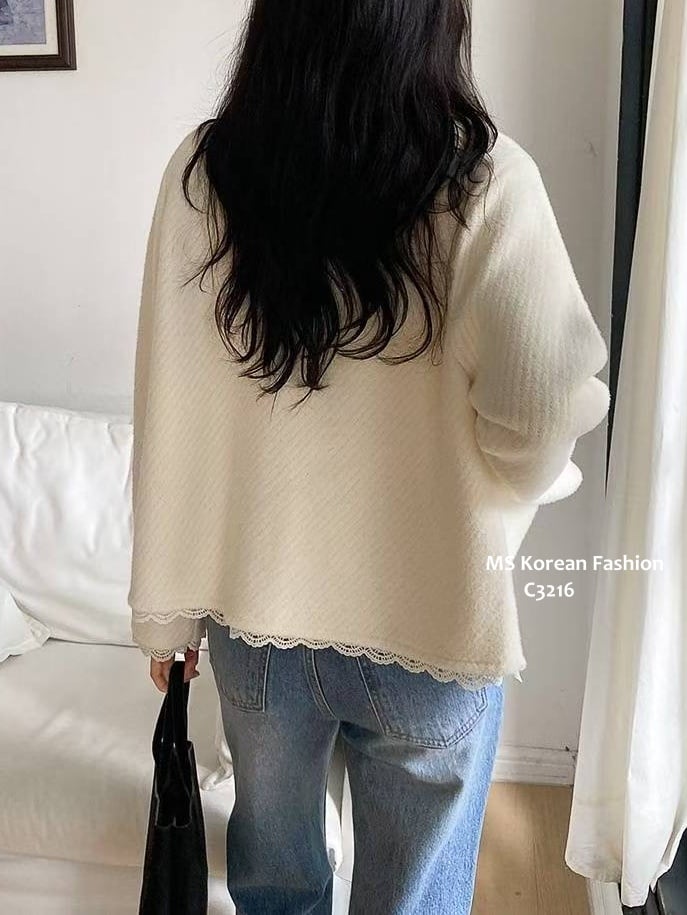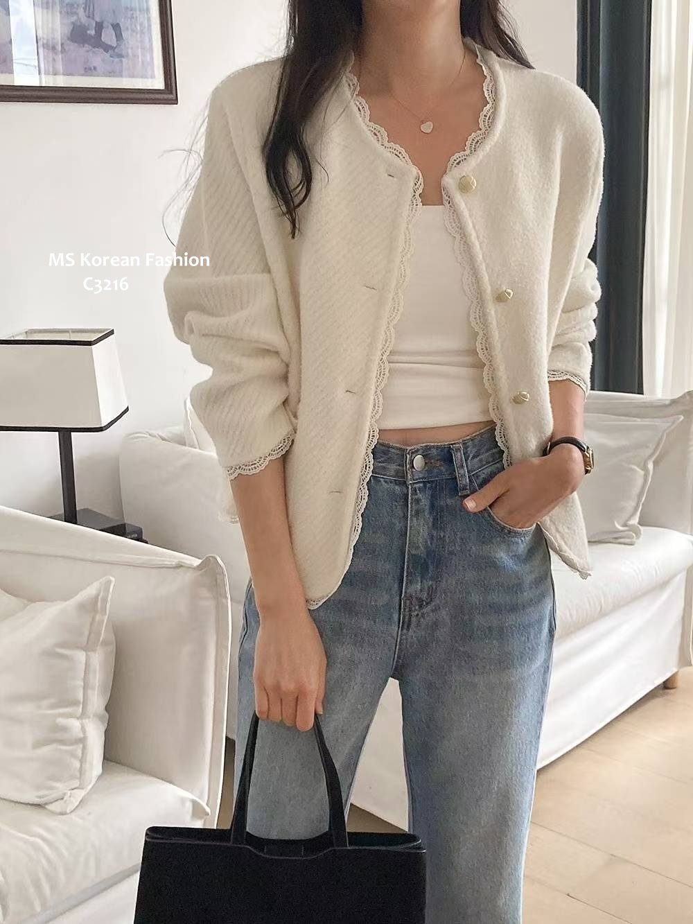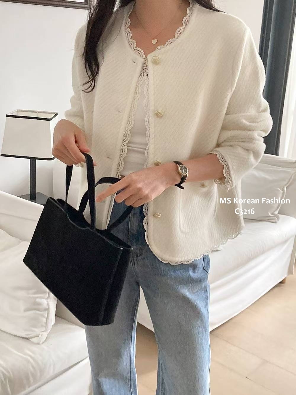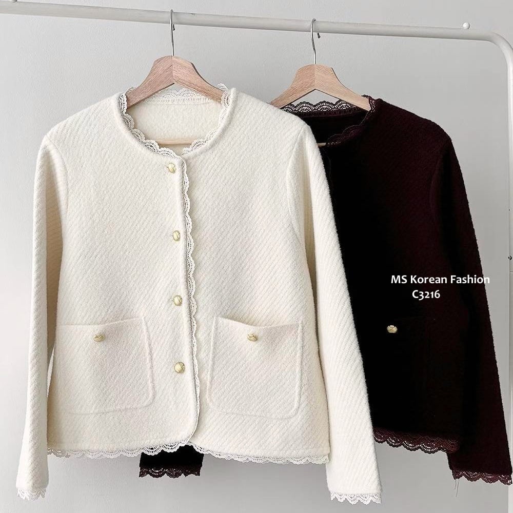 C3216 韓國🇰🇷拼lace邊特色鈕外套