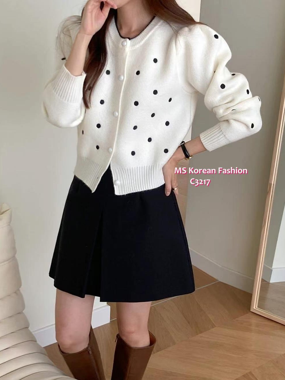 [訂貨約7-10個工作天] 💰💞Happy Price: $219 靚靚波點外套😻 滑針織料好舒服 波點pattern百搭易襯又長青 襯裙襯褲都好睇✌ 白、黑 2色 尺寸 胸39"/長21" 📫1件加$15包順豐站/自助櫃,2件包順豐(順豐站/自助櫃/工商/住宅) 📱查詢及Order可Inbox或Whatsapp 6317 3061