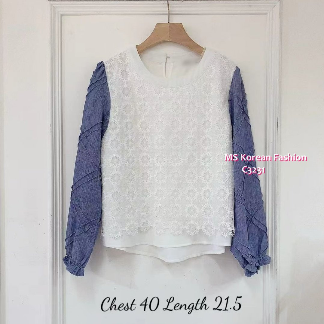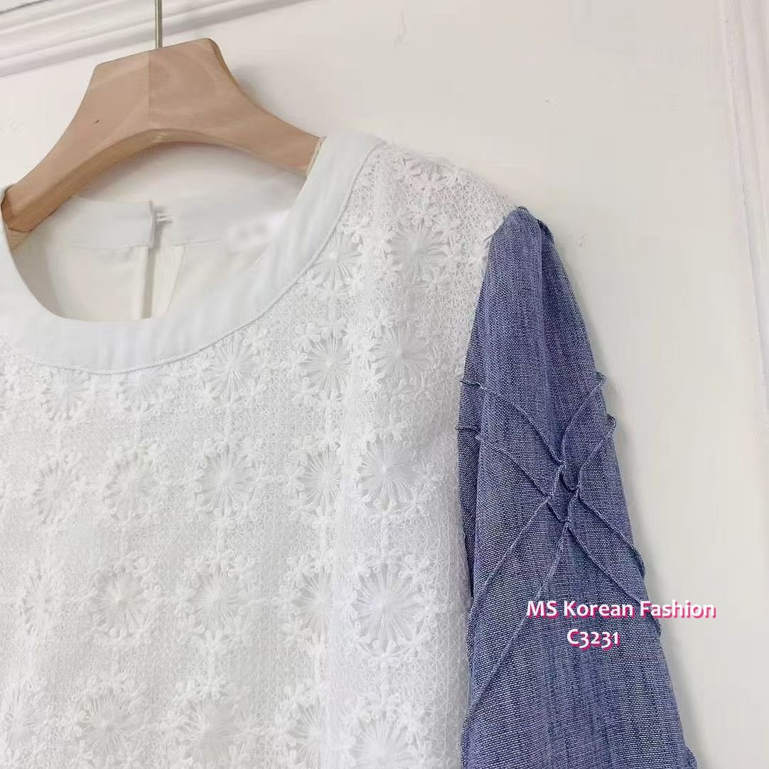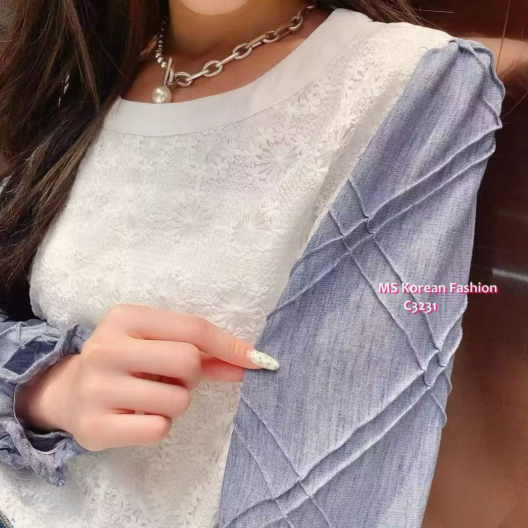 [訂貨約7-10個工作天] 💰💜$209, $199 for vip 暗花print格紋袖top🌷 勾花pattern巧令令 兩邊拼藍色格紋設計個款好出💙 清清地又有款 尺寸 胸40"/長21.5" 📫1件加$15包順豐站/自助櫃,2件包順豐(順豐站/自助櫃/工商/住宅) 📱查詢及Order可Inbox或Whatsapp 6317 3061
