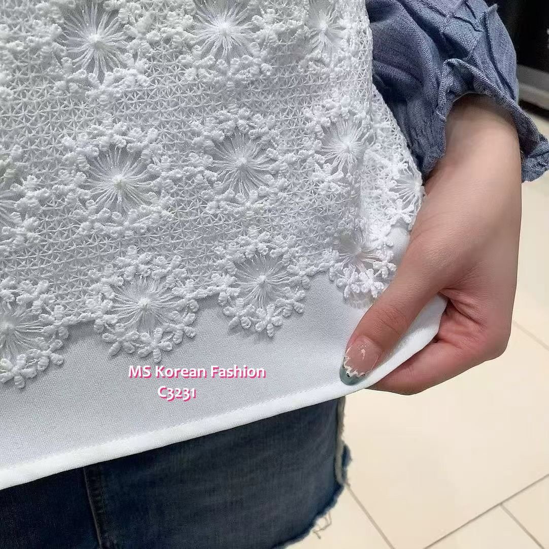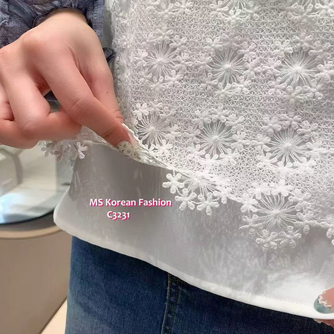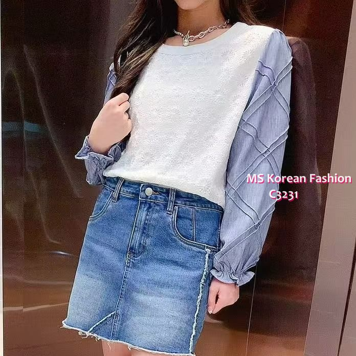 [訂貨約7-10個工作天] 💰💜$209, $199 for vip 暗花print格紋袖top🌷 勾花pattern巧令令 兩邊拼藍色格紋設計個款好出💙 清清地又有款 尺寸 胸40"/長21.5" 📫1件加$15包順豐站/自助櫃,2件包順豐(順豐站/自助櫃/工商/住宅) 📱查詢及Order可Inbox或Whatsapp 6317 3061
