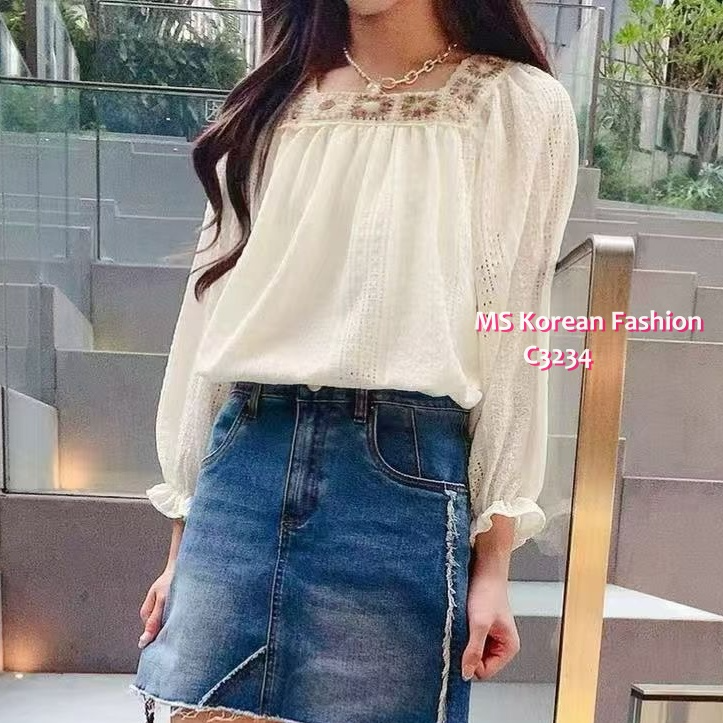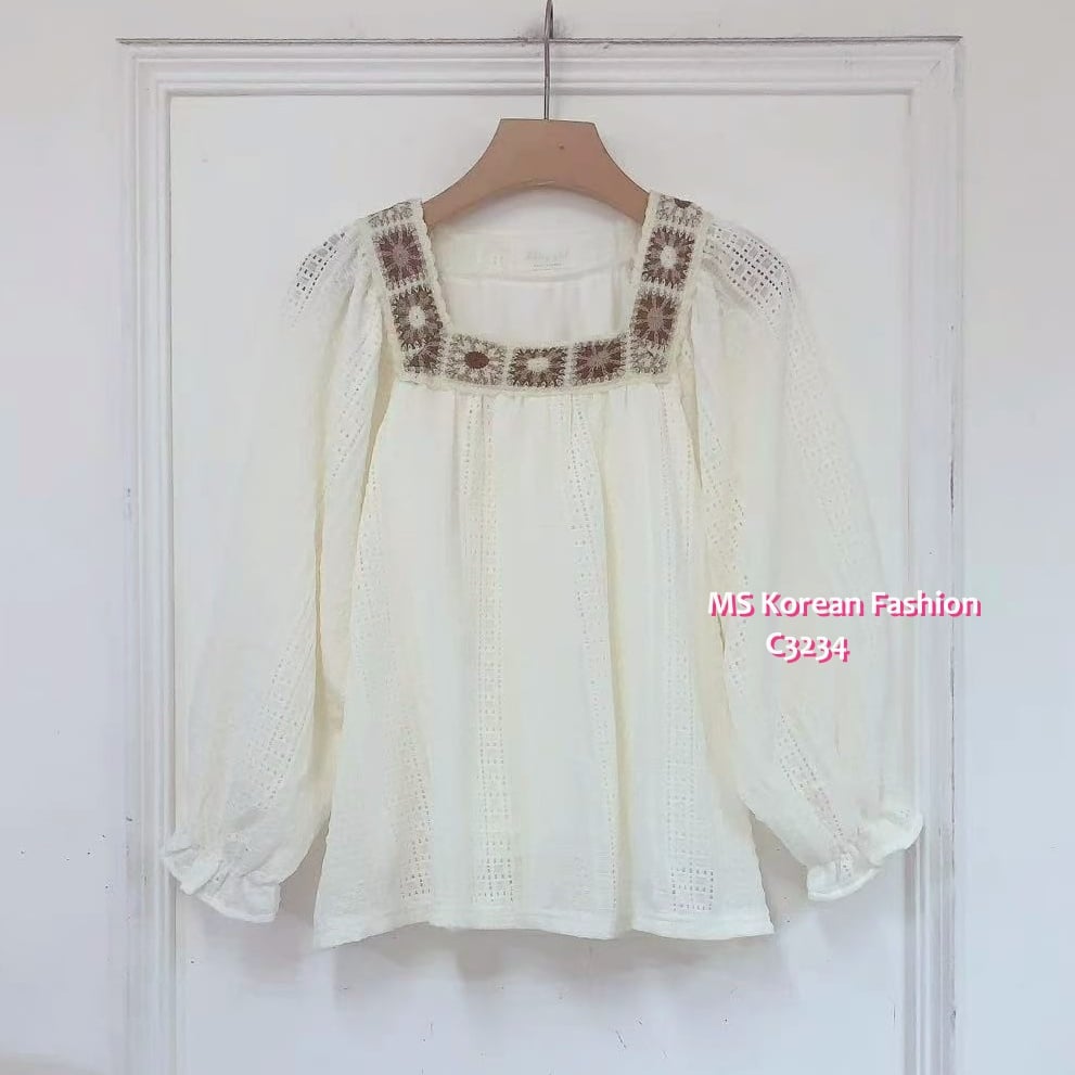 [訂貨約7-10個工作天] 💰💞Happy Price: $209 方領勾花top🌷 衫身有內里唔怕透 襯裙襯褲都好睇✌ 尺寸 胸40"/長22.5" 📫1件加$15包順豐站/自助櫃,2件包順豐(順豐站/自助櫃/工商/住宅) 📱查詢及Order可Inbox或Whatsapp 6317 3061