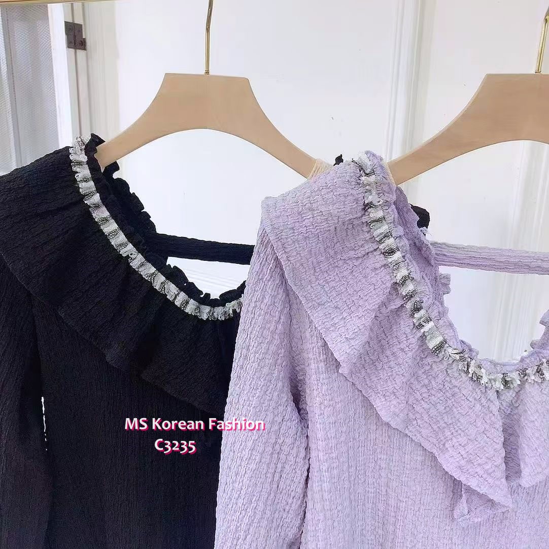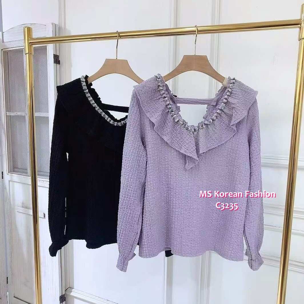 [訂貨約7-10個工作天] 💰💞Happy Price: $209 V領ruffle top✨ 皺皺壓紋布料 領口加左花邊點綴特別D 高貴大方款😻 黑、紫 2色 尺寸 胸40">拉開48"/長22.5" 📫1件加$15包順豐站/自助櫃,2件包順豐(順豐站/自助櫃/工商/住宅) 📱查詢及Order可Inbox或Whatsapp 6317 3061