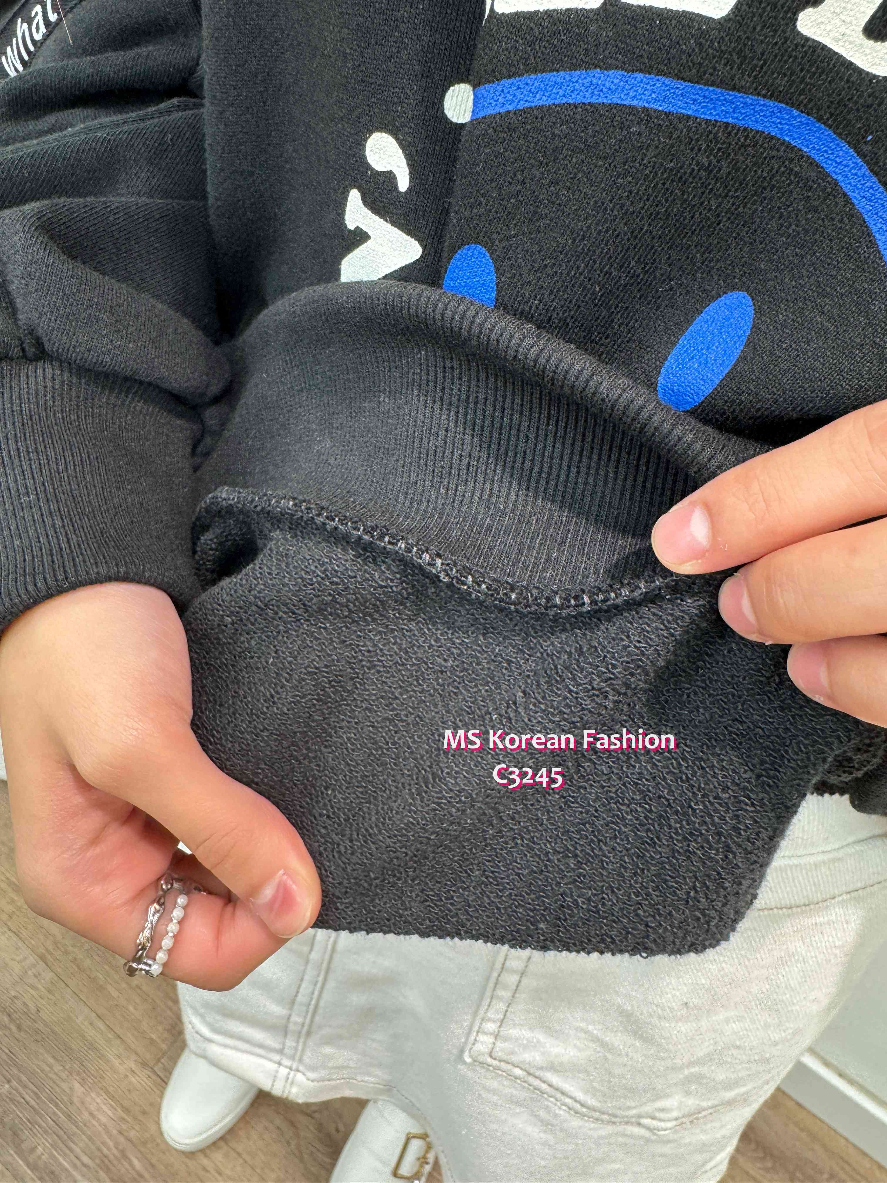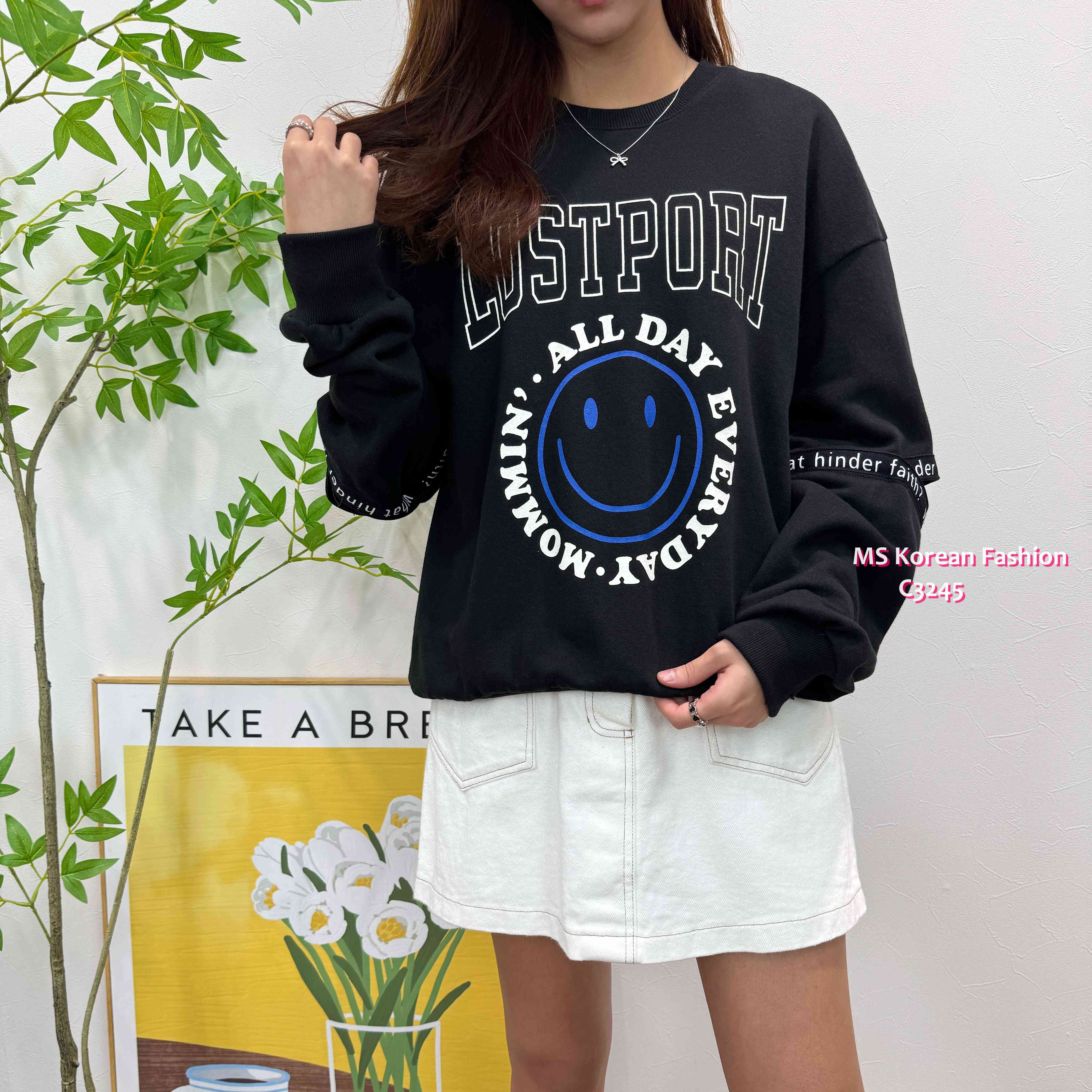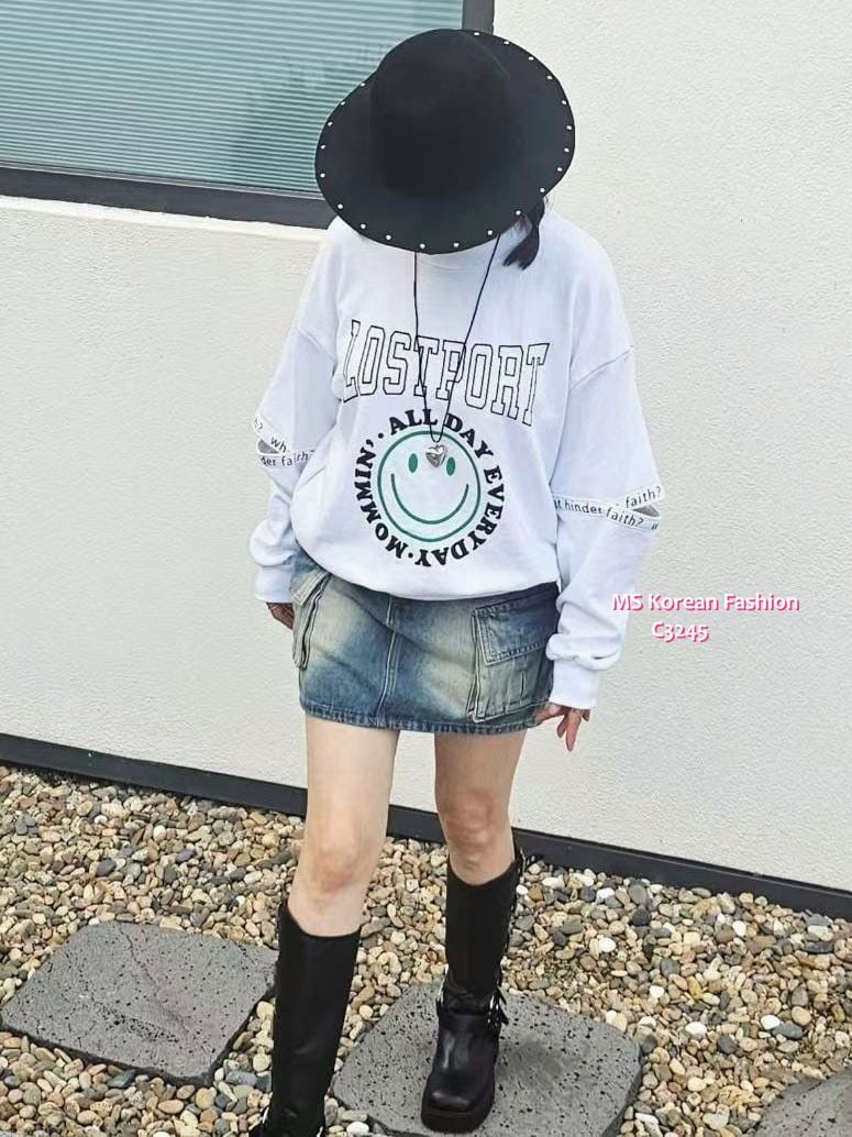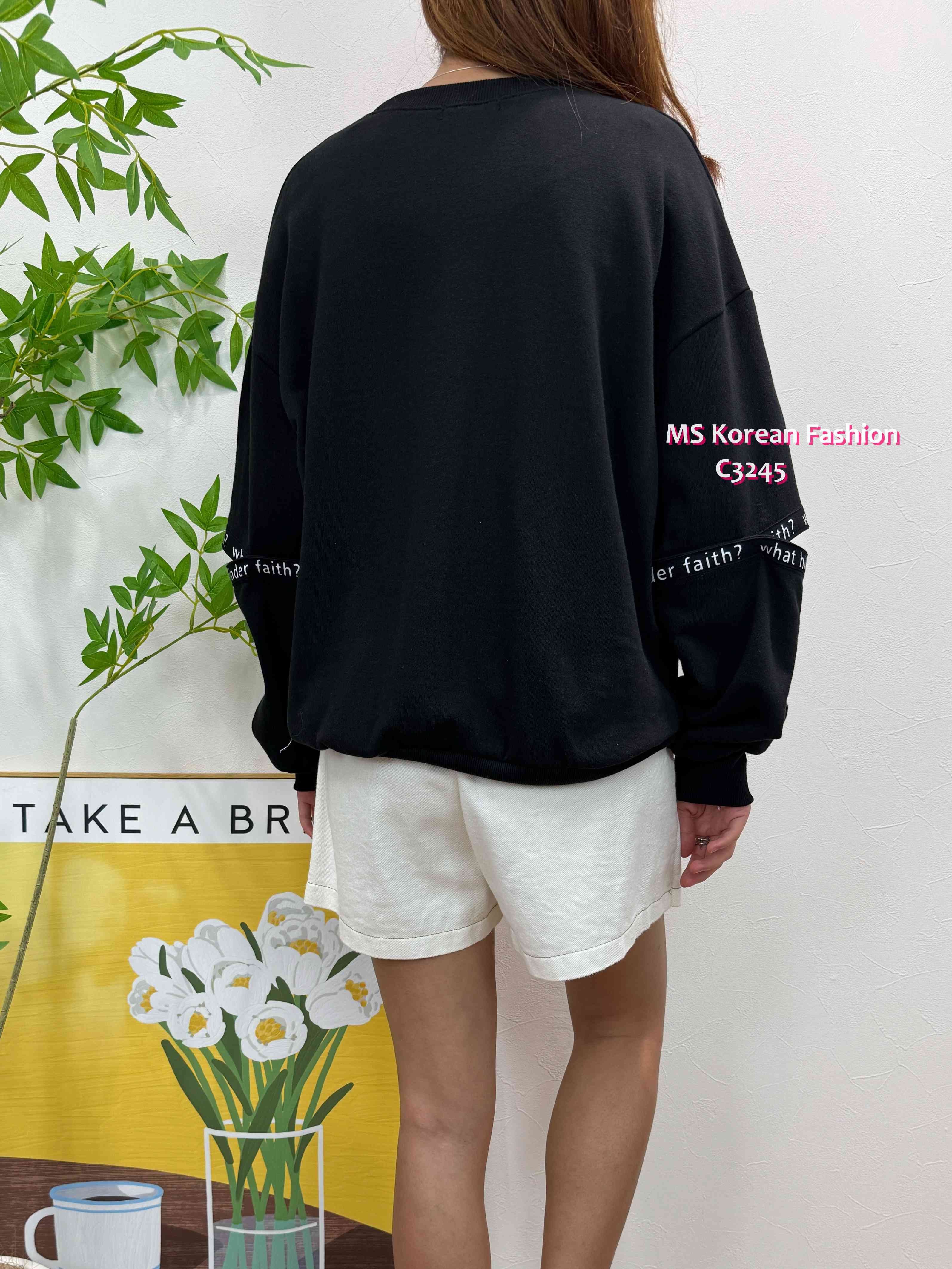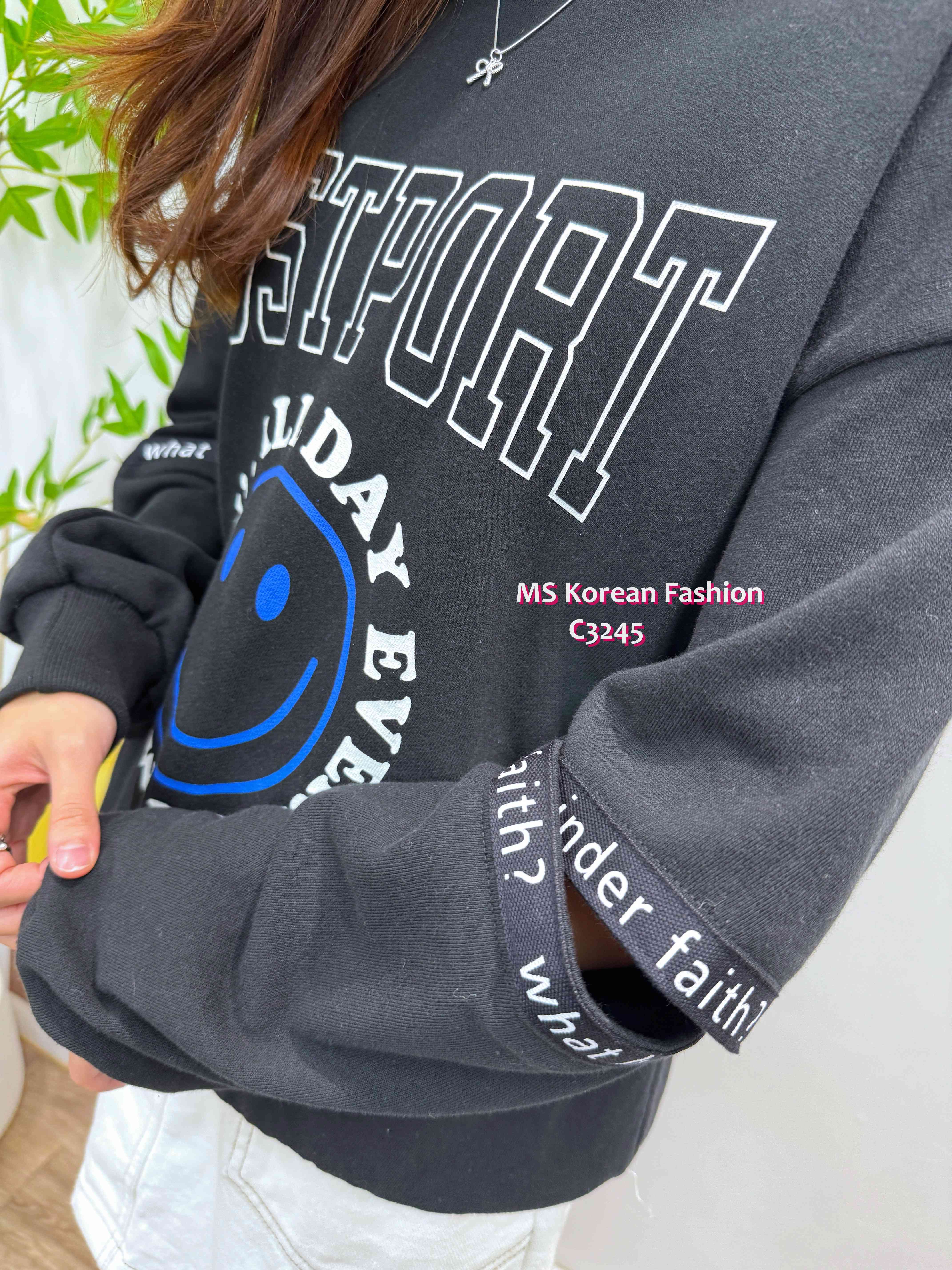 C3245 韓國🇰🇷哈哈笑穿窿字母袖衛衣