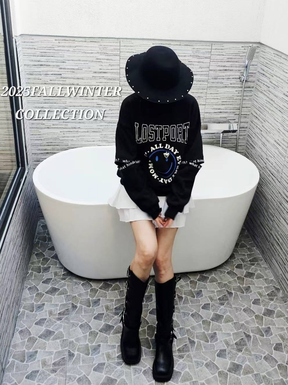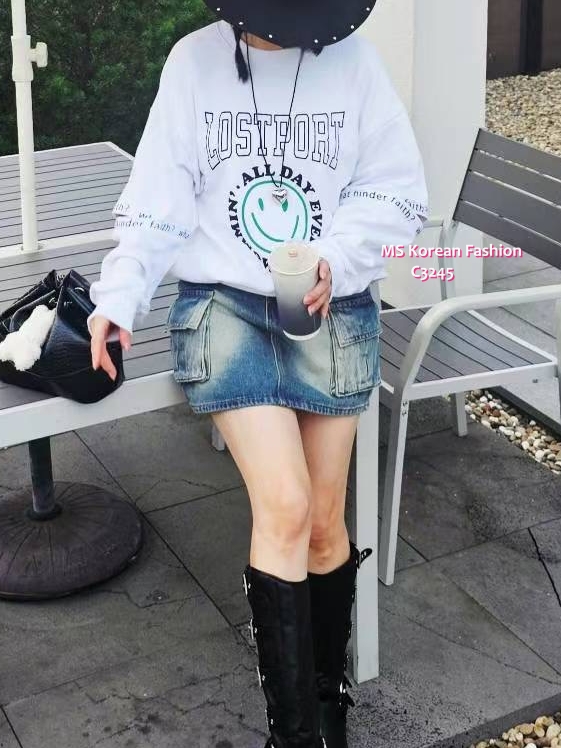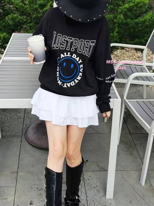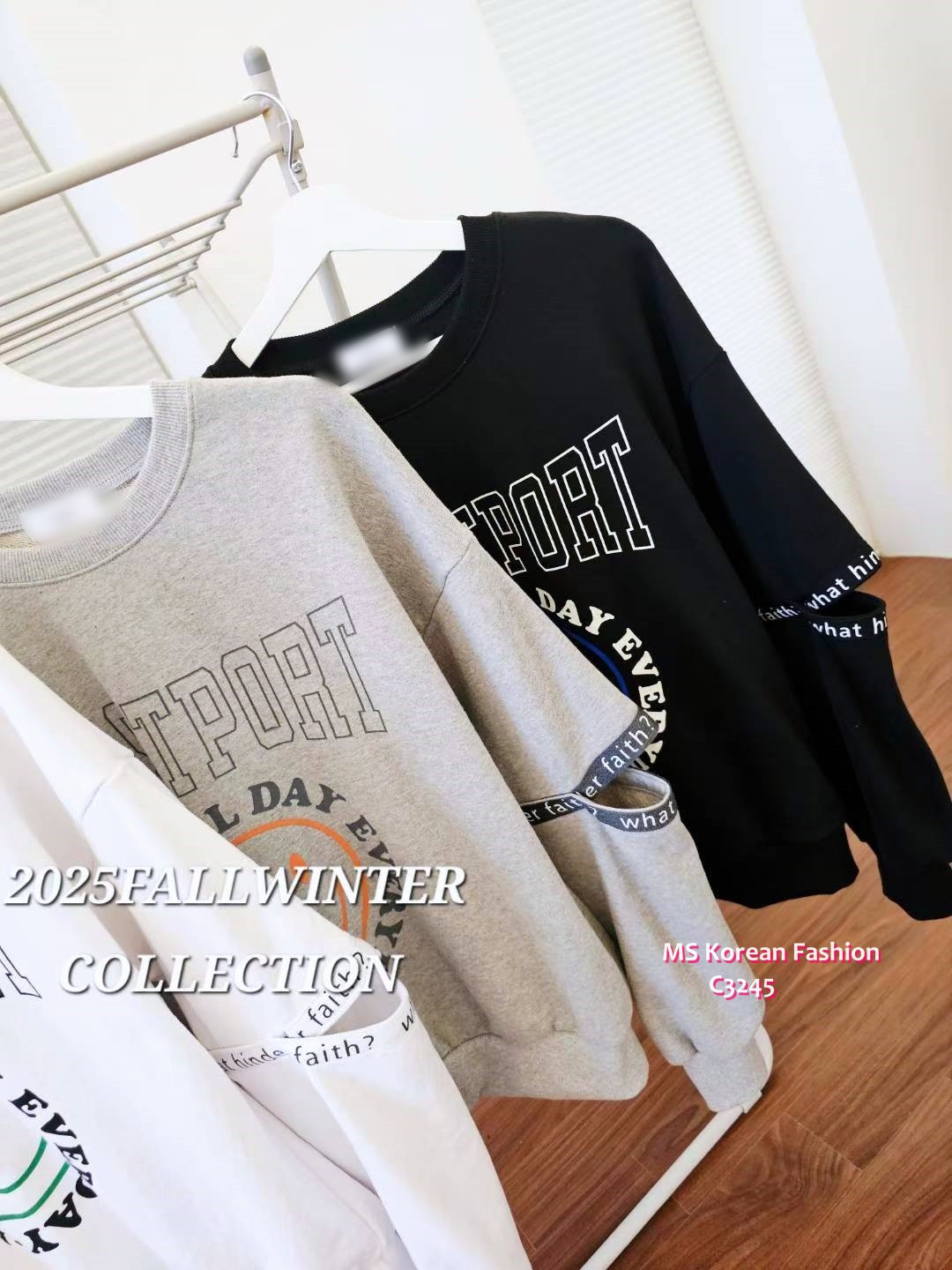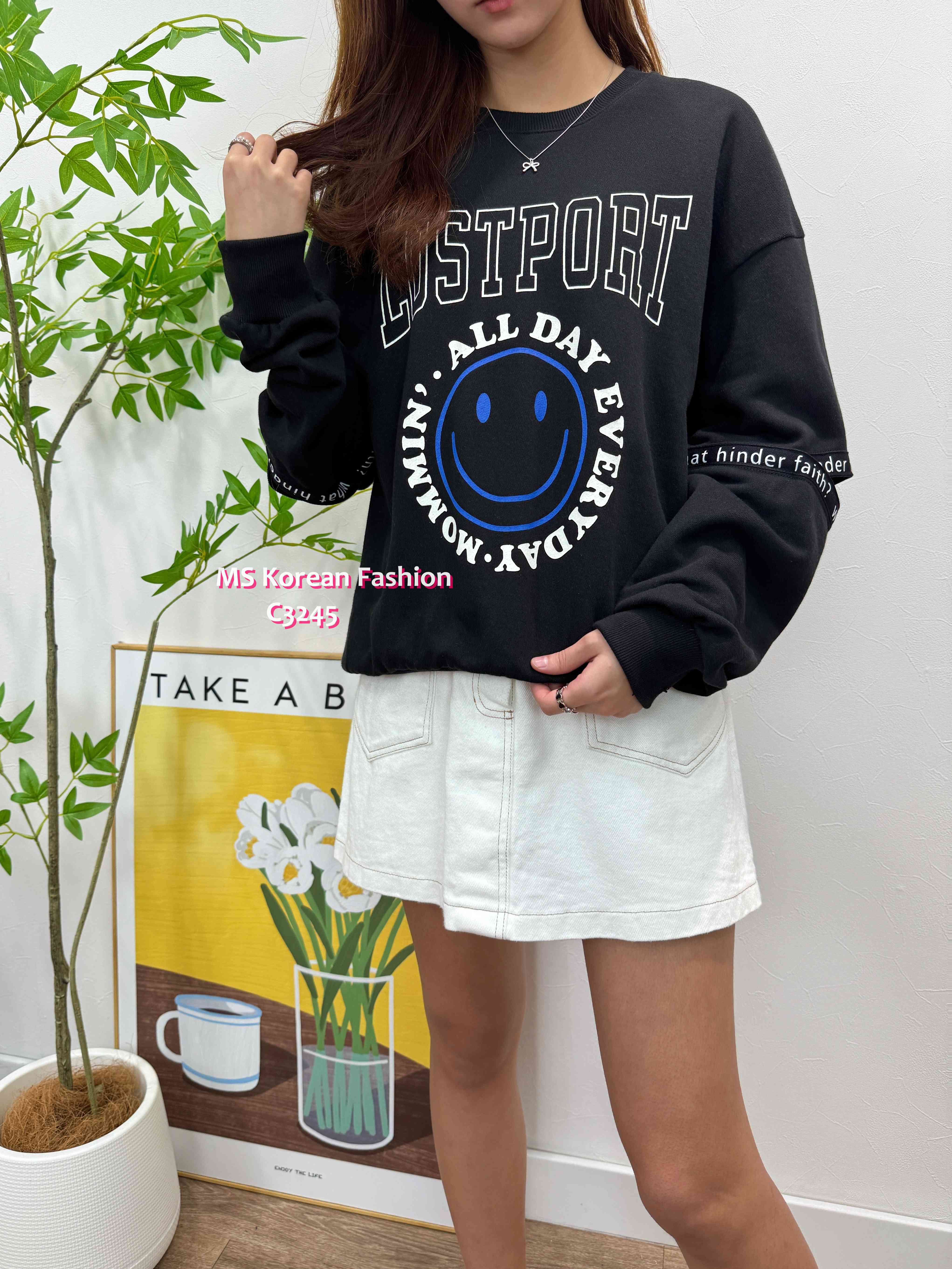 C3245 韓國🇰🇷哈哈笑穿窿字母袖衛衣