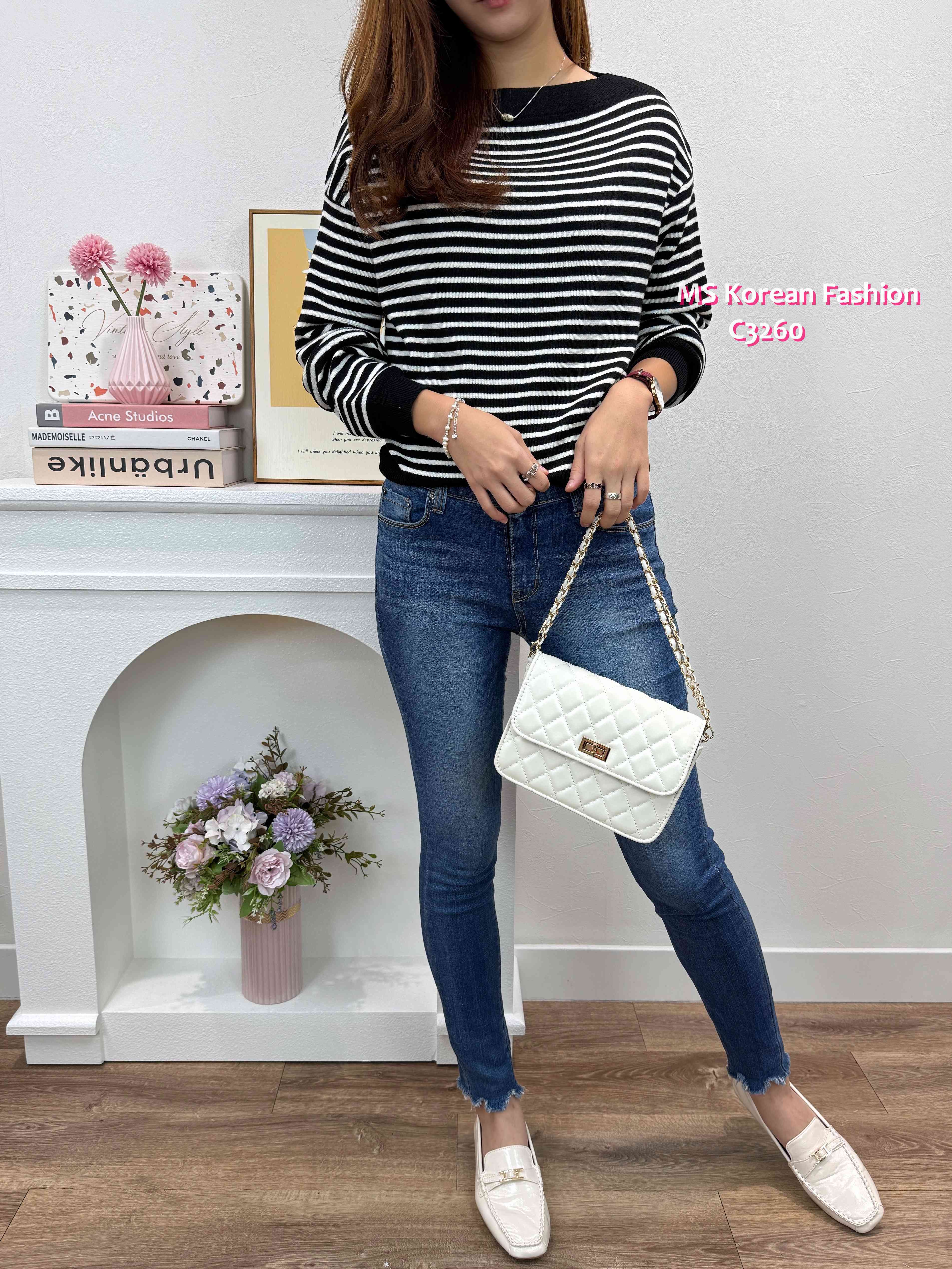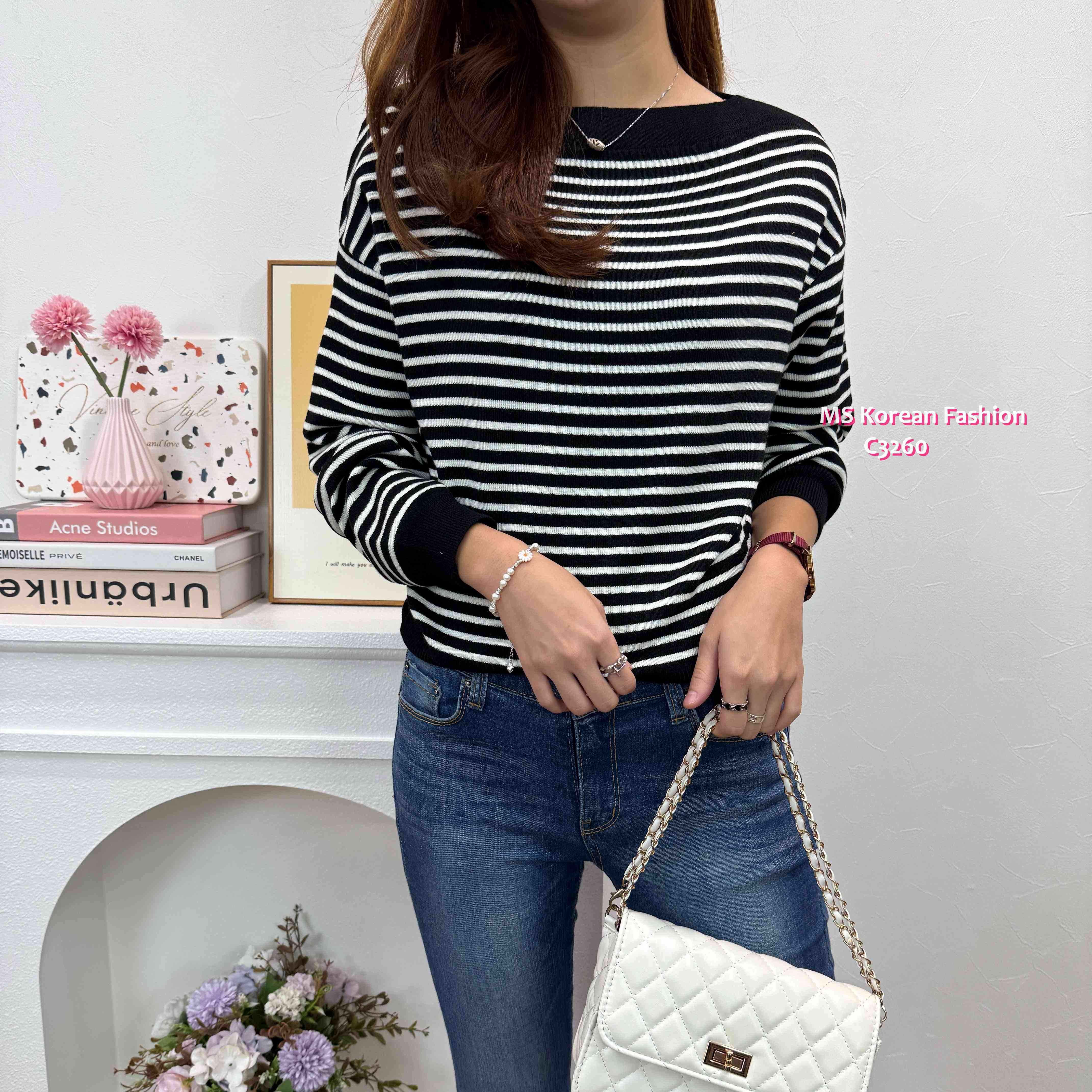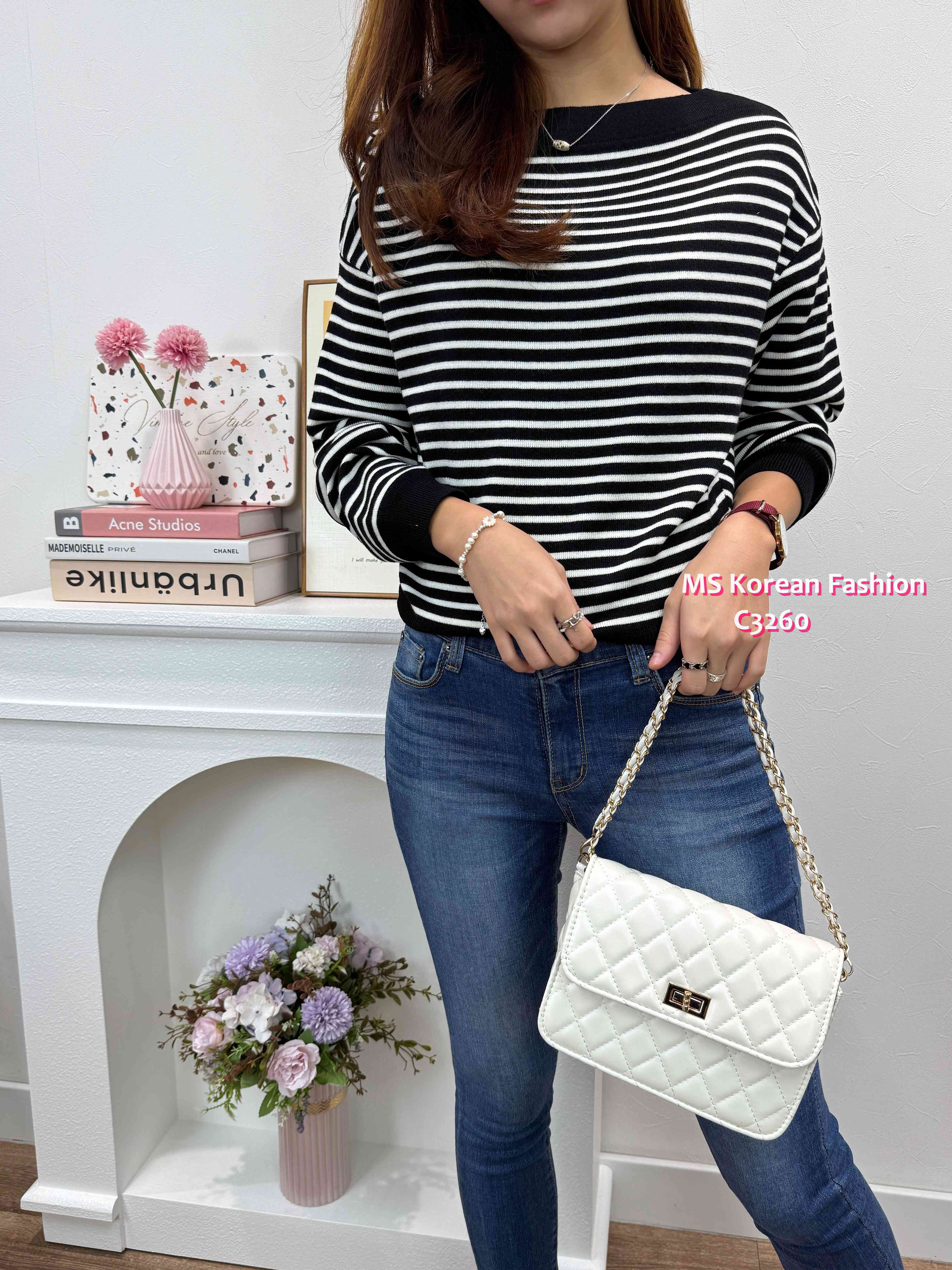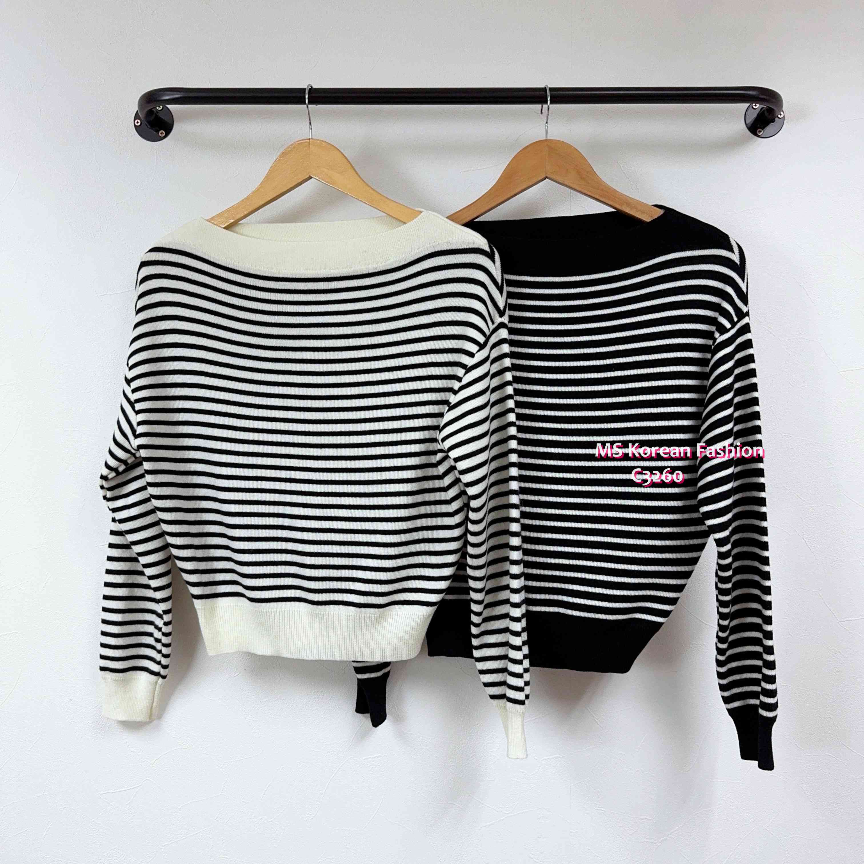 [訂貨約7-10個工作天] 💰💞Happy Price: $169 橫間針織top 布料親膚大彈性💯 一字領設計著上身好stylish😎 襯裙襯褲都好睇 白、黑 2色 尺寸 胸40">拉開55"/長21" 📫1件加$15包順豐站/自助櫃,2件包順豐(順豐站/自助櫃/工商/住宅) 📱查詢及Order可Inbox或Whatsapp 6317 3061