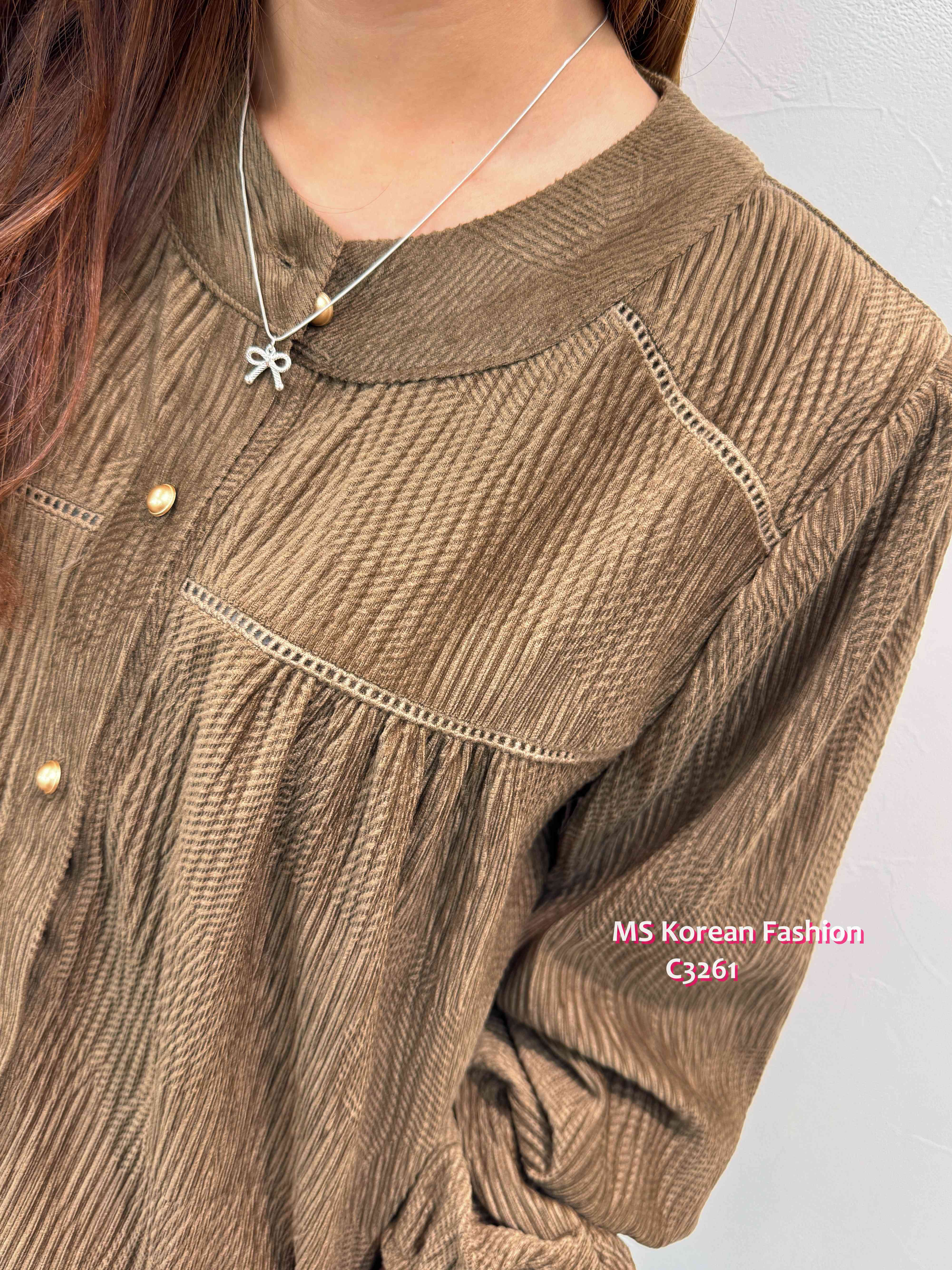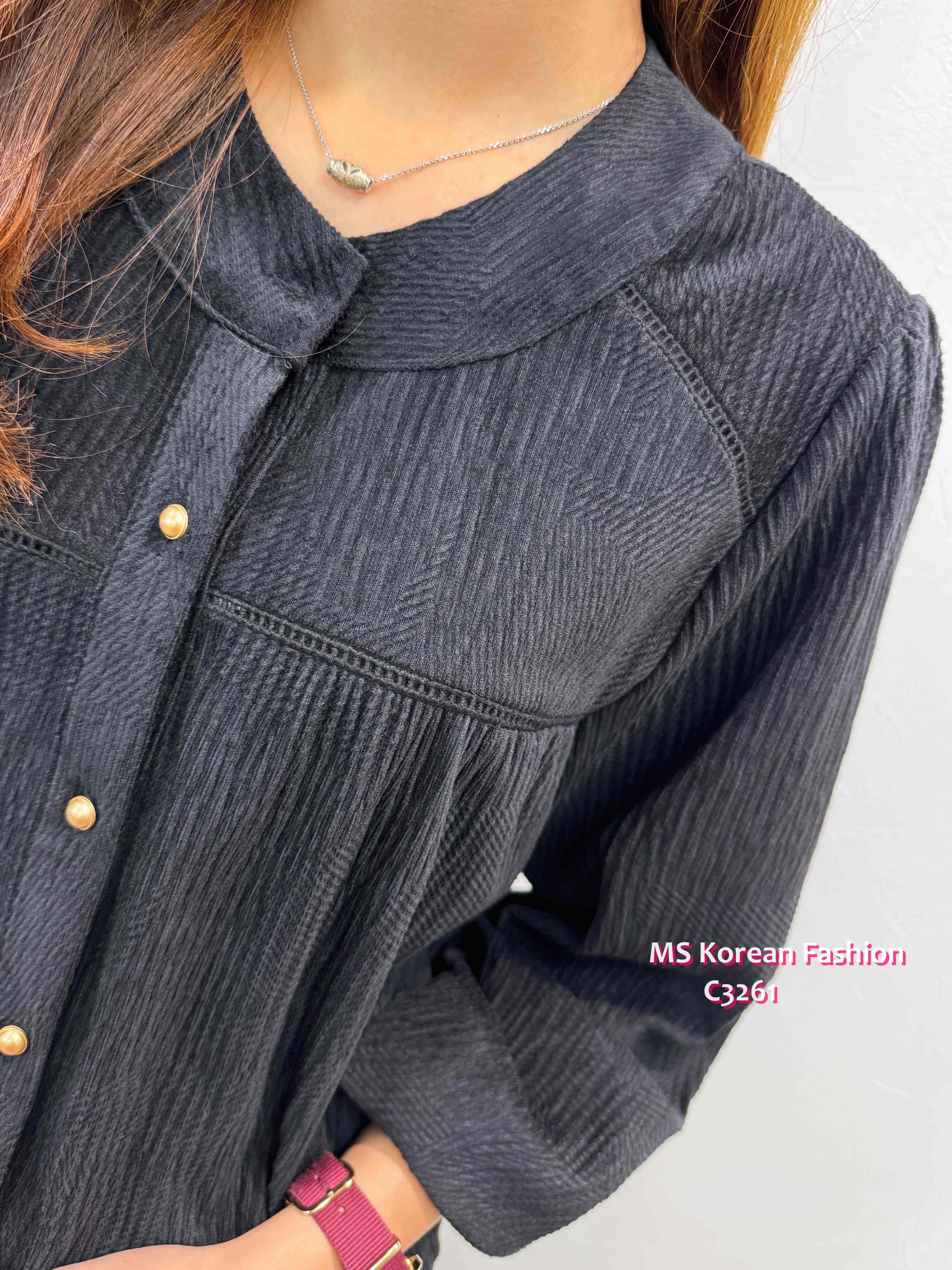 [訂貨約7-10個工作天] 💰💜$179, $169 for vip 壓紋布料恤 衫身加左少少通花設計巧令令🥰 斯文或casual look都carry到 黑、啡、米 3色 尺寸 肩15"/胸41"/長23.5" 📫1件加$15包順豐站/自助櫃,2件包順豐(順豐站/自助櫃/工商/住宅) 📱查詢及Order可Inbox或Whatsapp 6317 3061