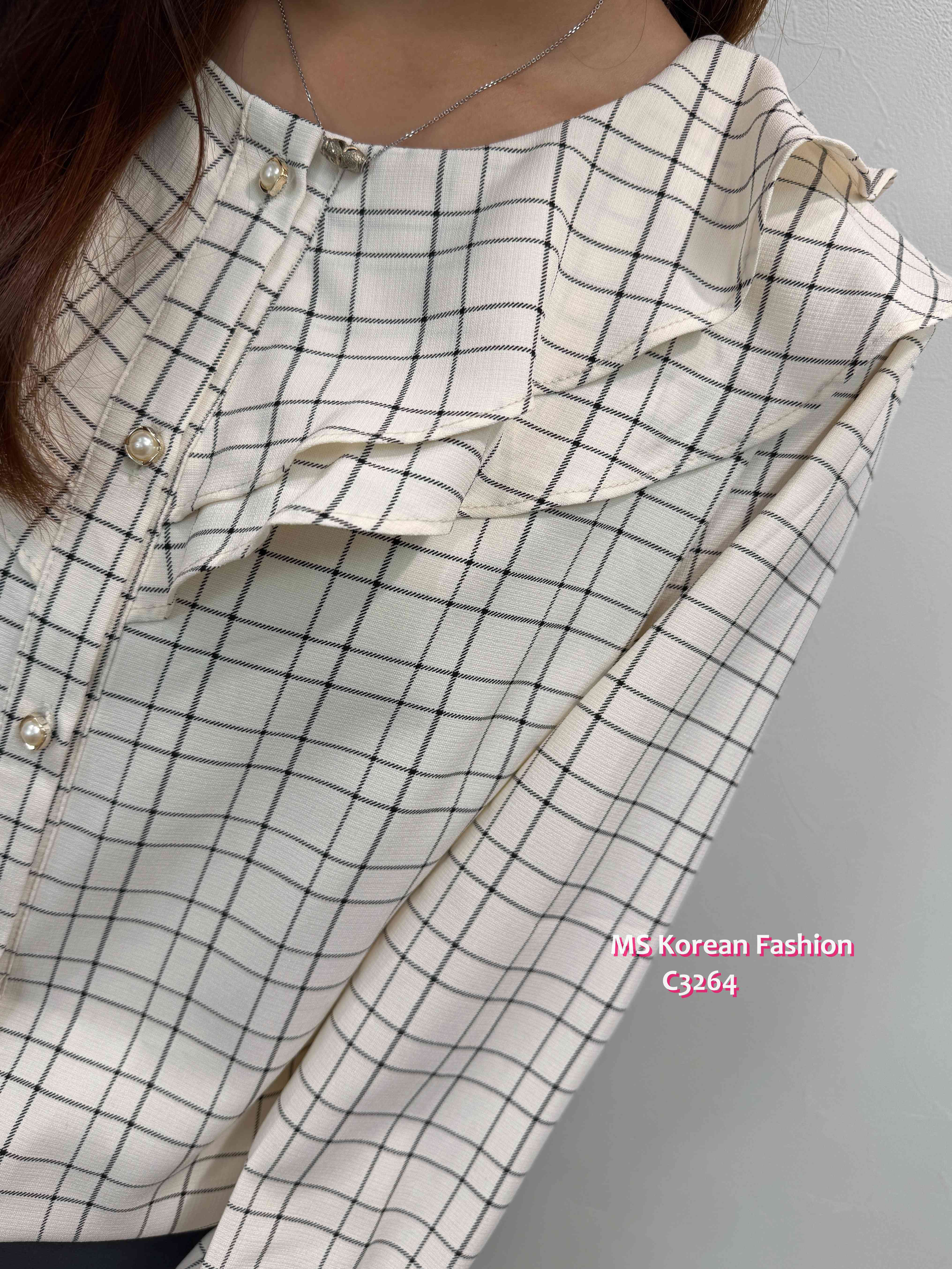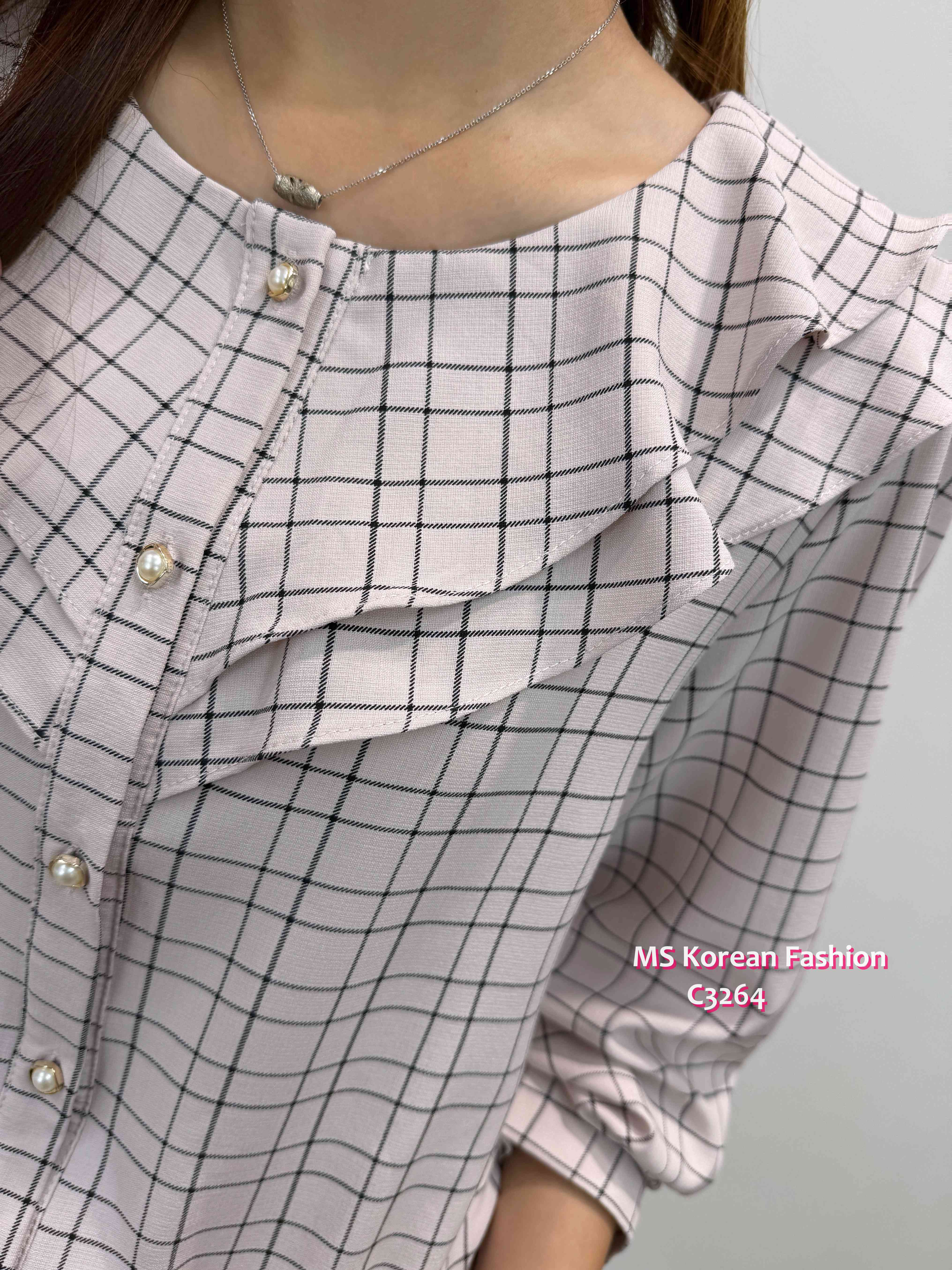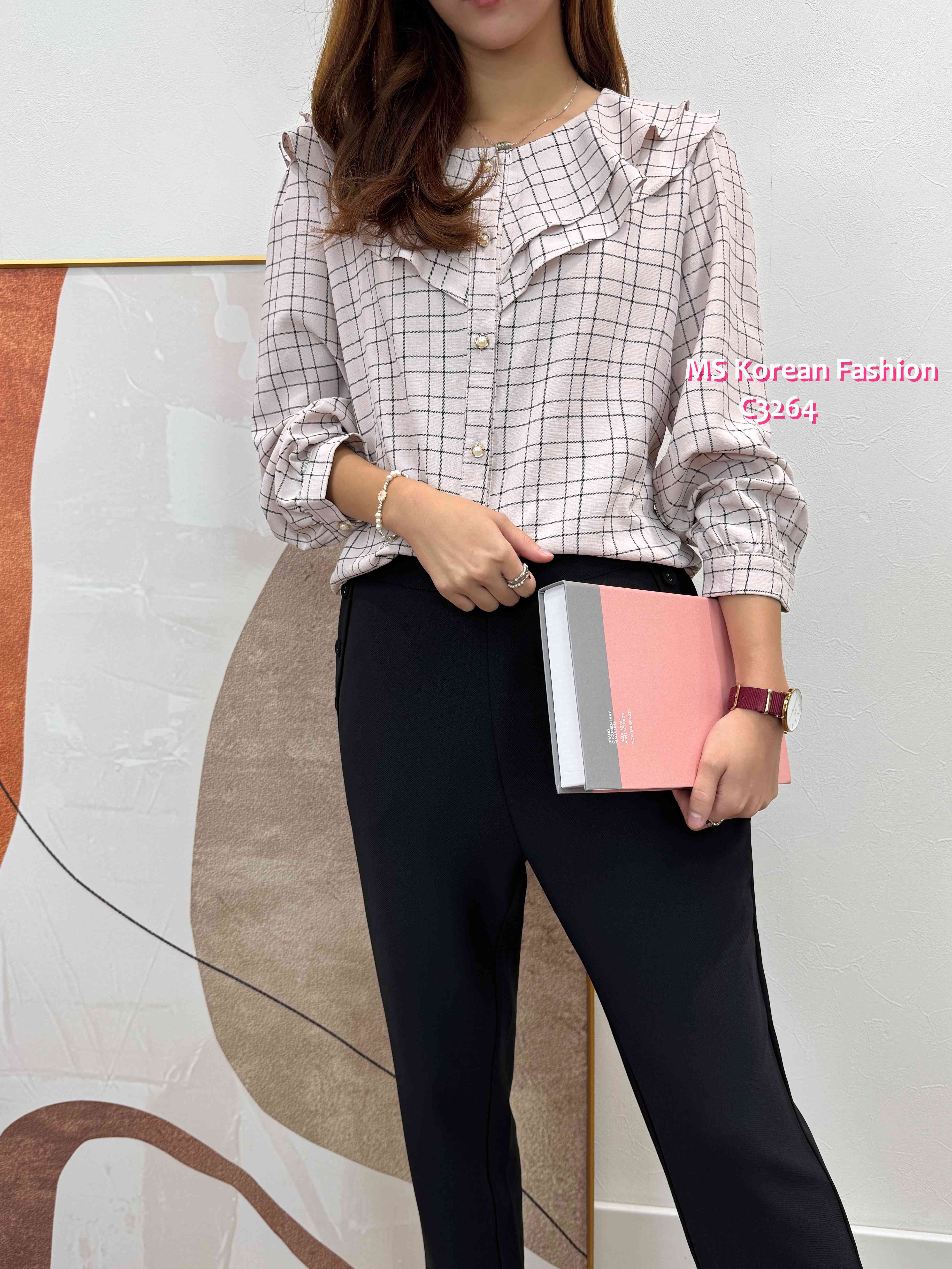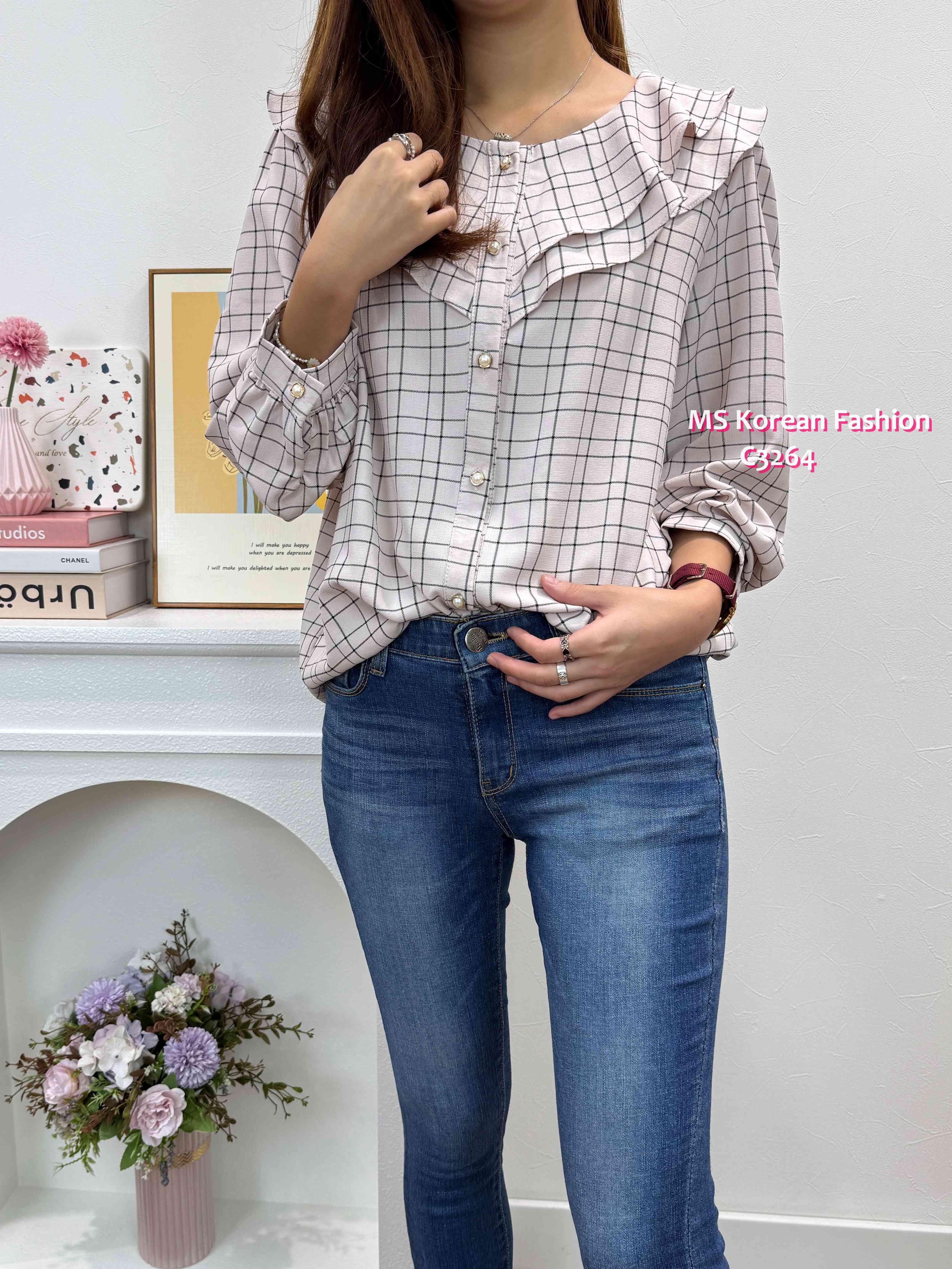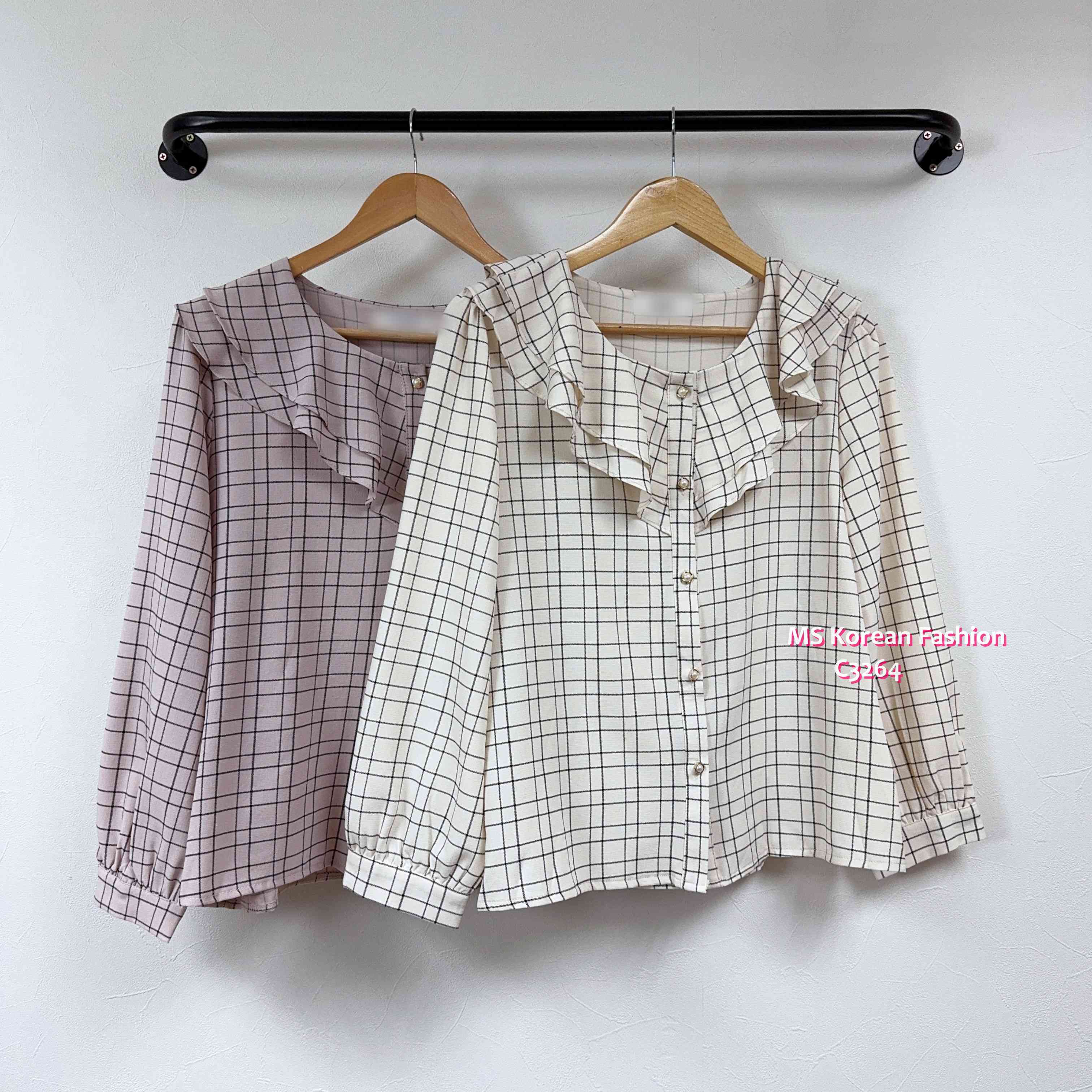 [訂貨約7-10個工作天] 💰💞Happy Price: $189 格紋ruffle恤✨ 雙層rurrlfe設計巧令令 幾粒金邊珠鈕夠晒elegant😍 斯文或casual look都carry到 粉、米 2色 尺寸 肩16"/胸42"/長23" 📫1件加$15包順豐站/自助櫃,2件包順豐(順豐站/自助櫃/工商/住宅) 📱查詢及Order可Inbox或Whatsapp 6317 3061