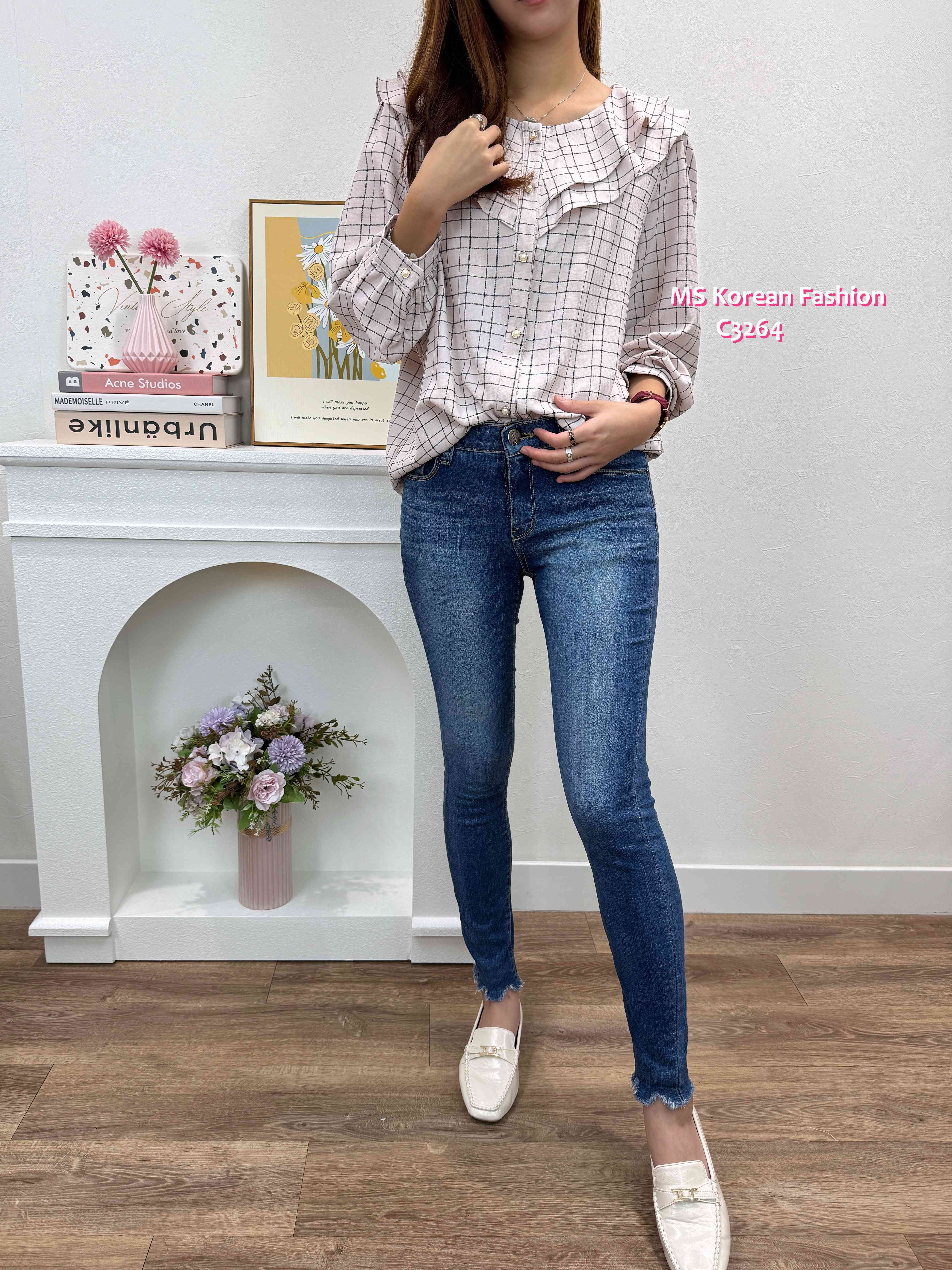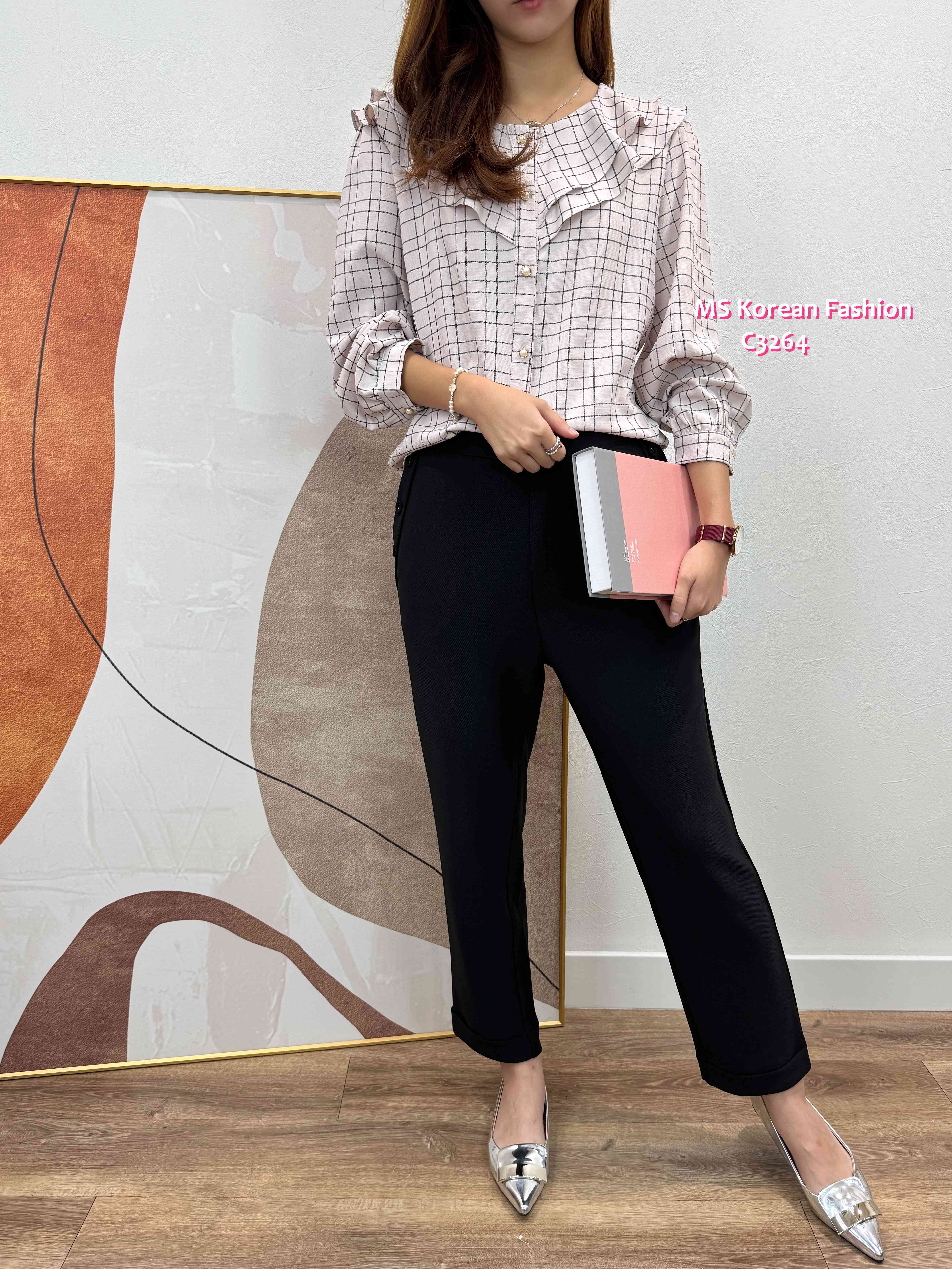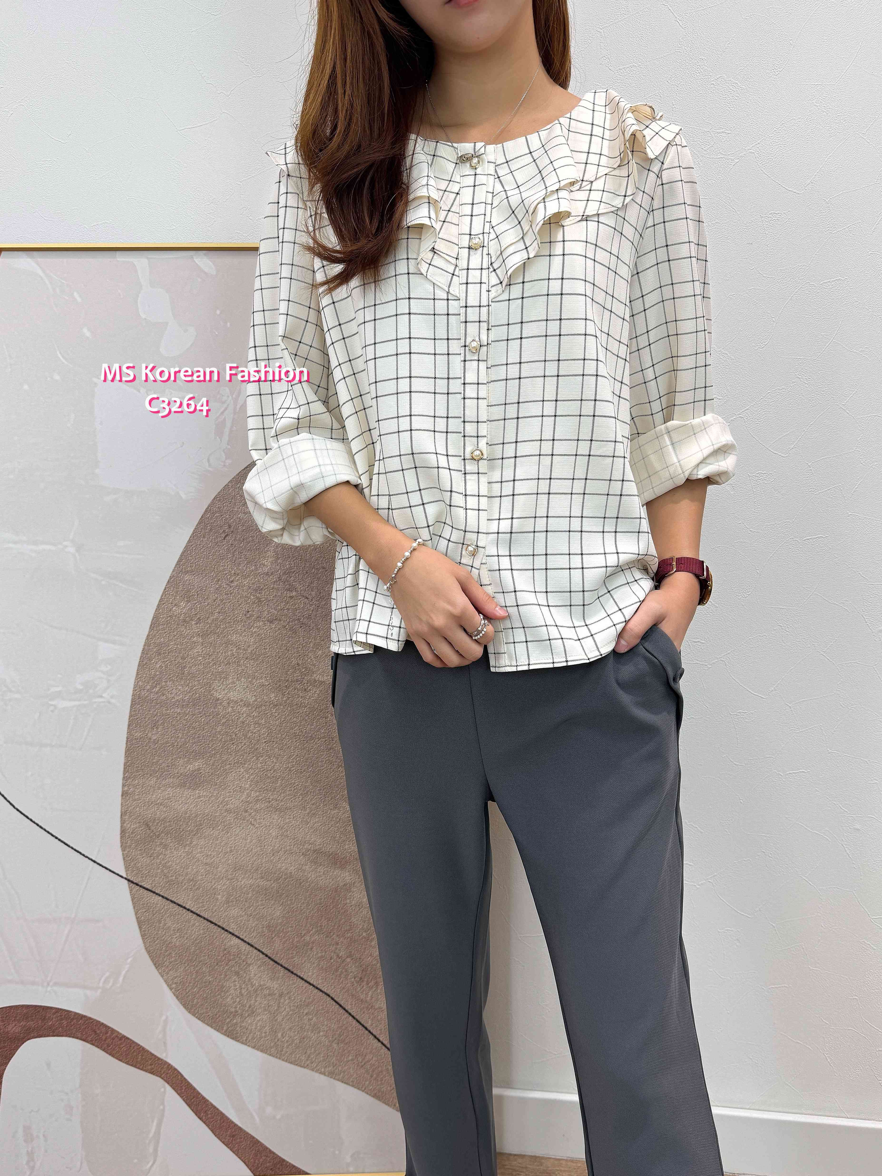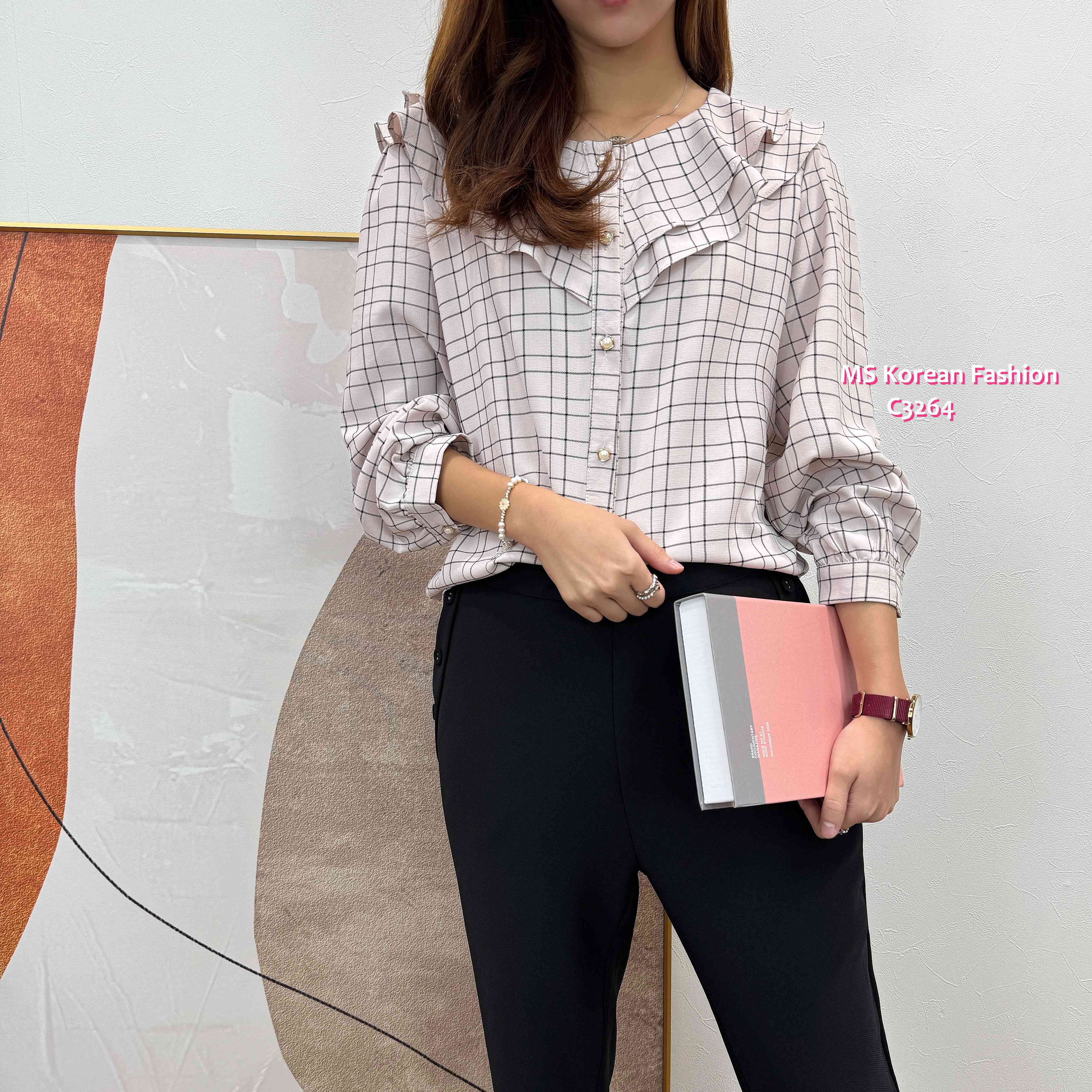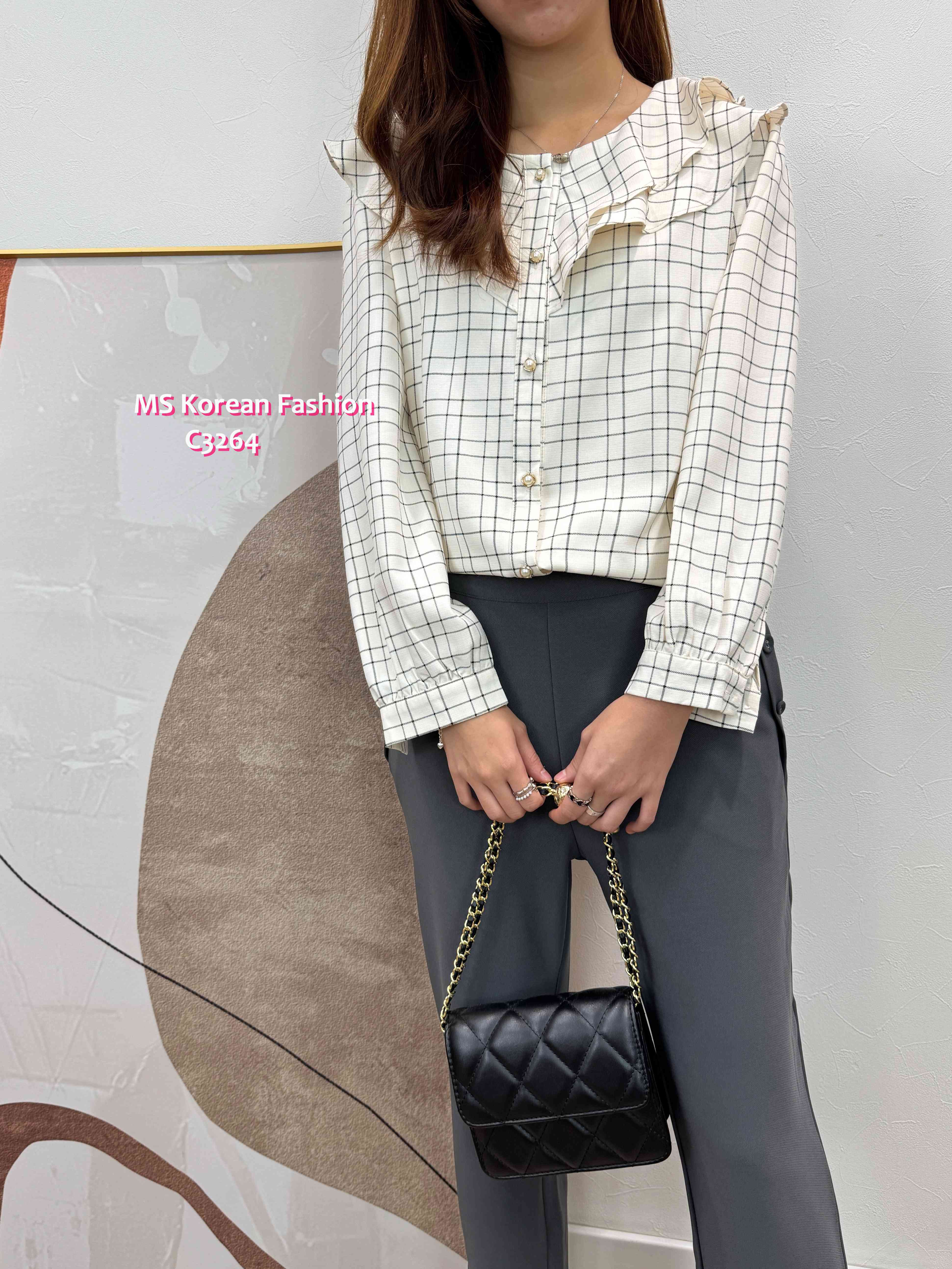 [訂貨約7-10個工作天] 💰💞Happy Price: $189 格紋ruffle恤✨ 雙層rurrlfe設計巧令令 幾粒金邊珠鈕夠晒elegant😍 斯文或casual look都carry到 粉、米 2色 尺寸 肩16"/胸42"/長23" 📫1件加$15包順豐站/自助櫃,2件包順豐(順豐站/自助櫃/工商/住宅) 📱查詢及Order可Inbox或Whatsapp 6317 3061
