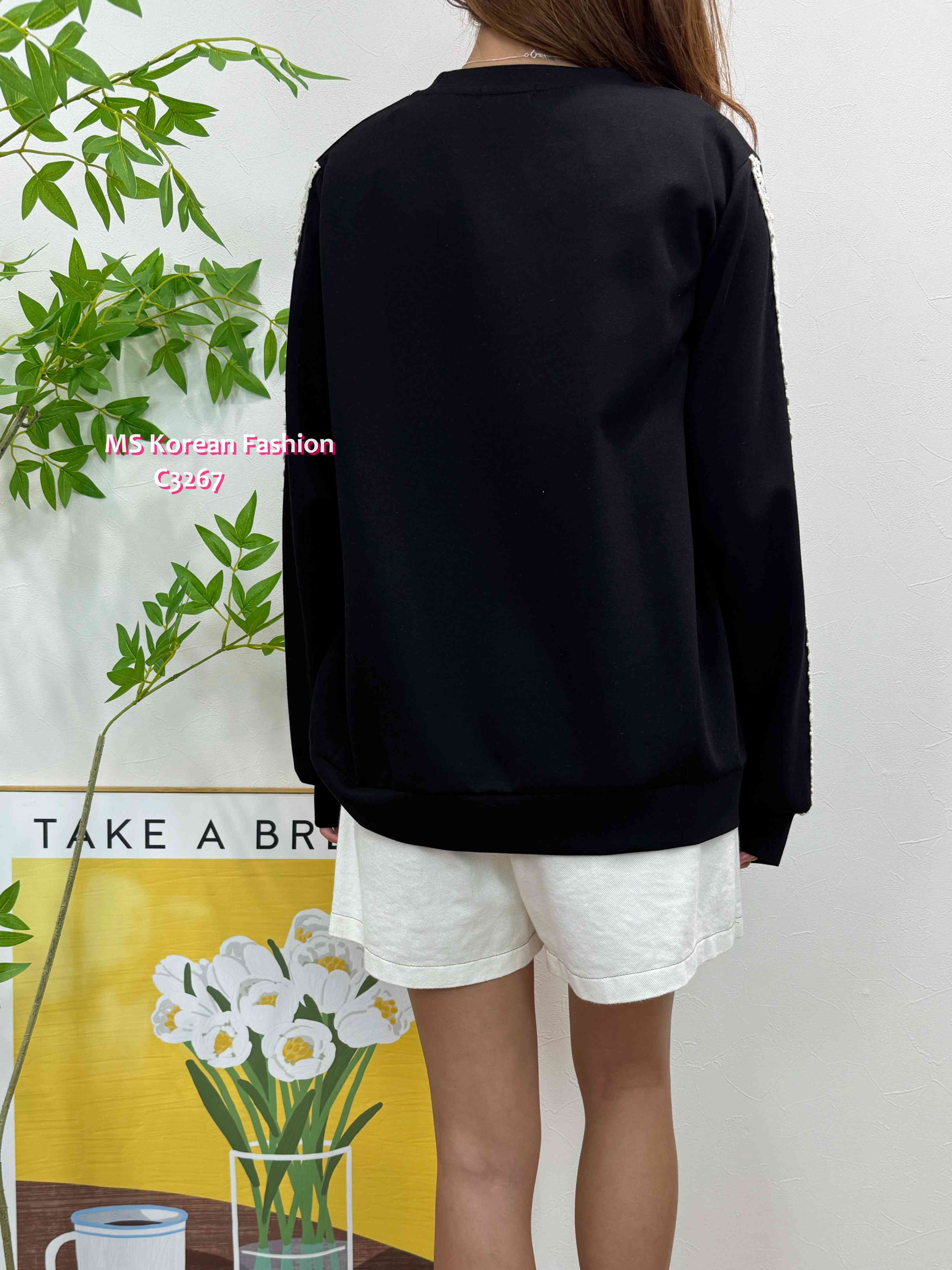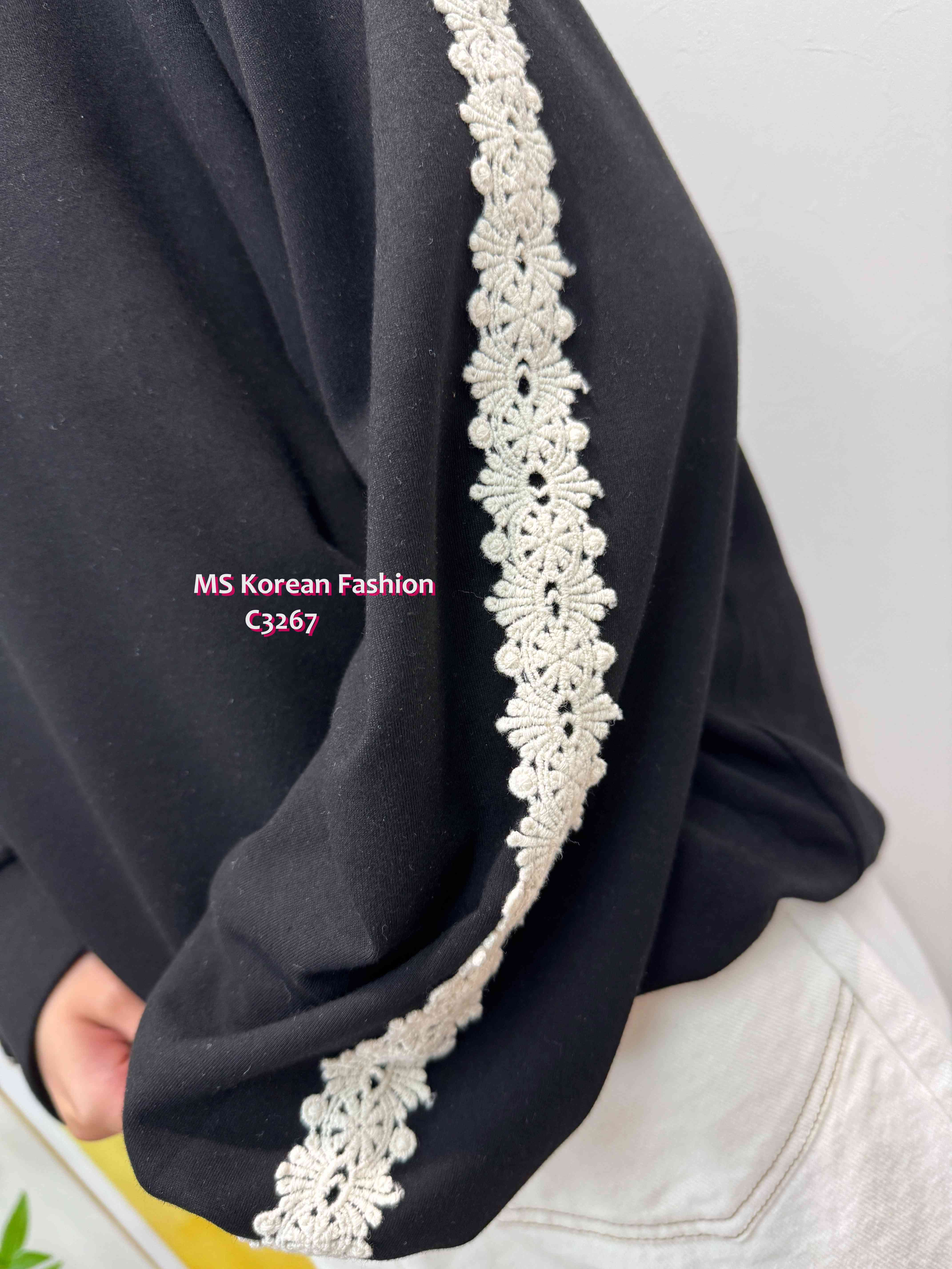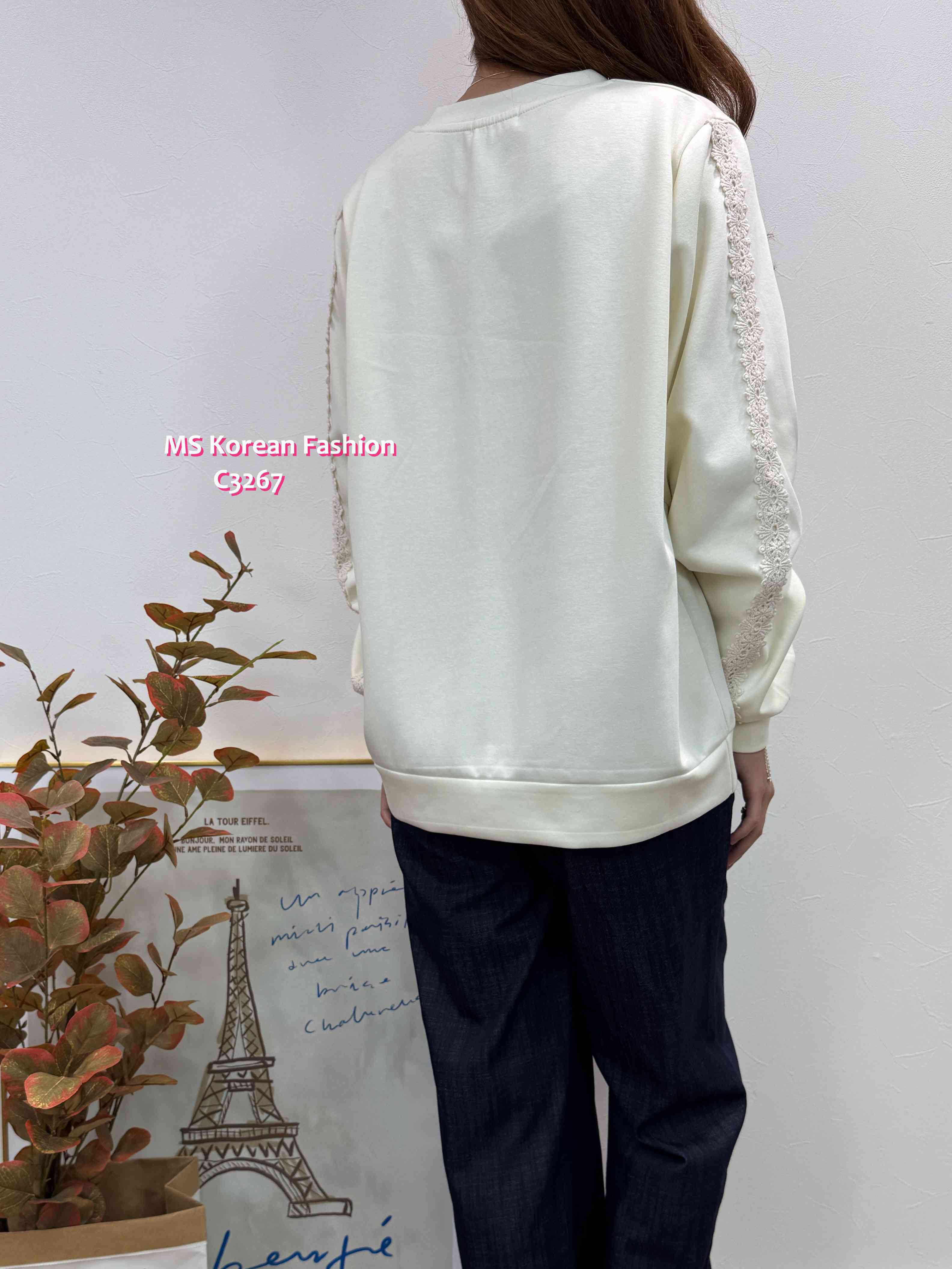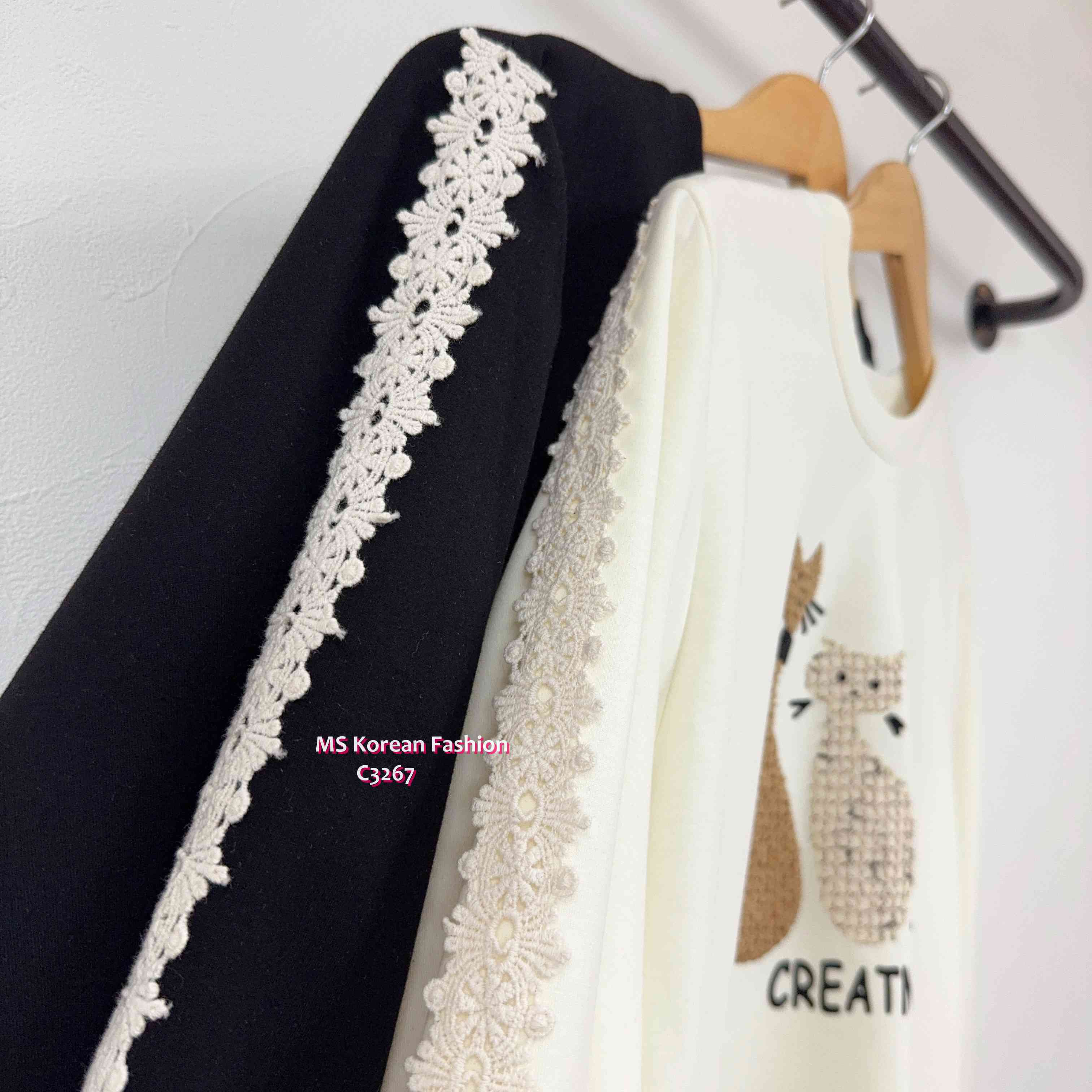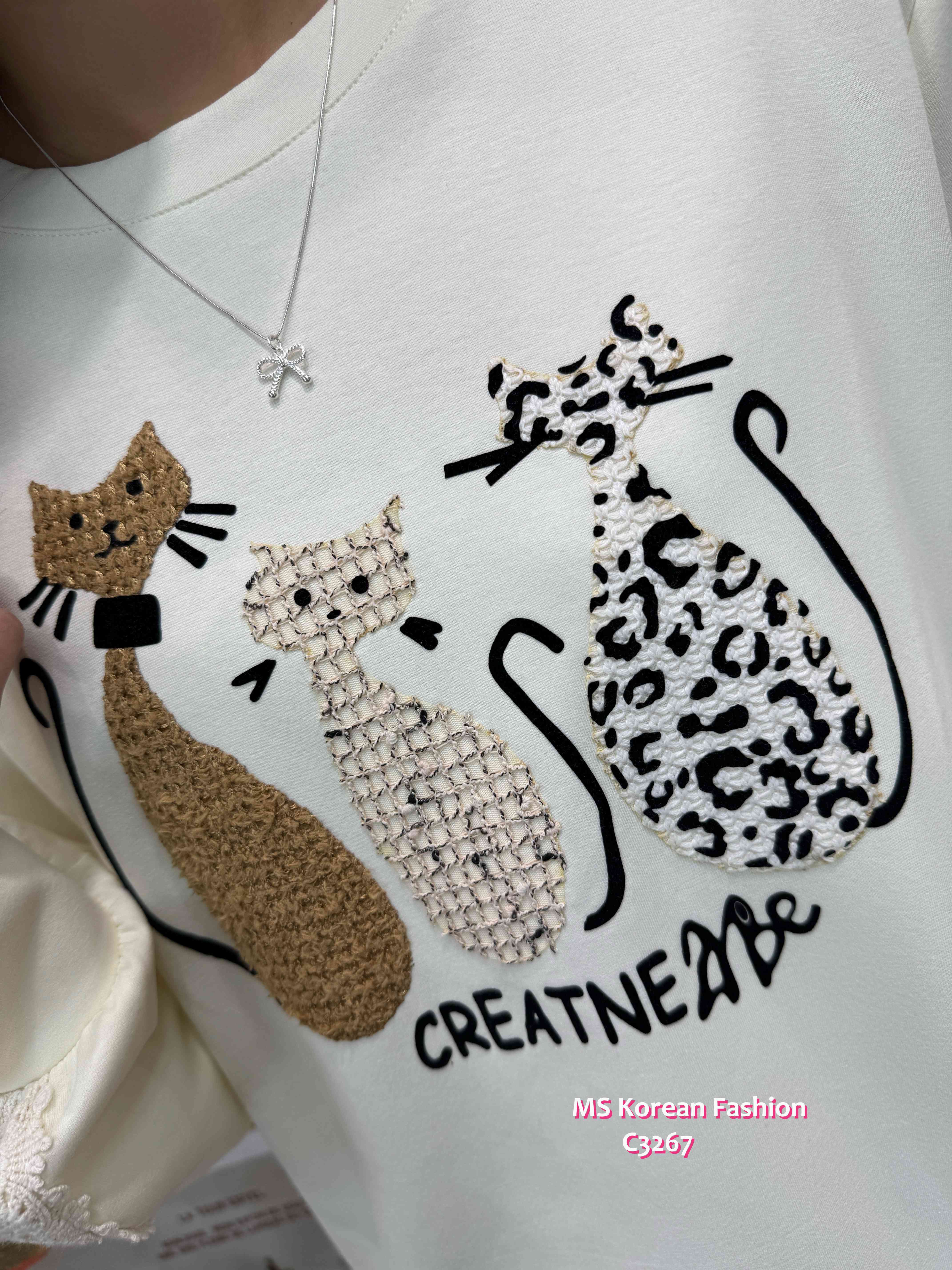 C3267 韓國🇰🇷可愛貓咪花邊袖top