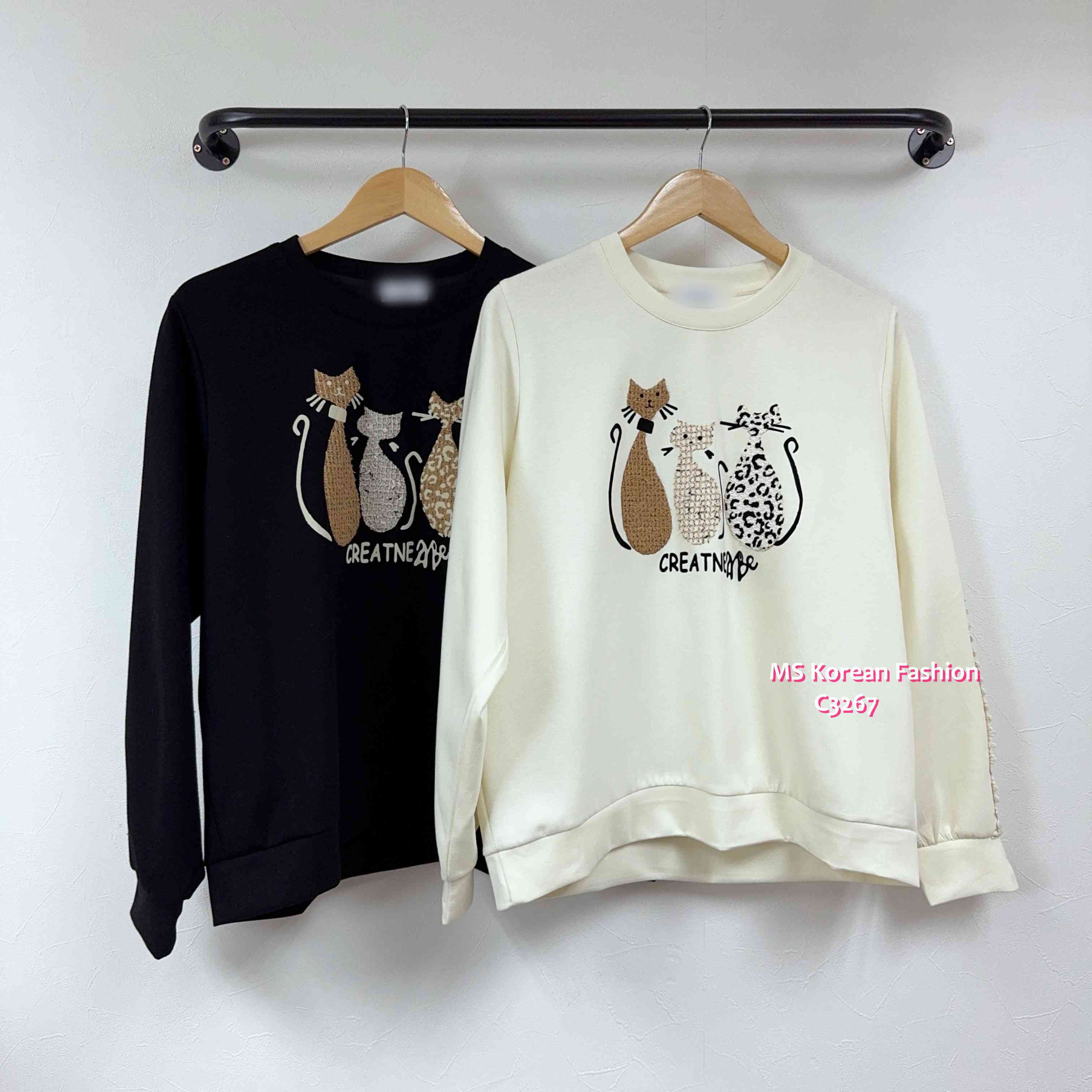 [訂貨約7-10個工作天] 💰💞Happy Price: $199 可愛貓咪top😻 舒服靚棉料 3️⃣隻貓貓好有質感夠晒kawaii 兩邊袖加左花邊設計更有款🌷 鬆身款有D肉地著都好睇架✌✌ 黑、米 2色 尺寸 肩17"/胸47"/長25.5" 📫1件加$15包順豐站/自助櫃,2件包順豐(順豐站/自助櫃/工商/住宅) 📱查詢及Order可Inbox或Whatsapp 6317 3061