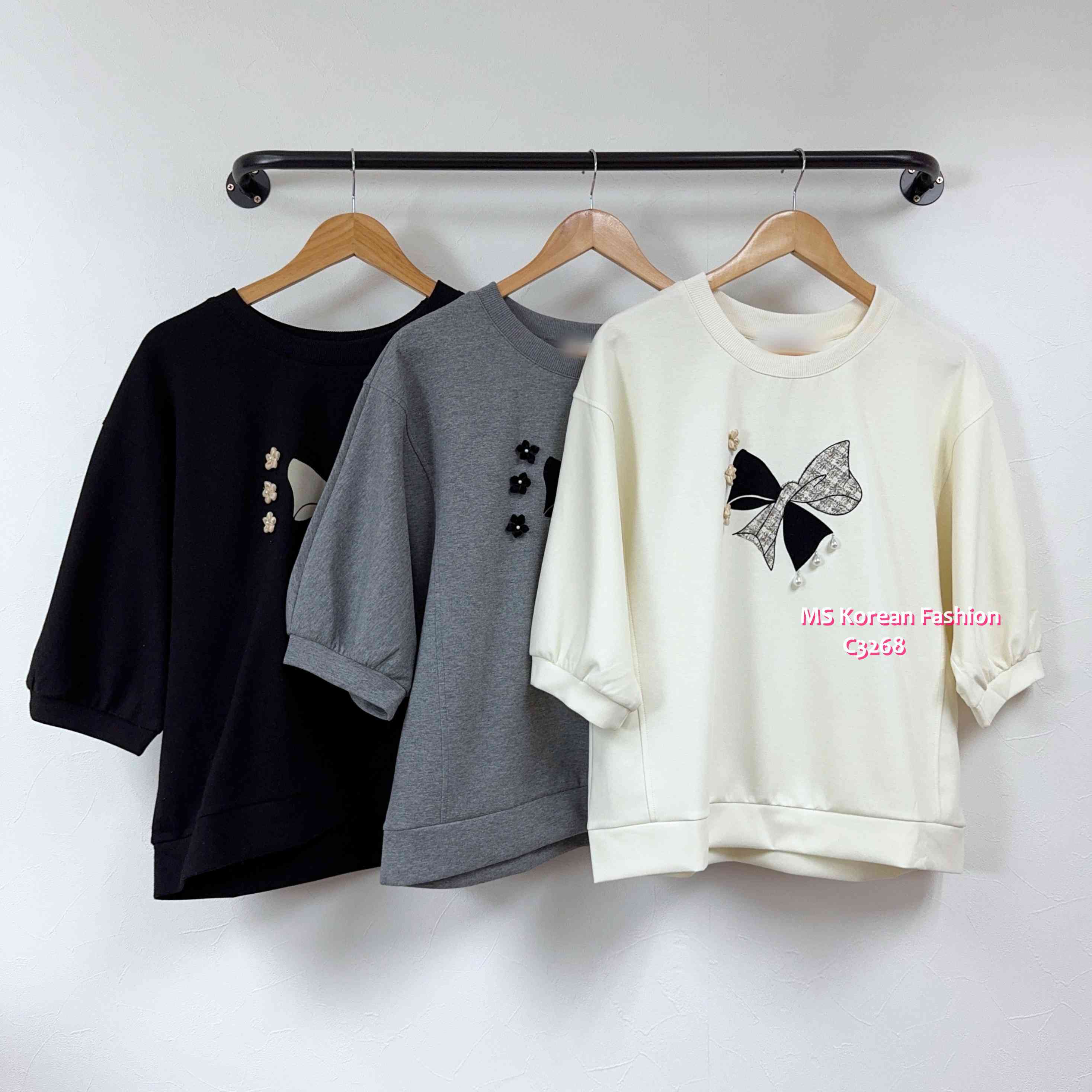 [訂貨約7-10個工作天] 💰💞Happy Price: $189 特色蝴蝶print top🎀 挺身舒服棉料有D厚度 著上身版型好正 特色蝴蝶print好有質感💯 仲加左立體花花同珠仔點綴🥳🥳 黑、灰、米 3色 尺寸 胸46"/長25" 📫1件加$15包順豐站/自助櫃,2件包順豐(順豐站/自助櫃/工商/住宅) 📱查詢及Order可Inbox或Whatsapp 6317 3061