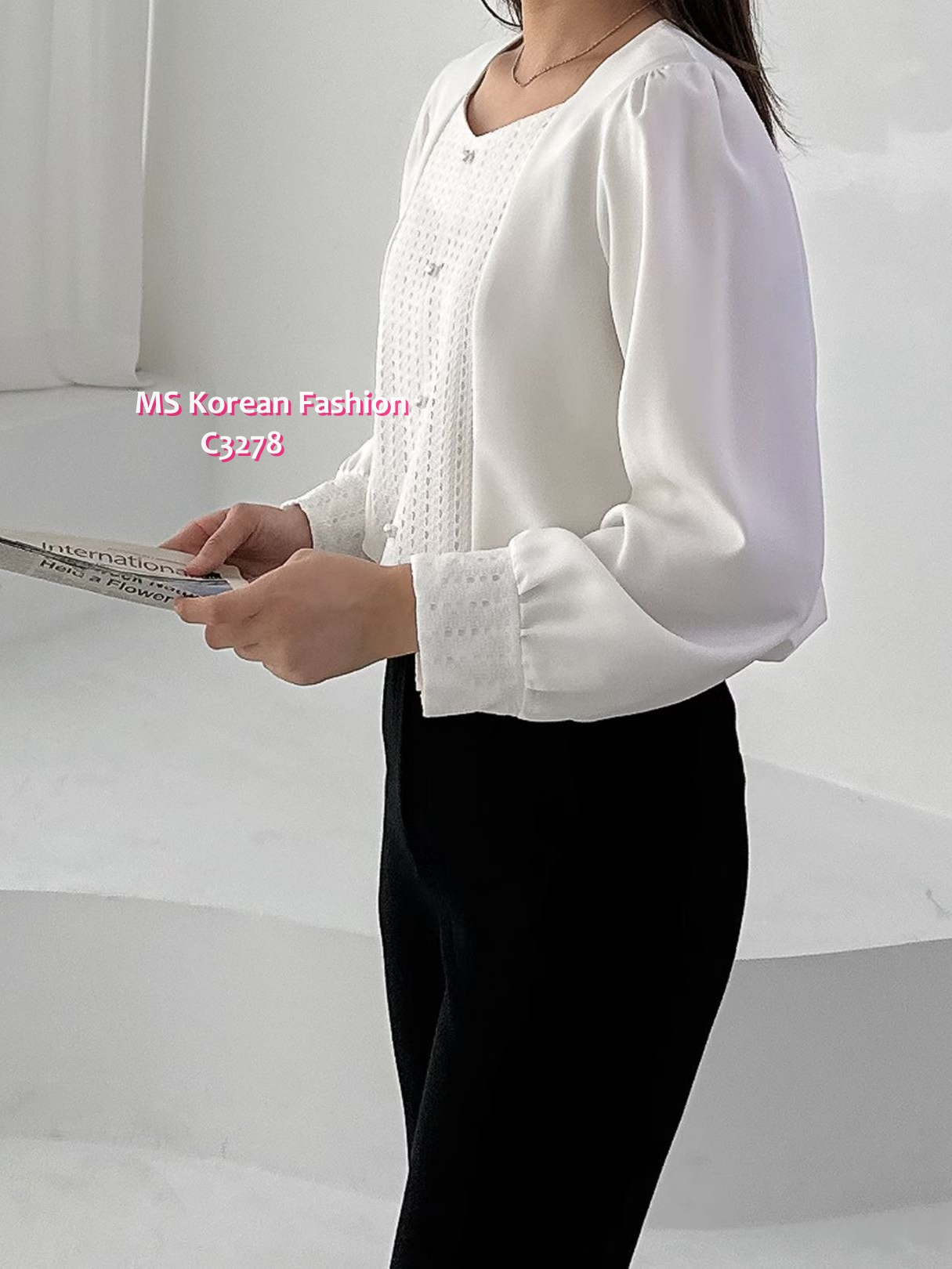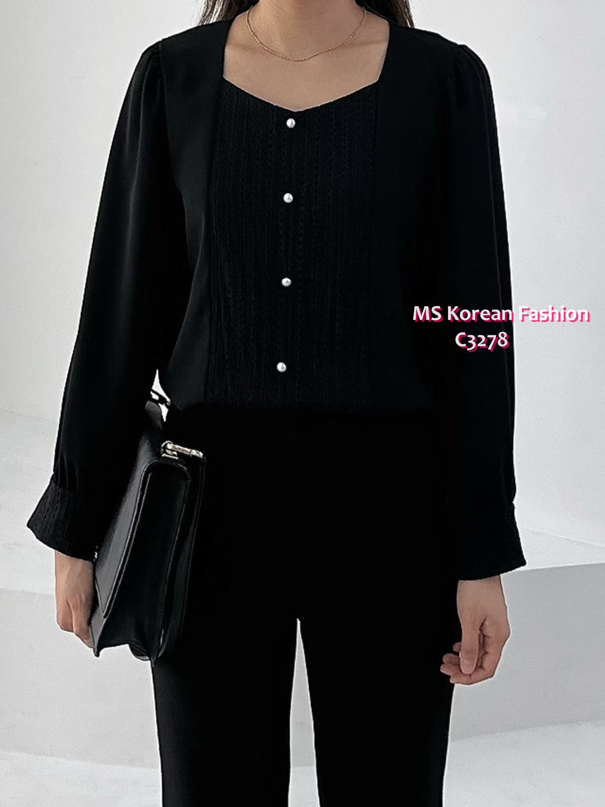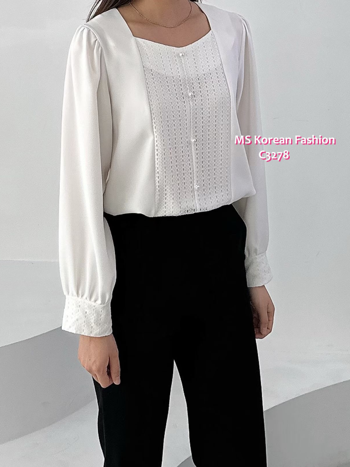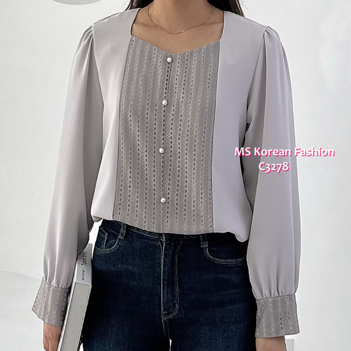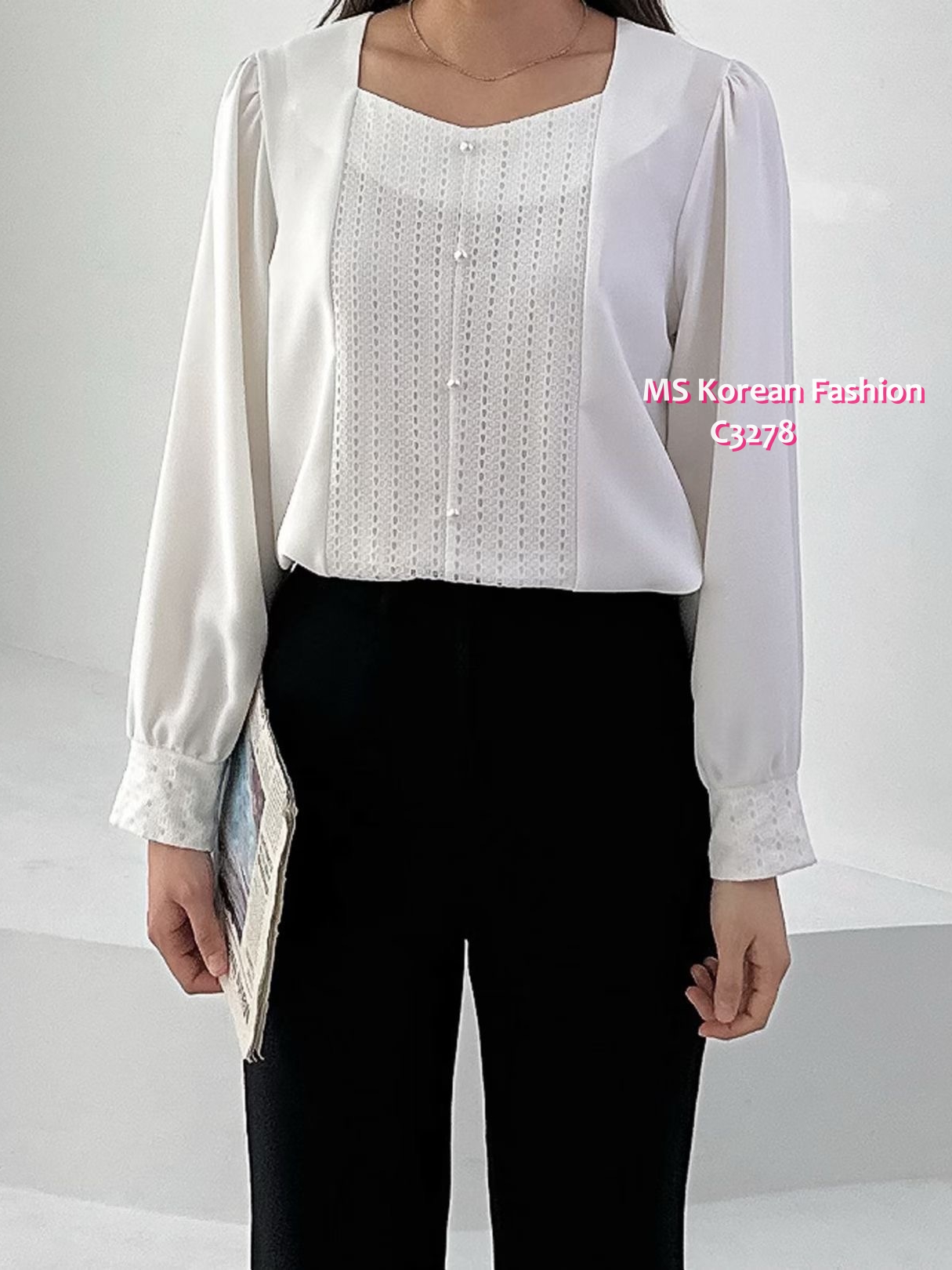 [訂貨約7-10個工作天] 💰💞Happy Price: $259 特色方領通花top🌷 領口cutting好特別 露下鎖骨顯瘦D 衫身同袖口加左通花設計好lady😻 斯文或casual look都carry到 白、灰、黑 3色 尺寸 胸42"/長24" 📫1件加$15包順豐站/自助櫃,2件包順豐(順豐站/自助櫃/工商/住宅) 📱查詢及Order可Inbox或Whatsapp 6317 3061