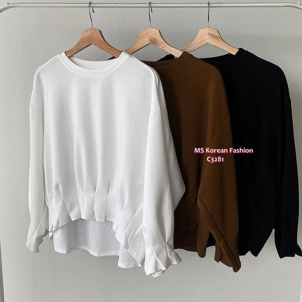 [訂貨約7-10個工作天] 💰💞Happy Price: $179 呢款淨色top幾特別😎 前面衫腳做左皺摺設計 背面就鬆鬆地 簡簡單單好易carry👍 白、啡、黑 3色 寸 胸49"/長24" 📫1件加$15包順豐站/自助櫃,2件包順豐 📱查詢及Order可Inbox或Whatsapp 6317 3061