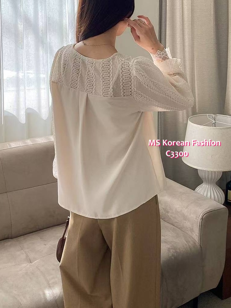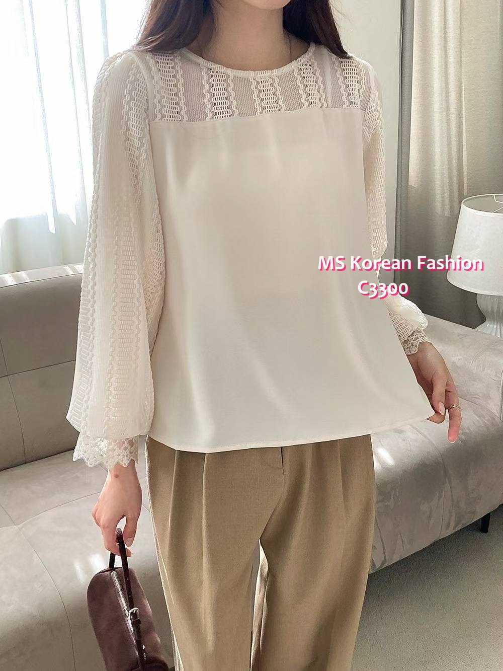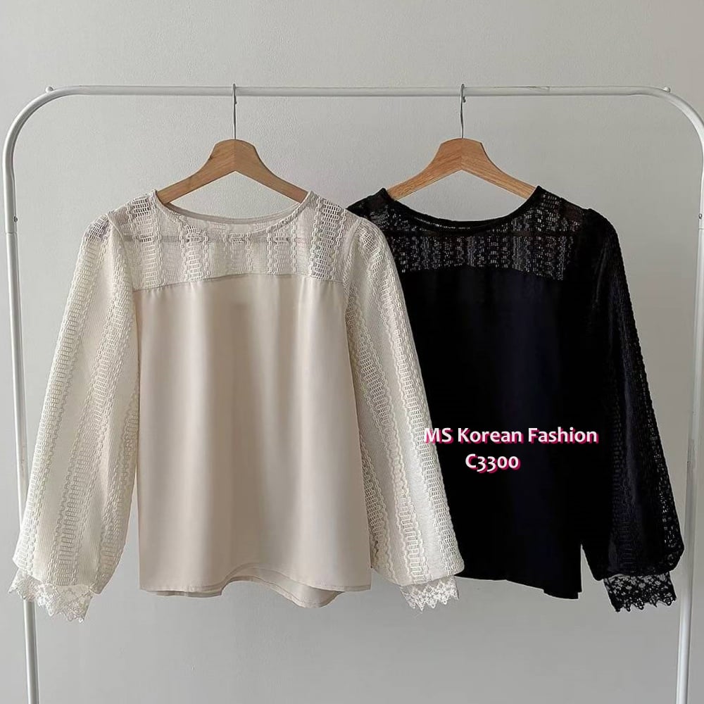 [訂貨約7-10個工作天] 💰💞Happy Price: $209 靚靚拼lace top✨ 袖位同肩位拼lace pattern好elegant 清清地幾好襯😻 斯文或casual look都carry到 米白、黑 2色 尺寸 胸39"/長23" 📫1件加$15包順豐站/自助櫃,2件包順豐(順豐站/自助櫃/工商/住宅) 📱查詢及Order可Inbox或Whatsapp 6317 3061
